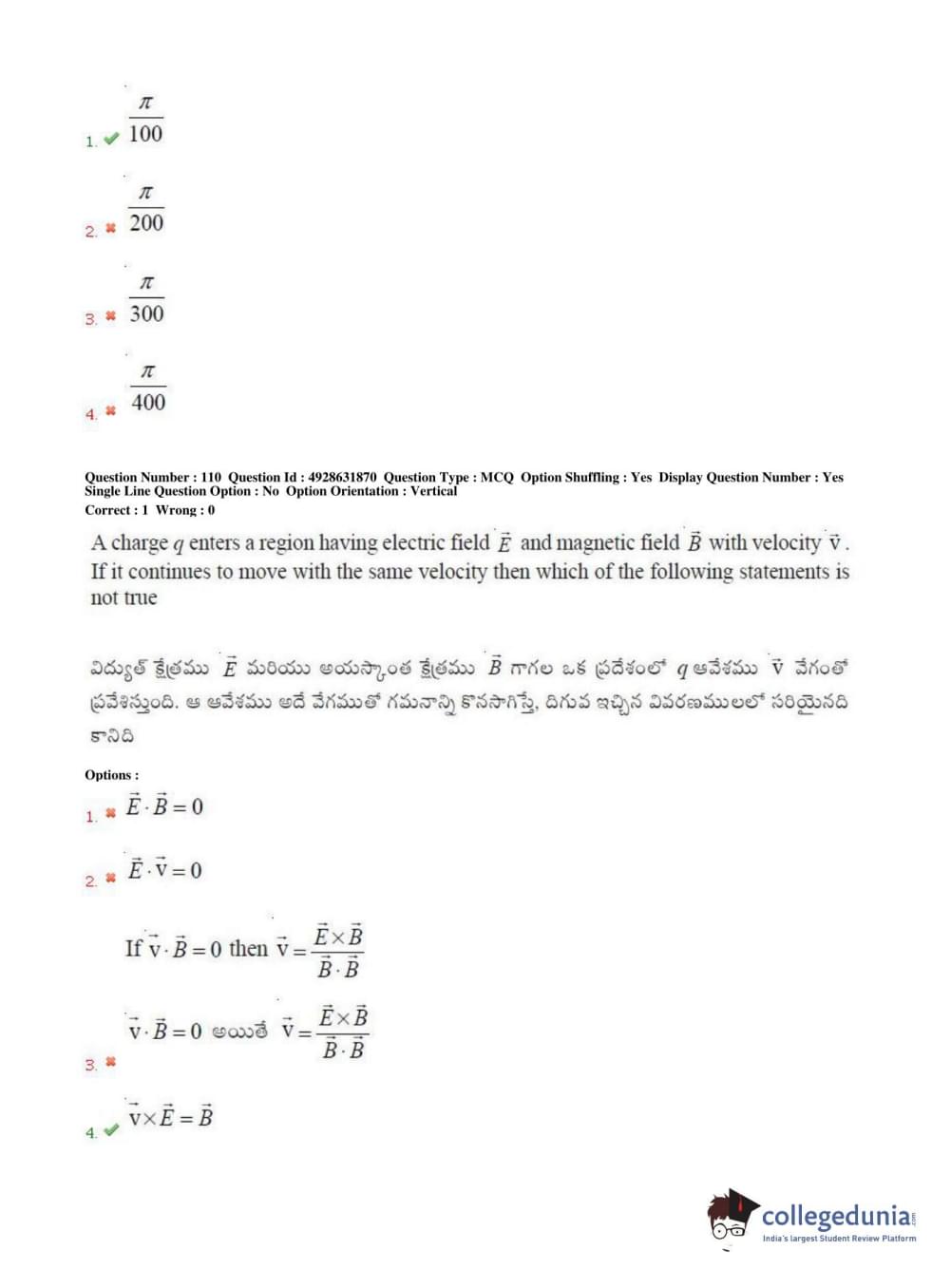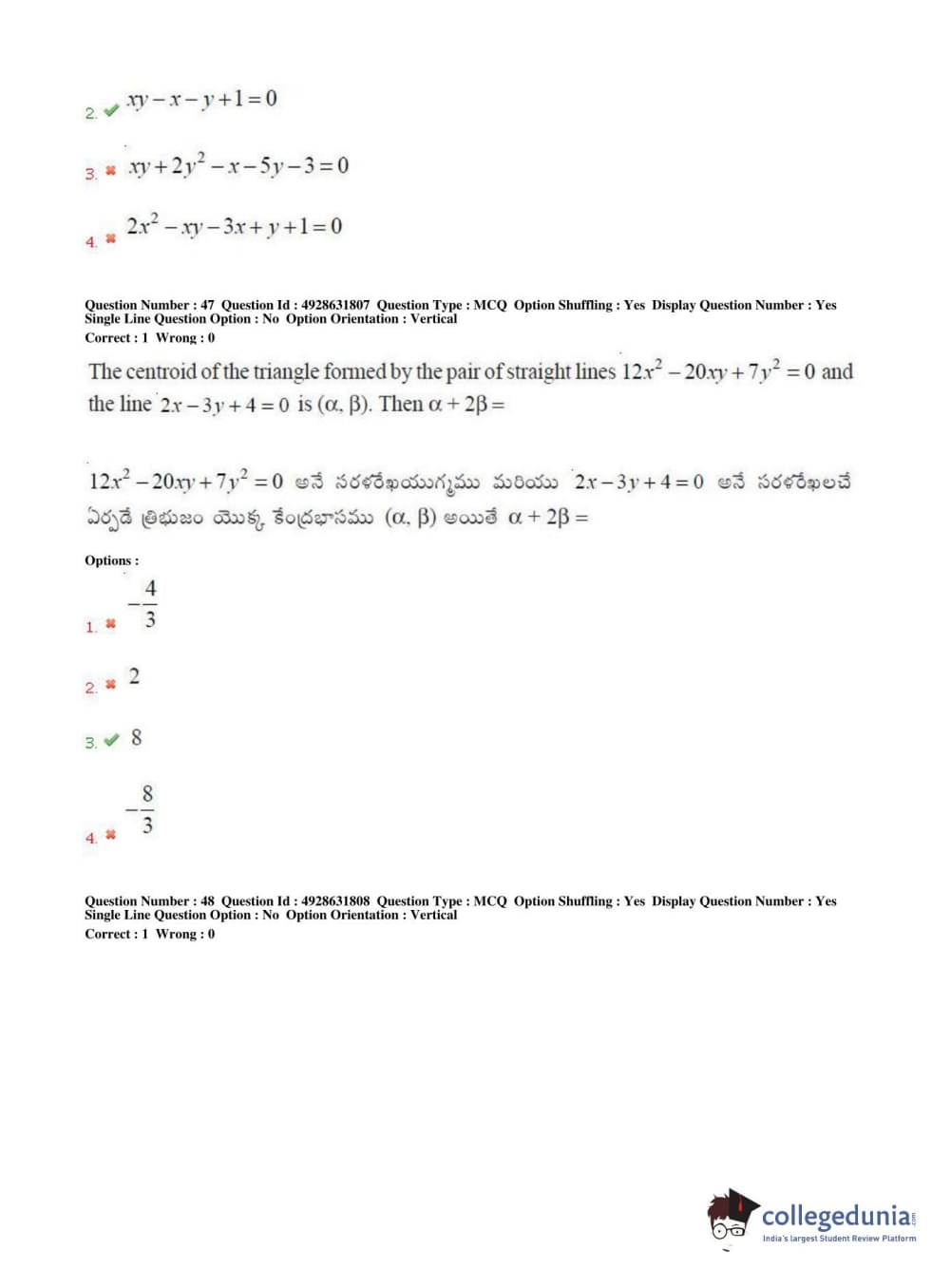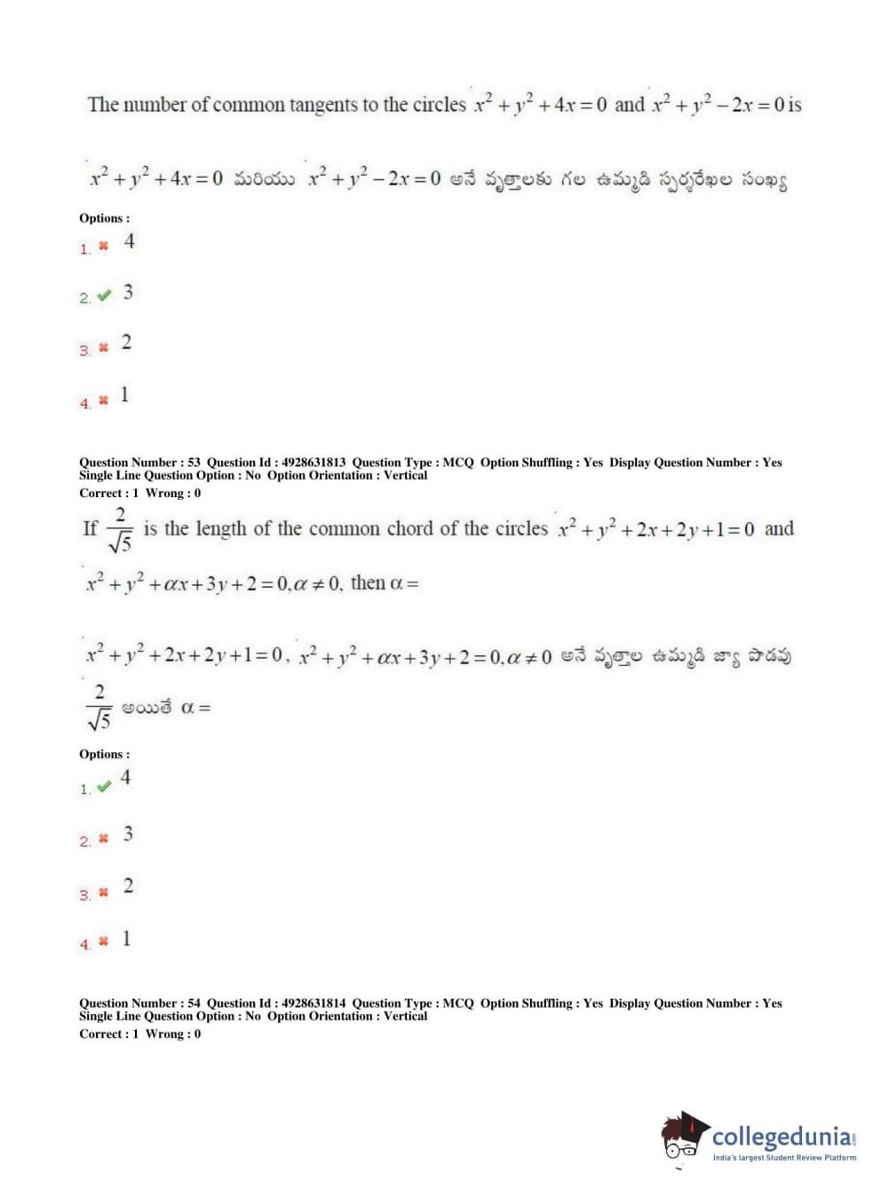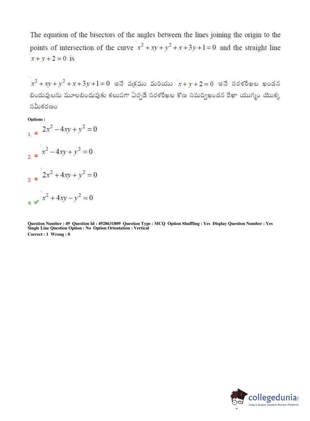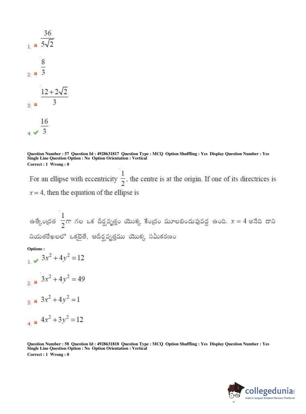 TS EAMCET 2018 Engineering Question Paper with Answer Key PDFs Afternoon Session