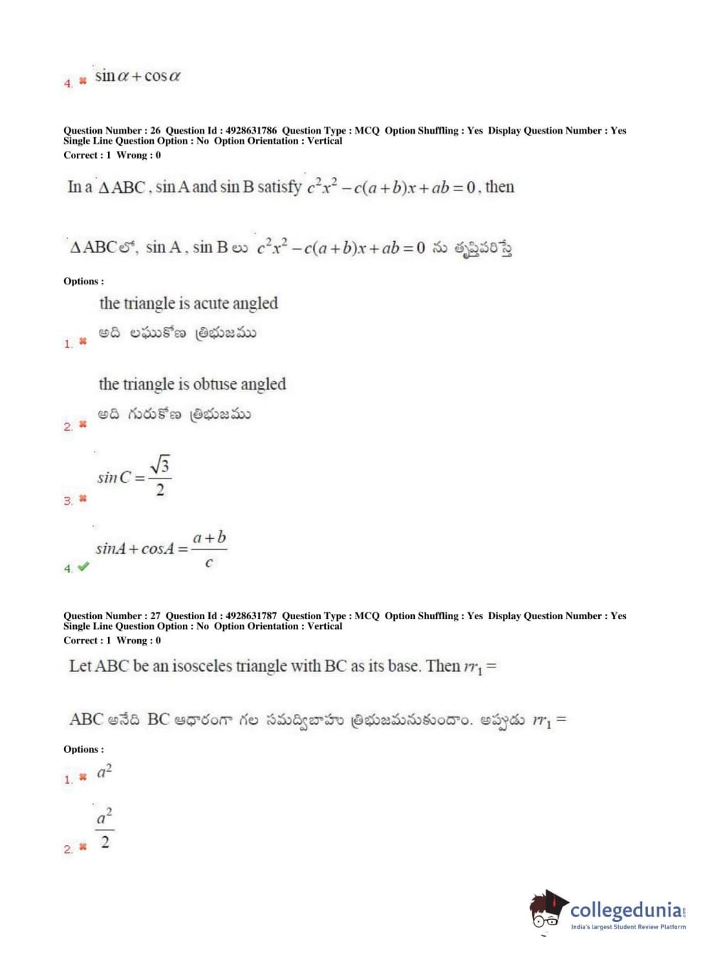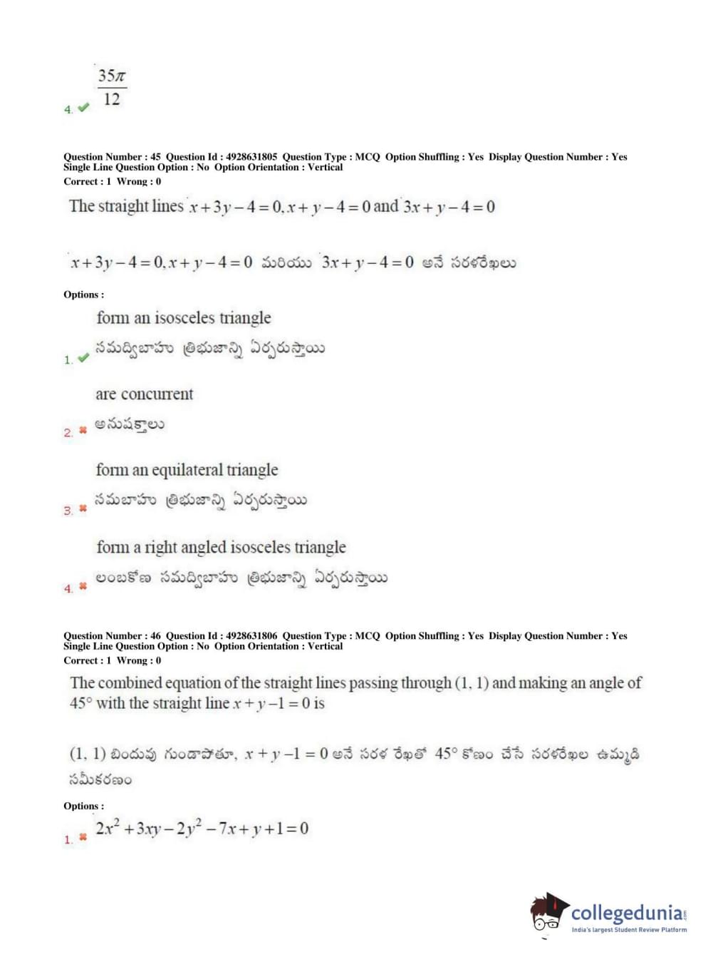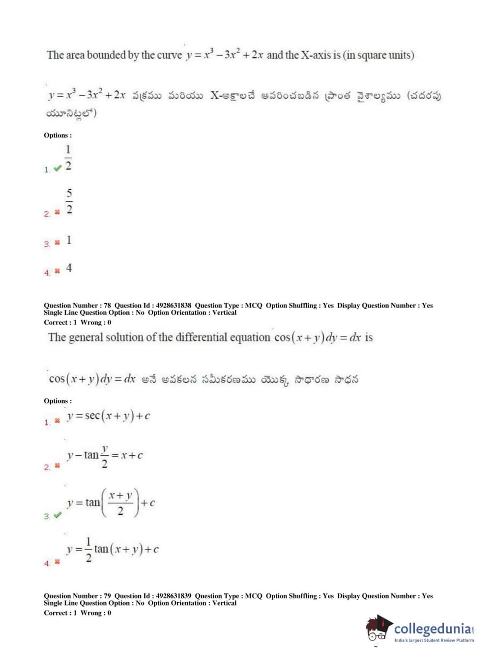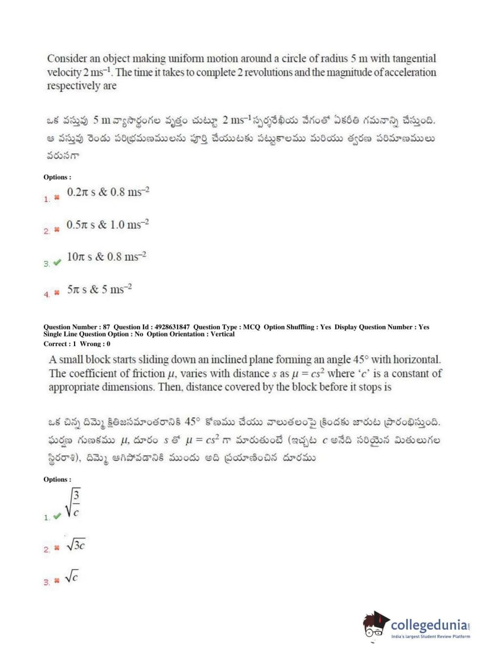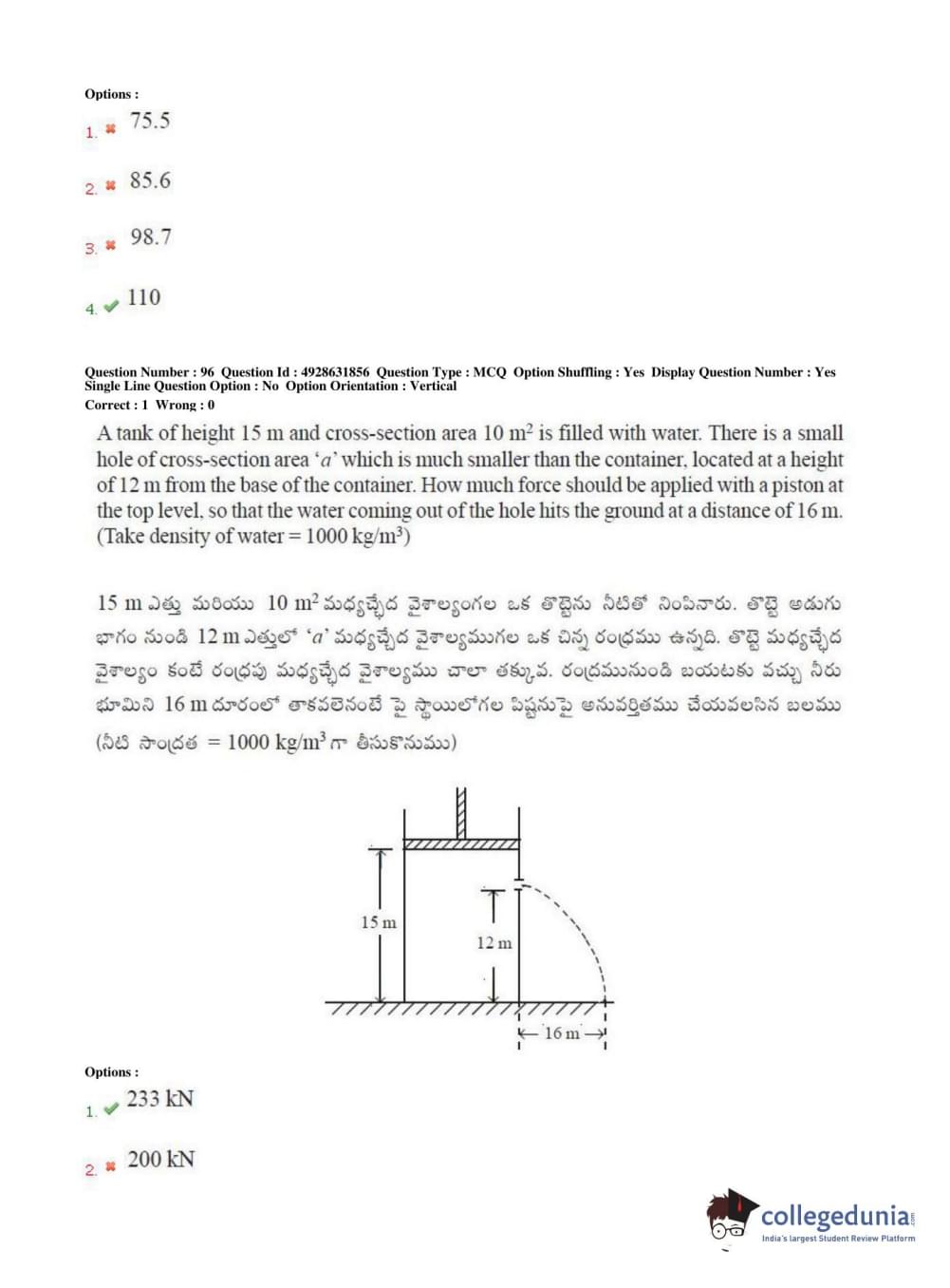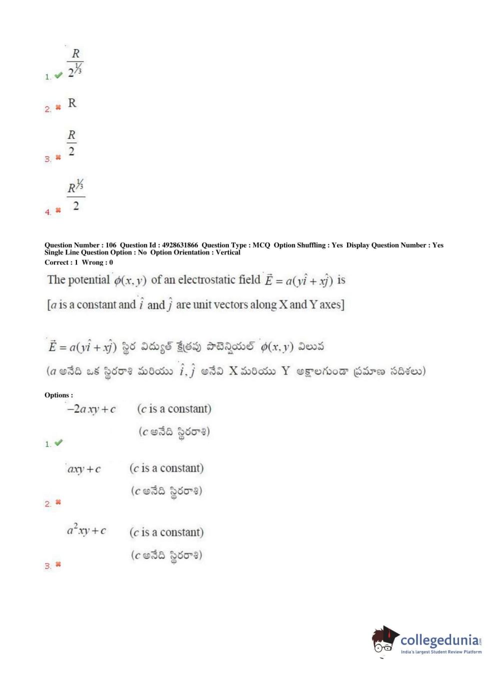 TS EAMCET 2018 Engineering Question Paper with Answer Key PDFs Afternoon Session