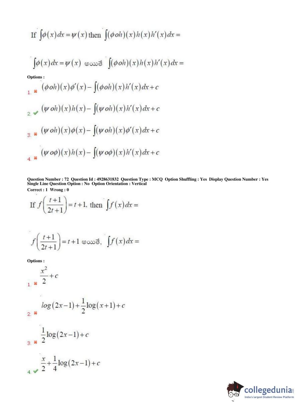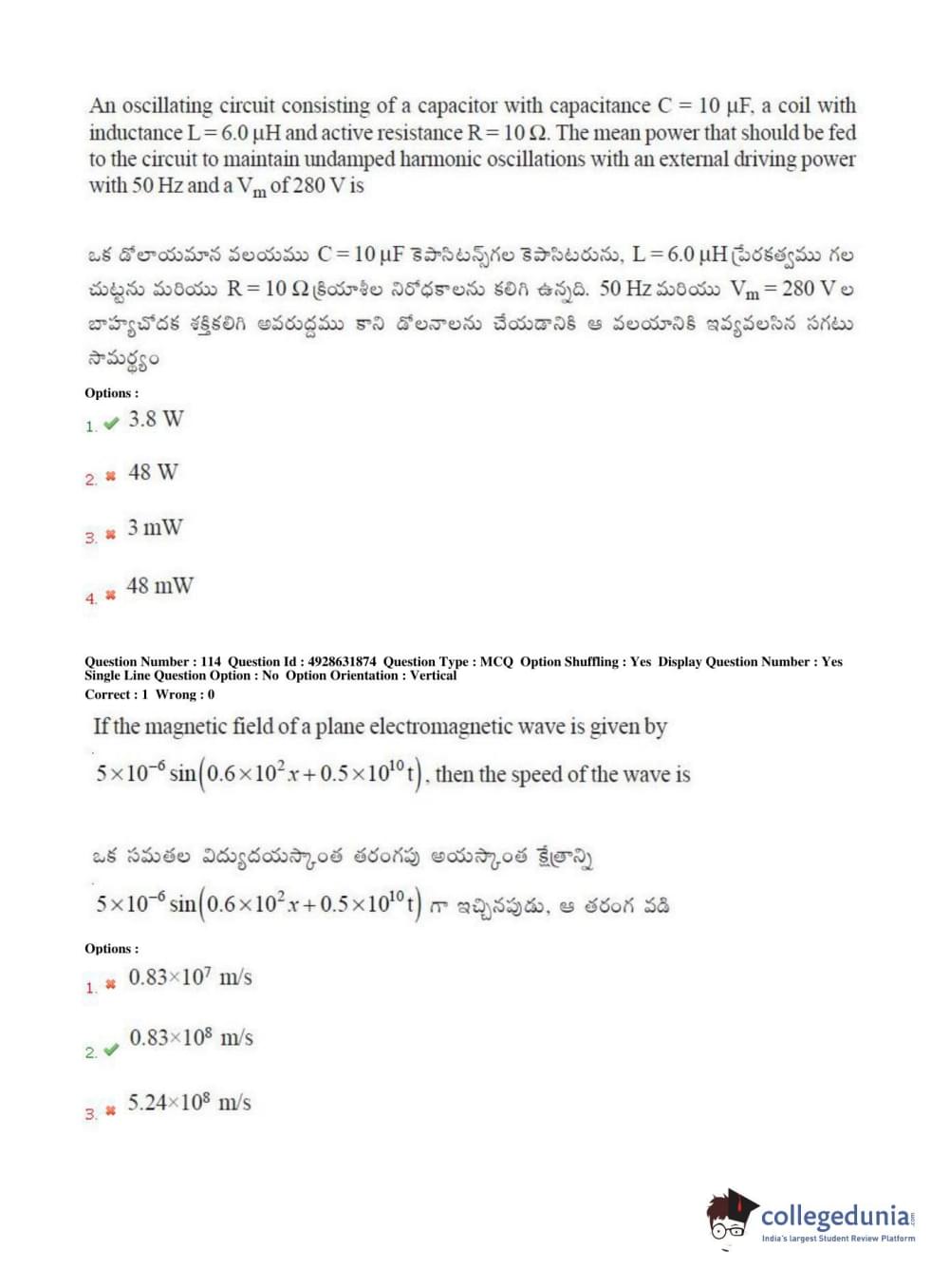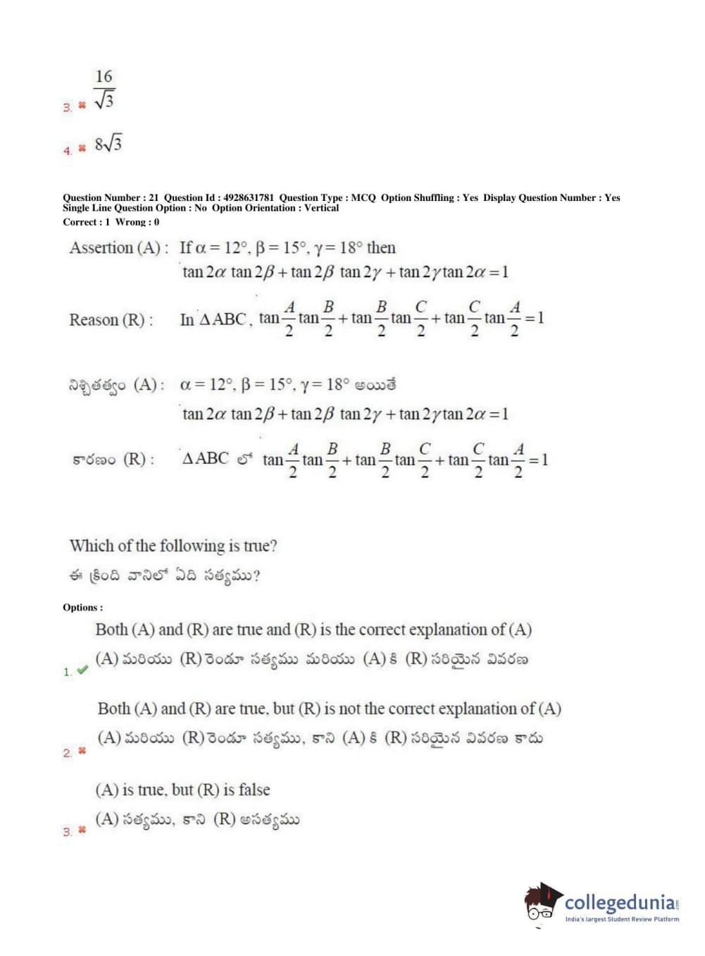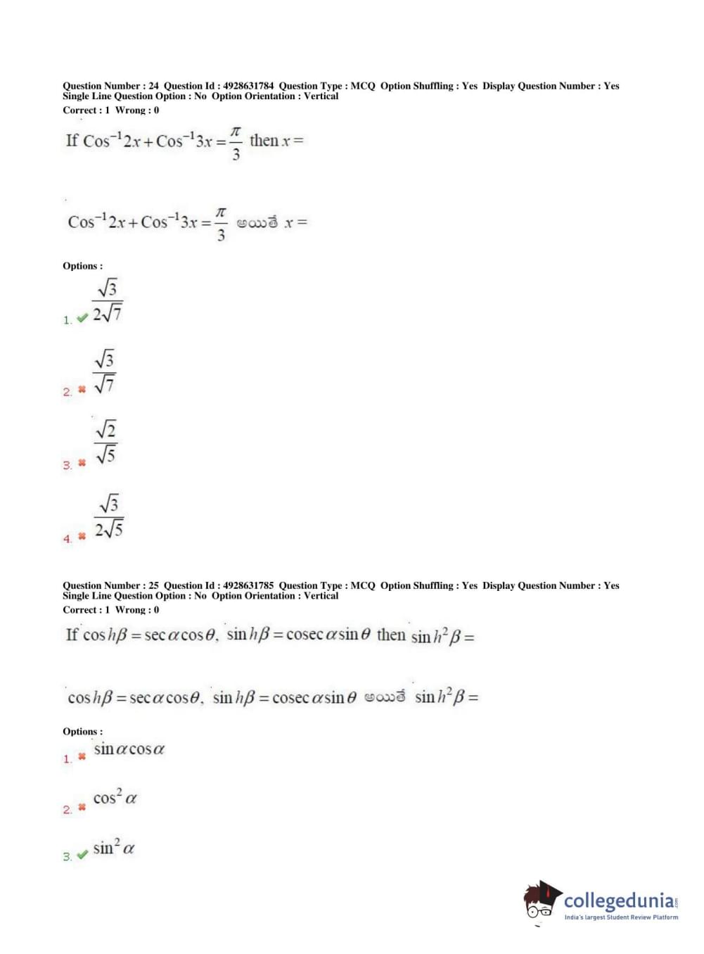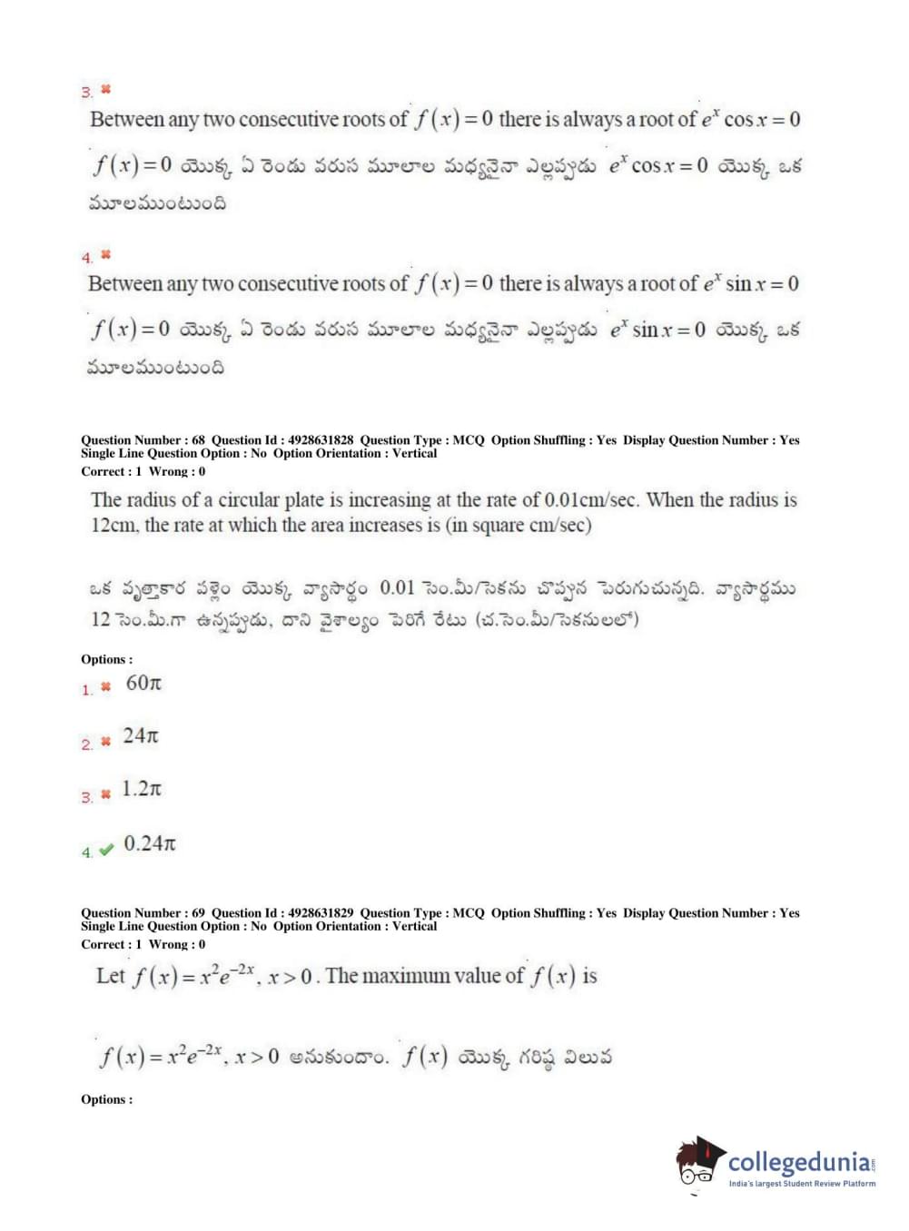 TS EAMCET 2018 Engineering Question Paper with Answer Key PDFs Afternoon Session