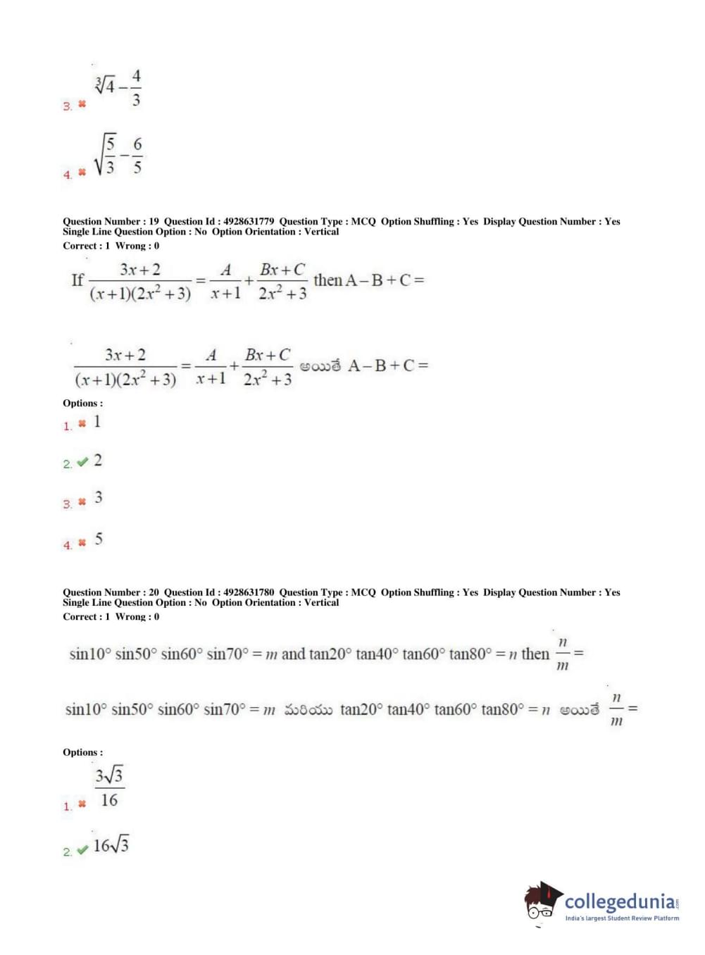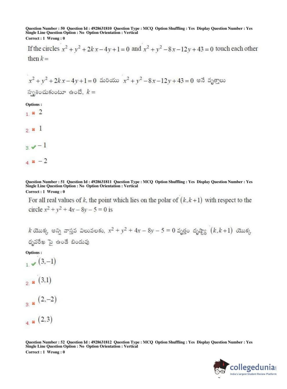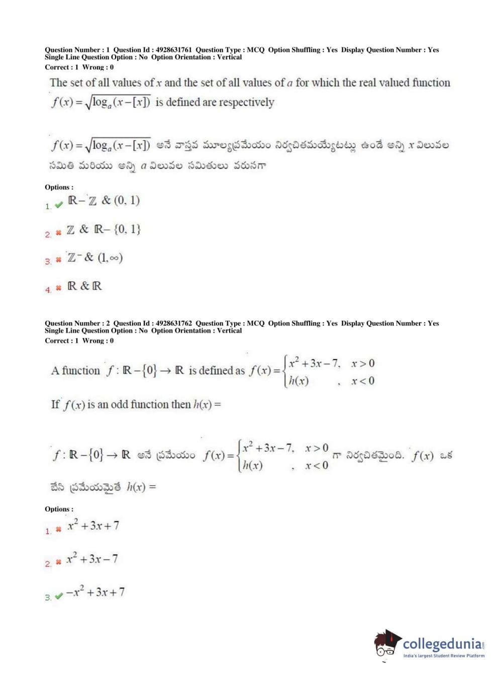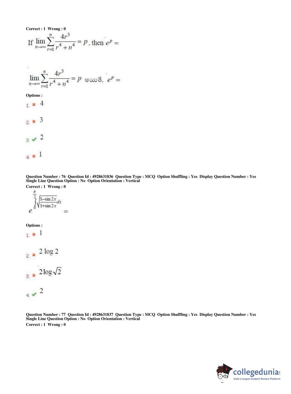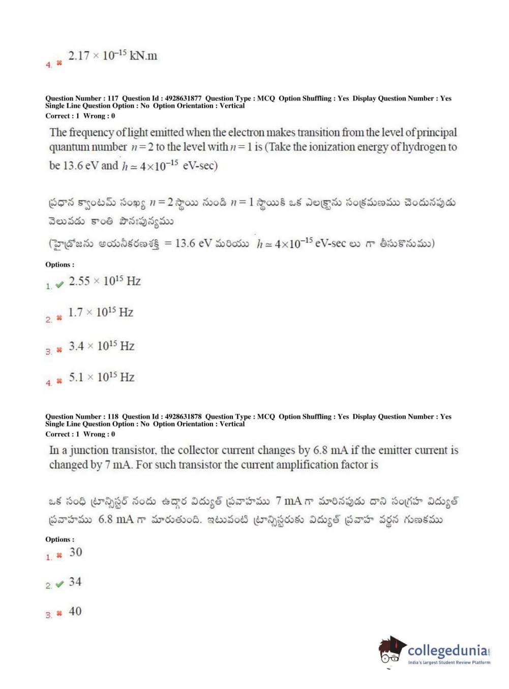 TS EAMCET 2018 Engineering Question Paper with Answer Key PDFs Afternoon Session
