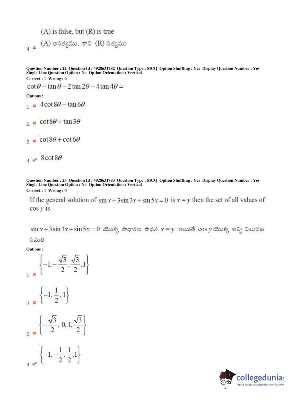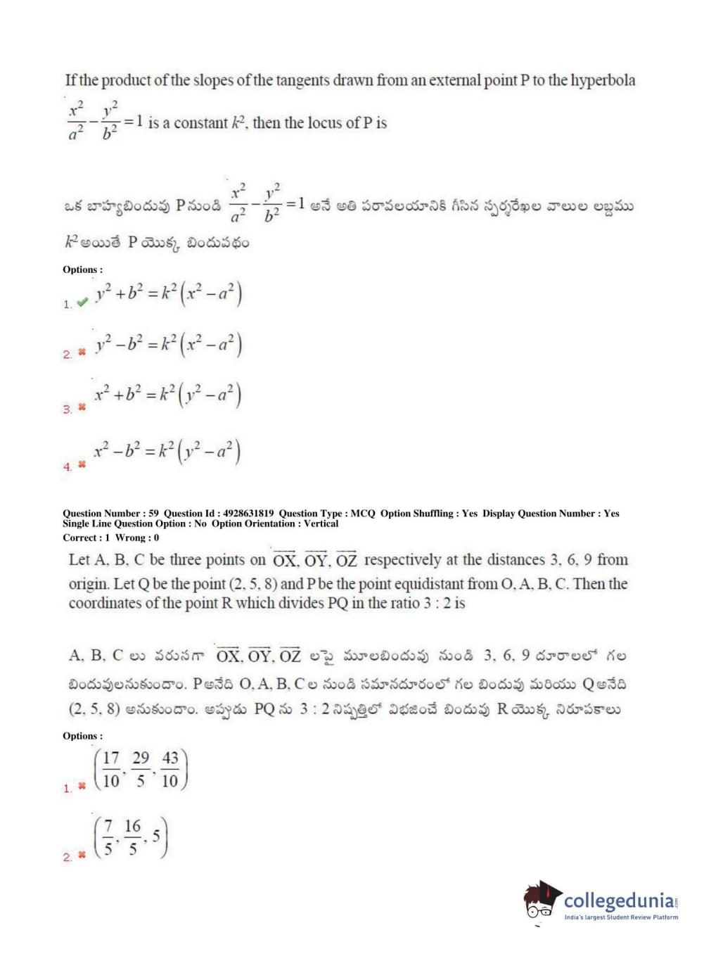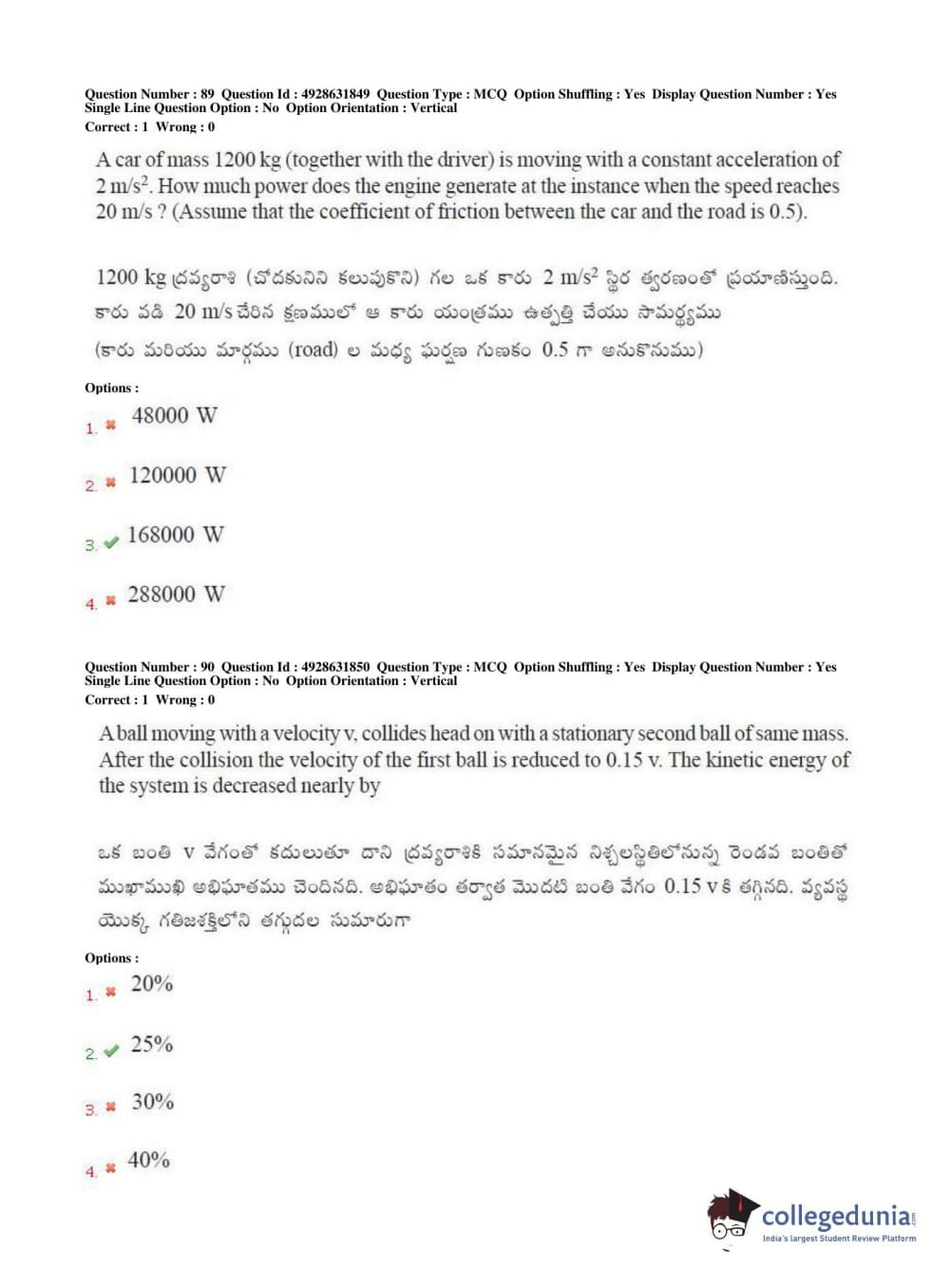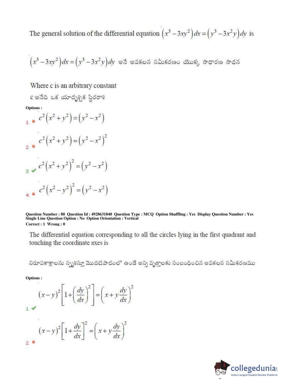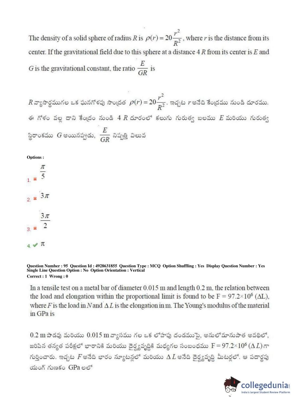TS EAMCET 2018 Engineering Question Paper with Answer Key PDFs Afternoon Session