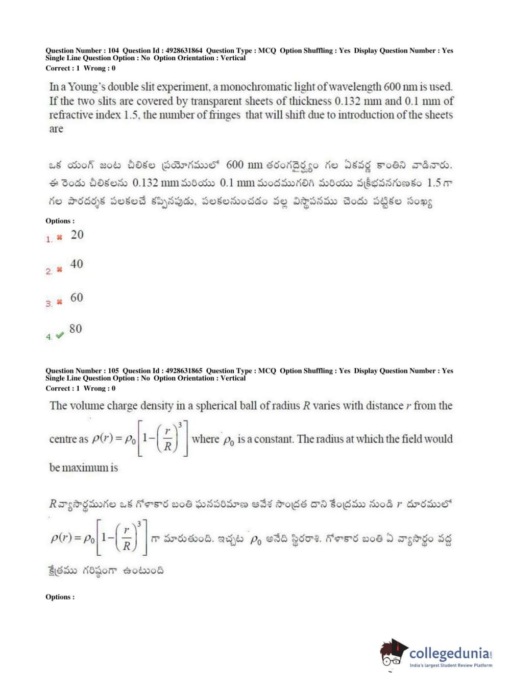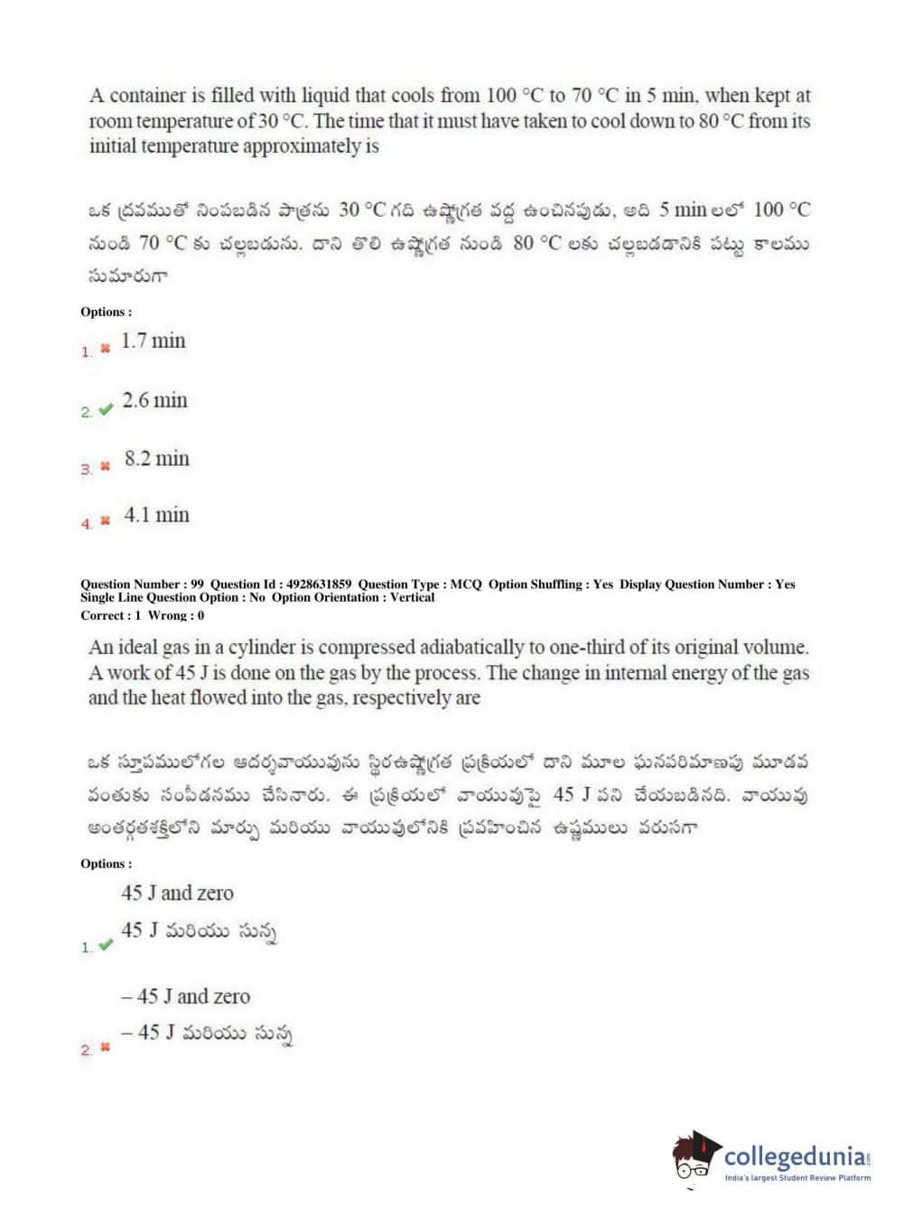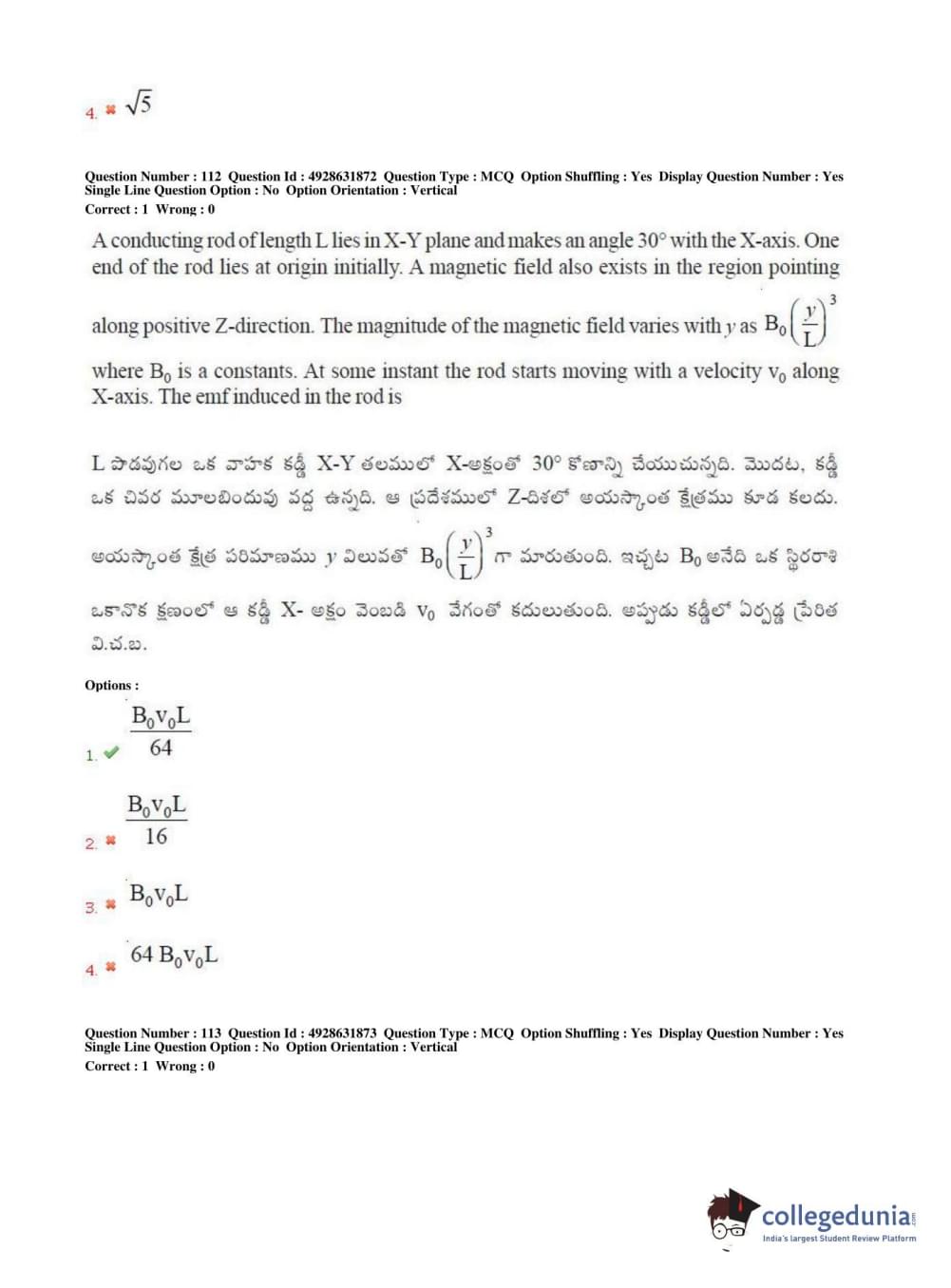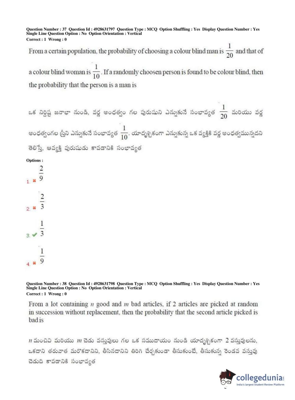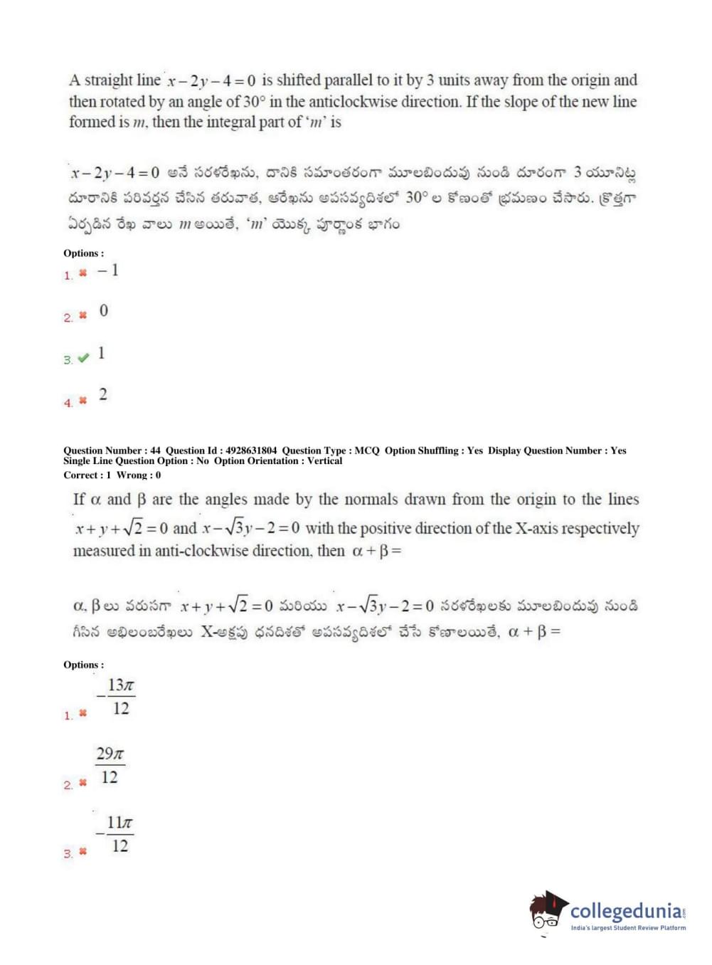 TS EAMCET 2018 Engineering Question Paper with Answer Key PDFs Afternoon Session