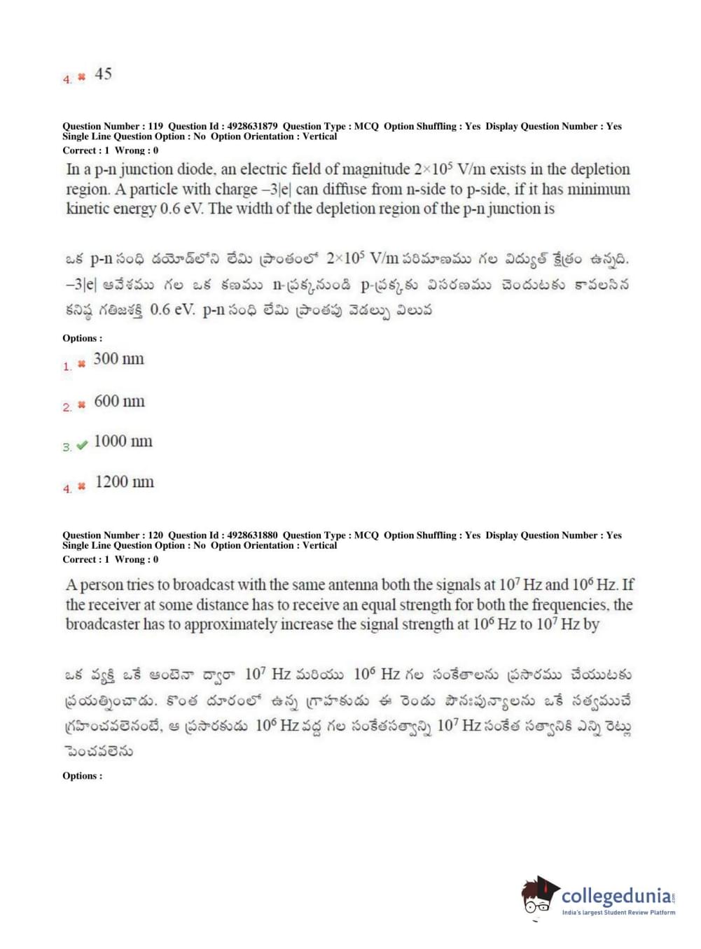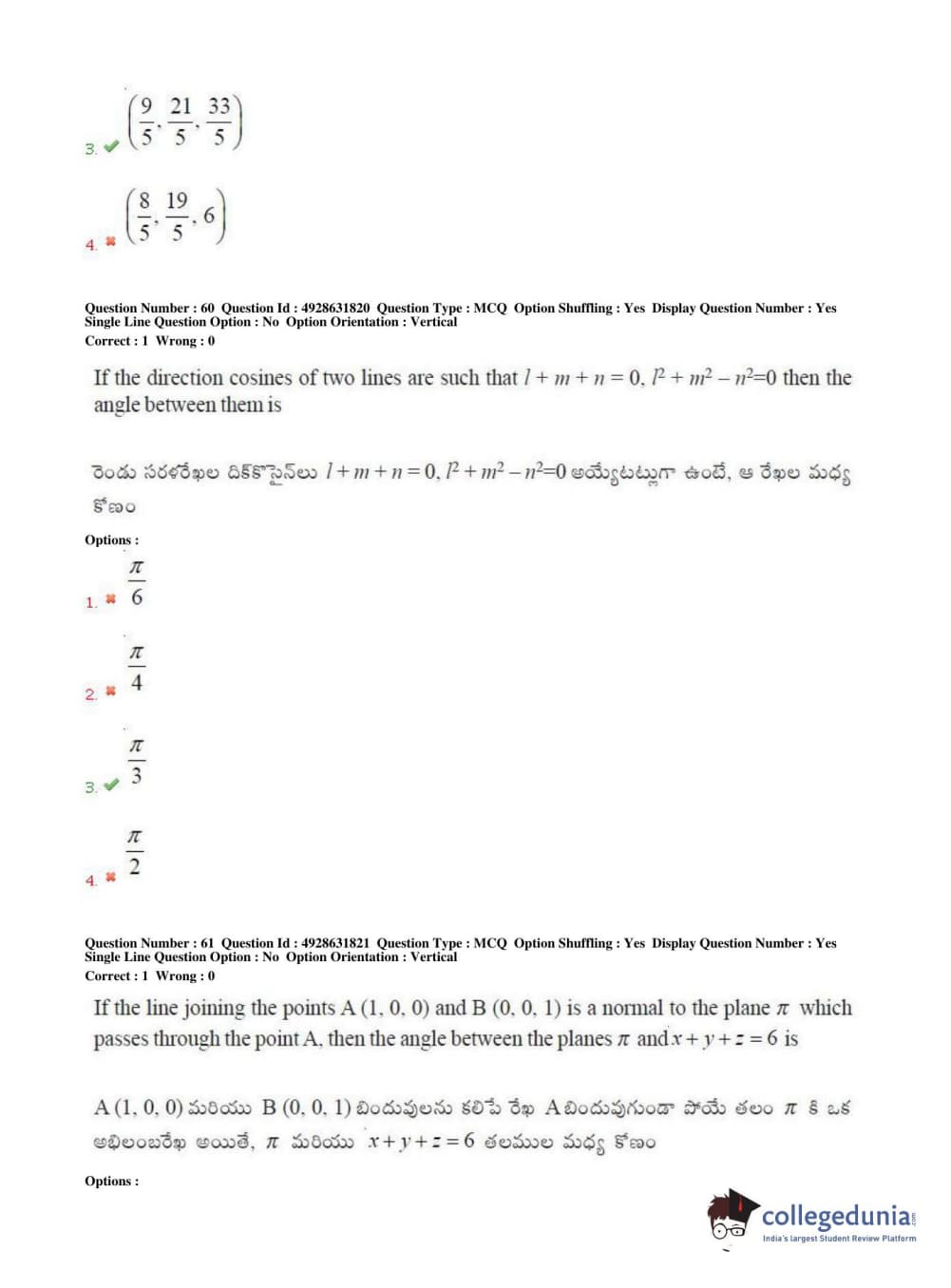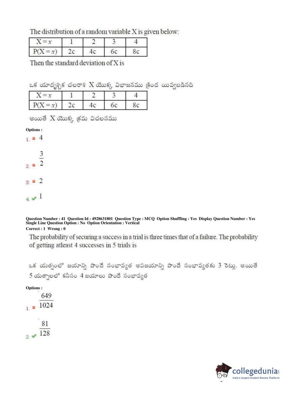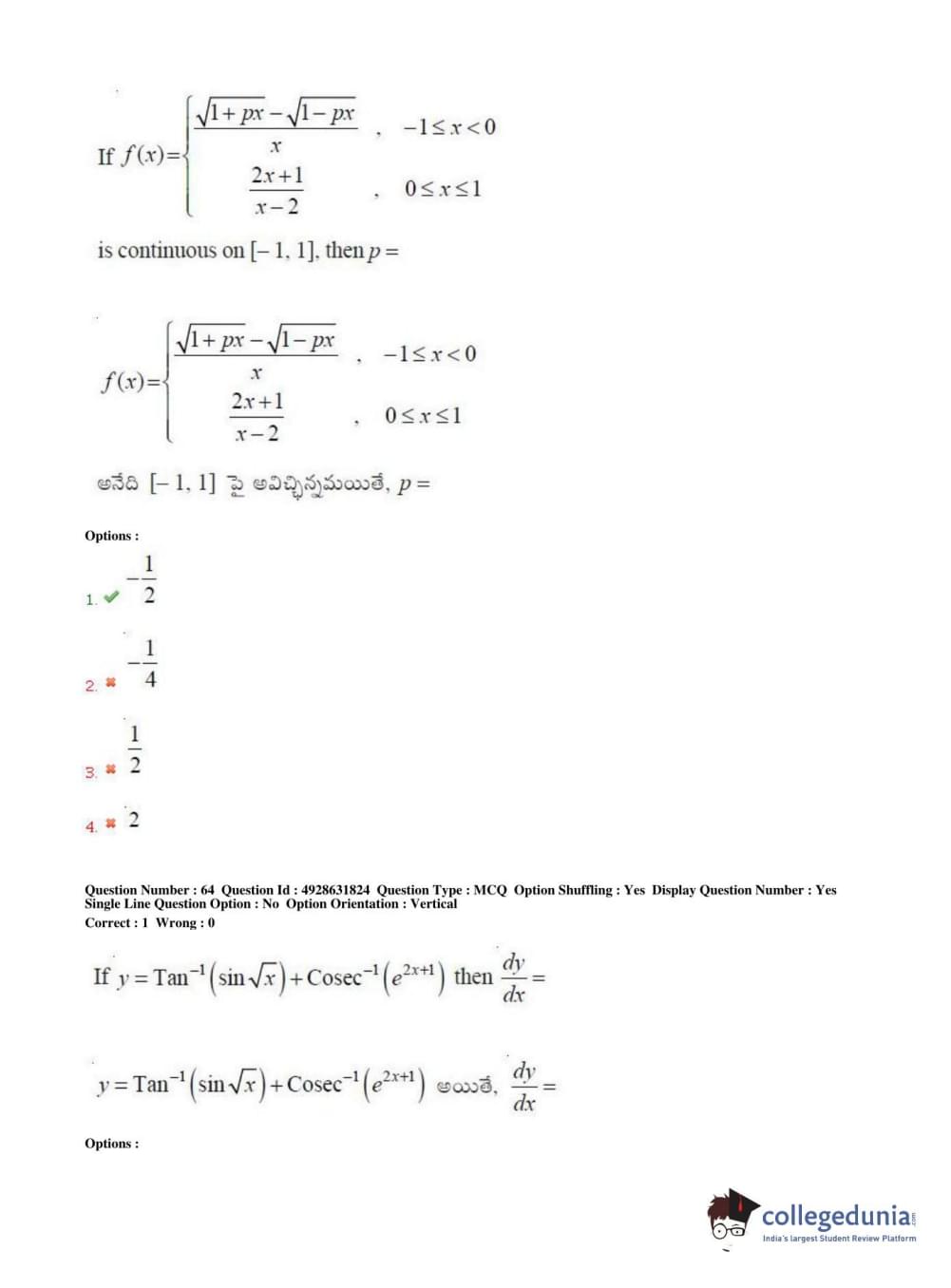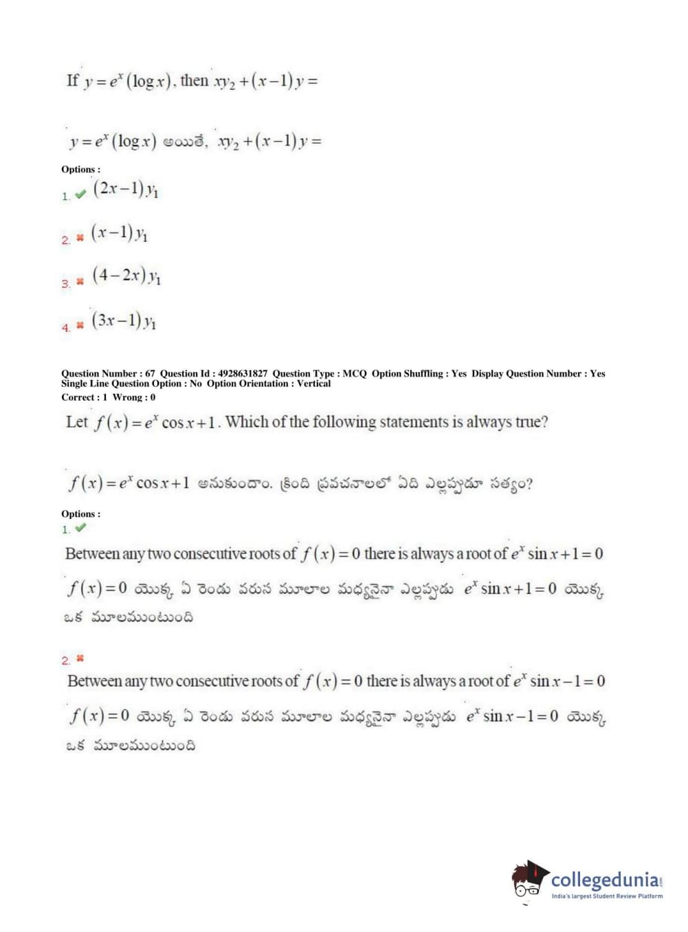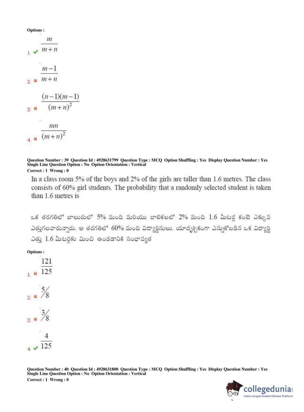 TS EAMCET 2018 Engineering Question Paper with Answer Key PDFs Afternoon Session