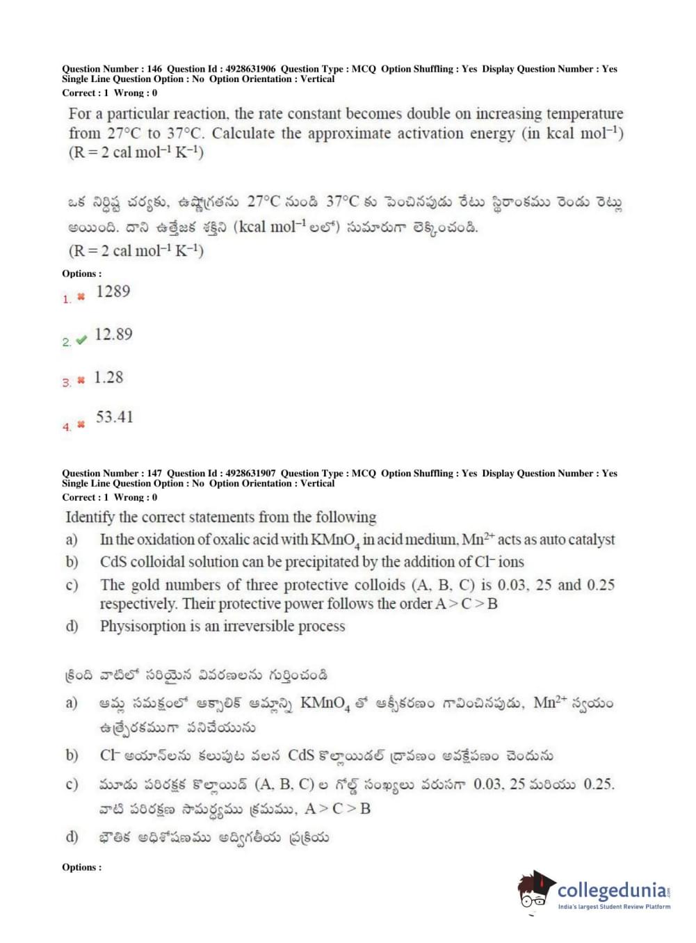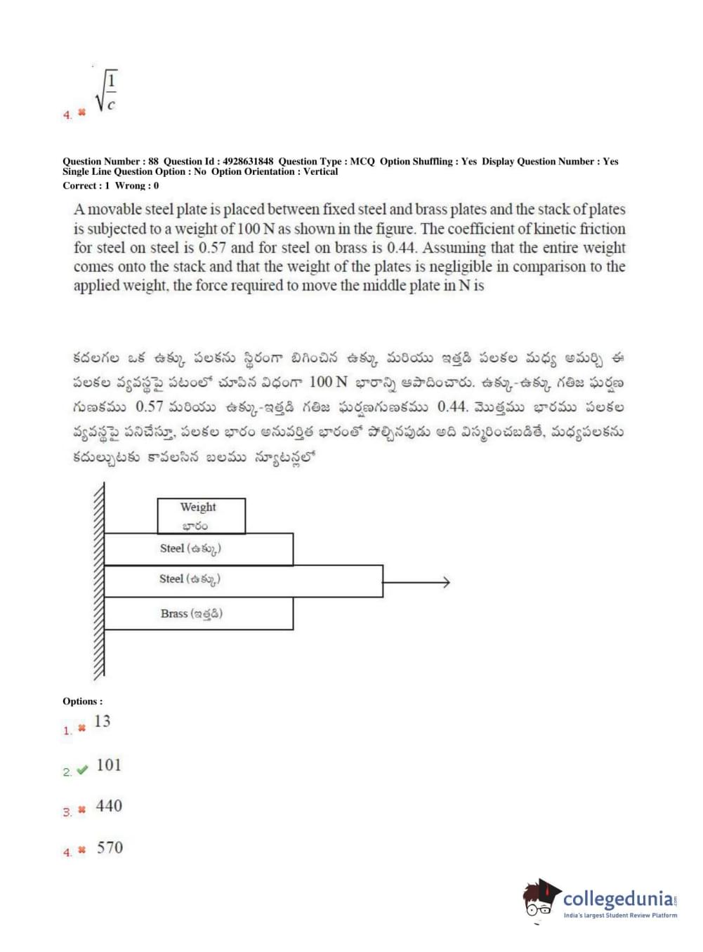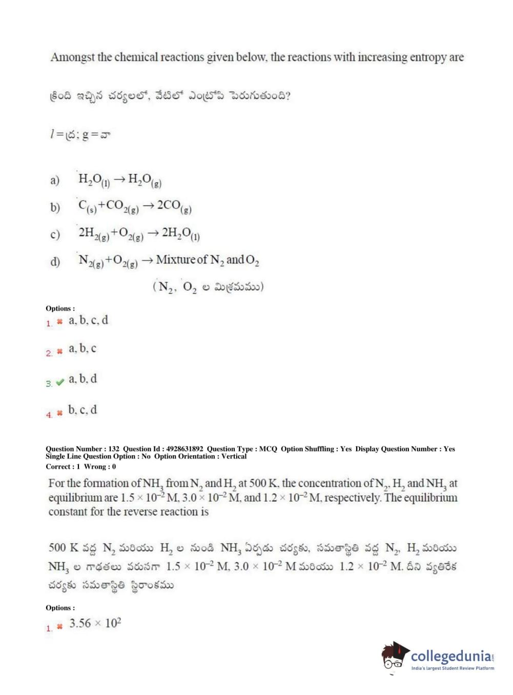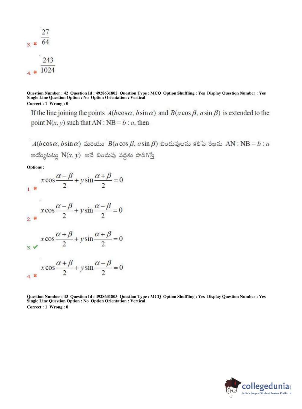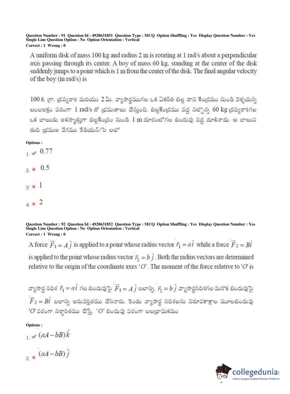 TS EAMCET 2018 Engineering Question Paper with Answer Key PDFs Afternoon Session
