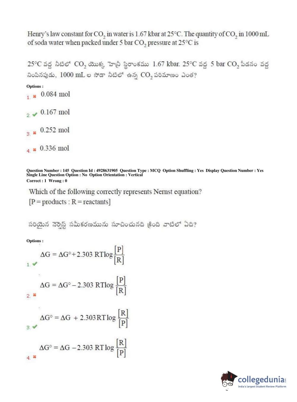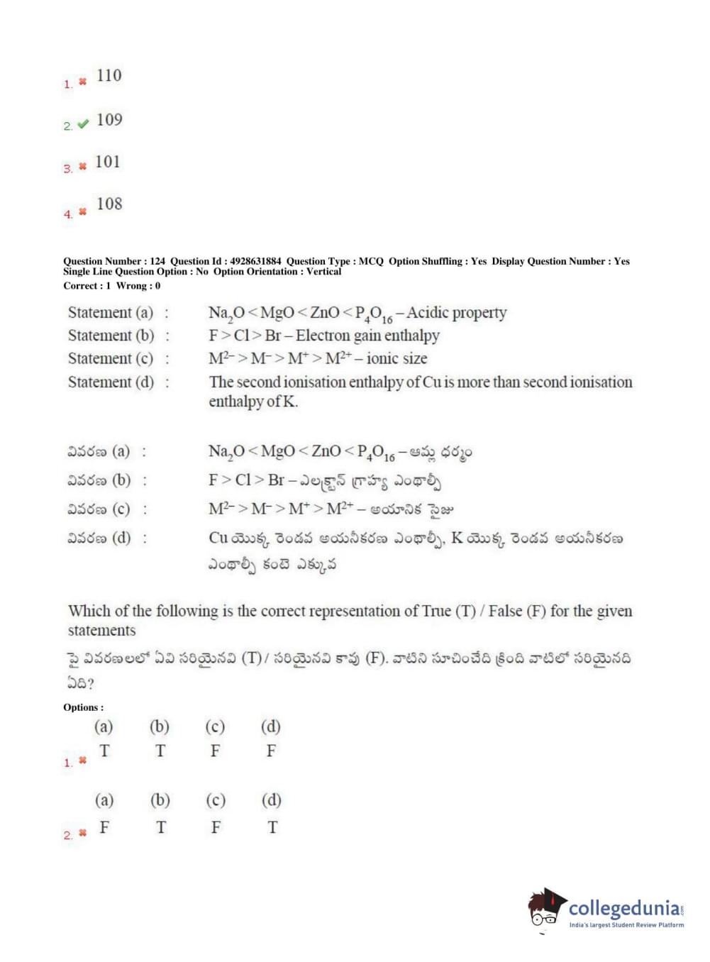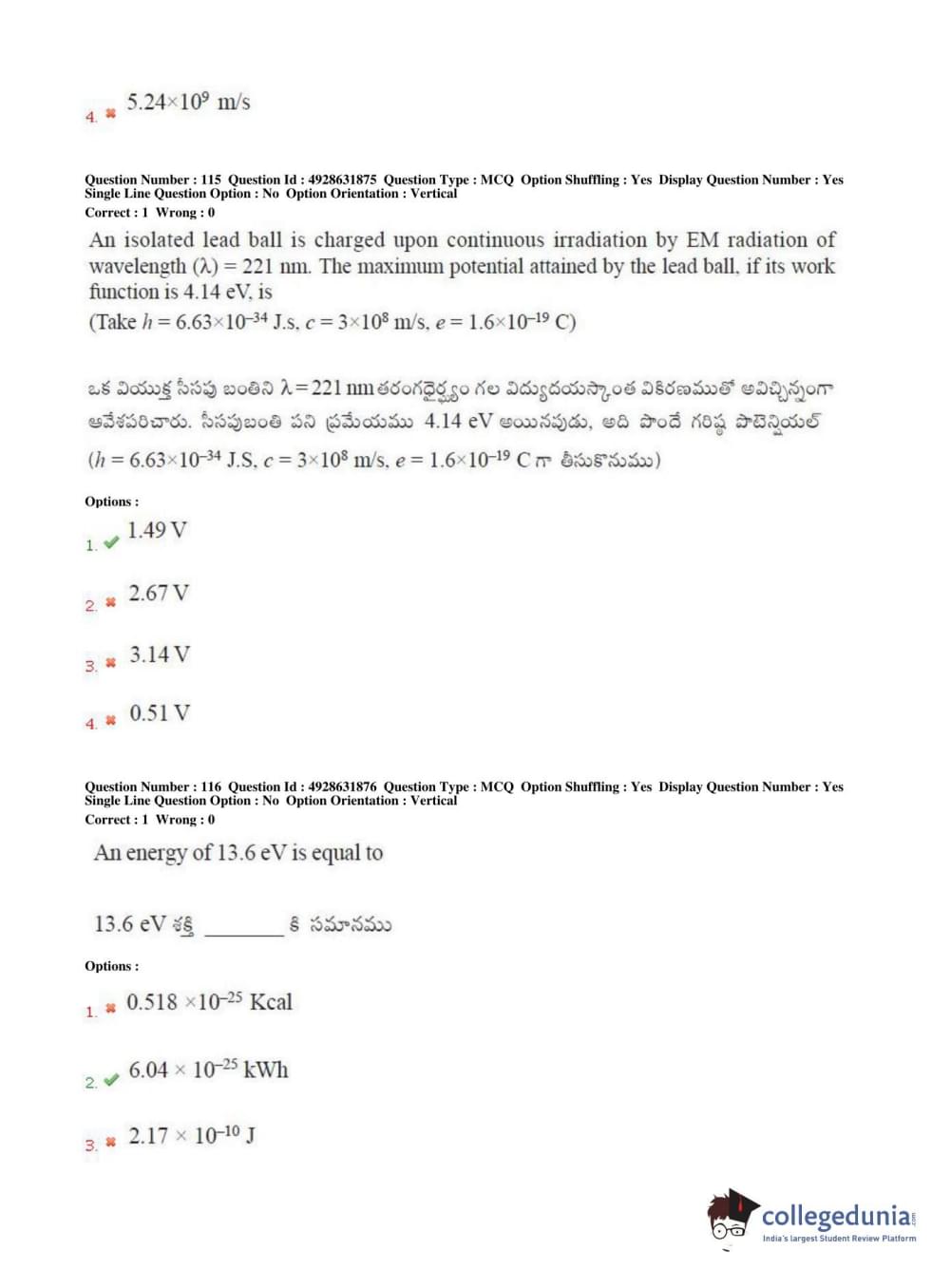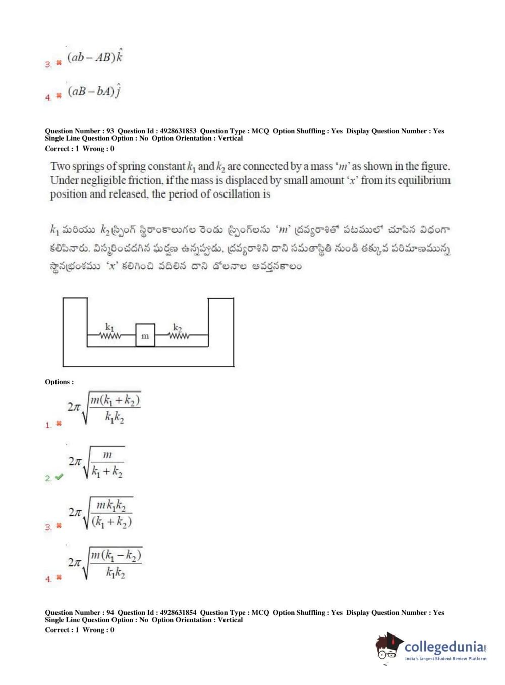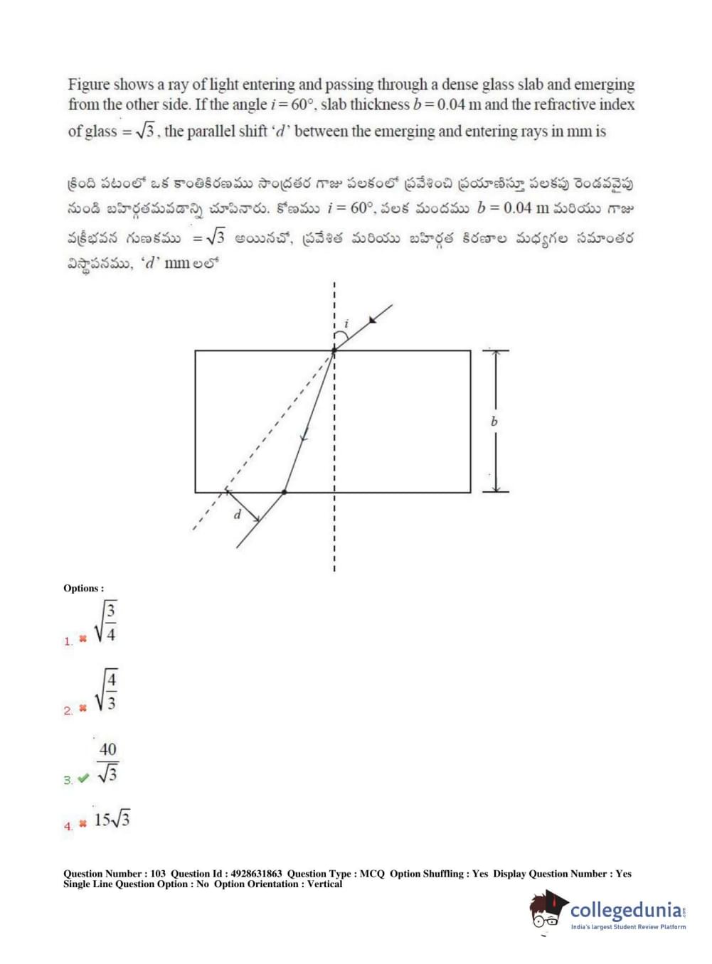 TS EAMCET 2018 Engineering Question Paper with Answer Key PDFs Afternoon Session