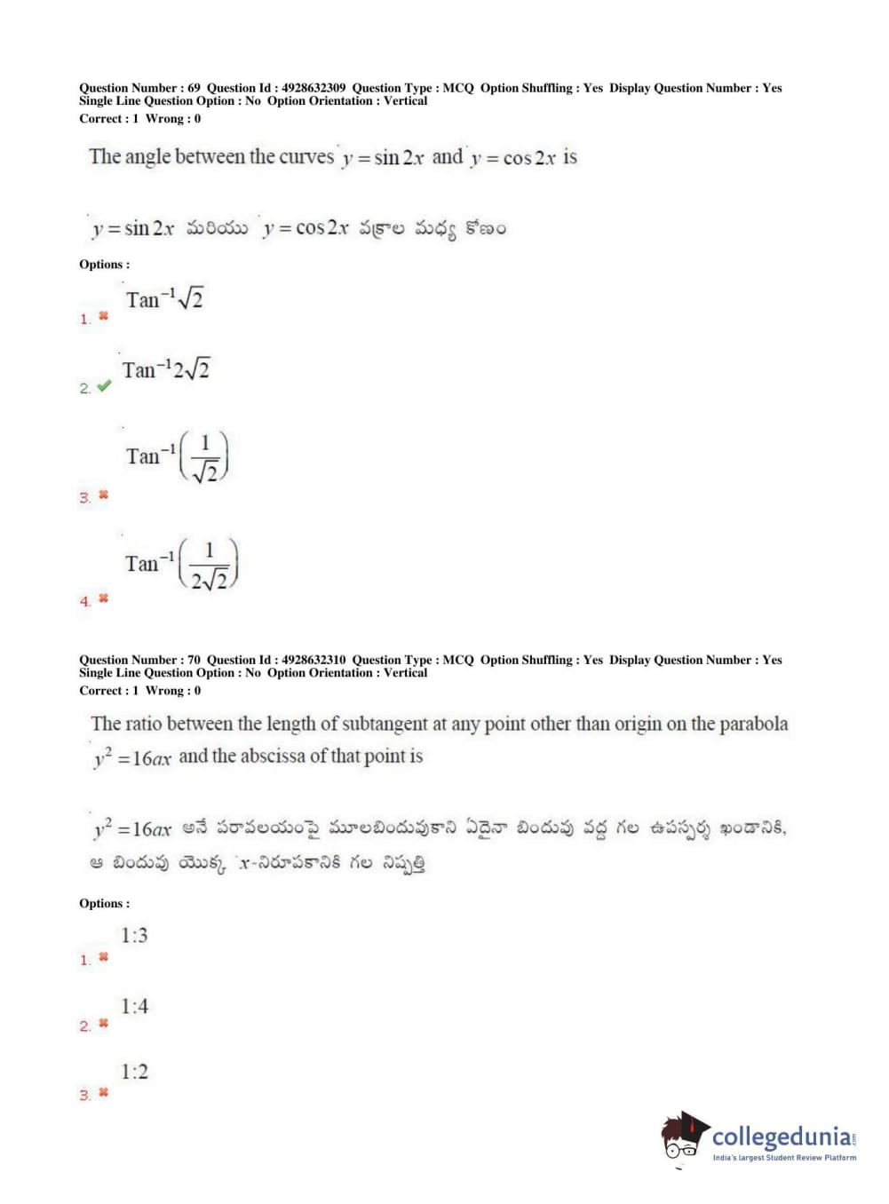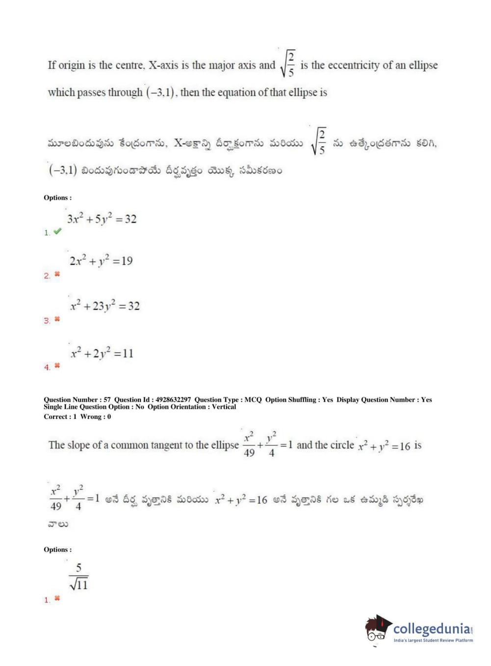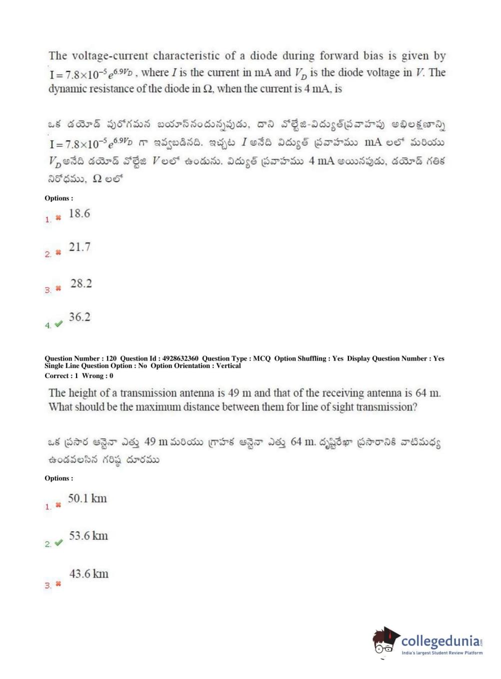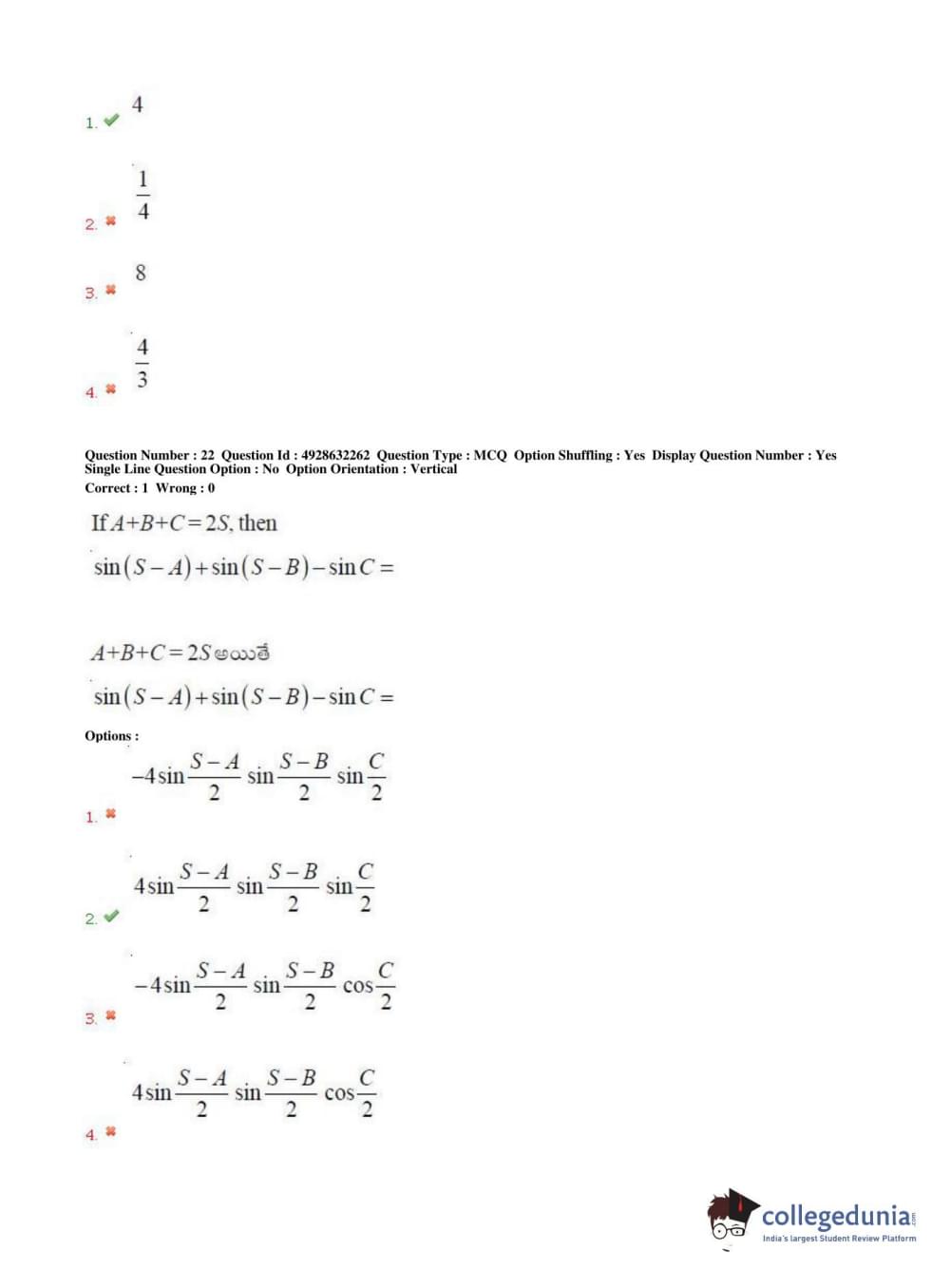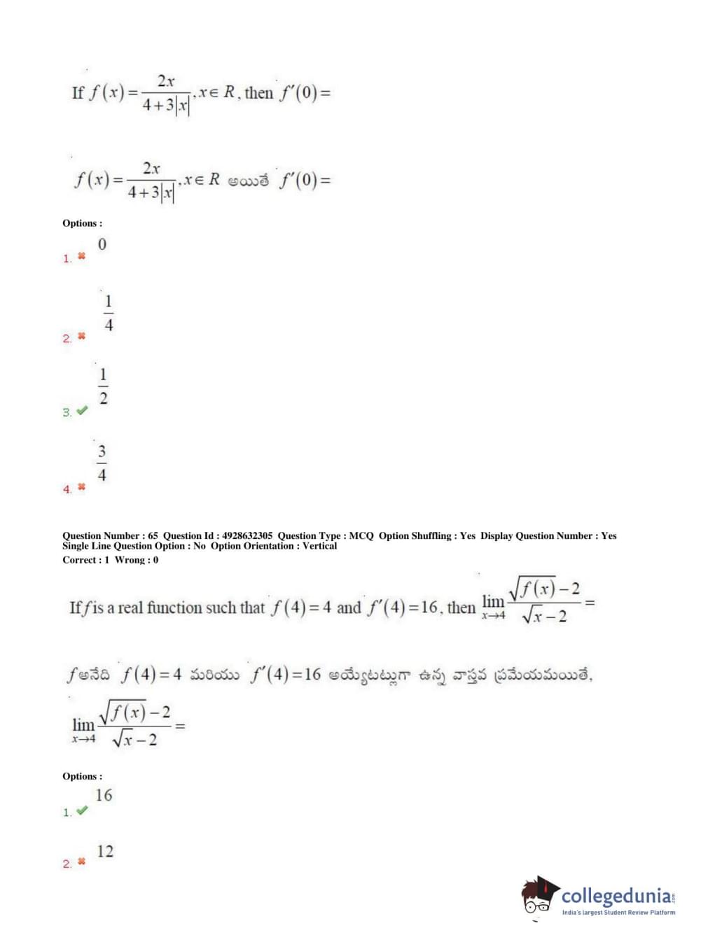 TS EAMCET 2018 Engineering Question Paper with Answer Key PDFs Afternoon Session