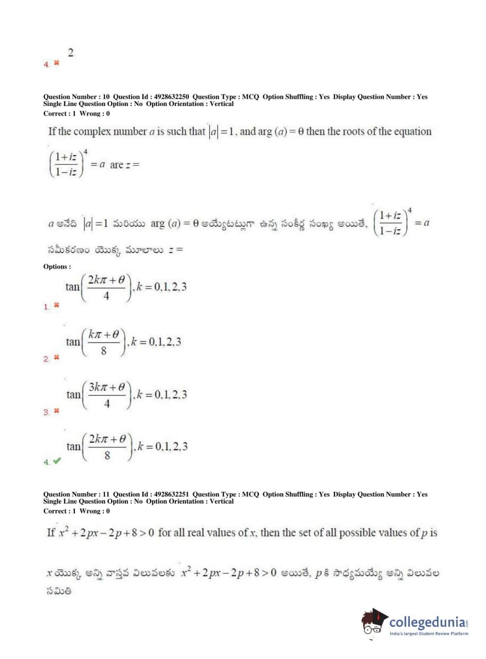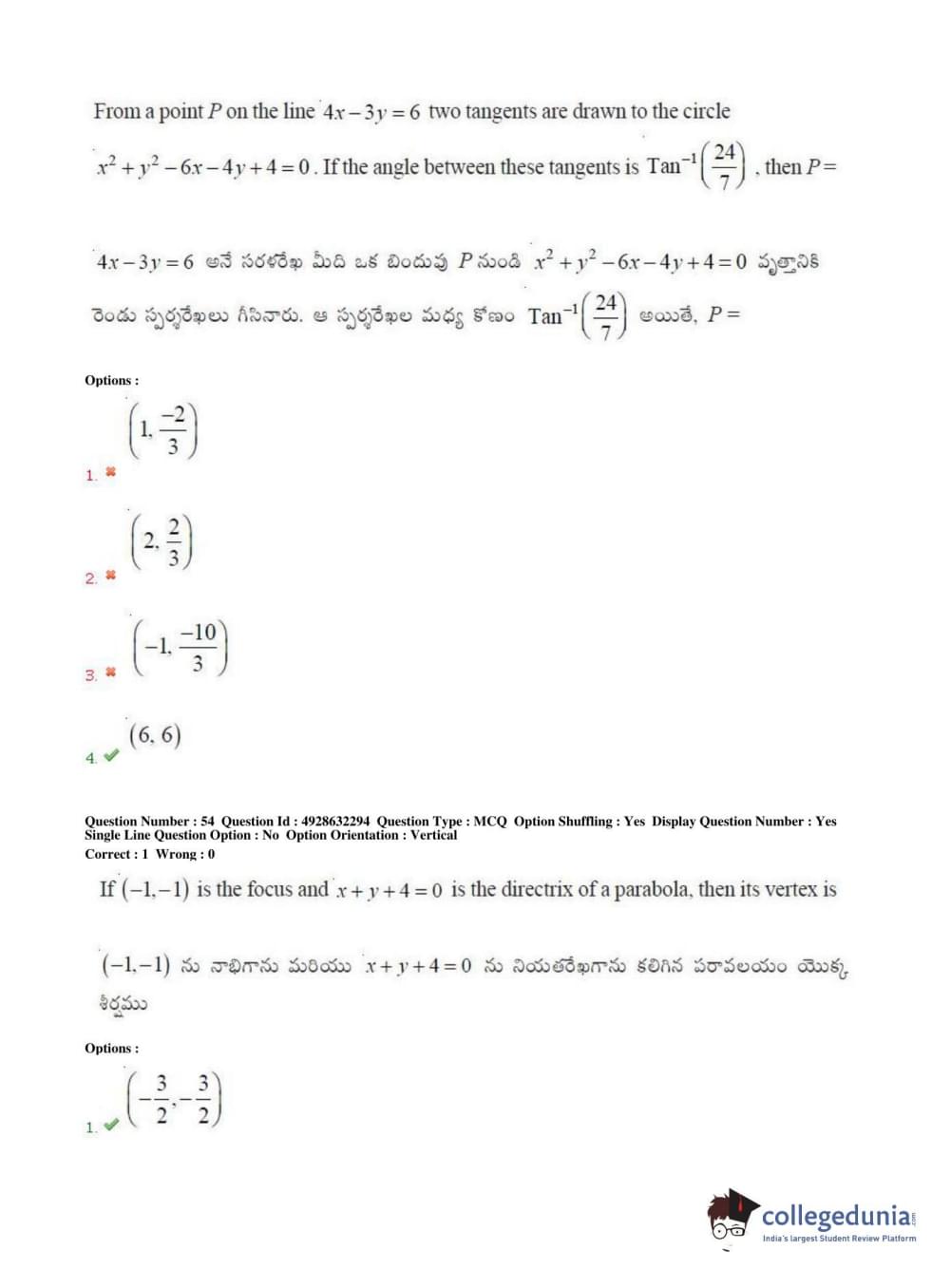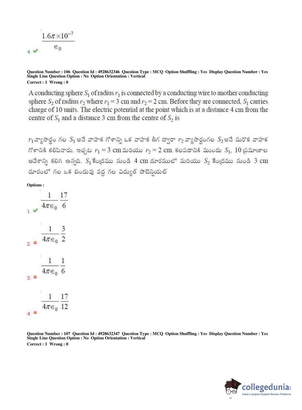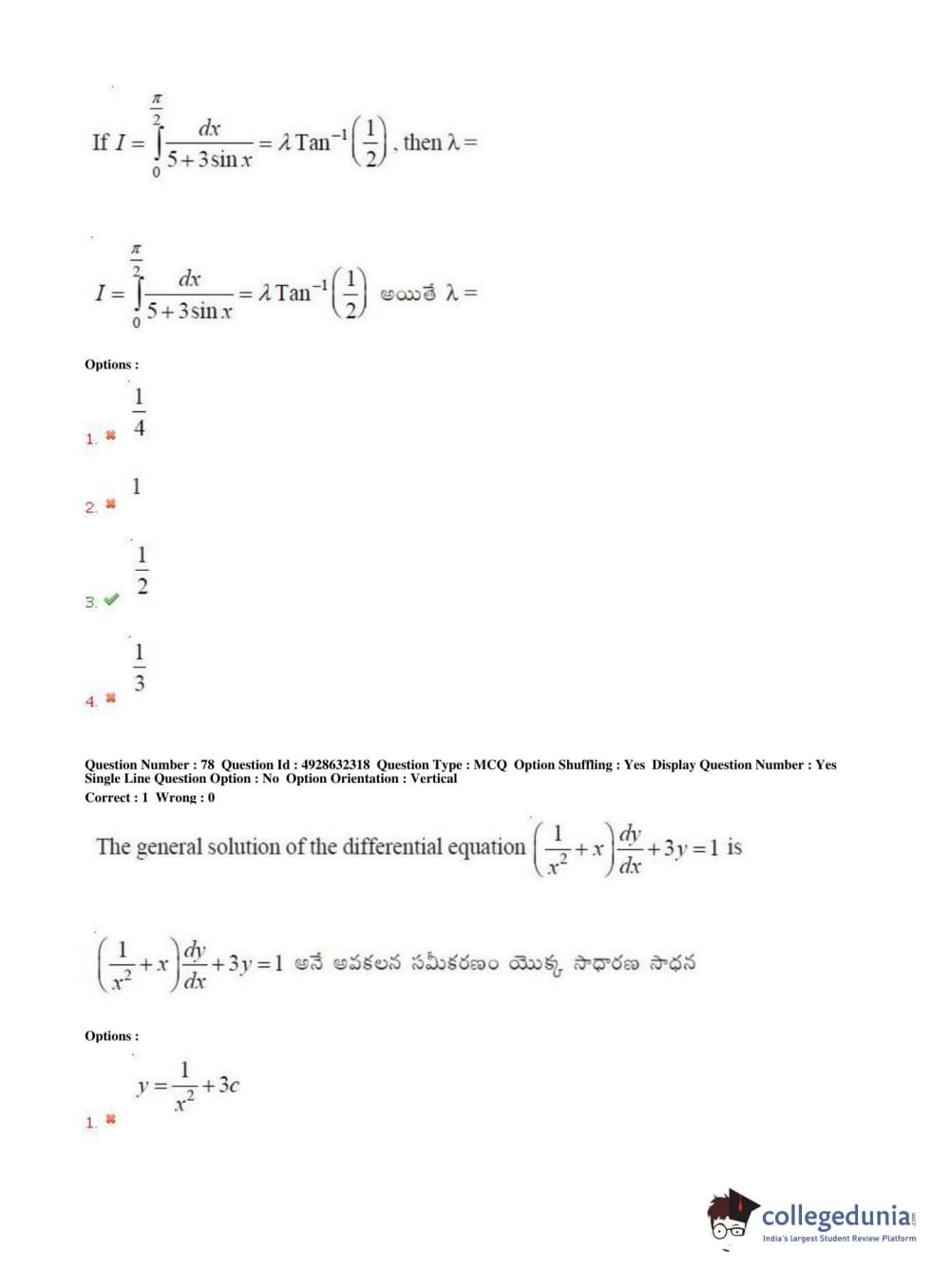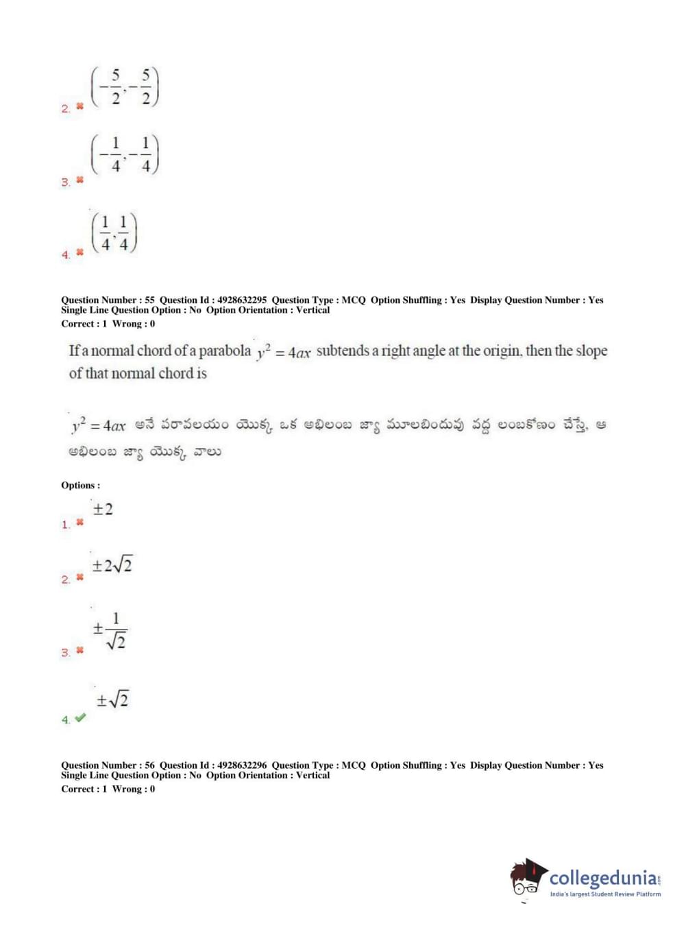 TS EAMCET 2018 Engineering Question Paper with Answer Key PDFs Afternoon Session