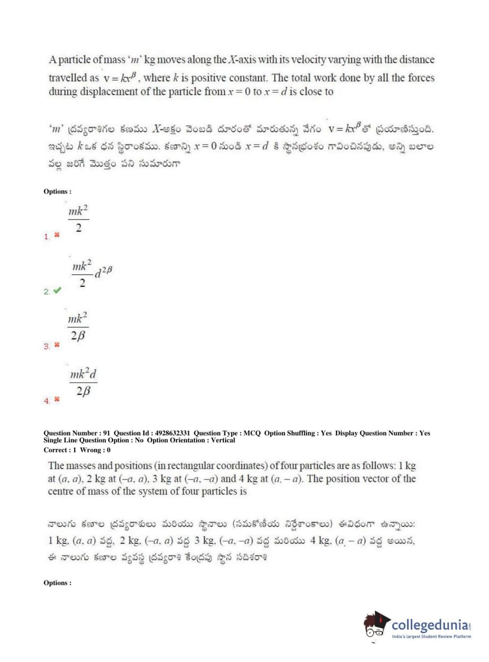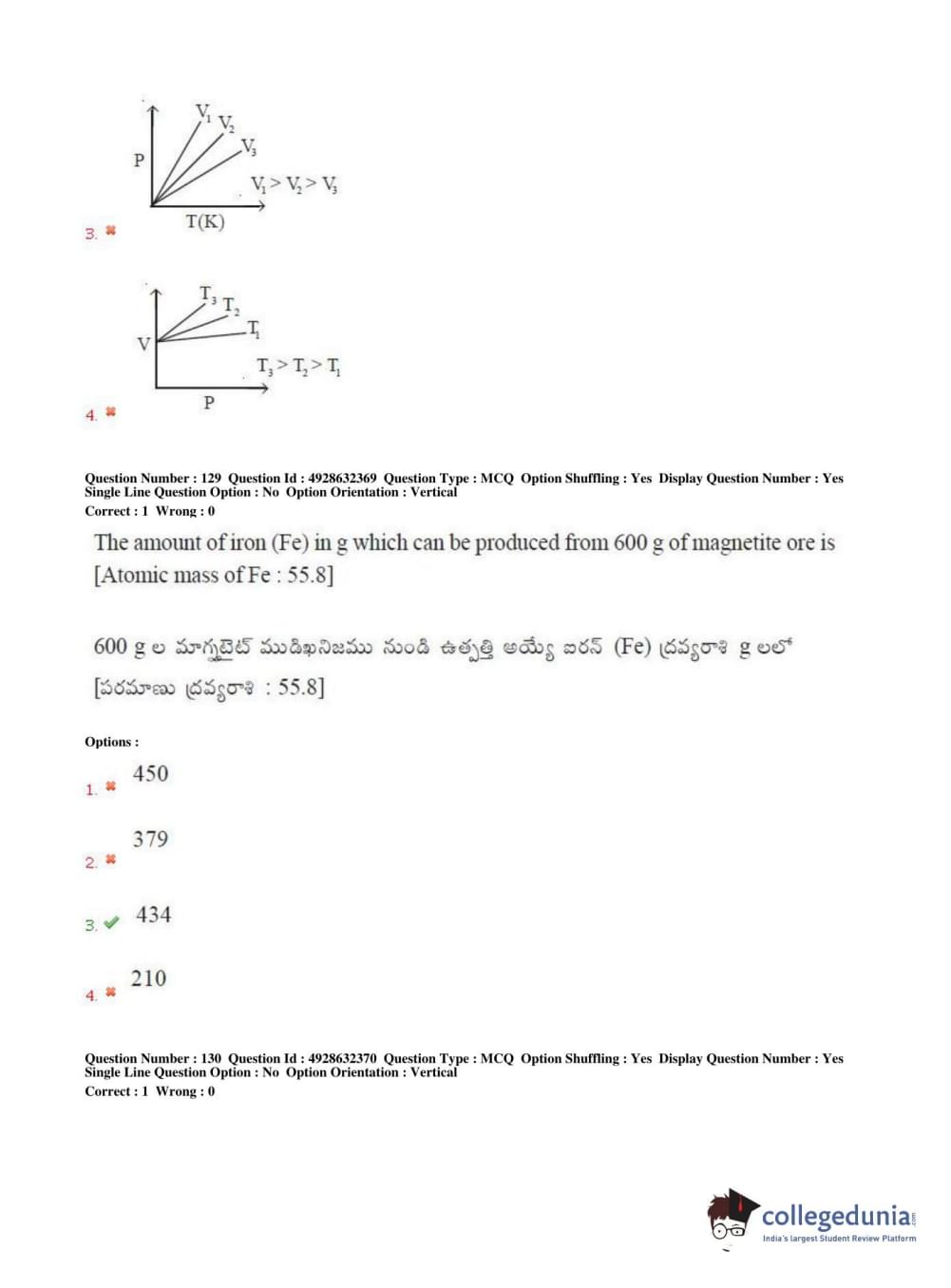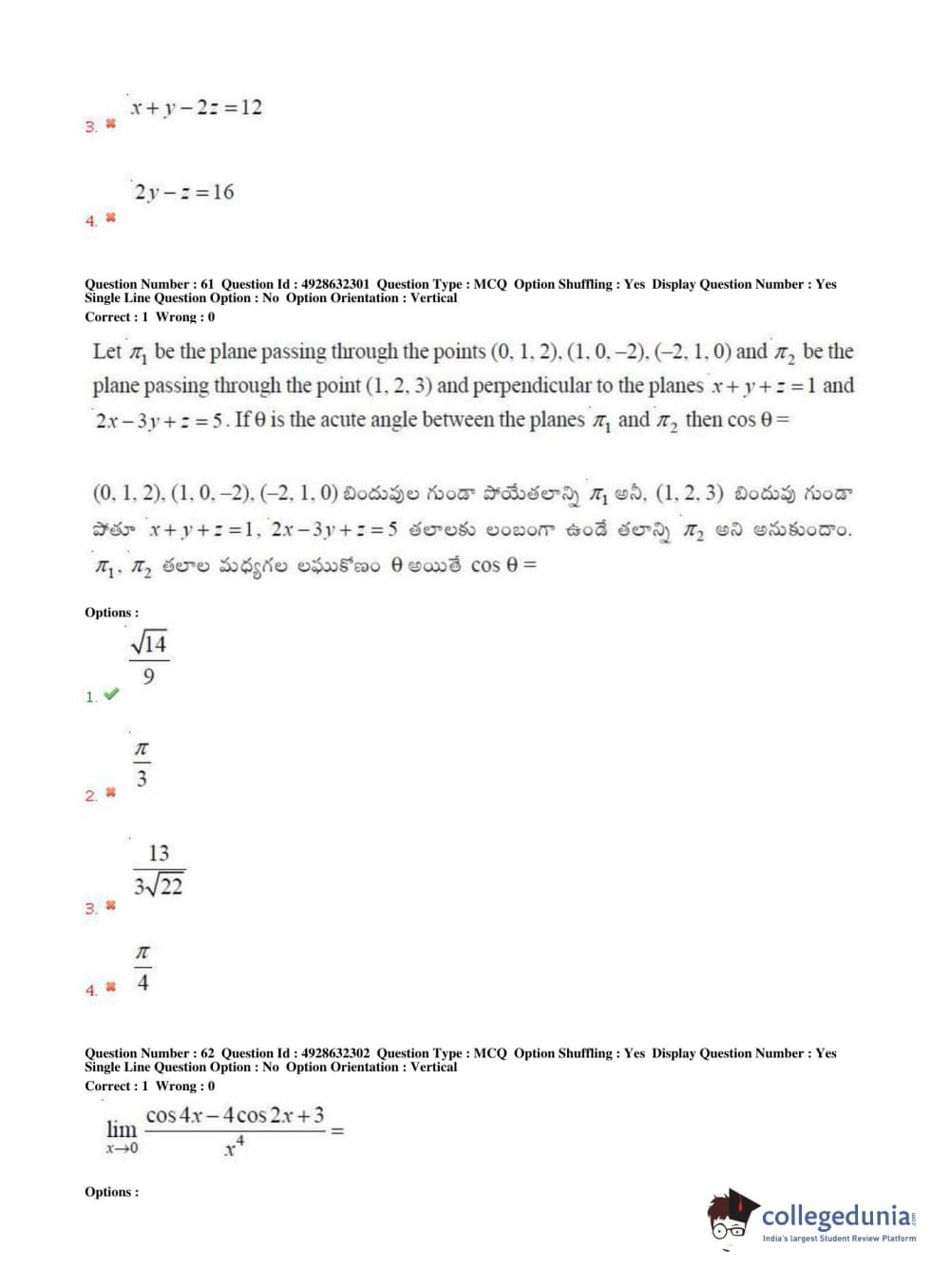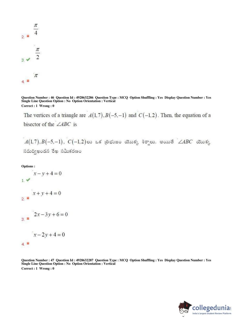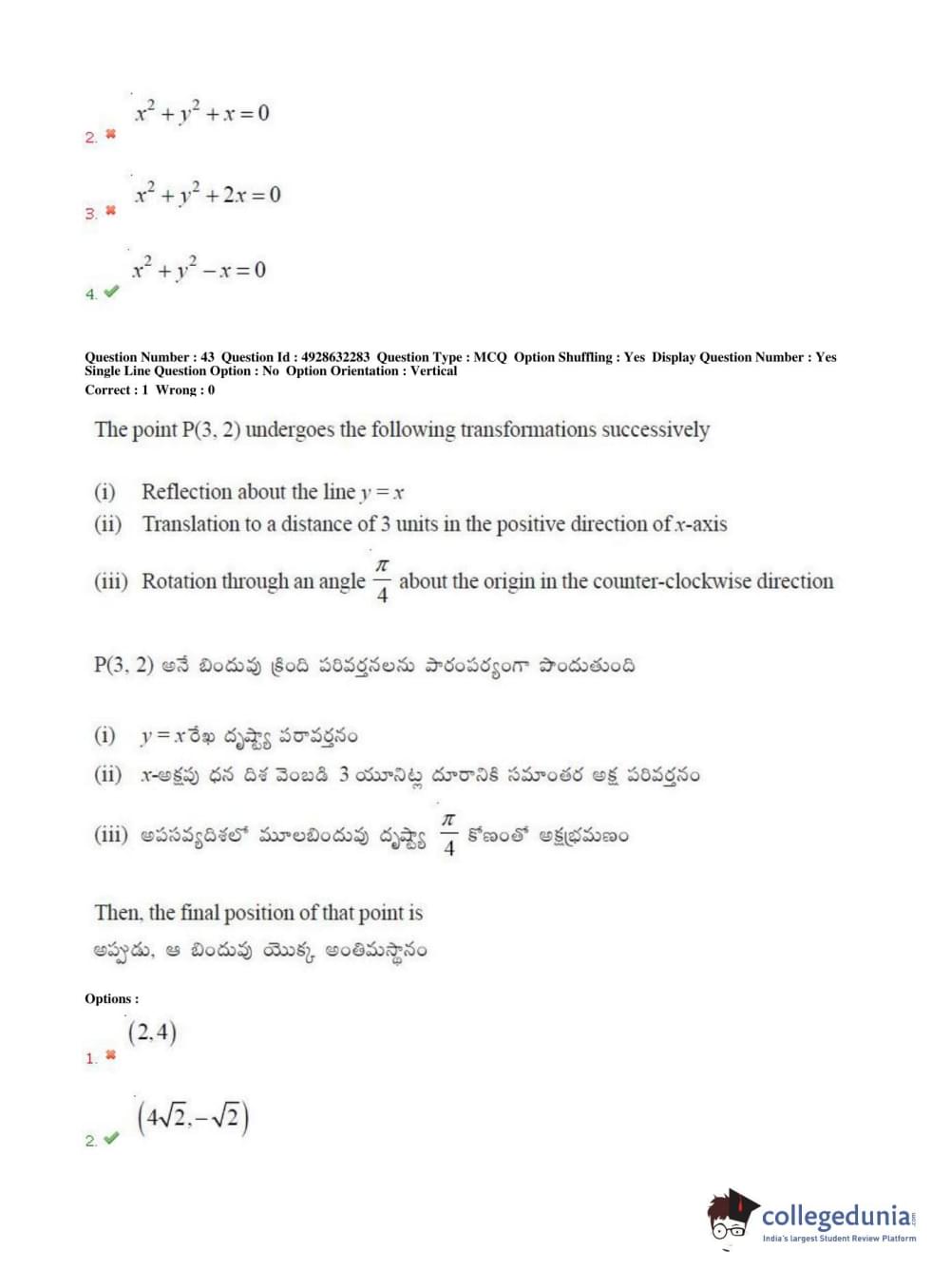 TS EAMCET 2018 Engineering Question Paper with Answer Key PDFs Afternoon Session