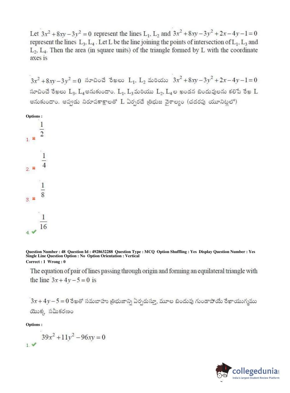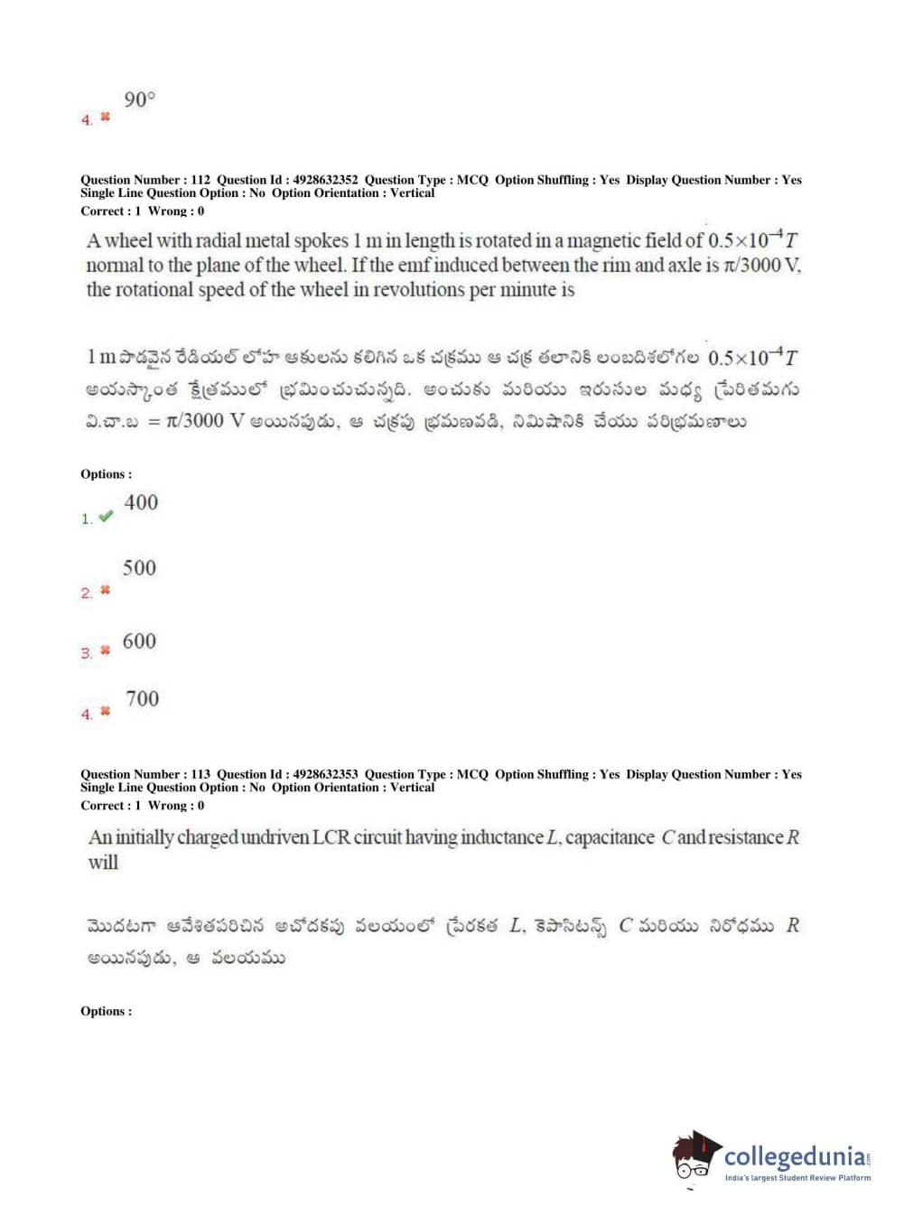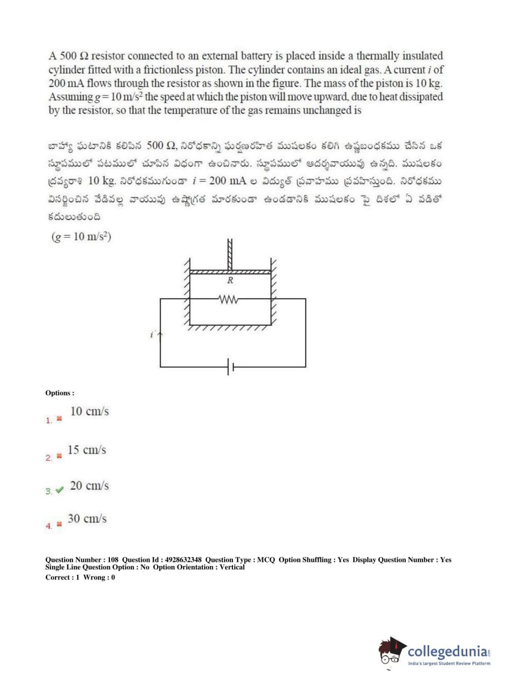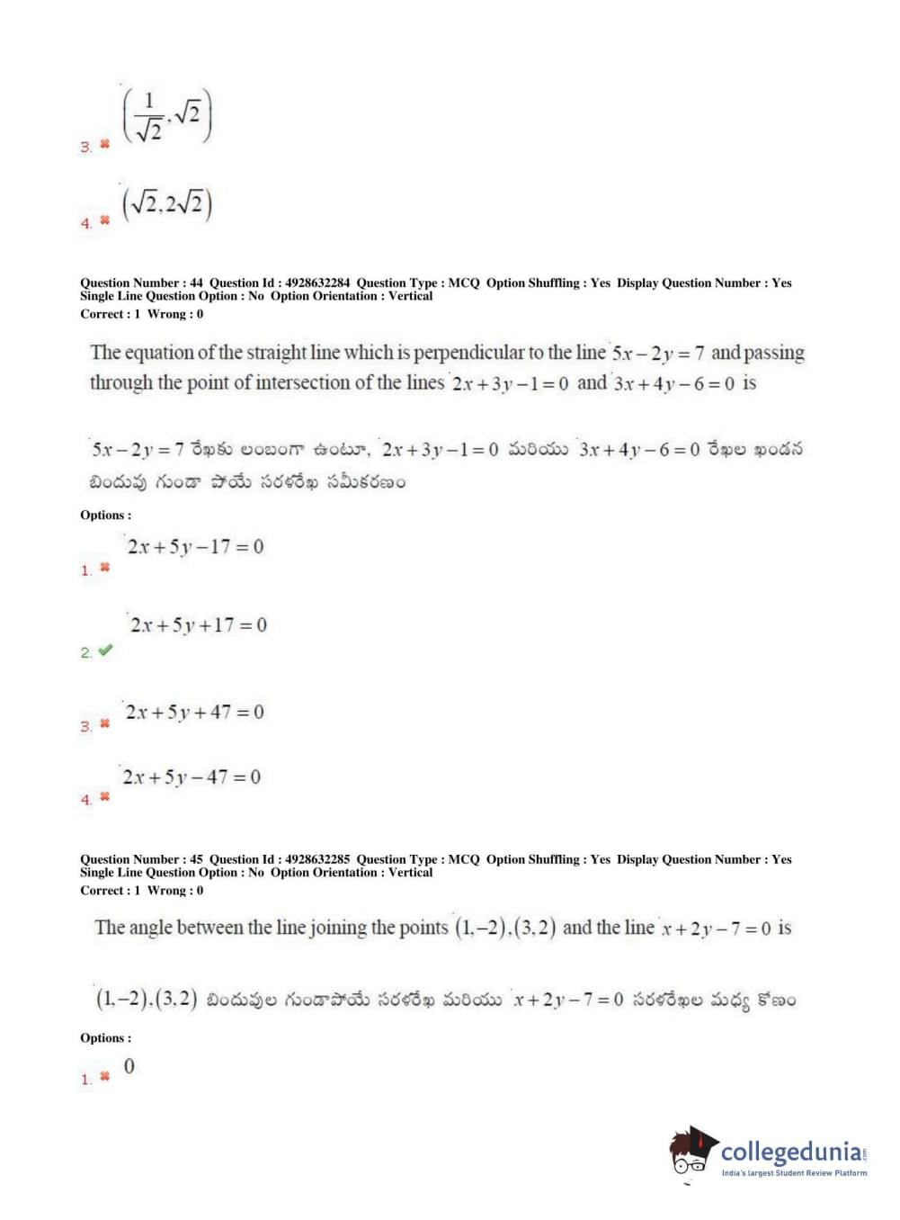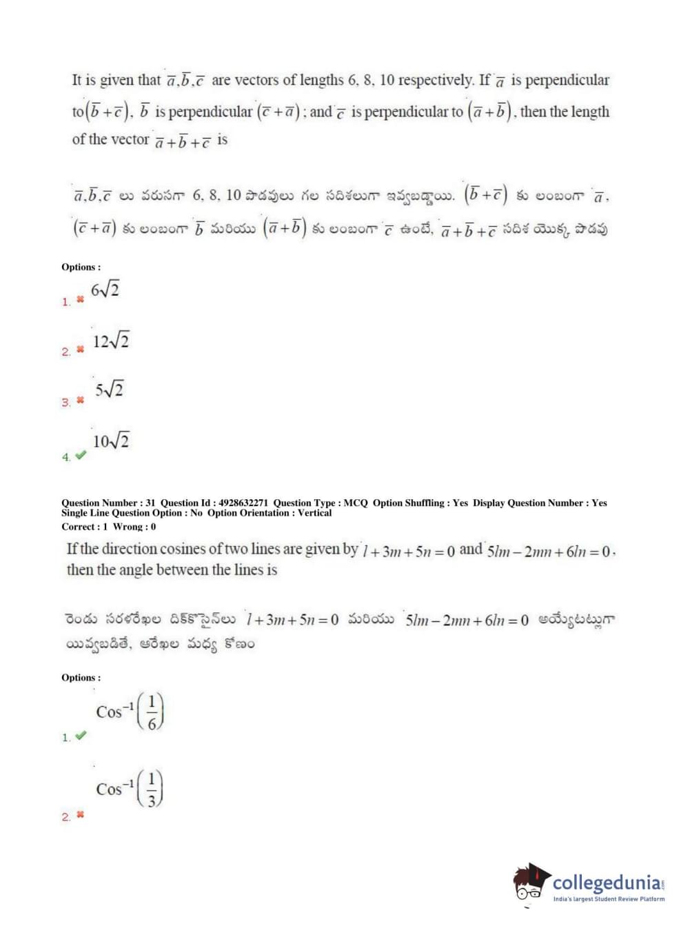 TS EAMCET 2018 Engineering Question Paper with Answer Key PDFs Afternoon Session
