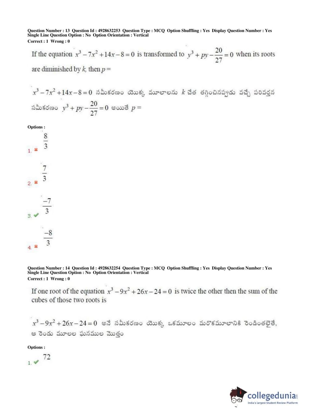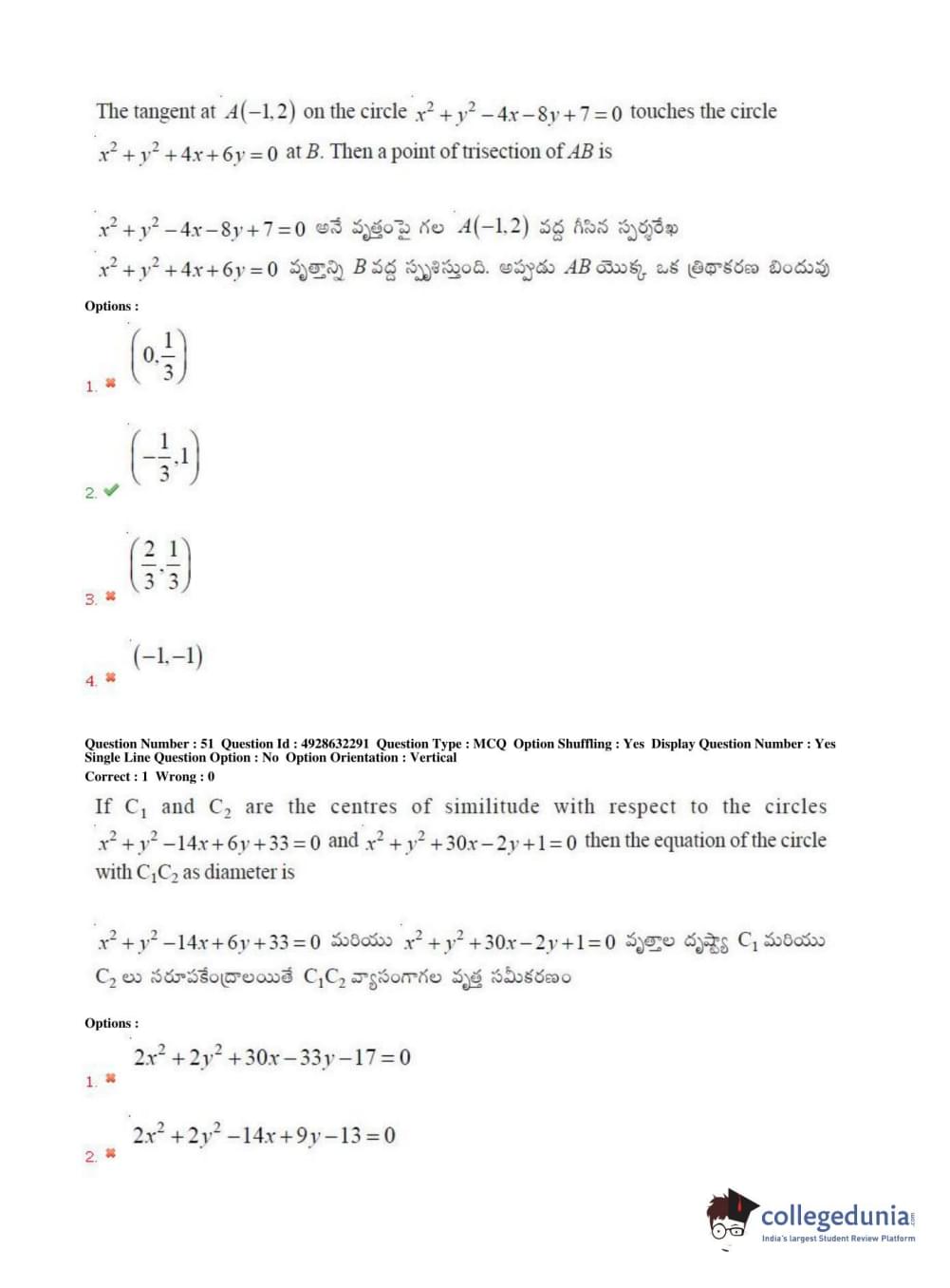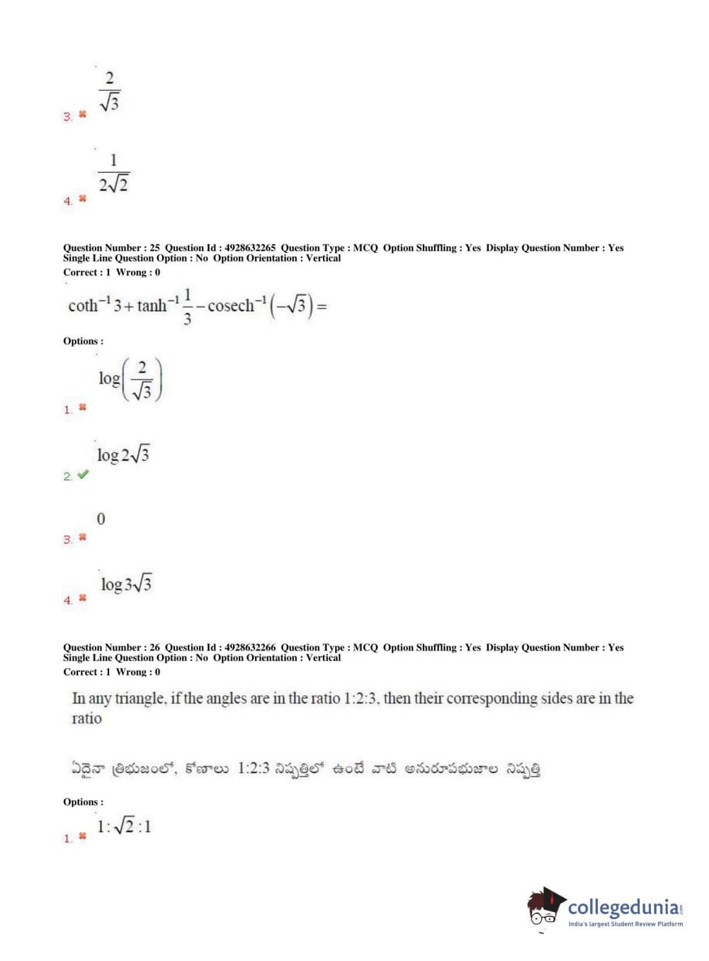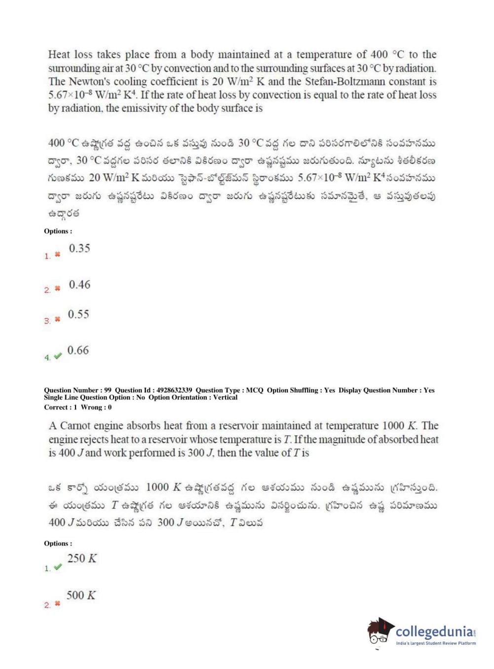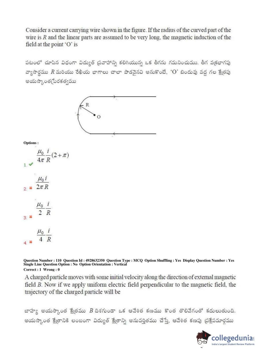 TS EAMCET 2018 Engineering Question Paper with Answer Key PDFs Afternoon Session