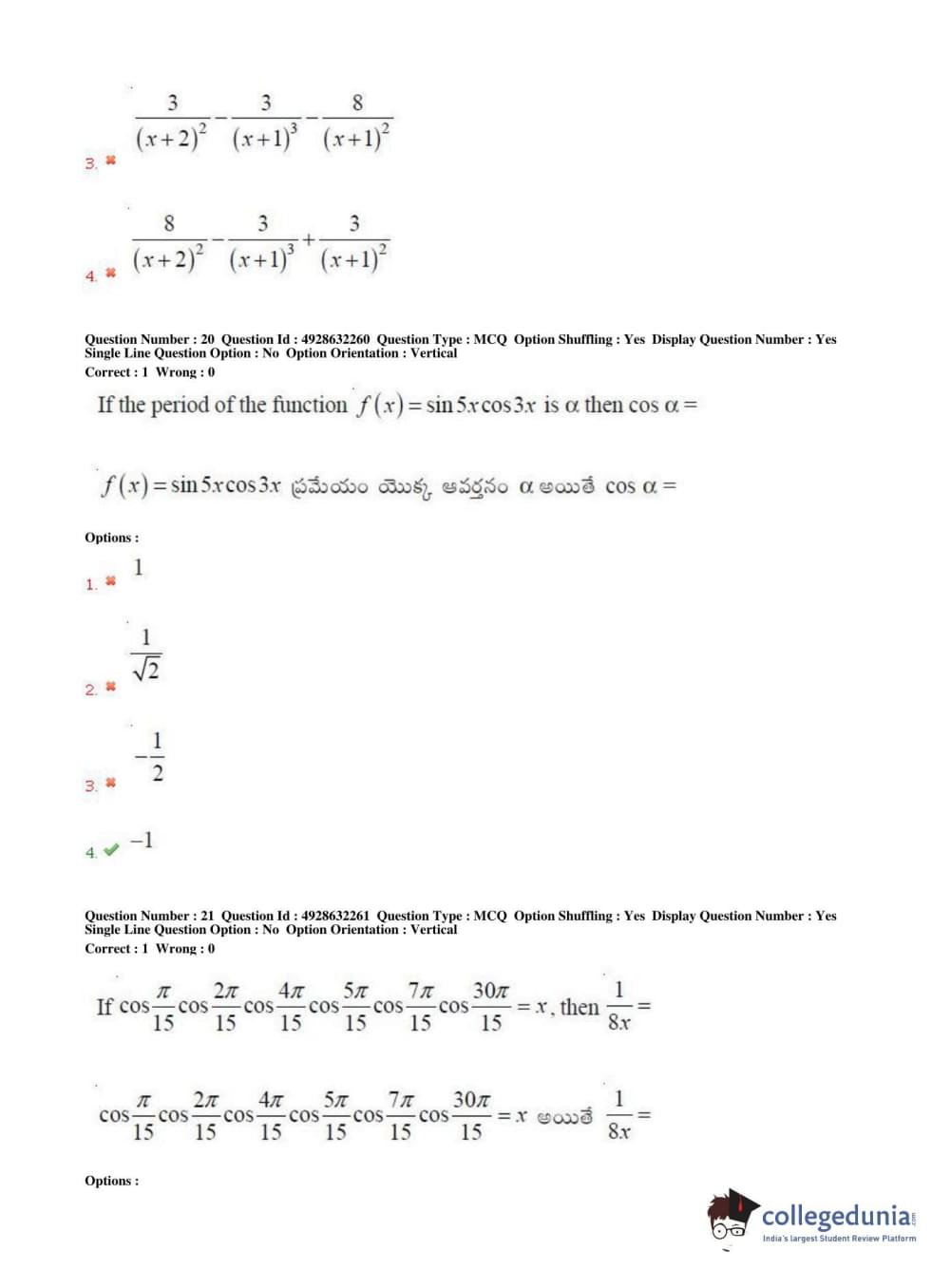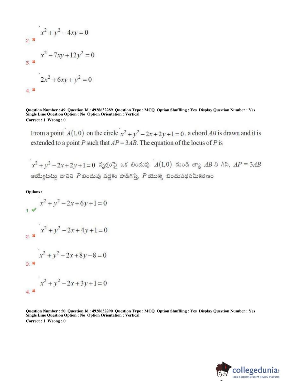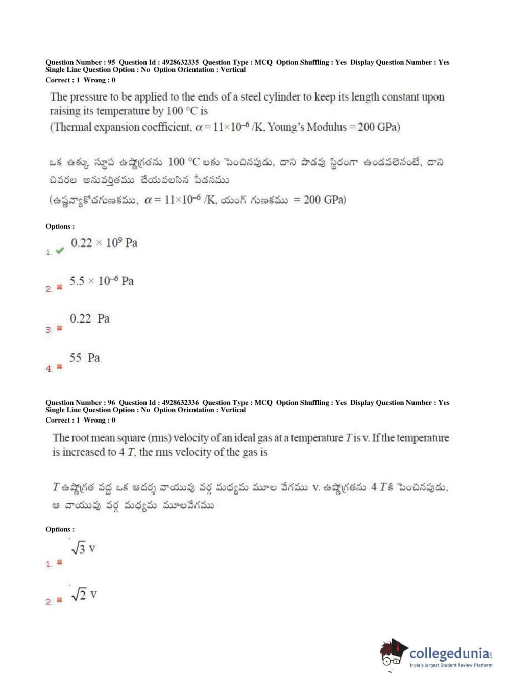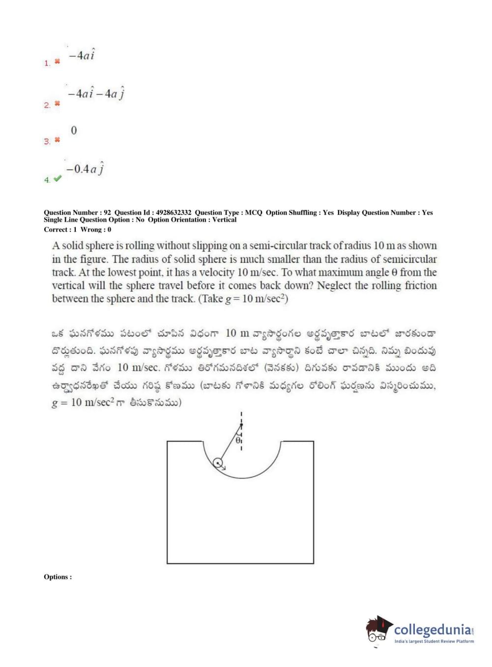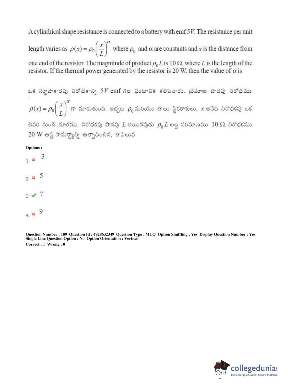 TS EAMCET 2018 Engineering Question Paper with Answer Key PDFs Afternoon Session