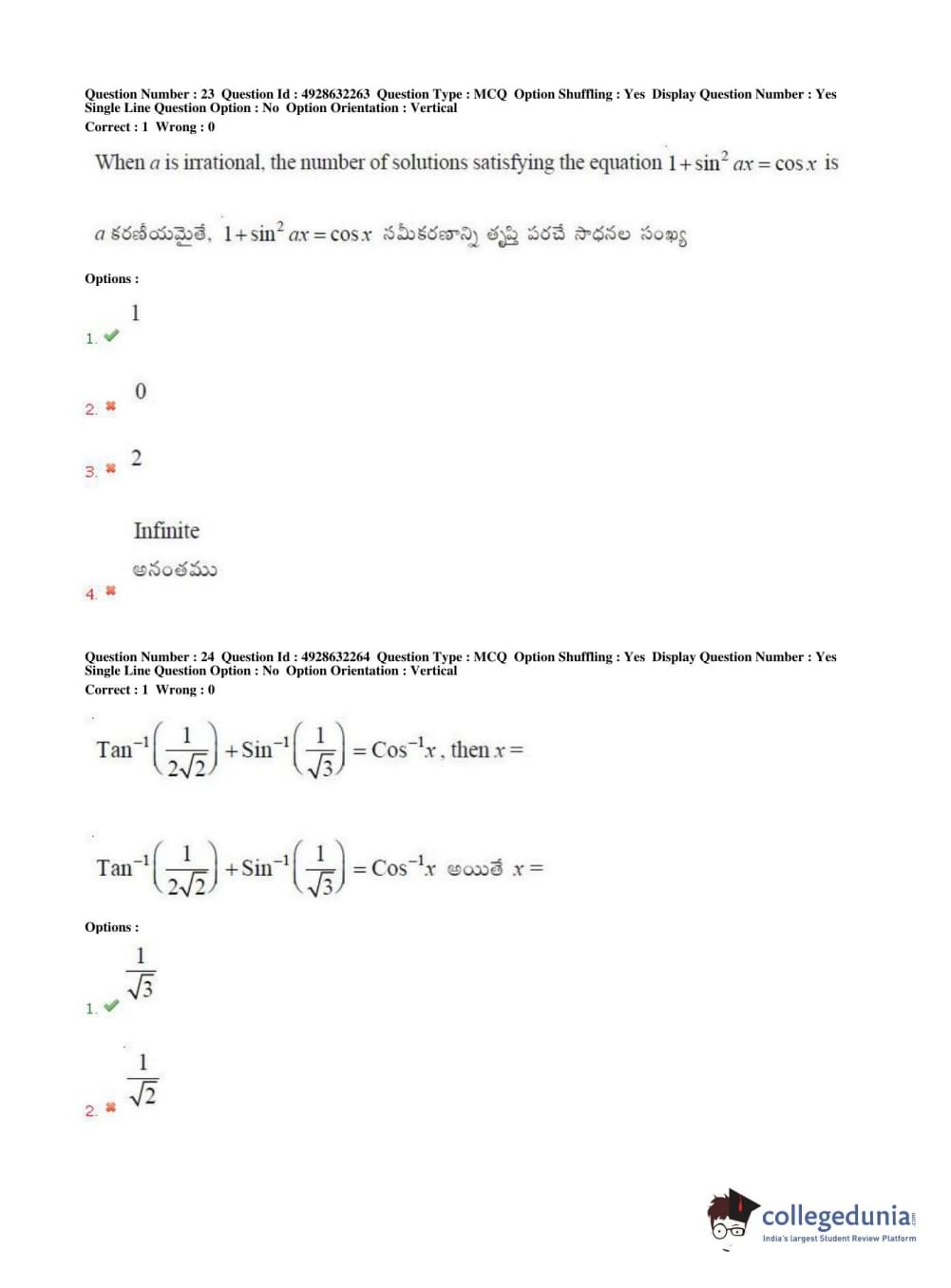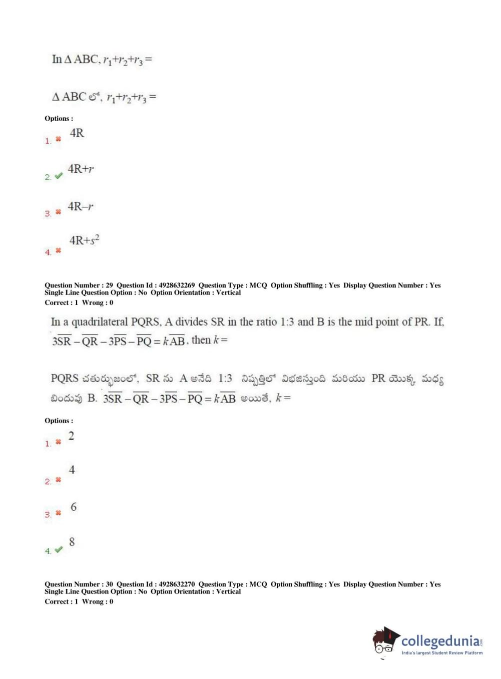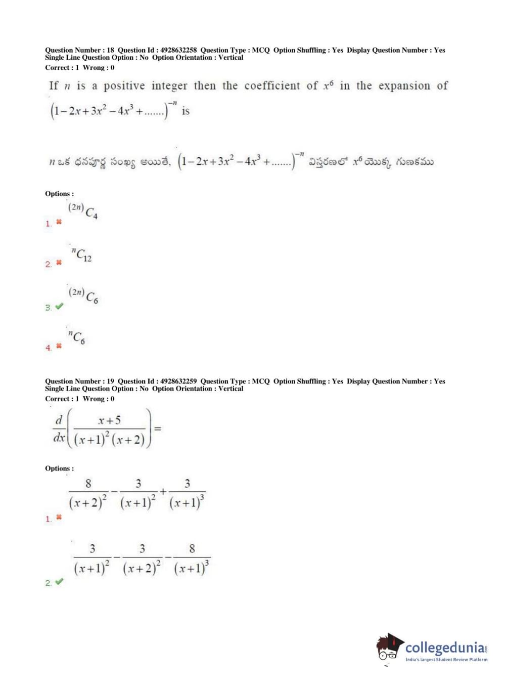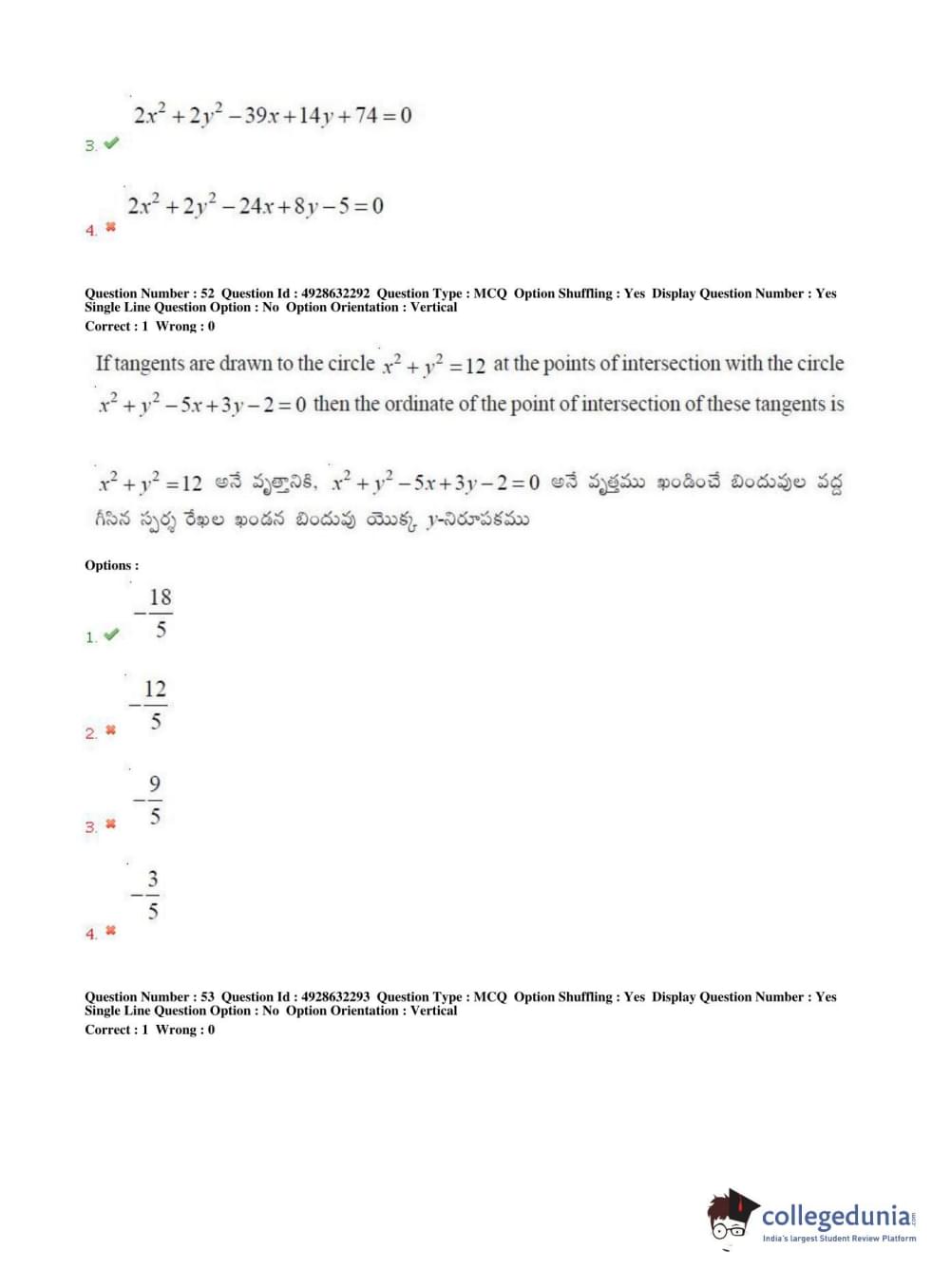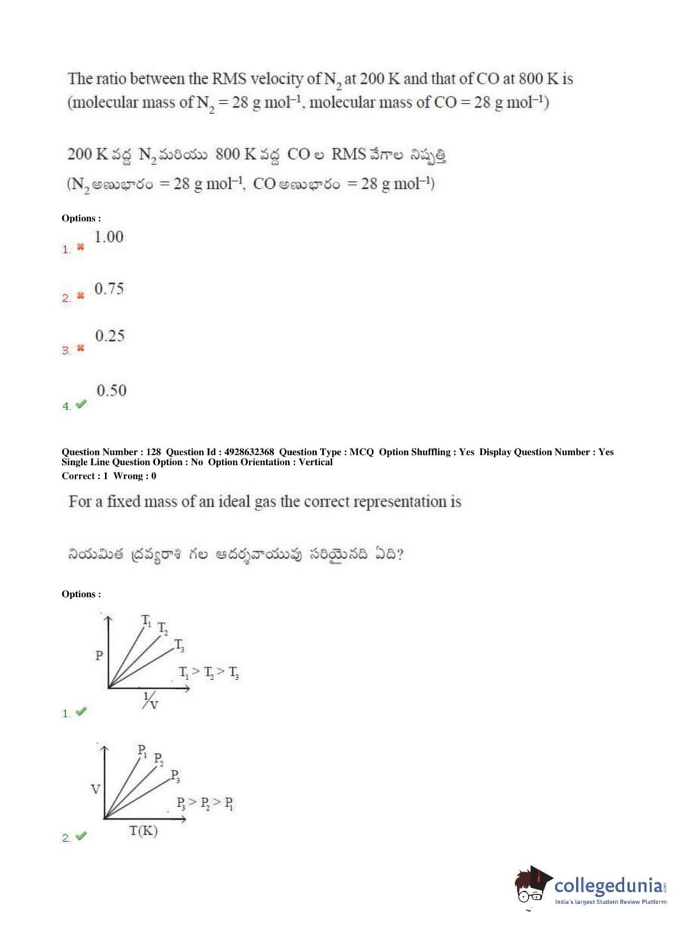 TS EAMCET 2018 Engineering Question Paper with Answer Key PDFs Afternoon Session