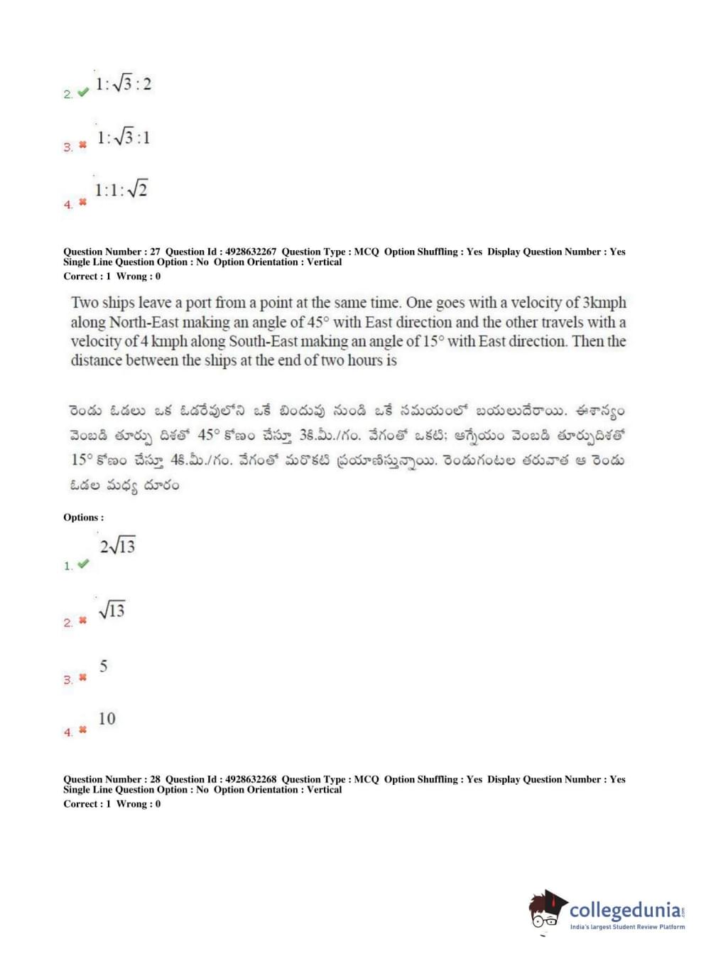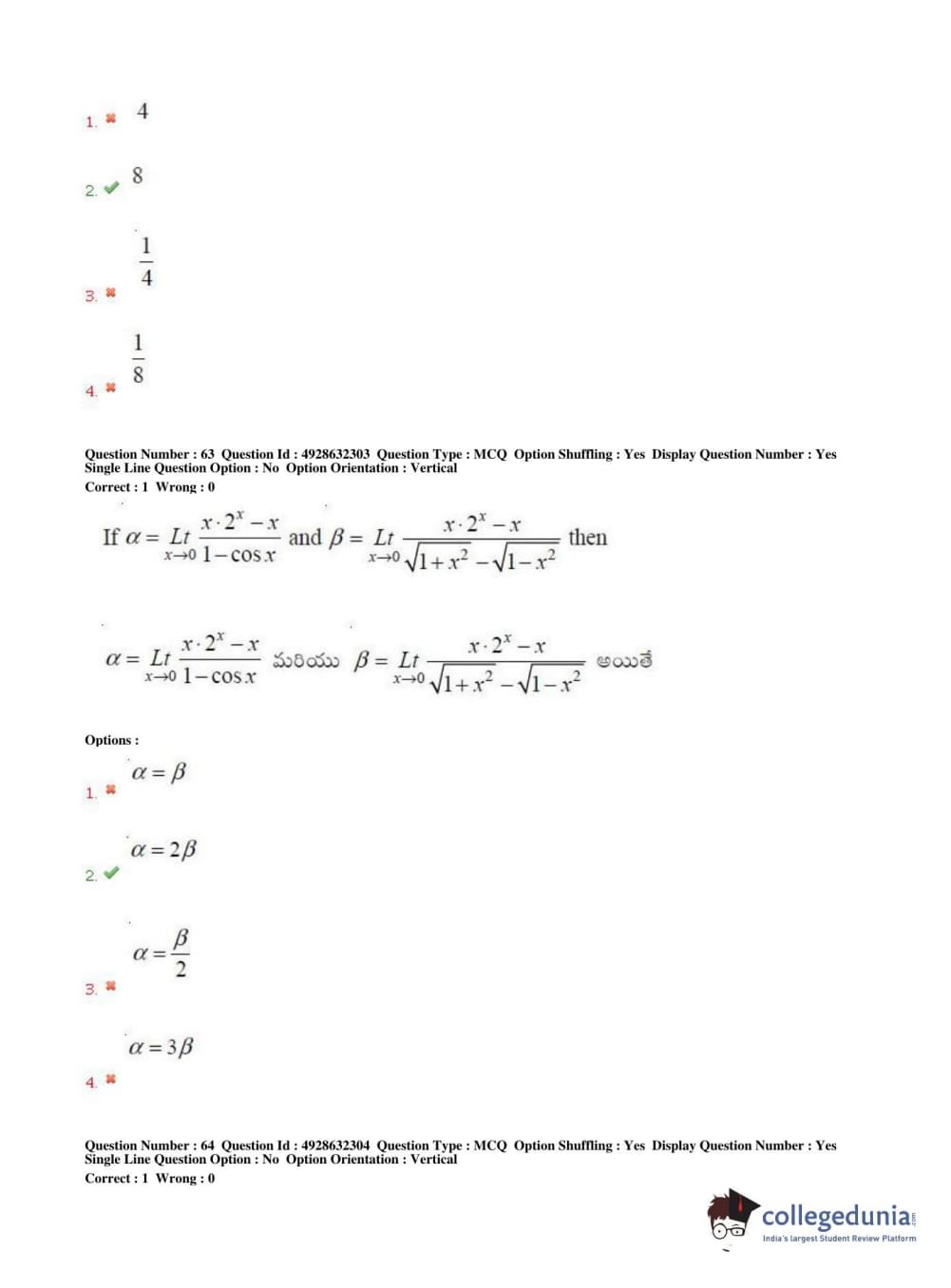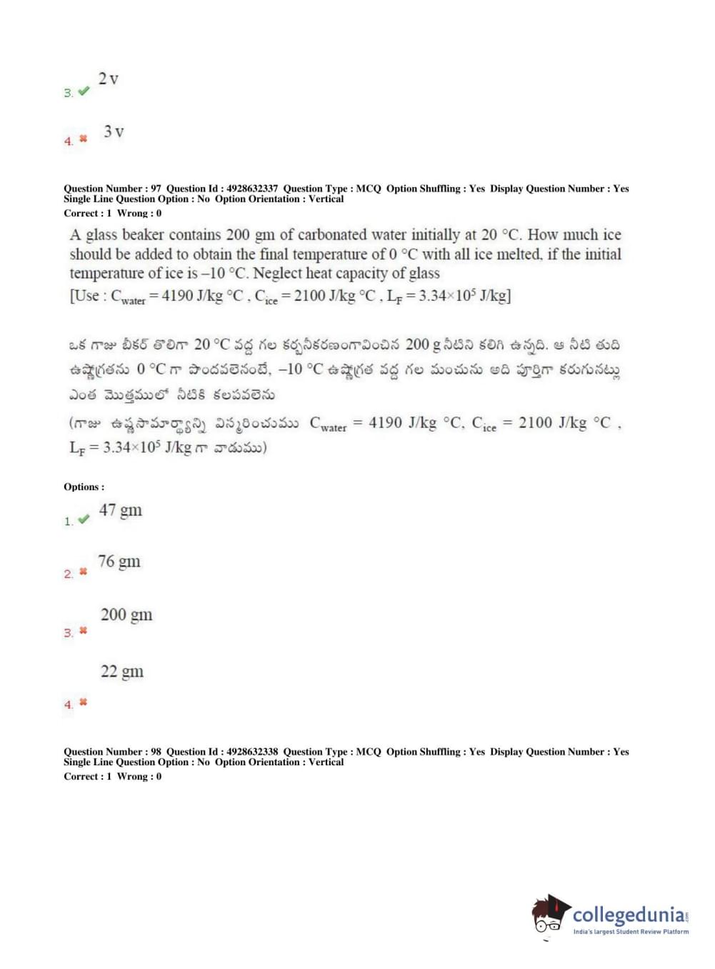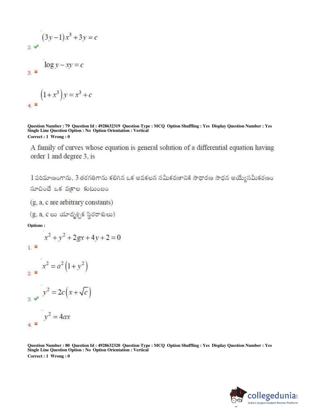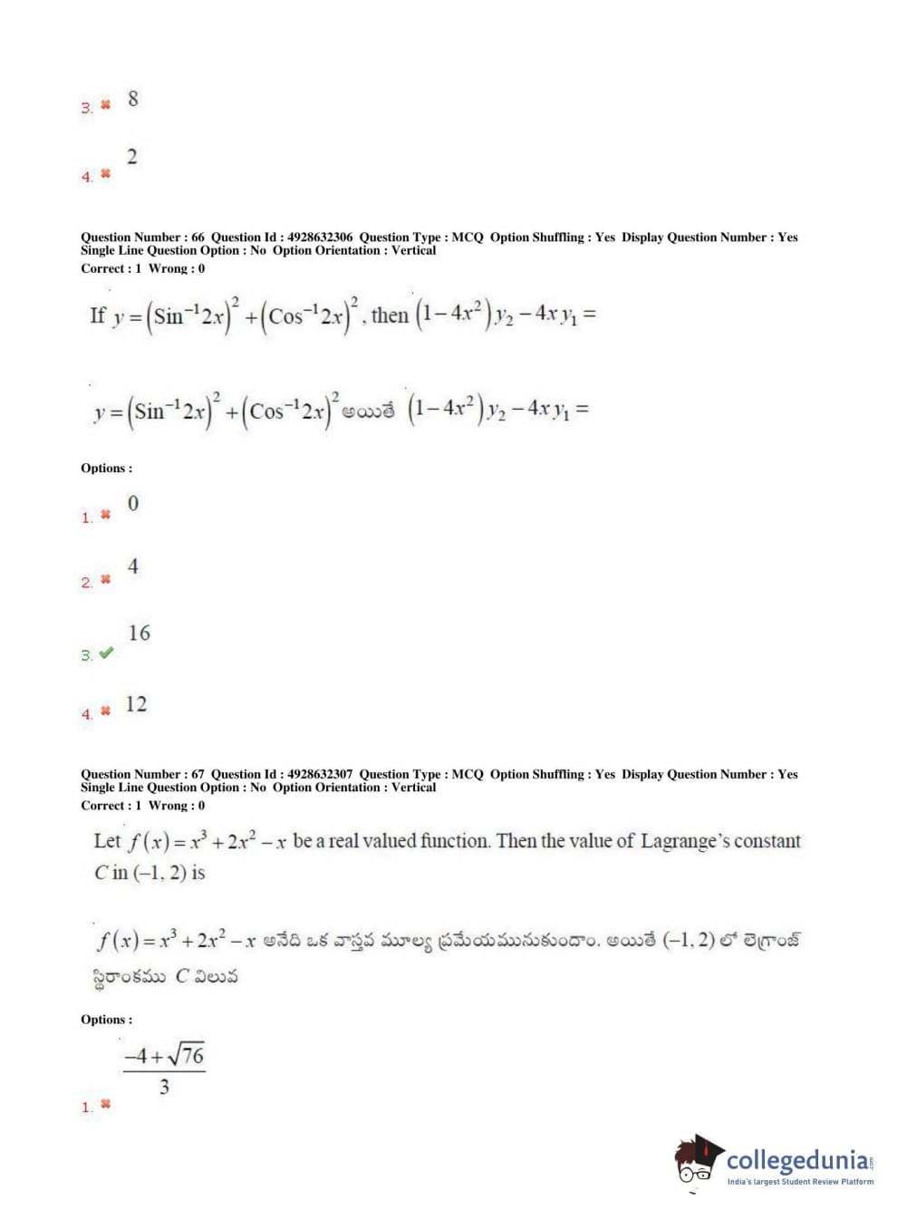 TS EAMCET 2018 Engineering Question Paper with Answer Key PDFs Afternoon Session