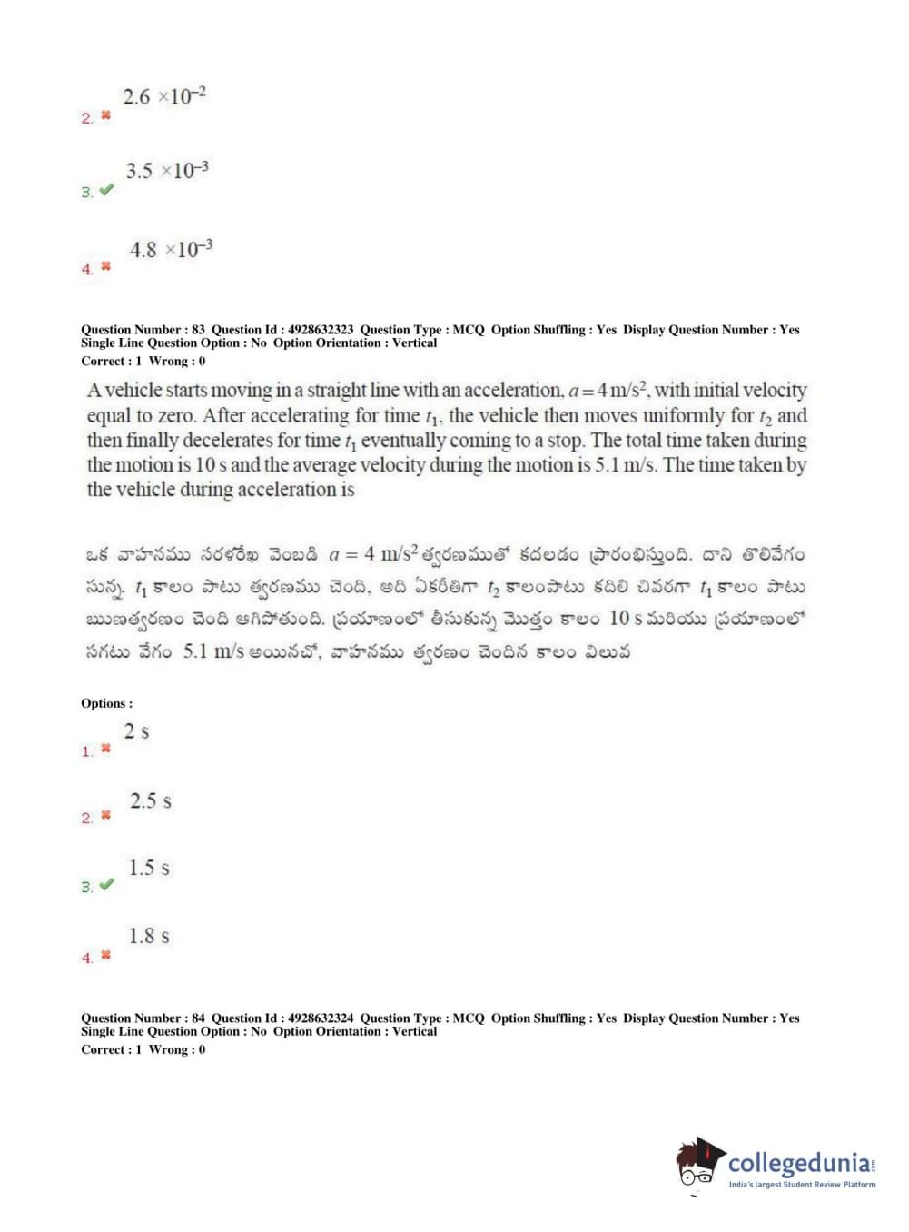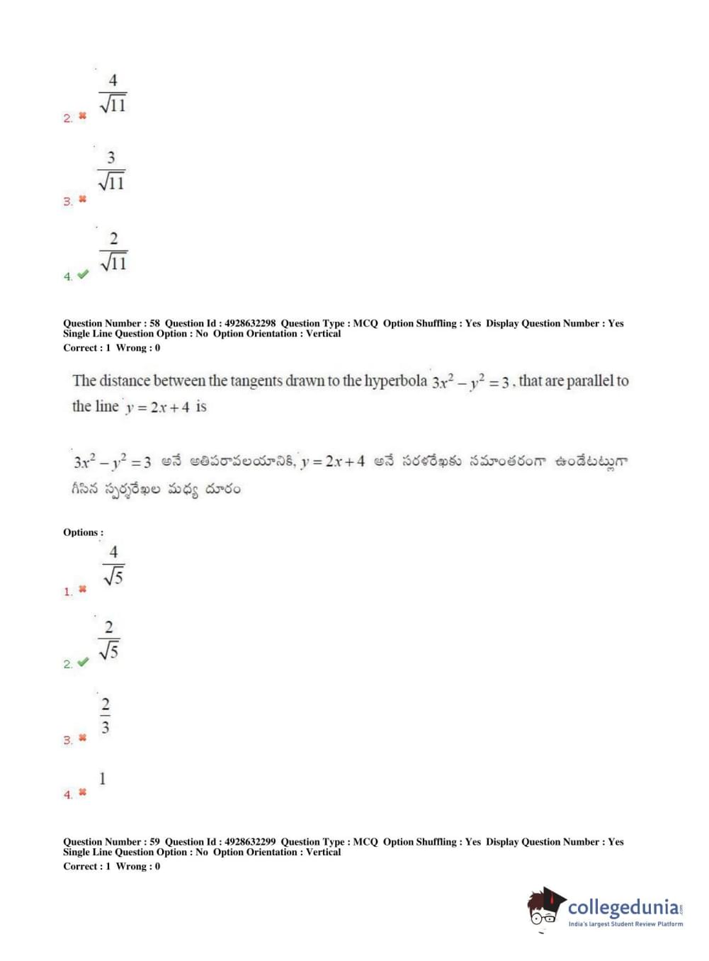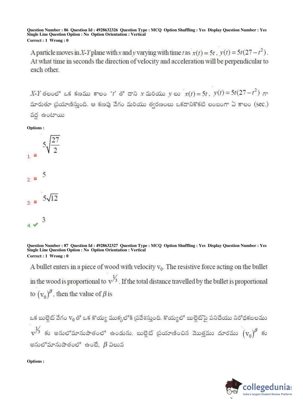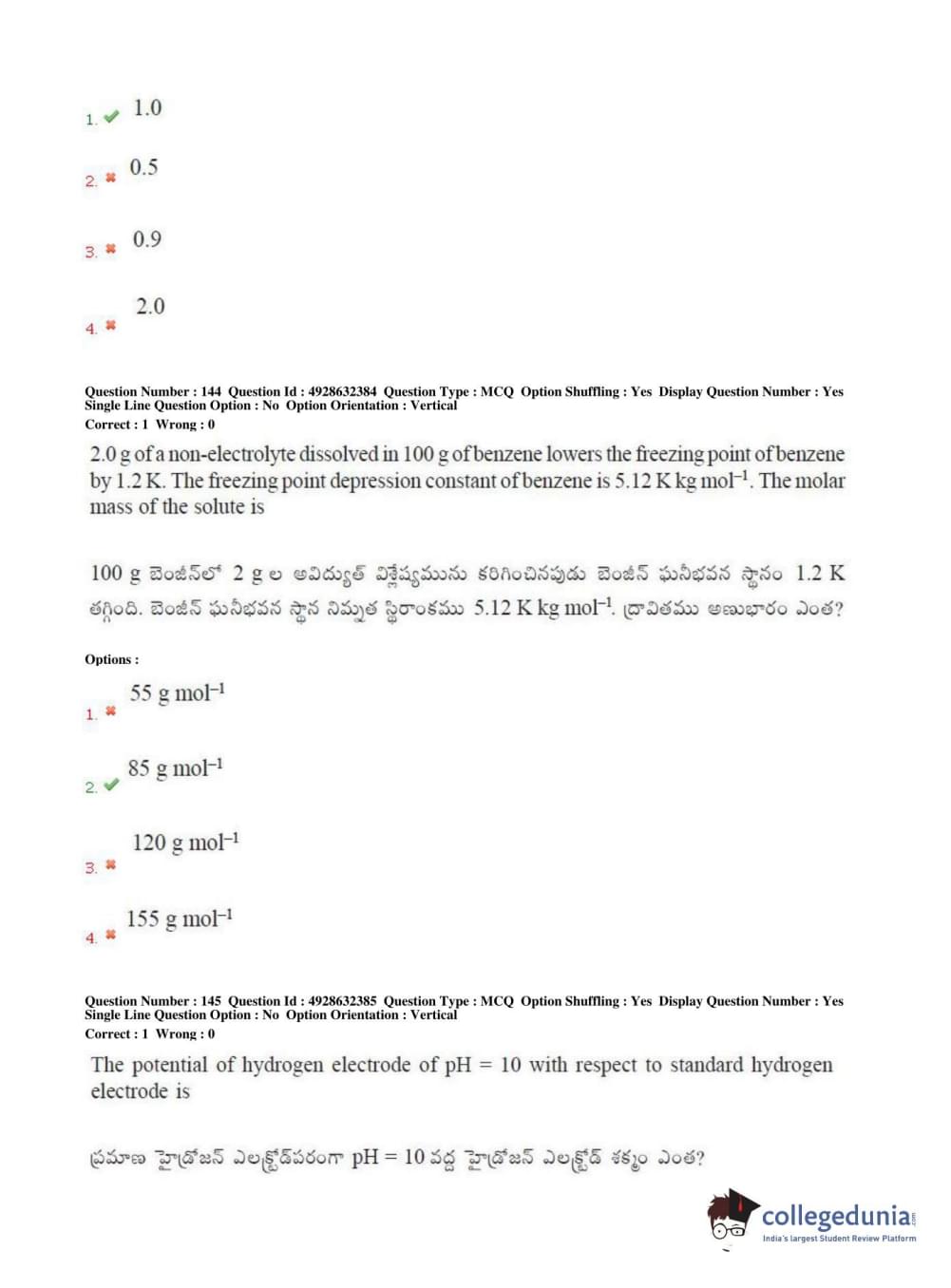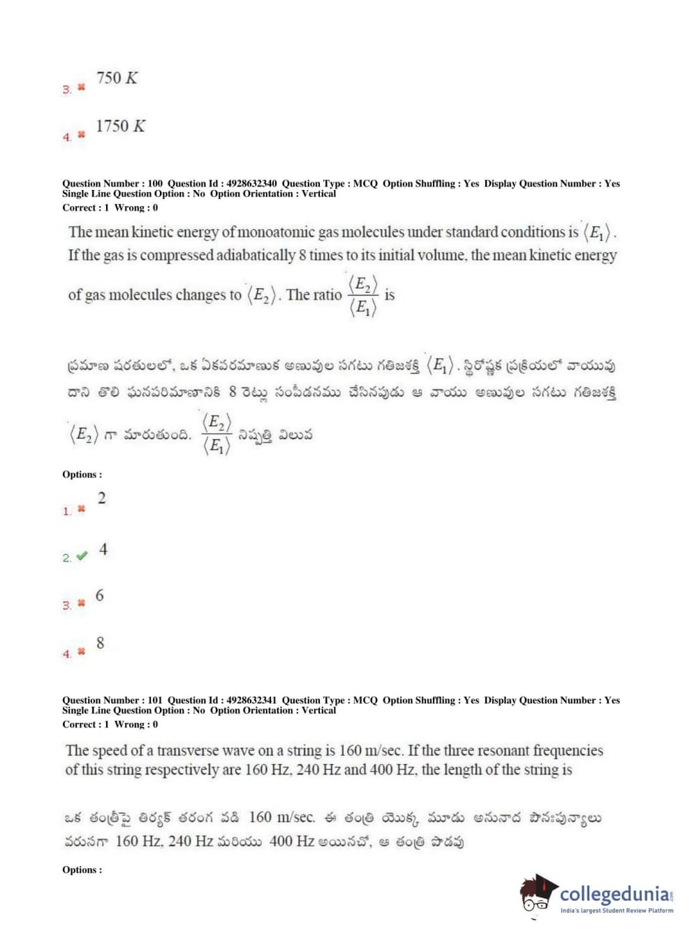 TS EAMCET 2018 Engineering Question Paper with Answer Key PDFs Afternoon Session