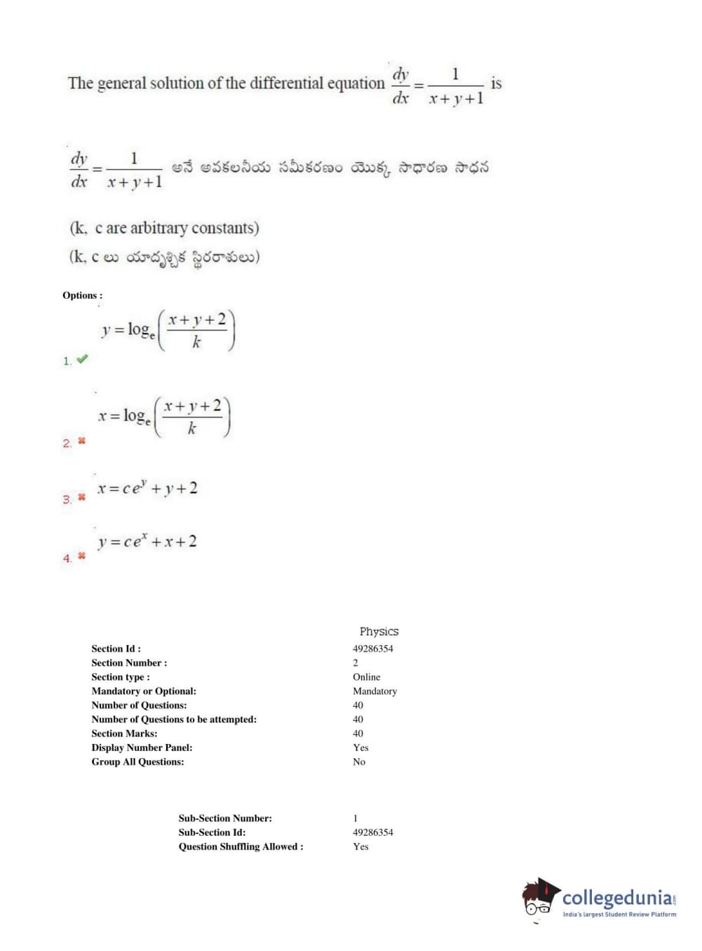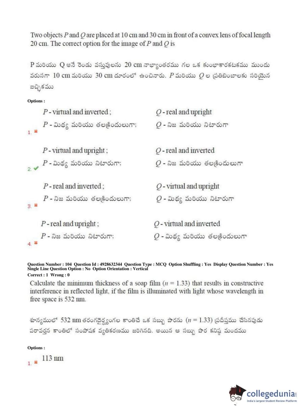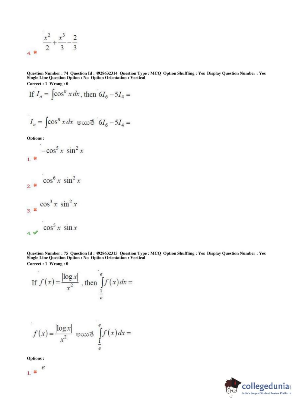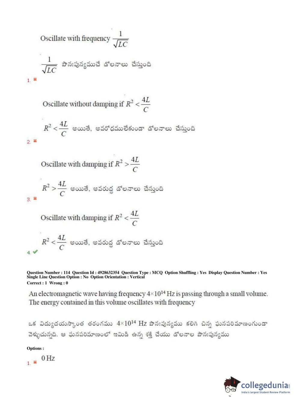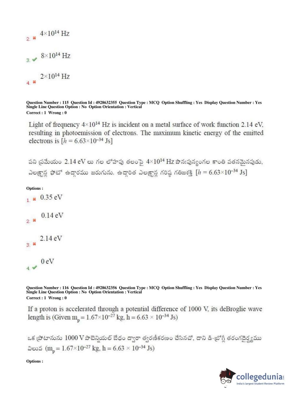 TS EAMCET 2018 Engineering Question Paper with Answer Key PDFs Afternoon Session