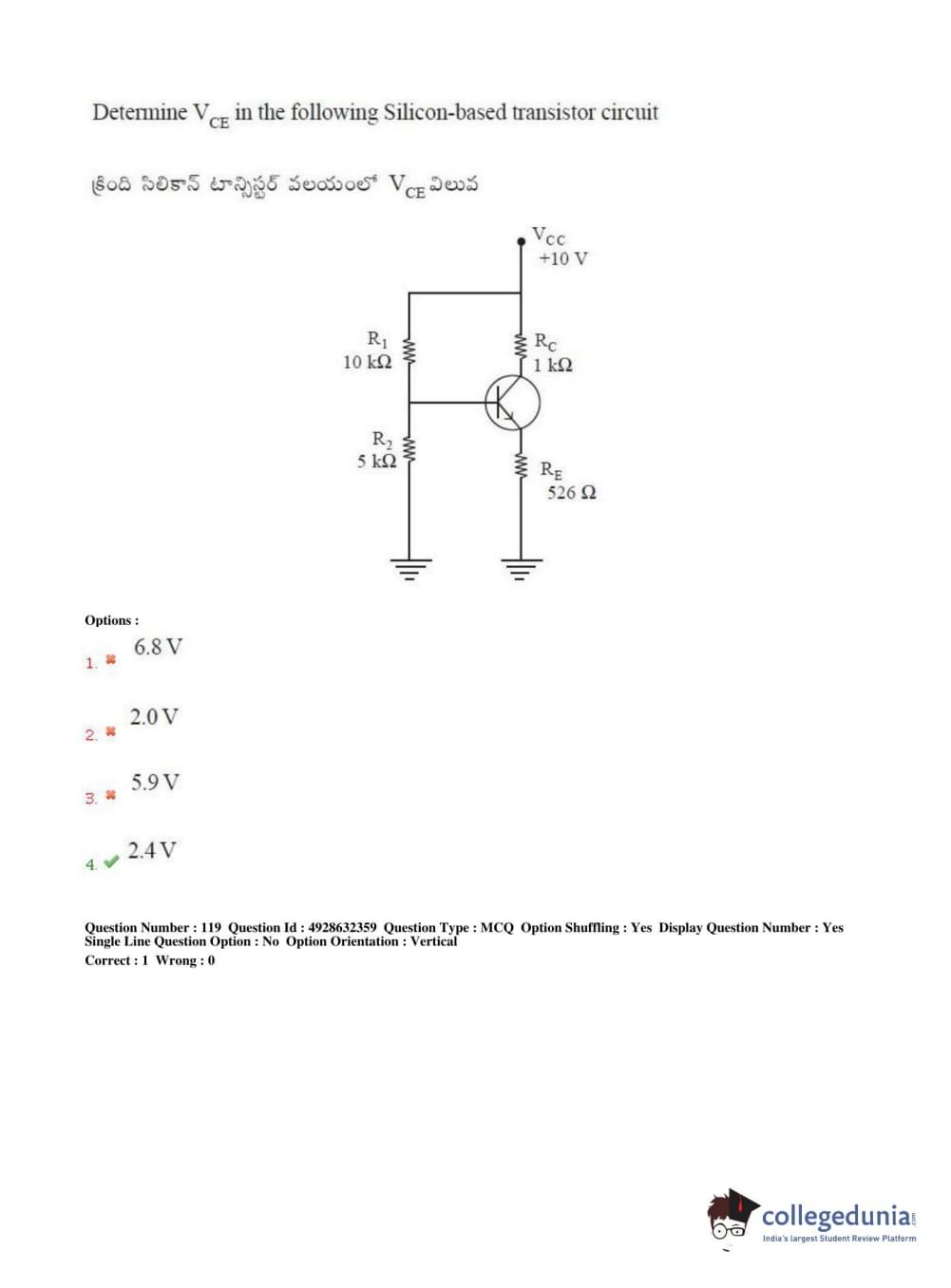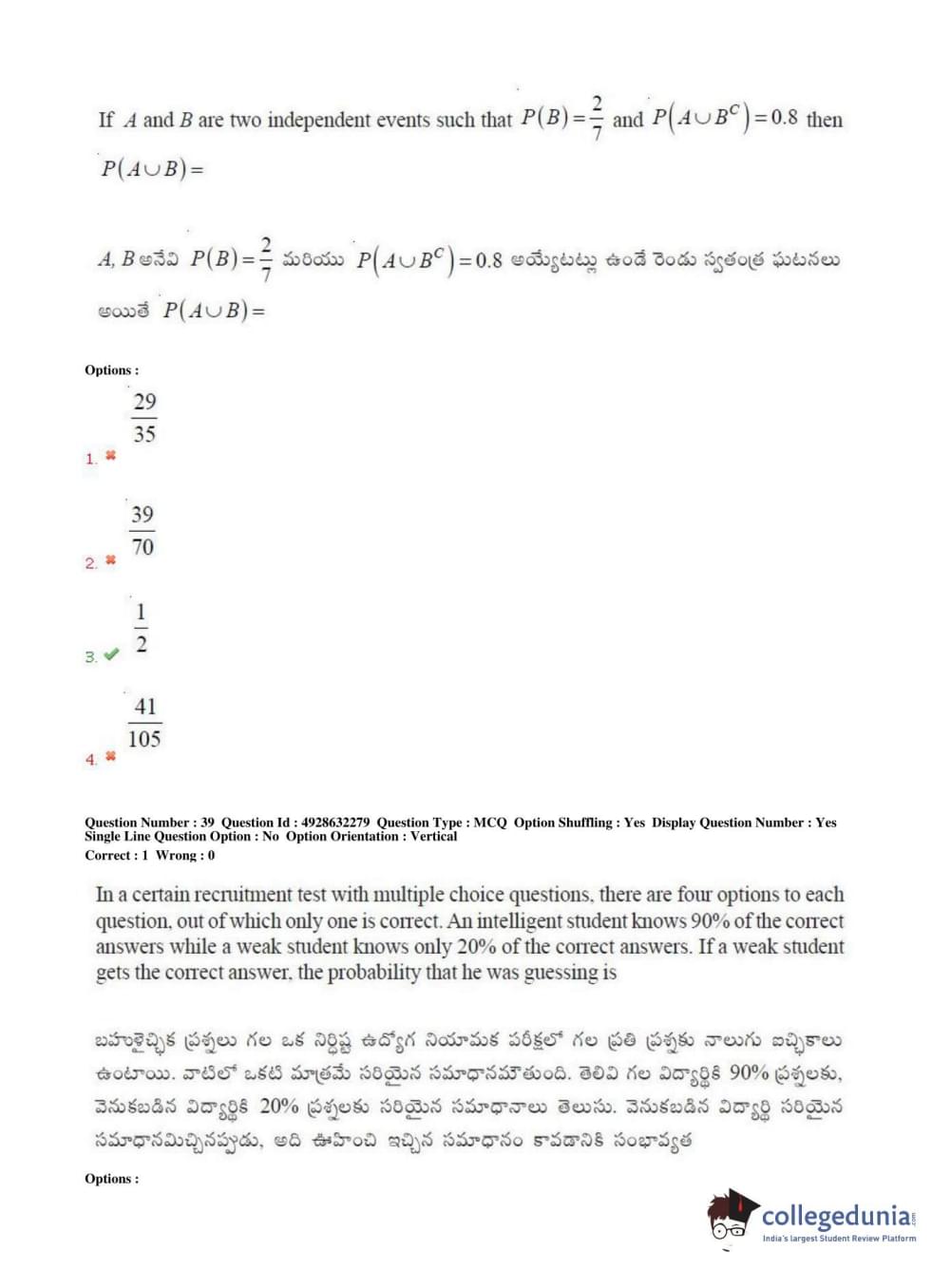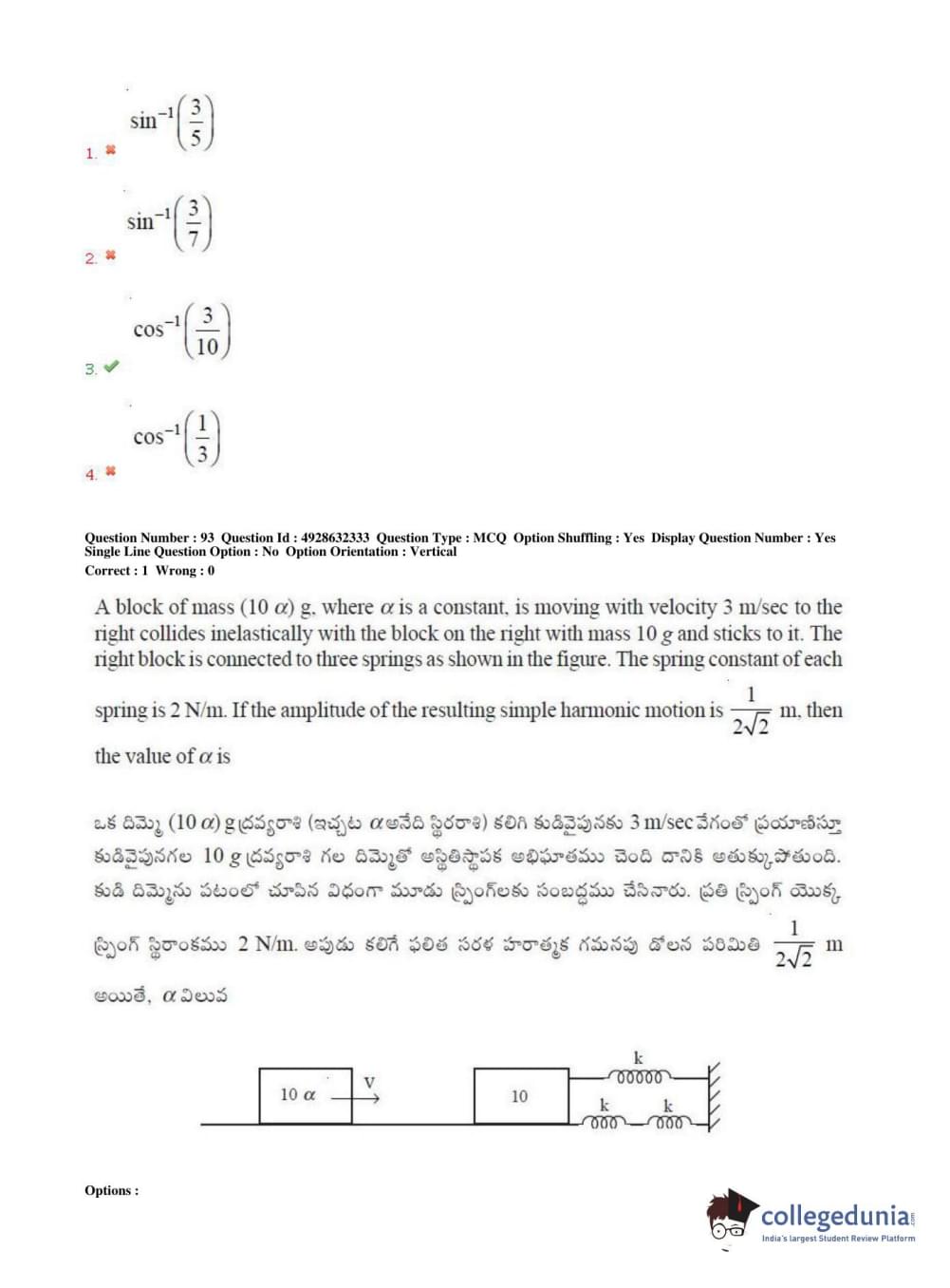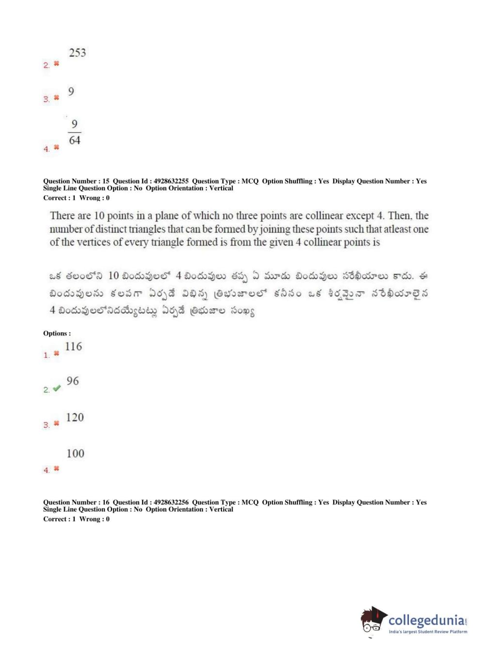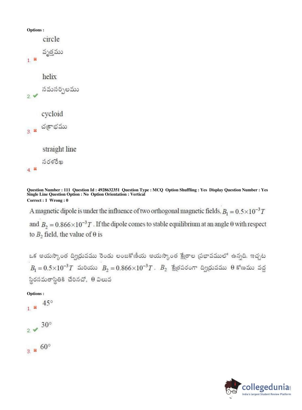 TS EAMCET 2018 Engineering Question Paper with Answer Key PDFs Afternoon Session
