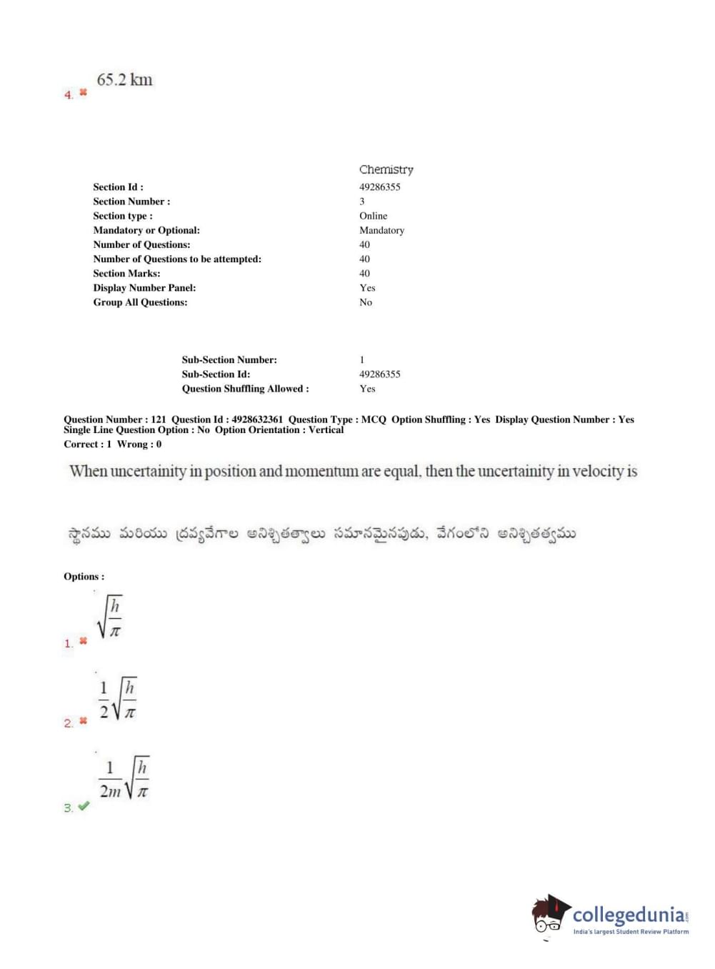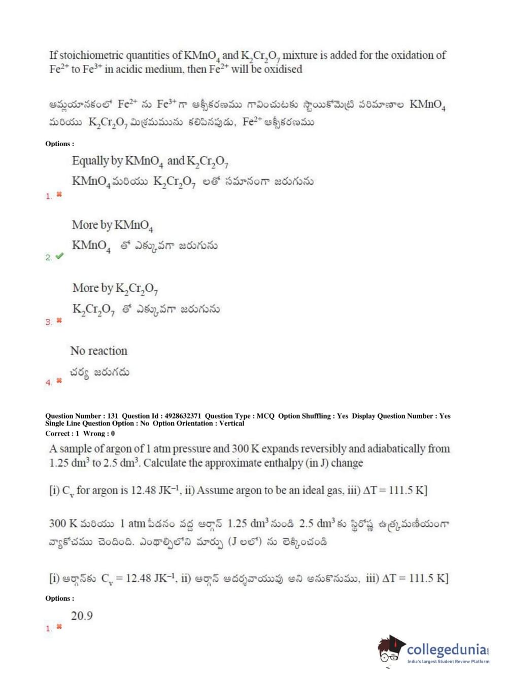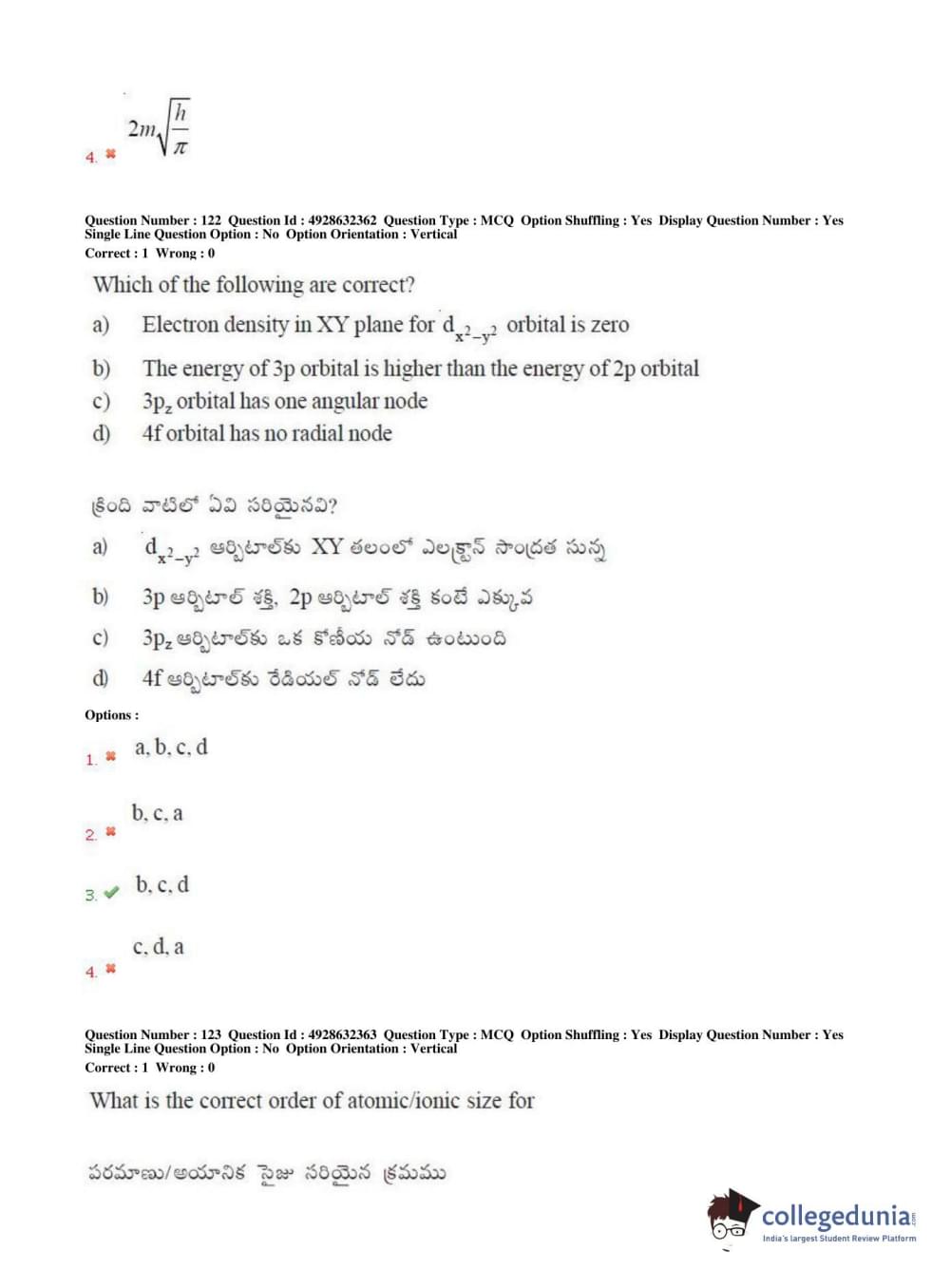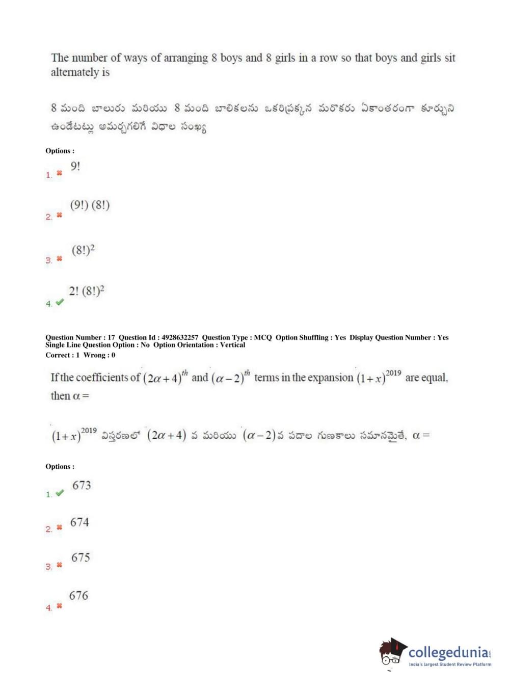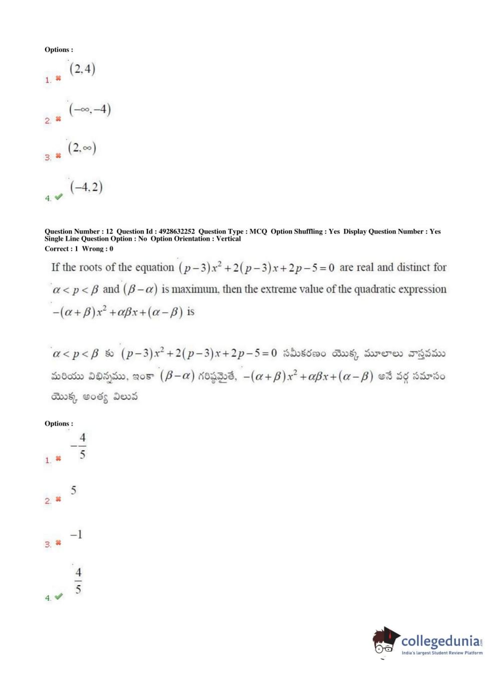 TS EAMCET 2018 Engineering Question Paper with Answer Key PDFs Afternoon Session