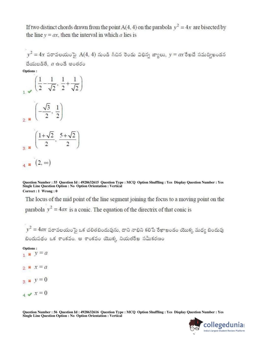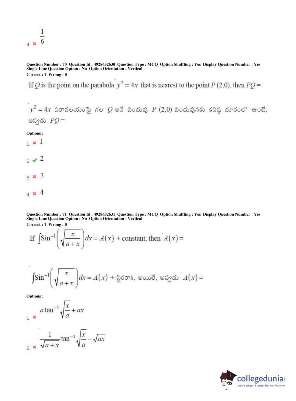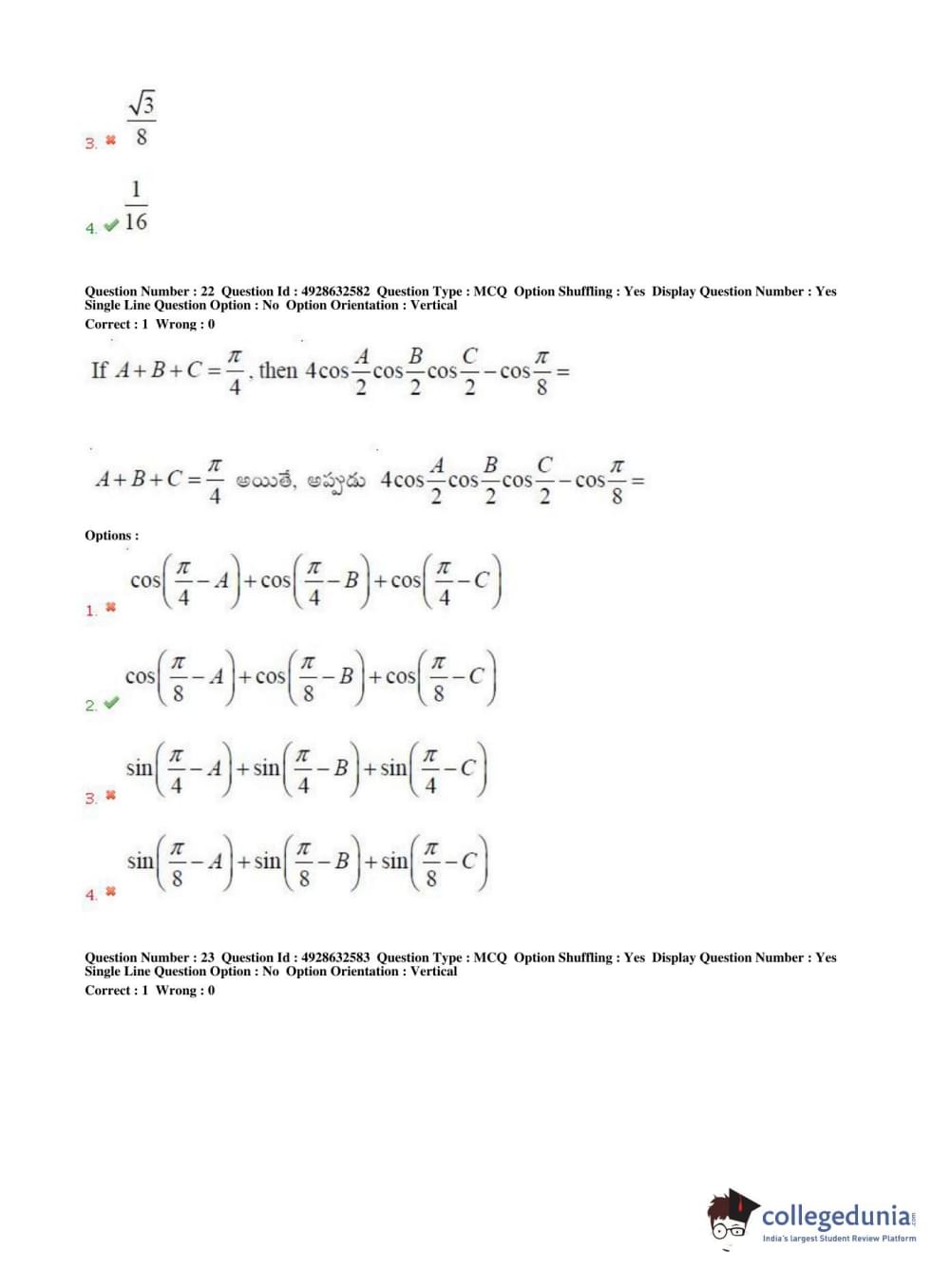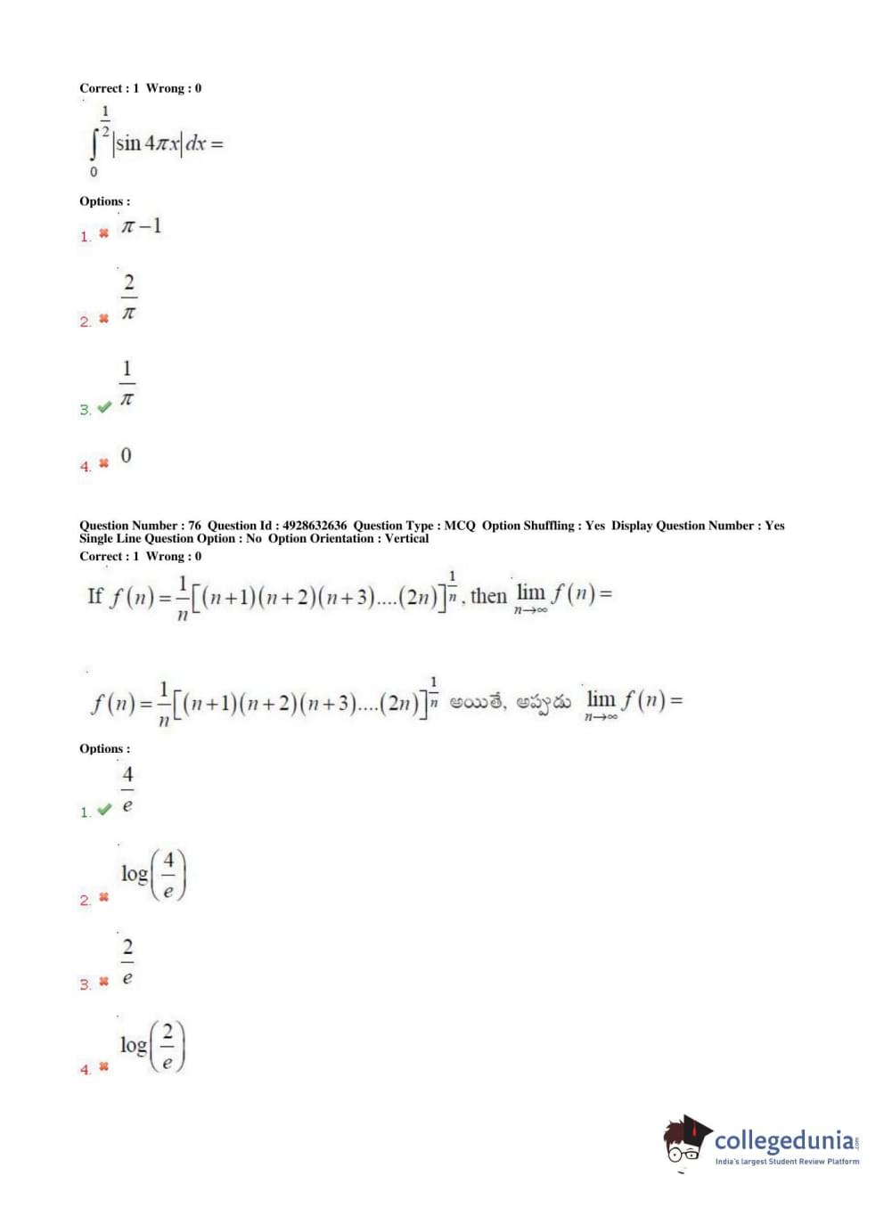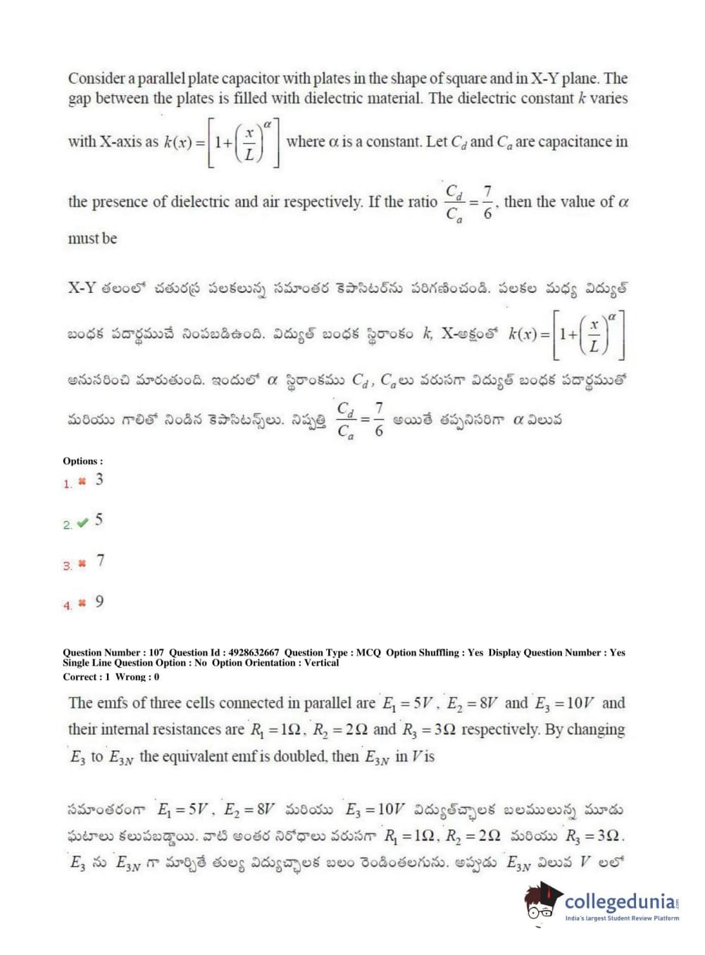 TS EAMCET 2018 Engineering Question Paper with Answer Key PDFs Forenoon Session