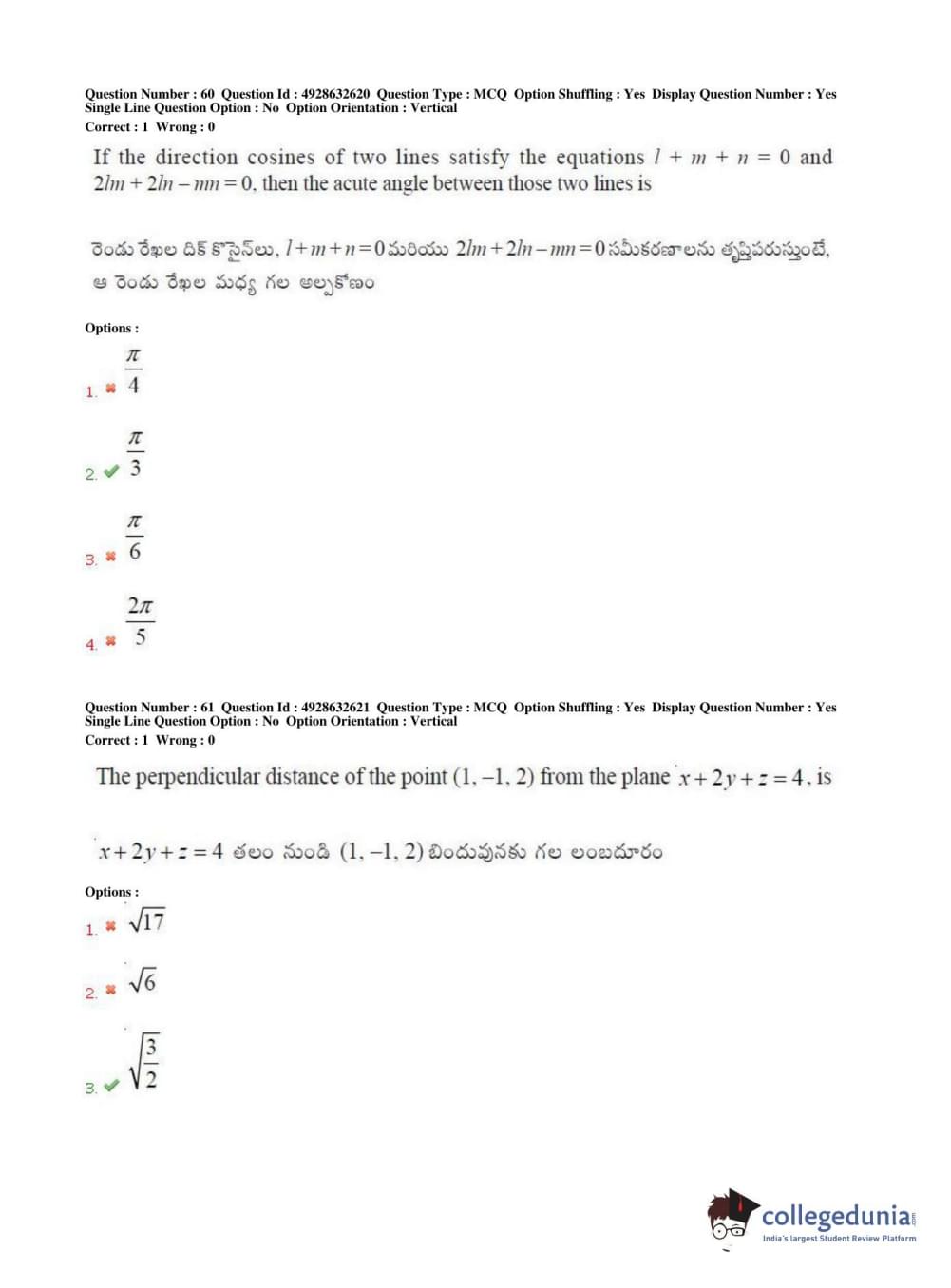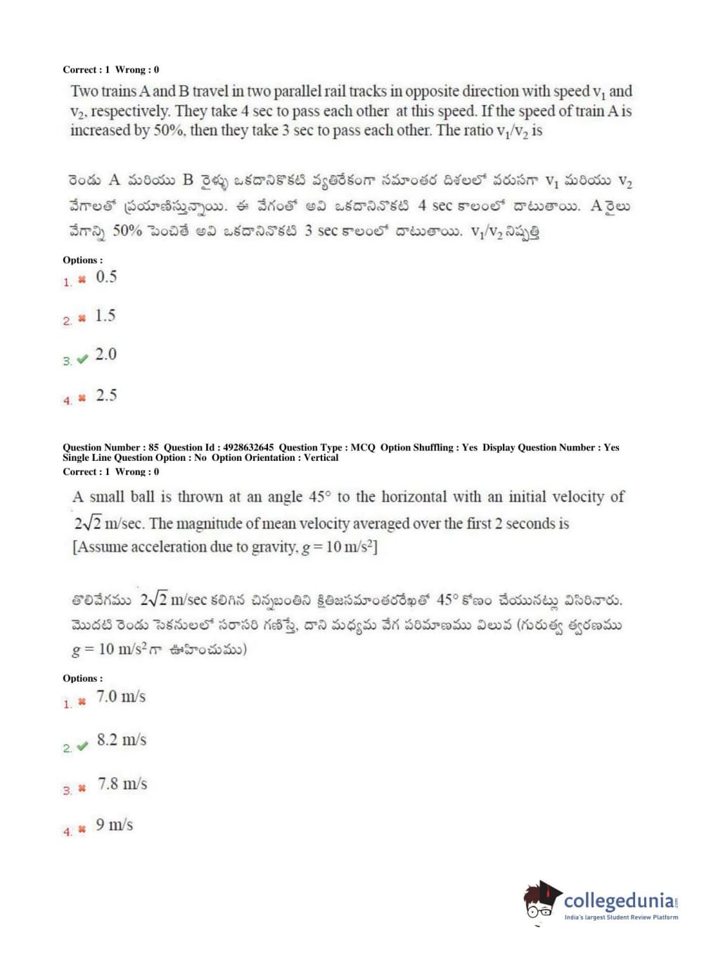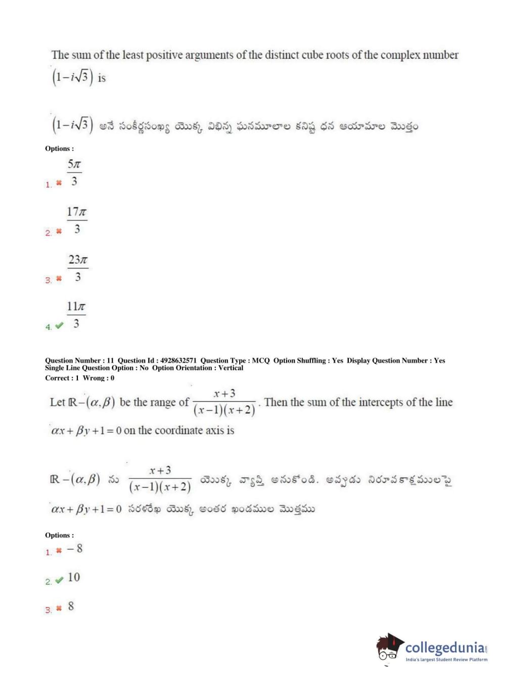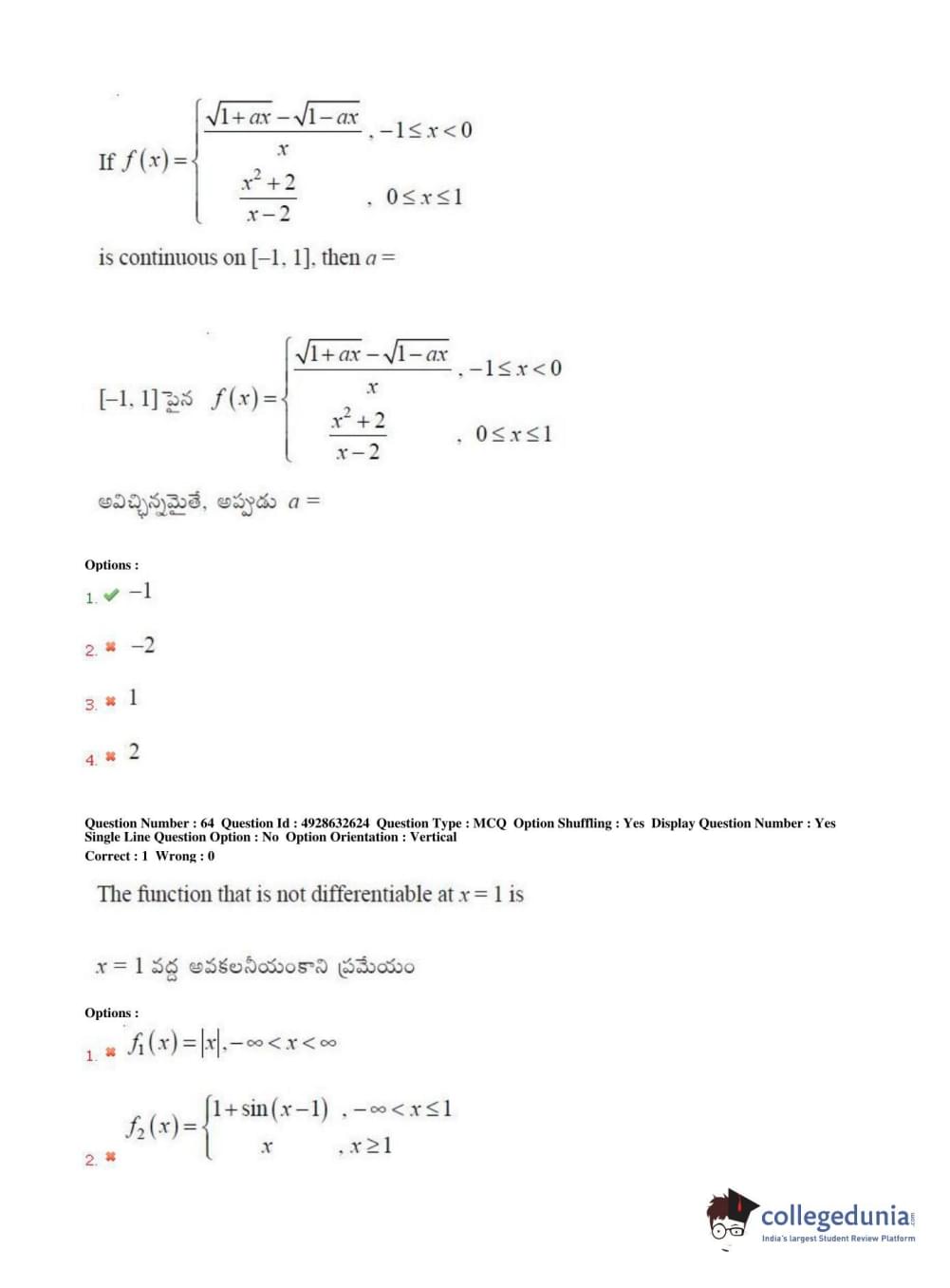 TS EAMCET 2018 Engineering Question Paper with Answer Key PDFs Forenoon Session