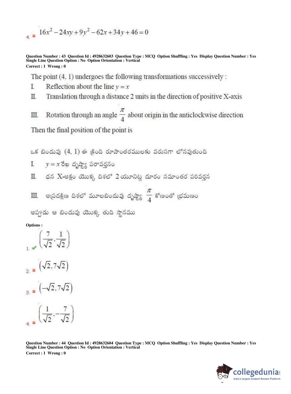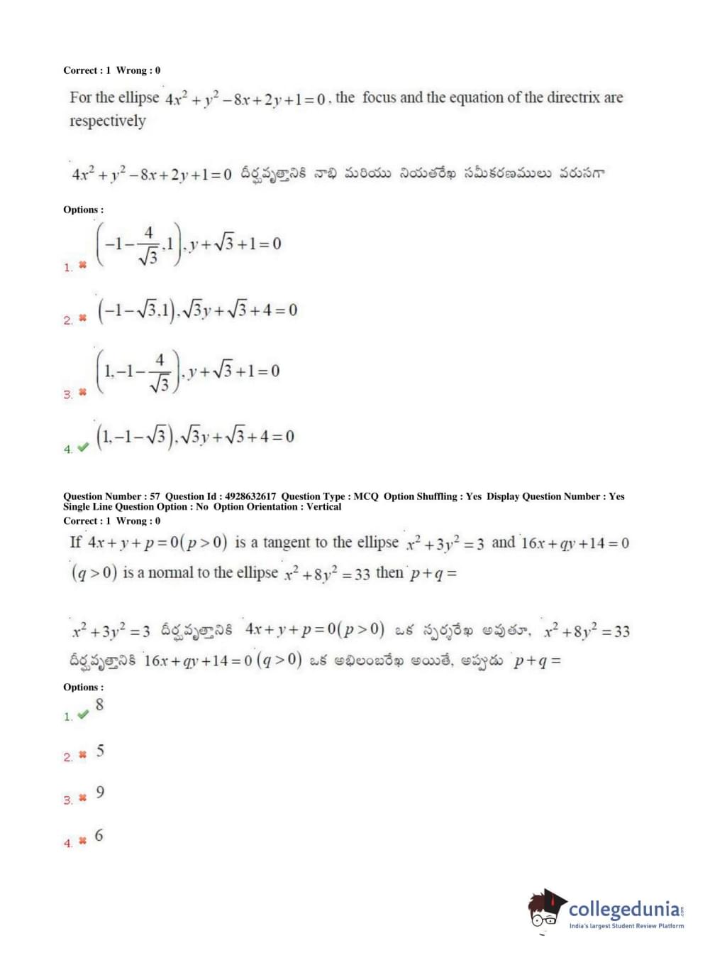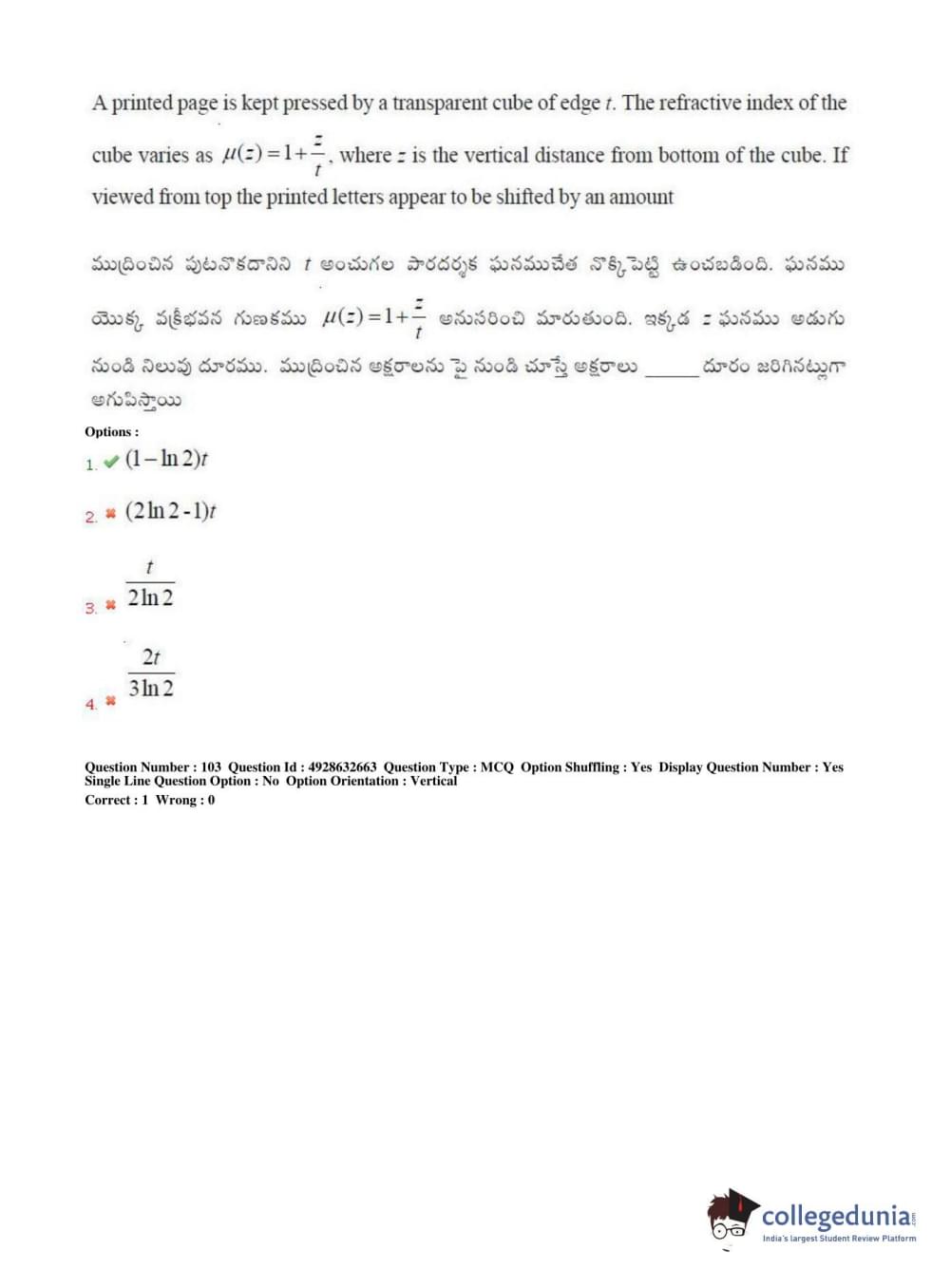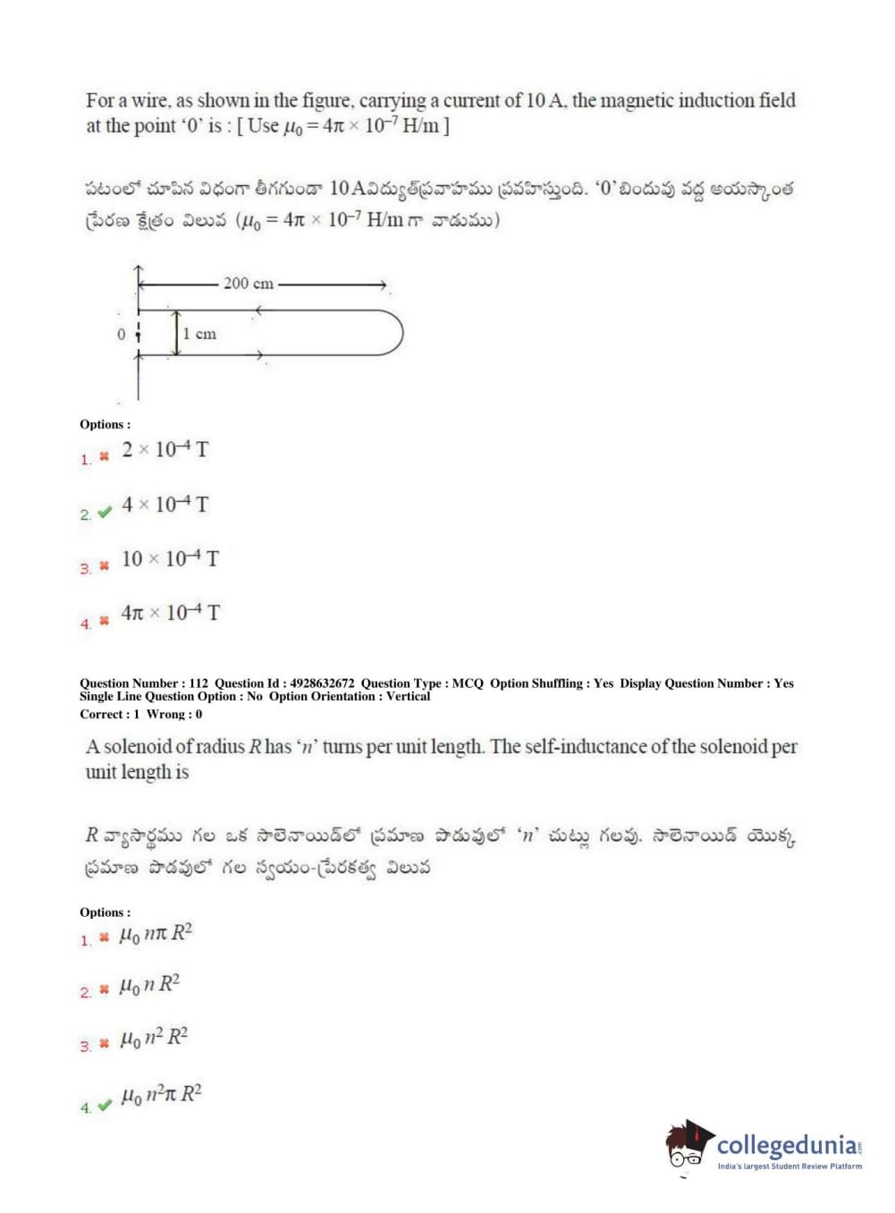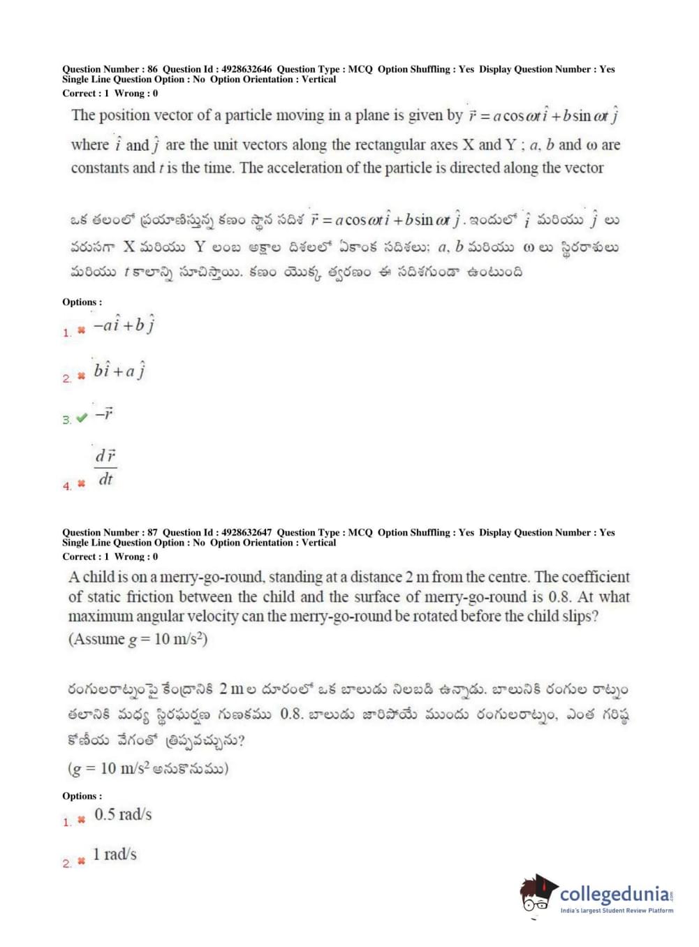 TS EAMCET 2018 Engineering Question Paper with Answer Key PDFs Forenoon Session