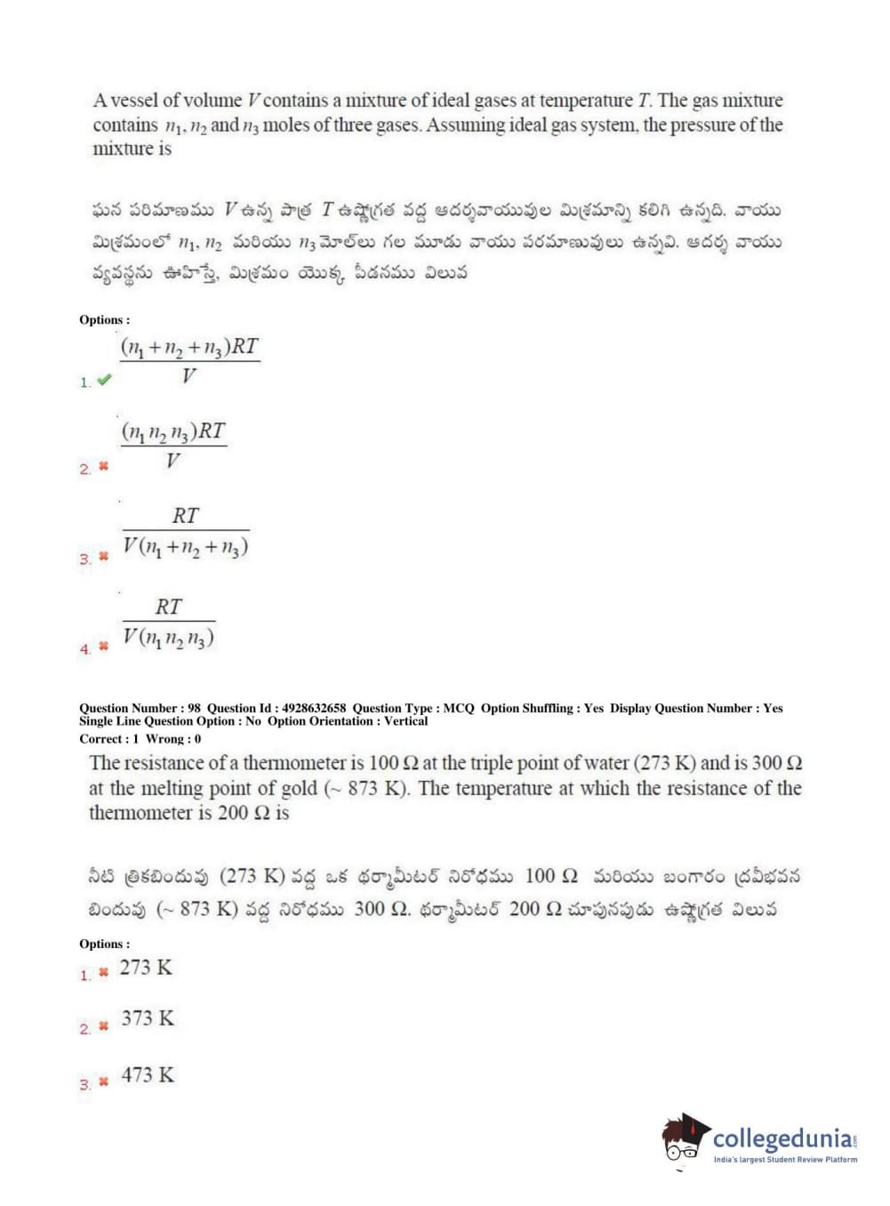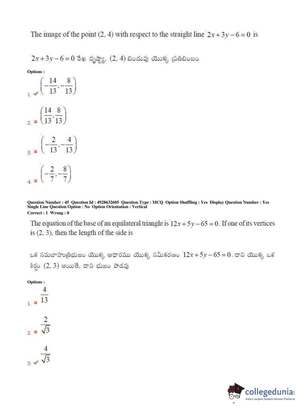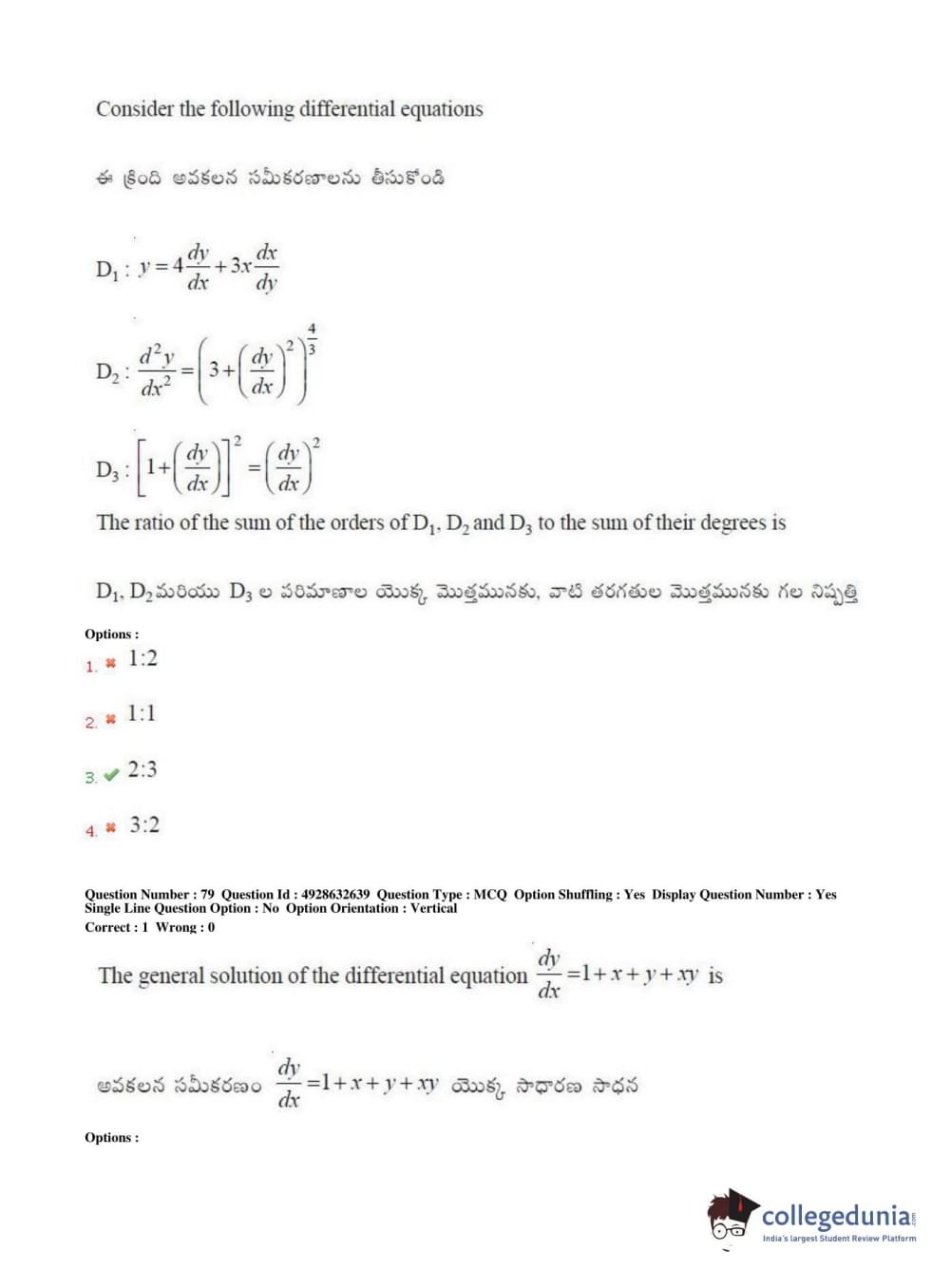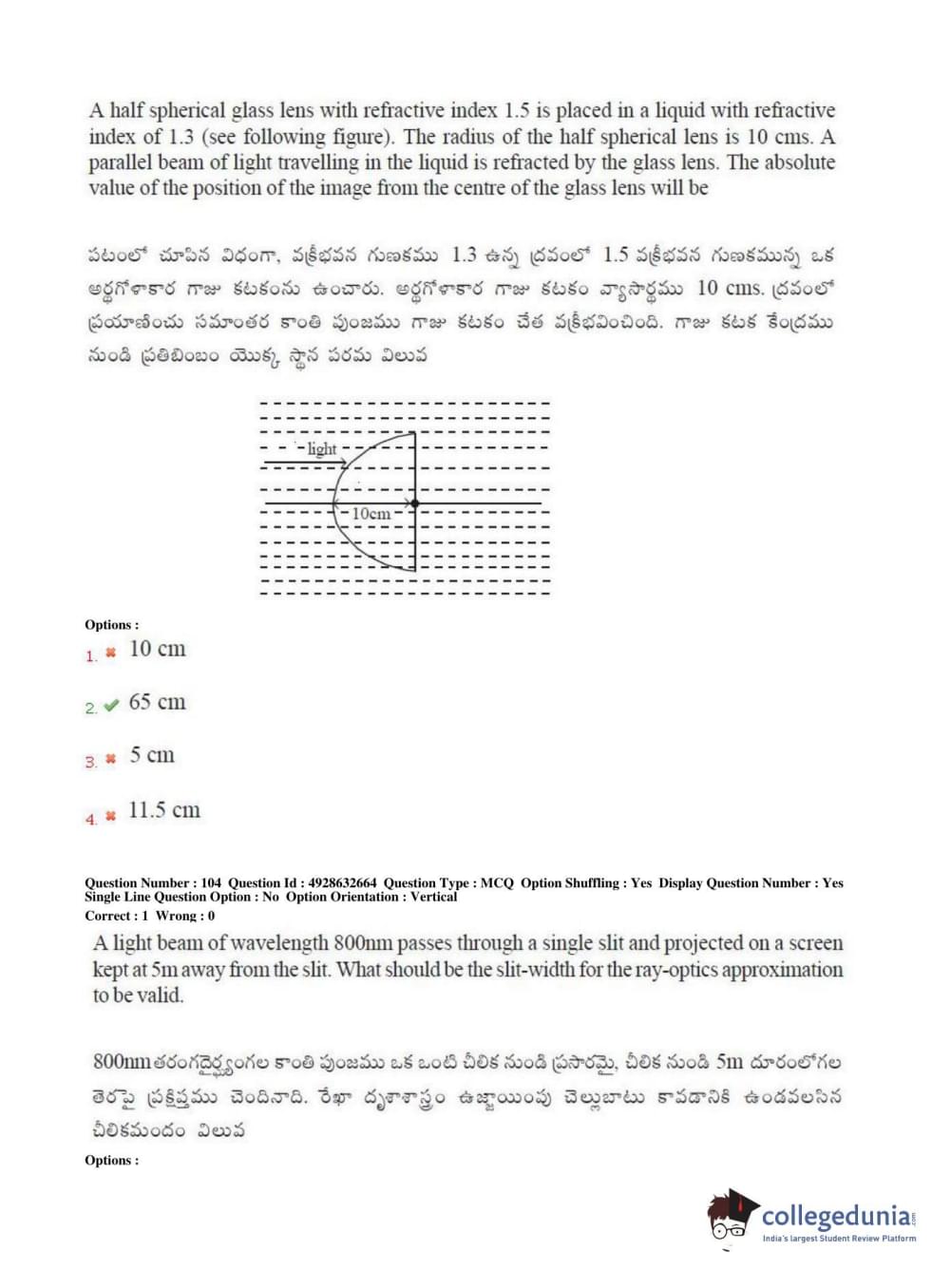 TS EAMCET 2018 Engineering Question Paper with Answer Key PDFs Forenoon Session