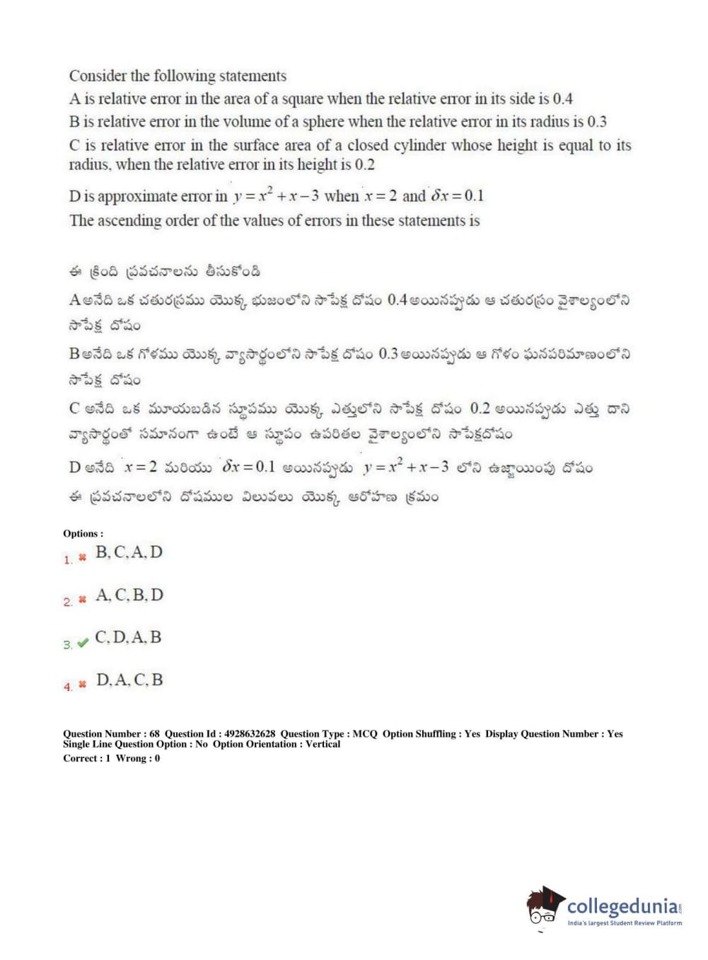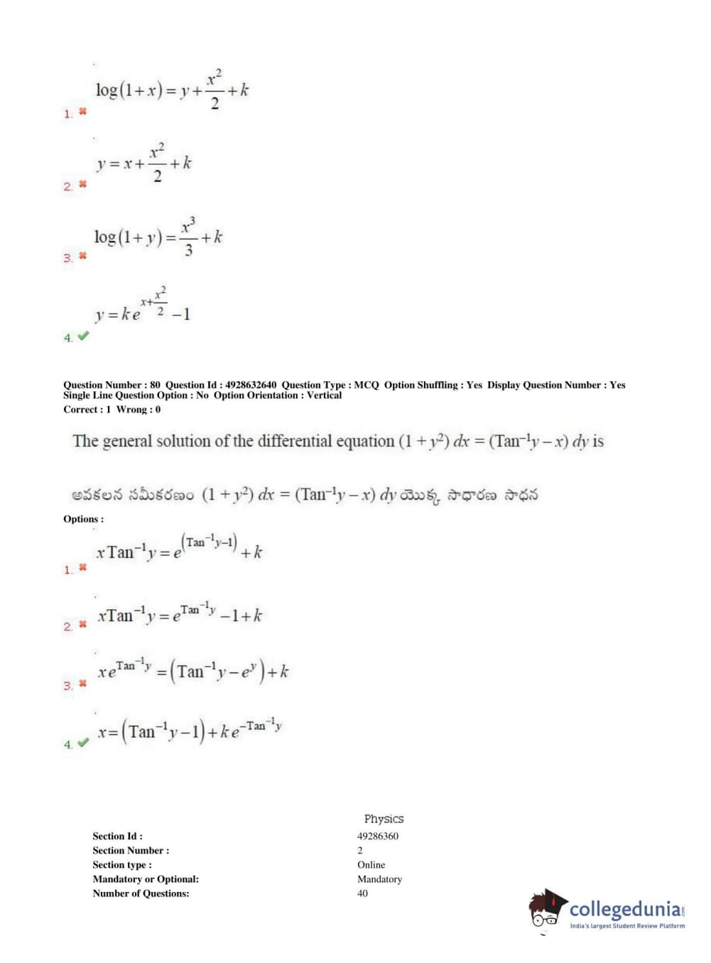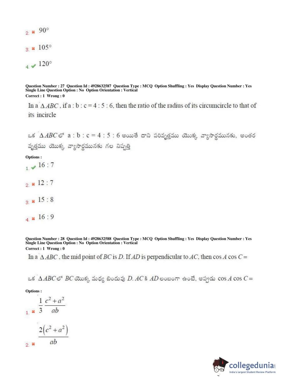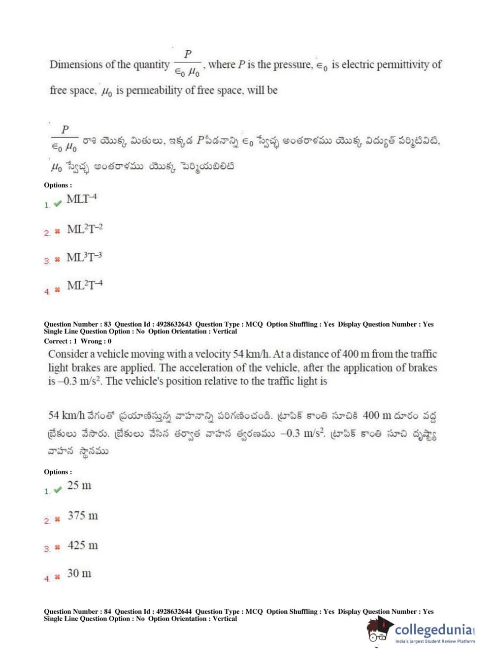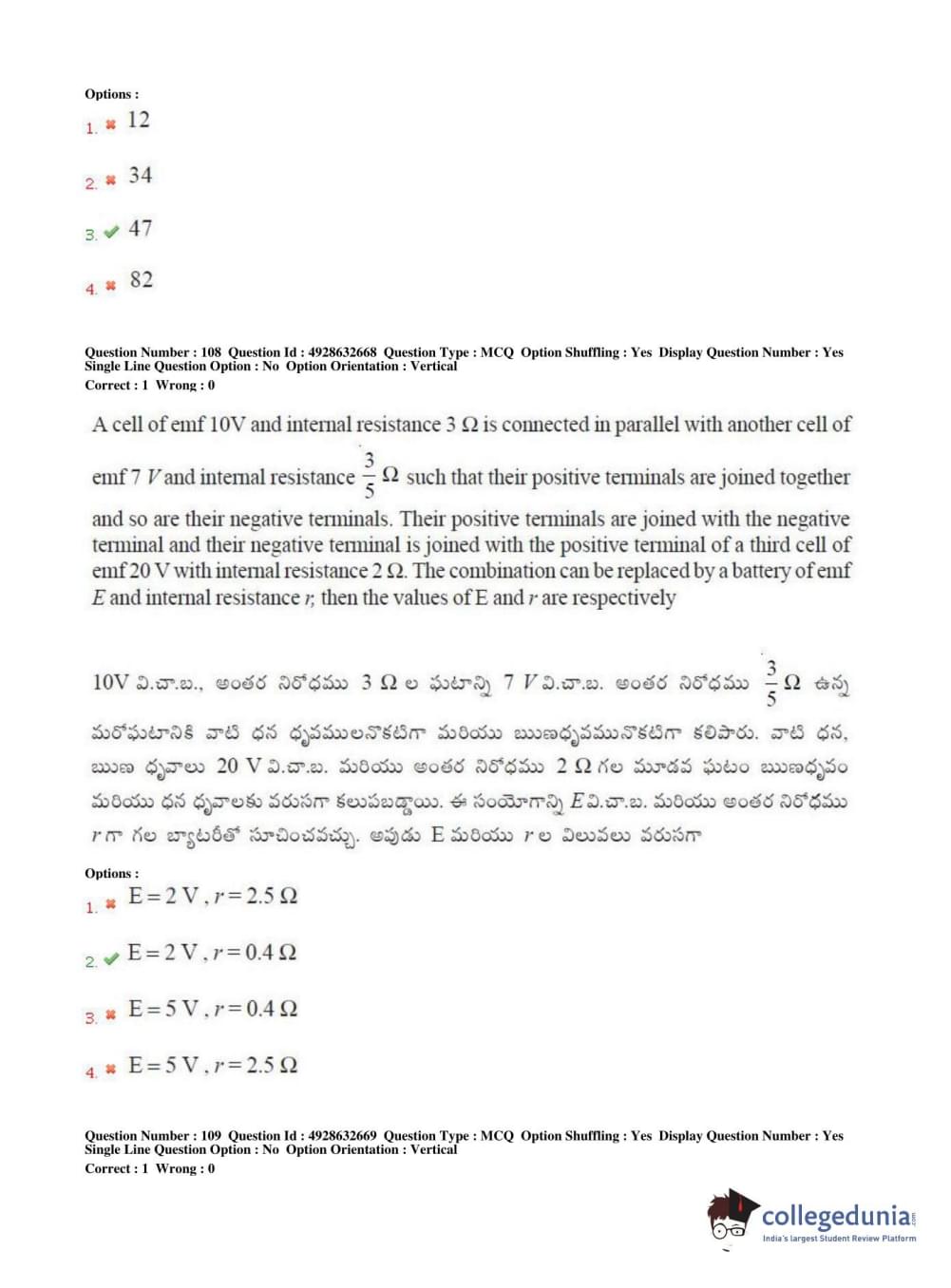 TS EAMCET 2018 Engineering Question Paper with Answer Key PDFs Forenoon Session