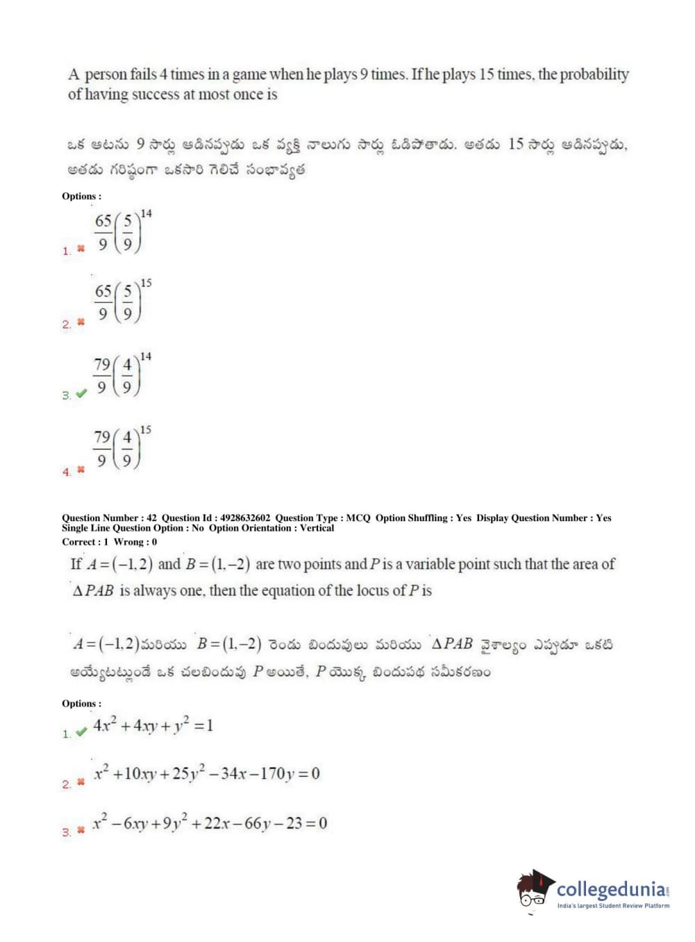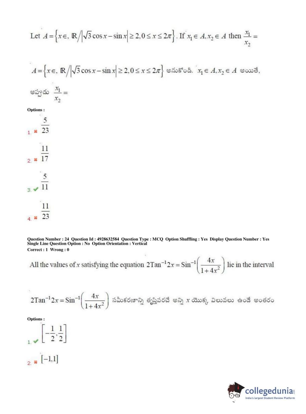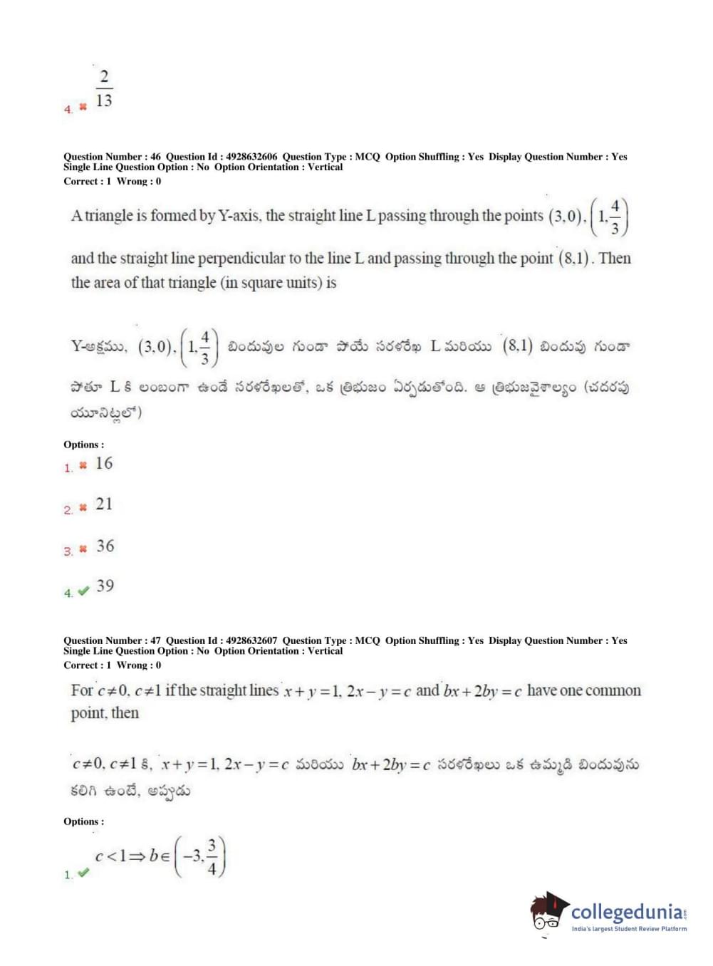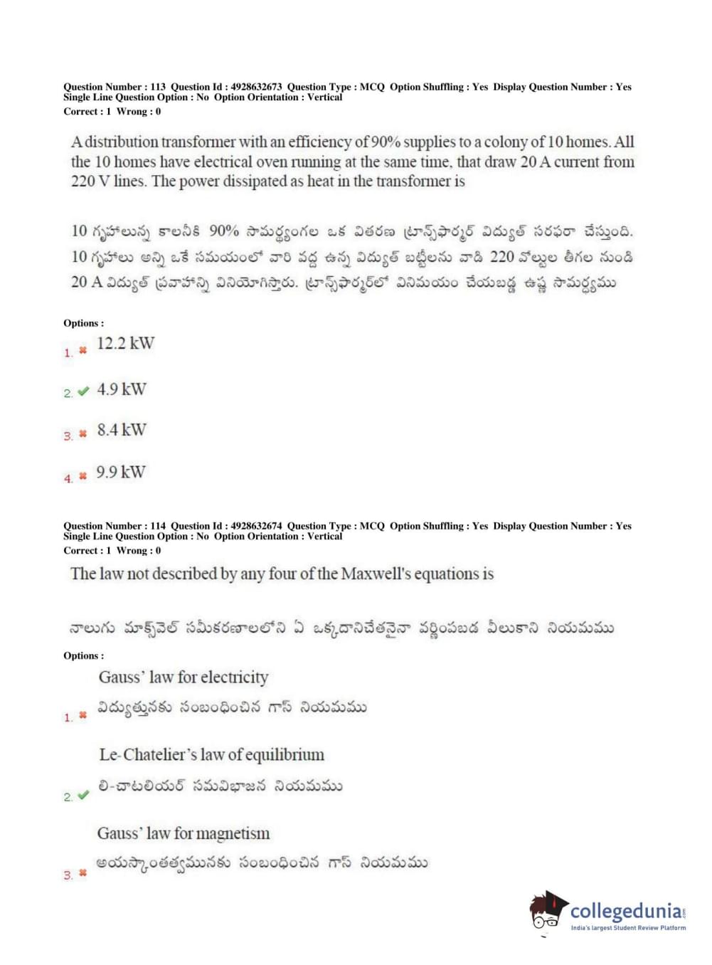 TS EAMCET 2018 Engineering Question Paper with Answer Key PDFs Forenoon Session