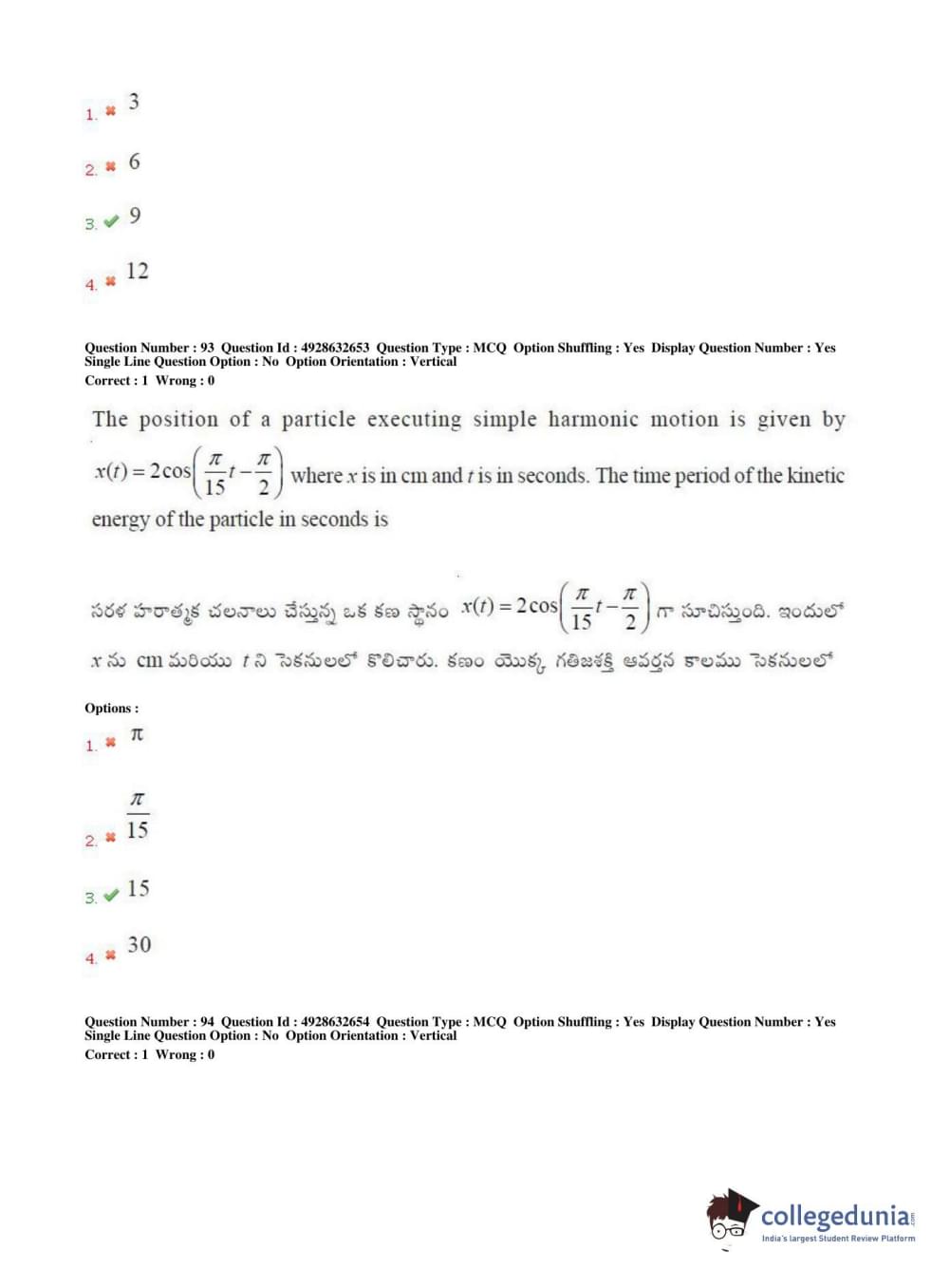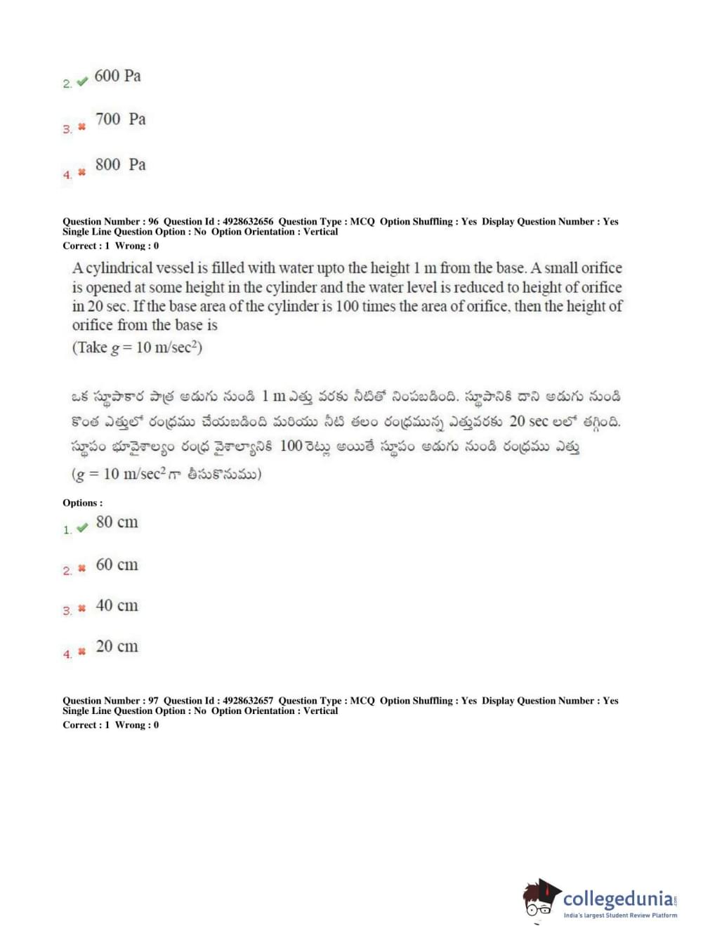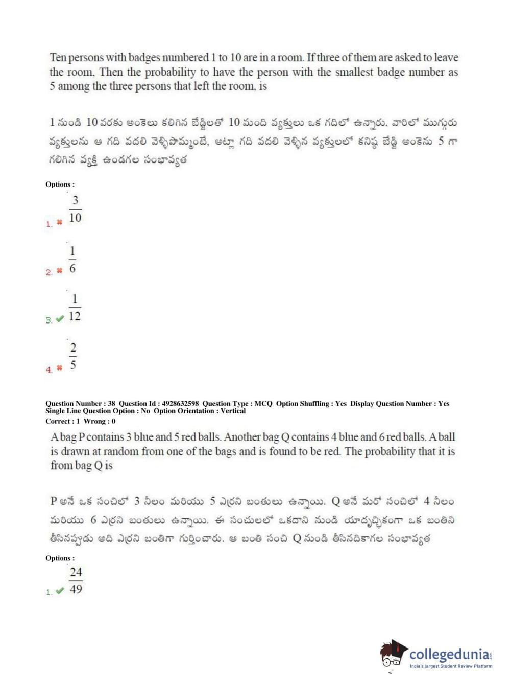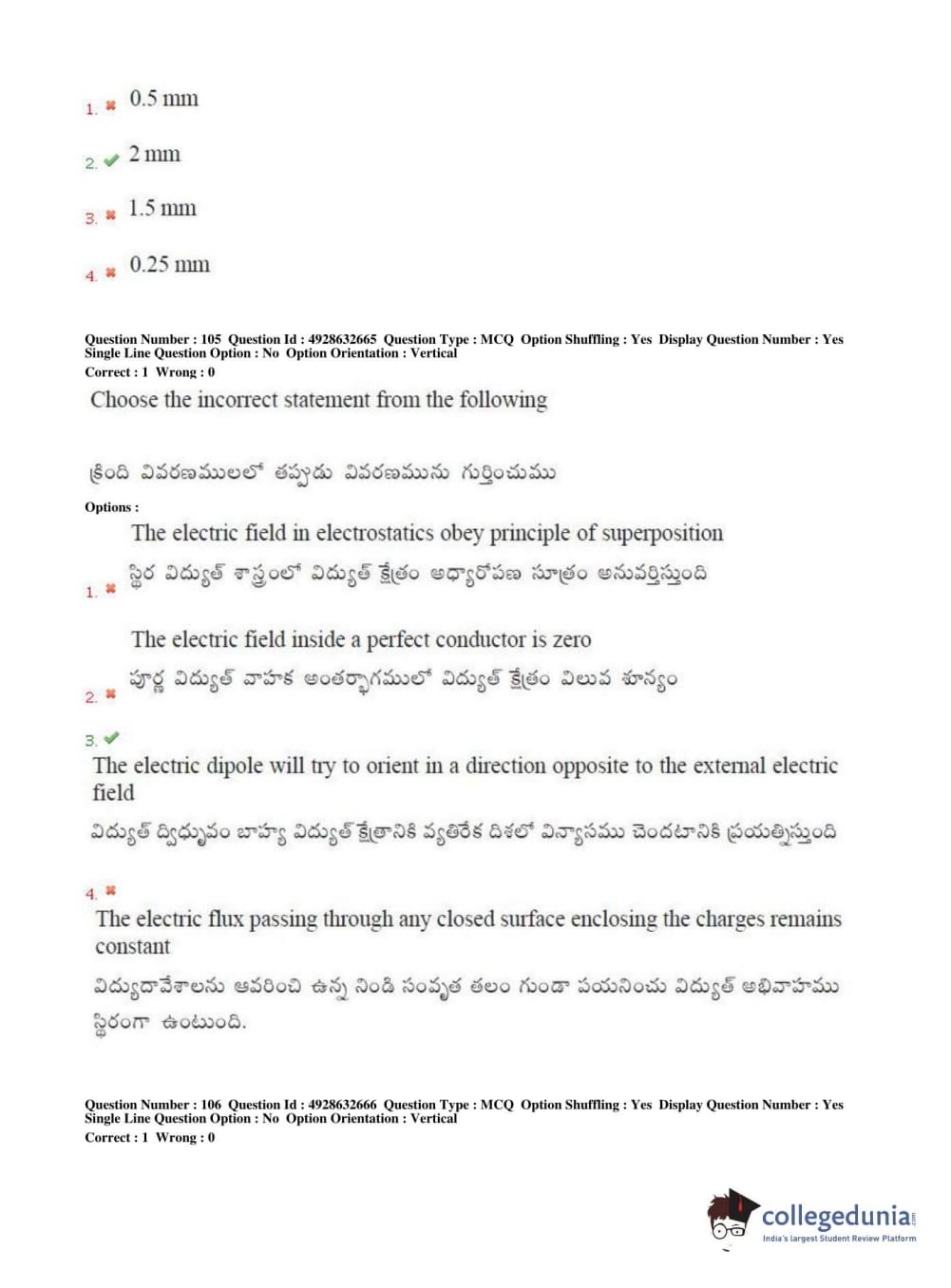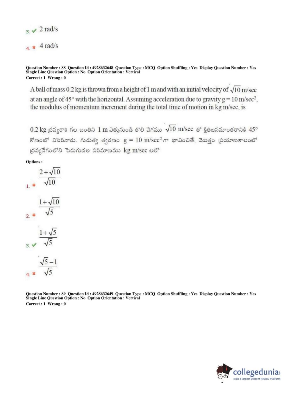 TS EAMCET 2018 Engineering Question Paper with Answer Key PDFs Forenoon Session