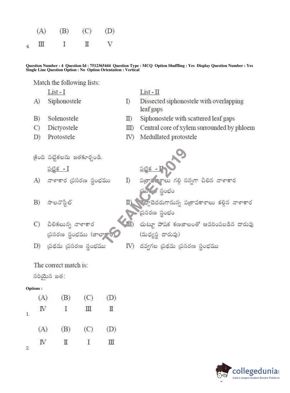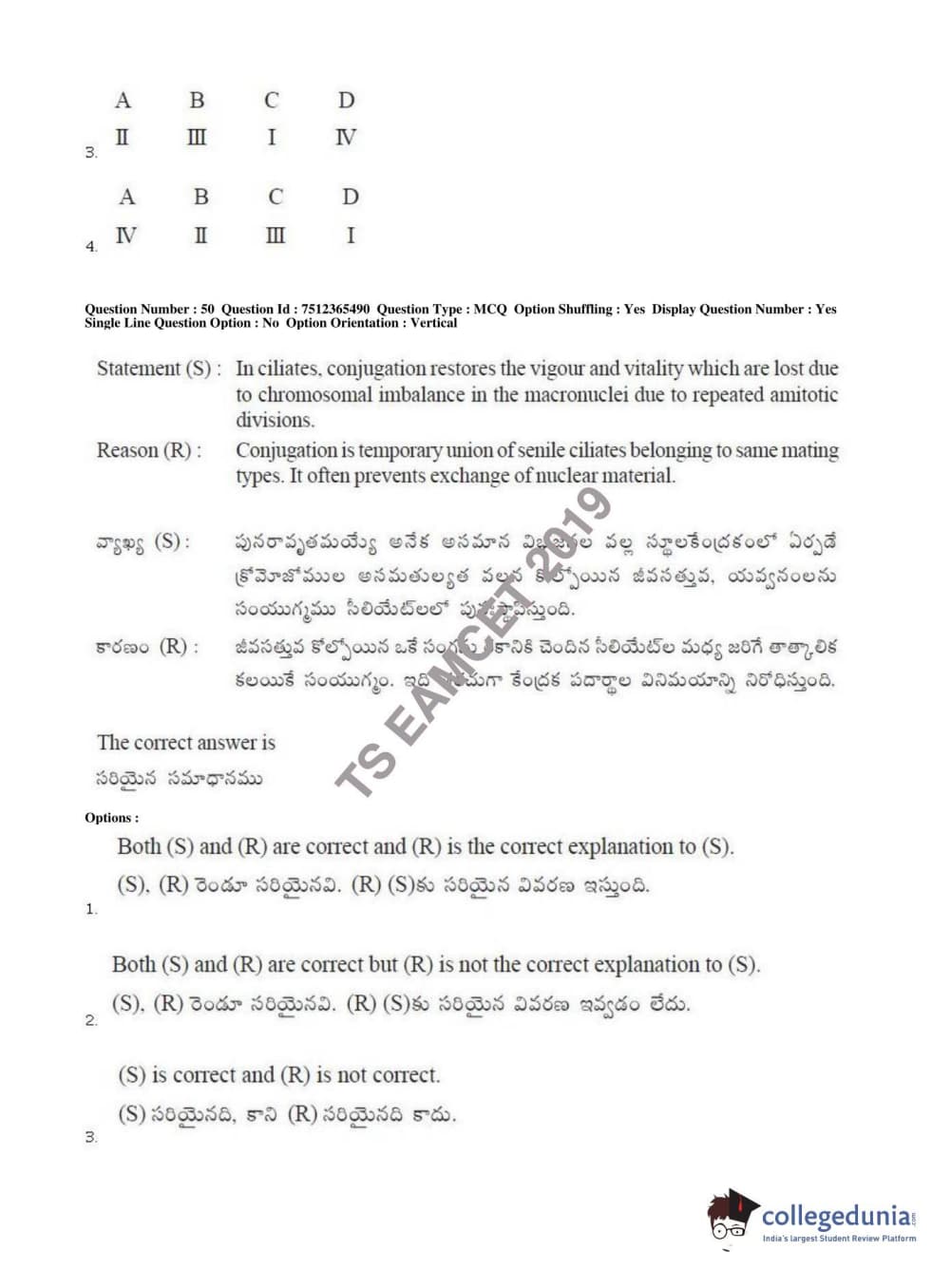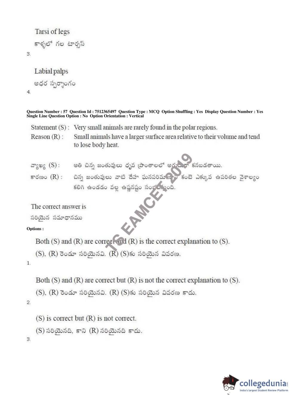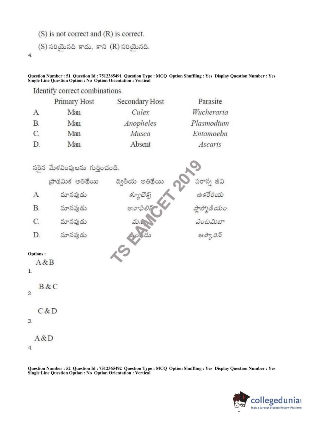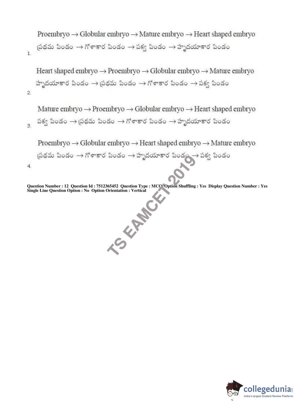 TS EAMCET 2019 Agriculture and Medical Question Paper with Answer Key PDFs Afternoon Session