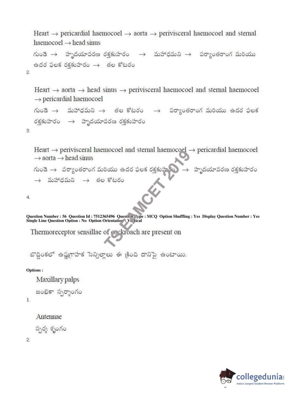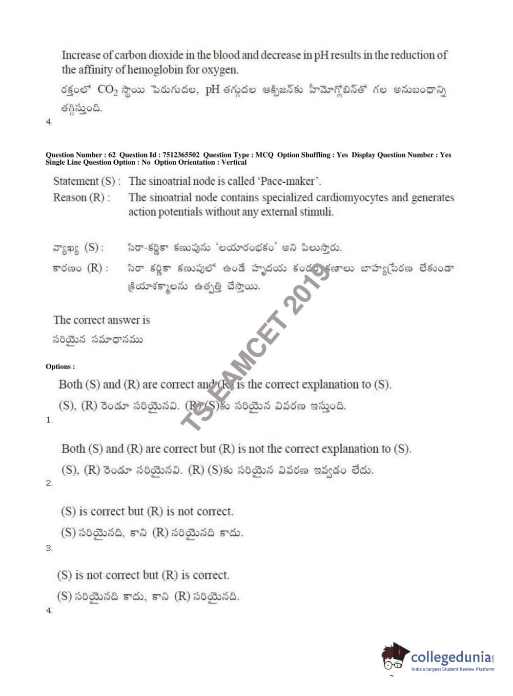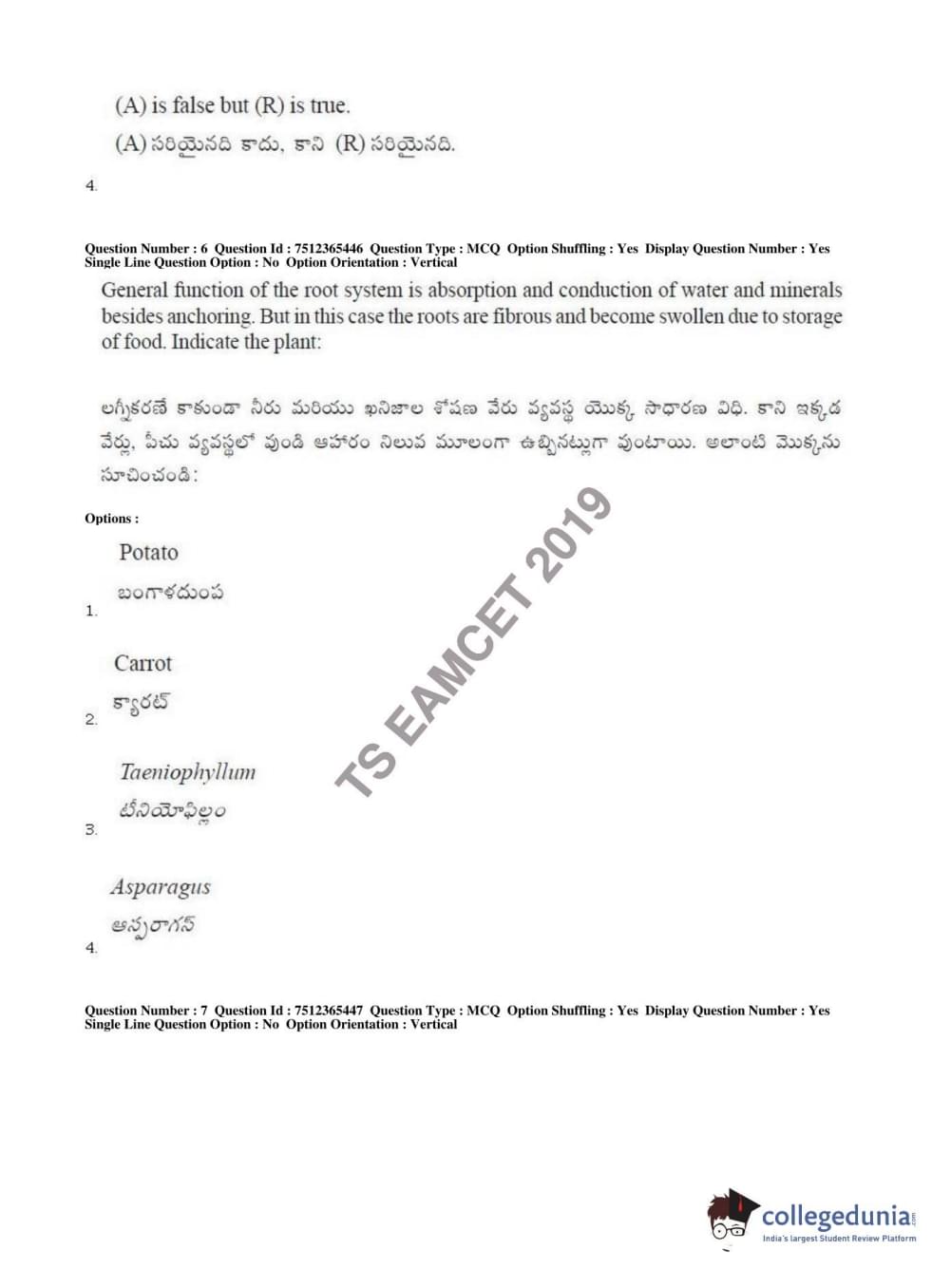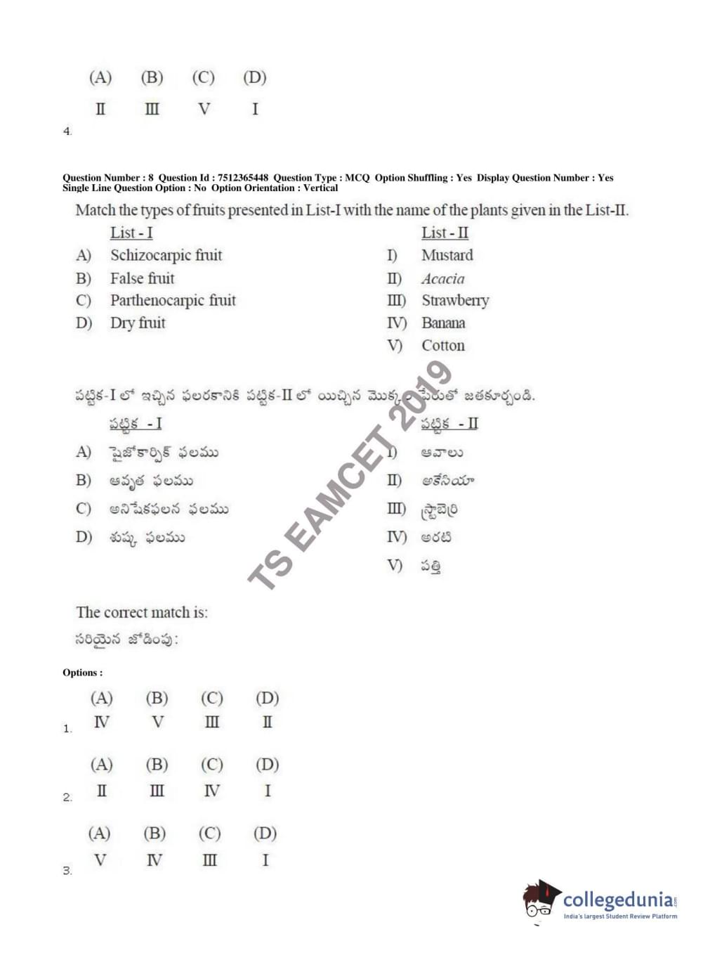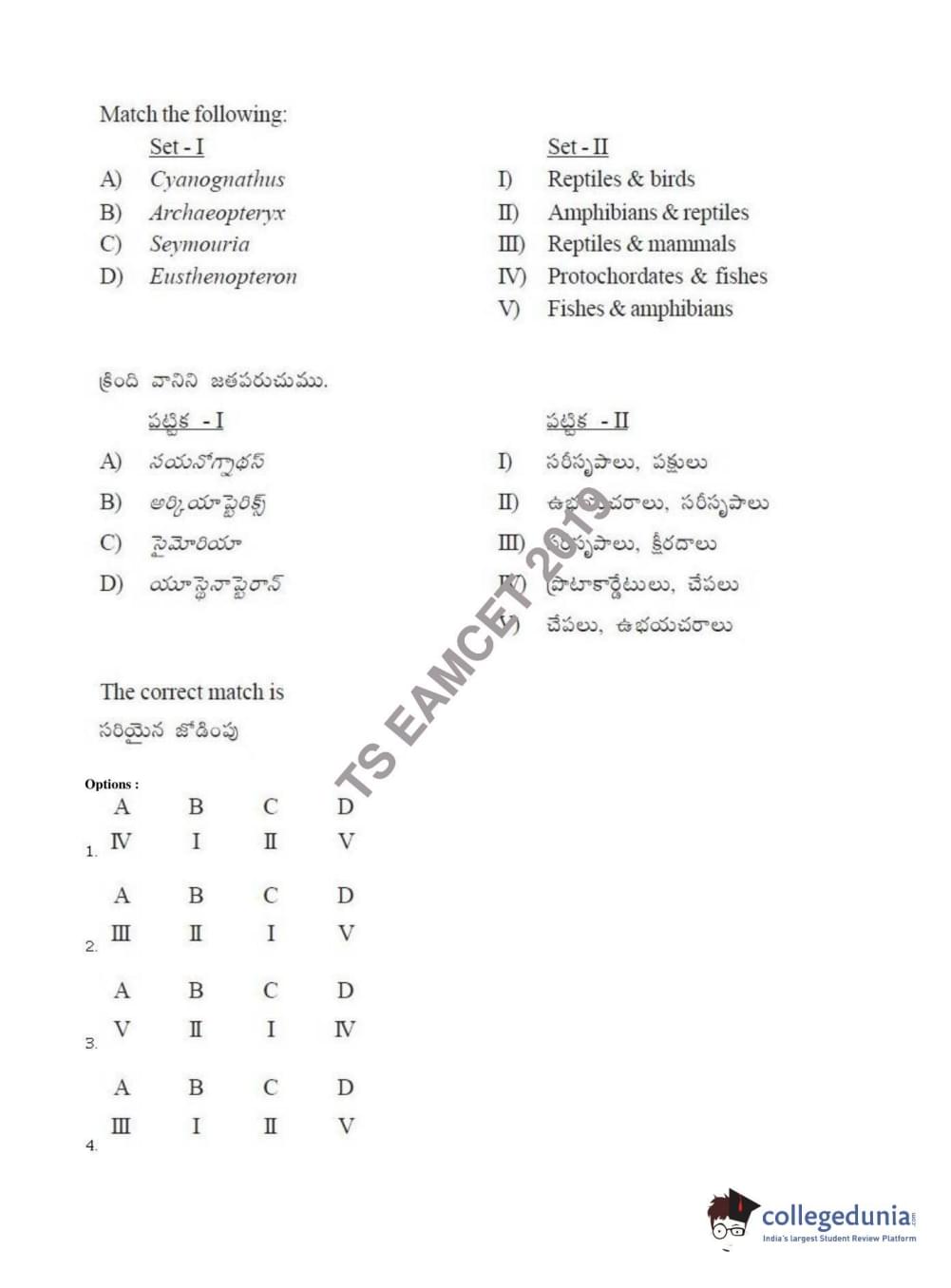 TS EAMCET 2019 Agriculture and Medical Question Paper with Answer Key PDFs Afternoon Session