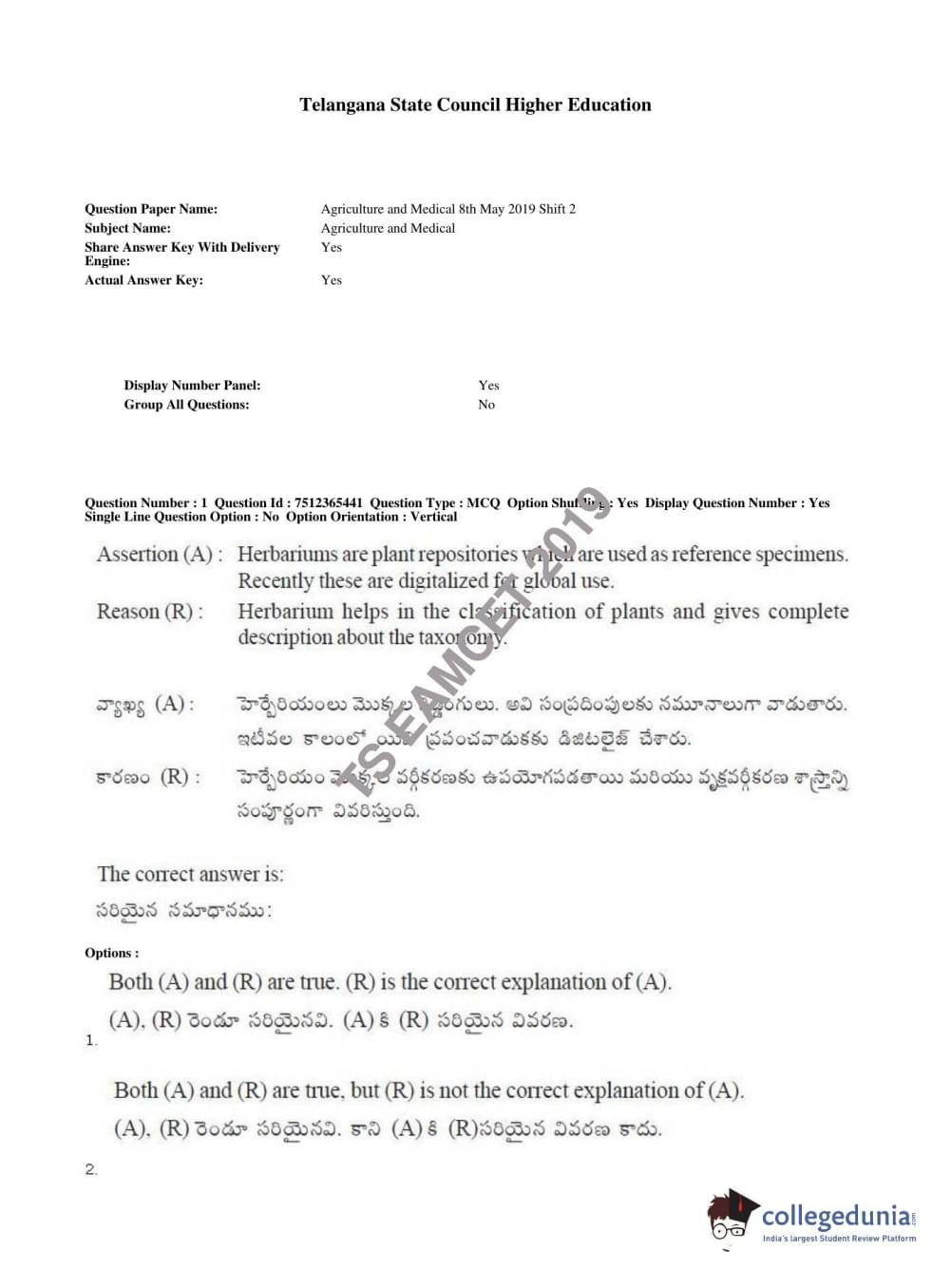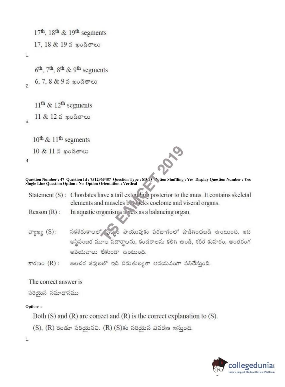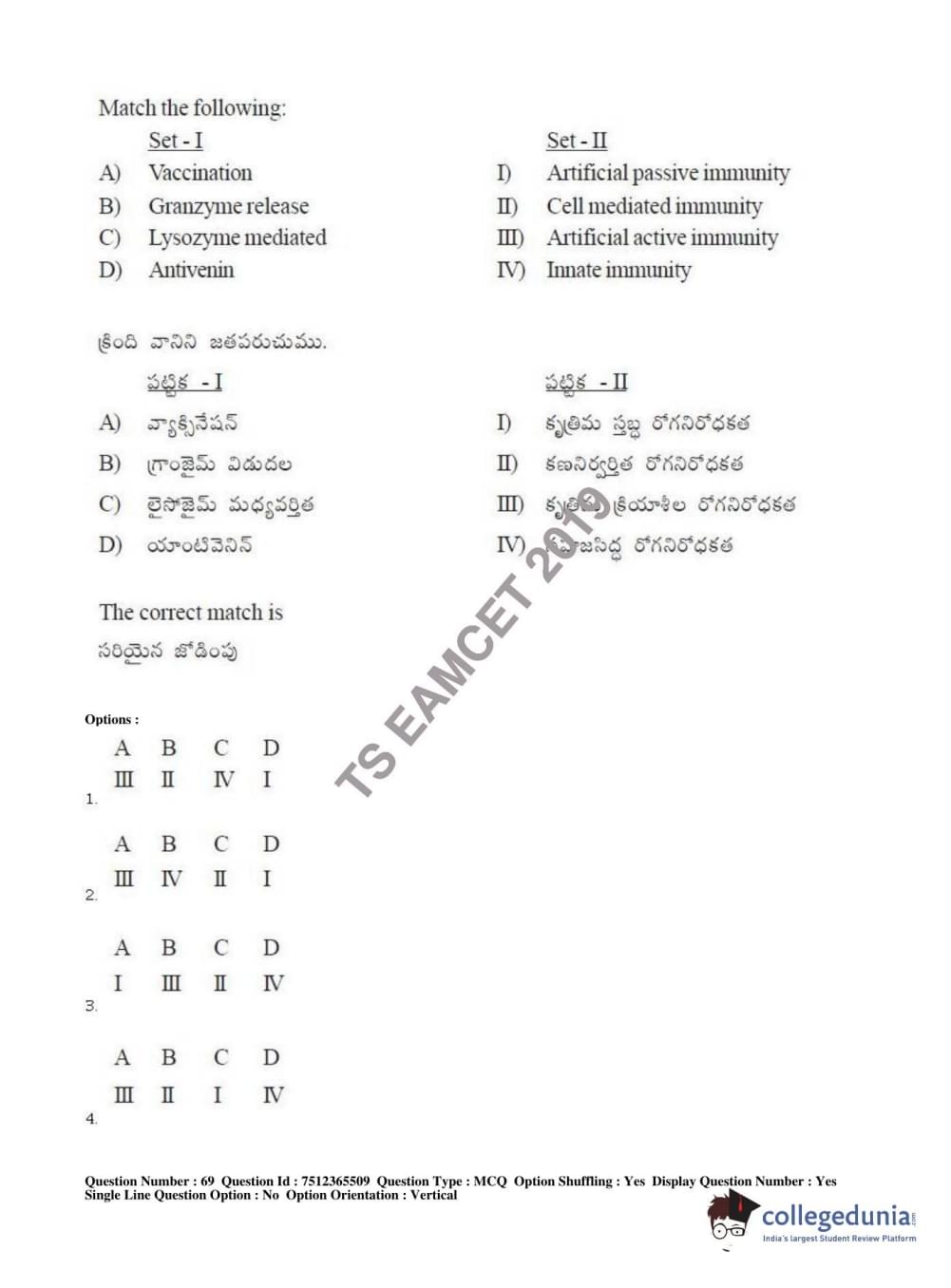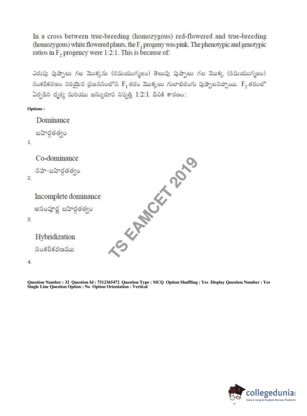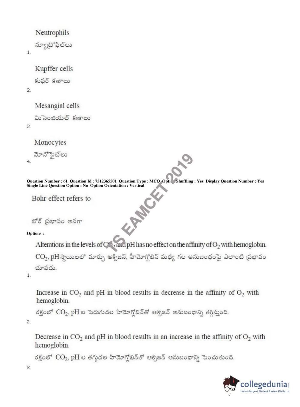 TS EAMCET 2019 Agriculture and Medical Question Paper with Answer Key PDFs Afternoon Session
