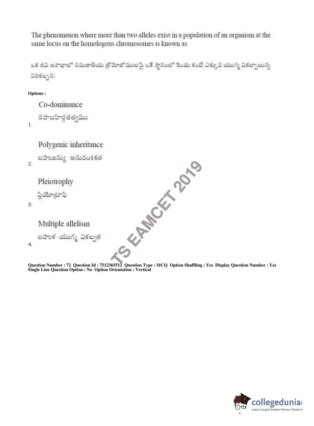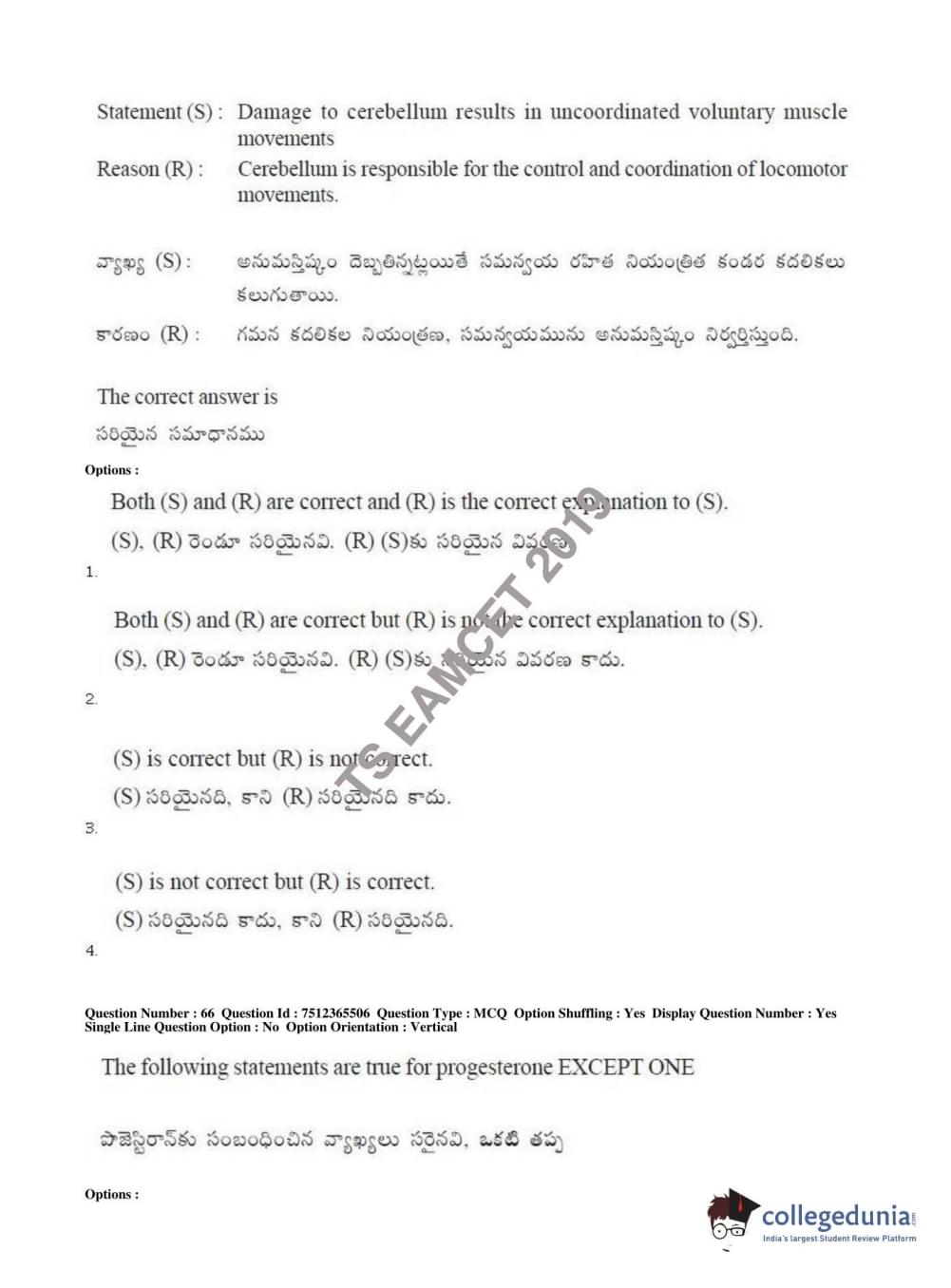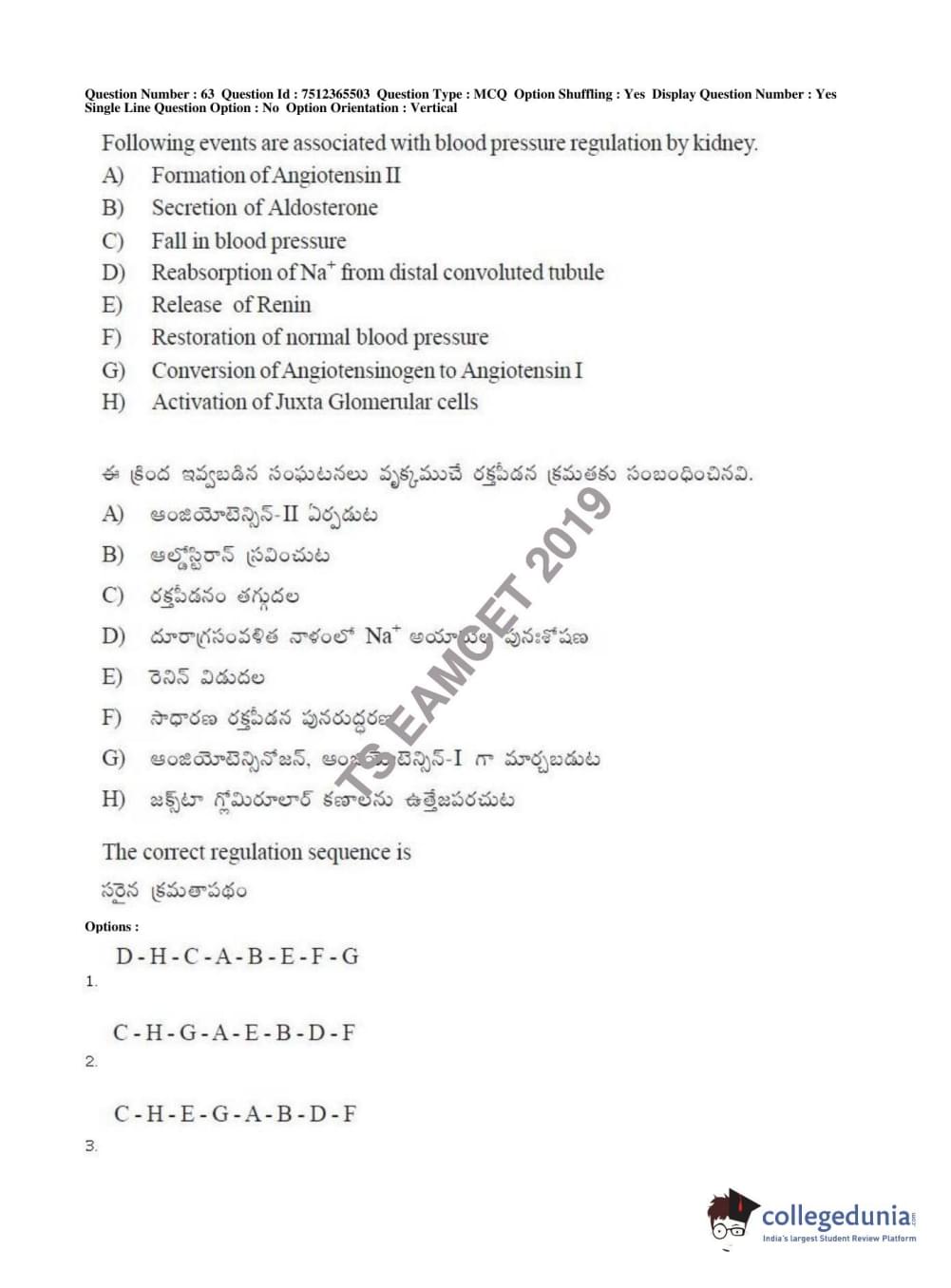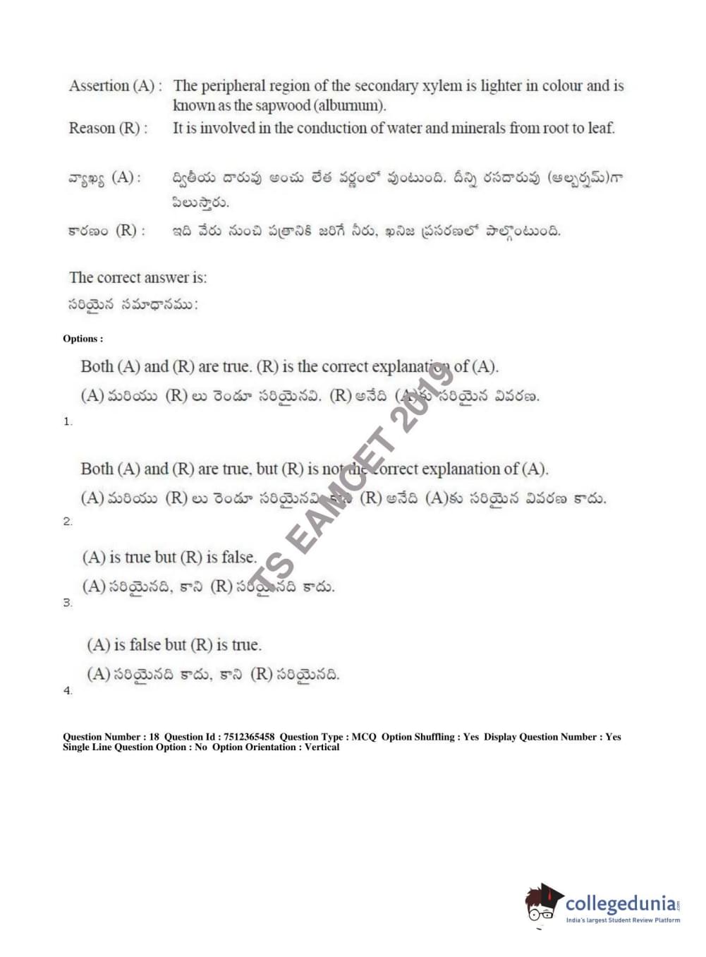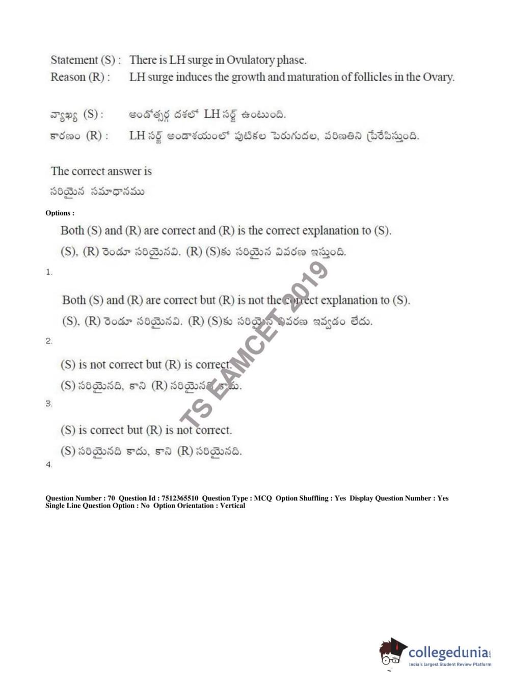 TS EAMCET 2019 Agriculture and Medical Question Paper with Answer Key PDFs Afternoon Session