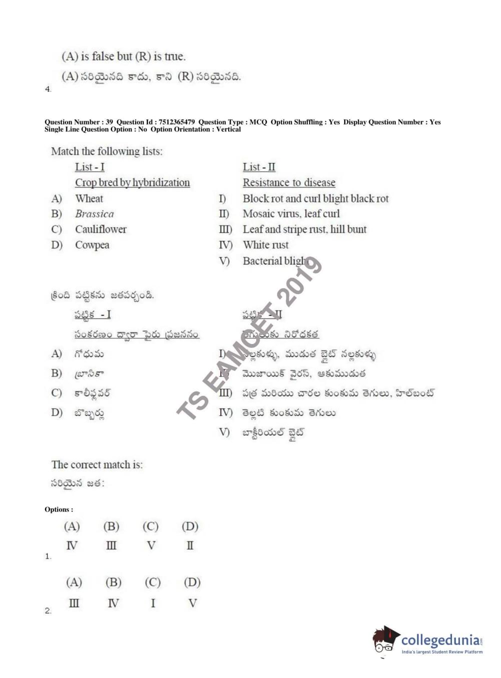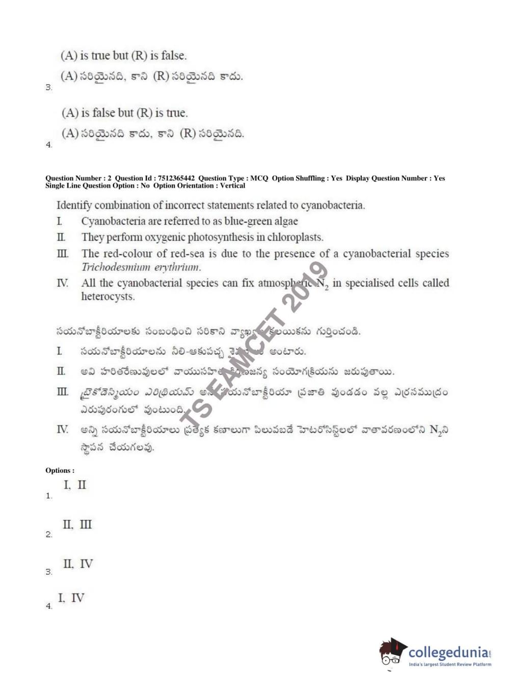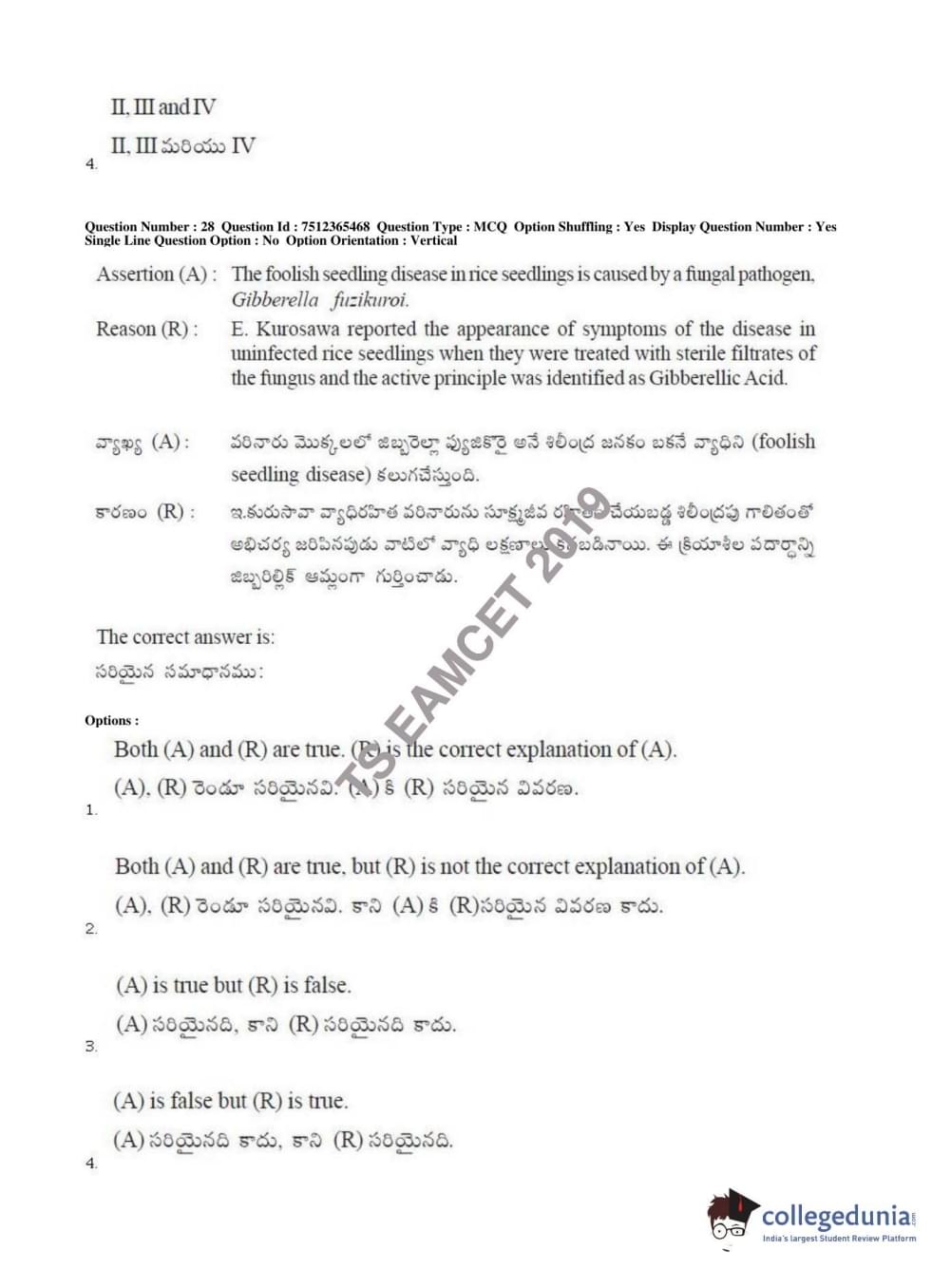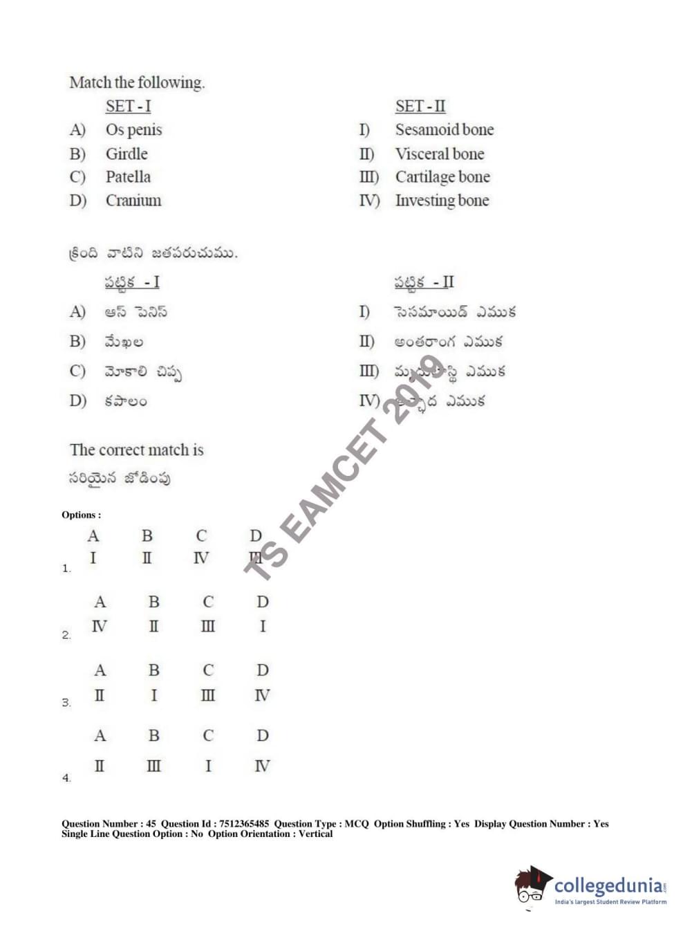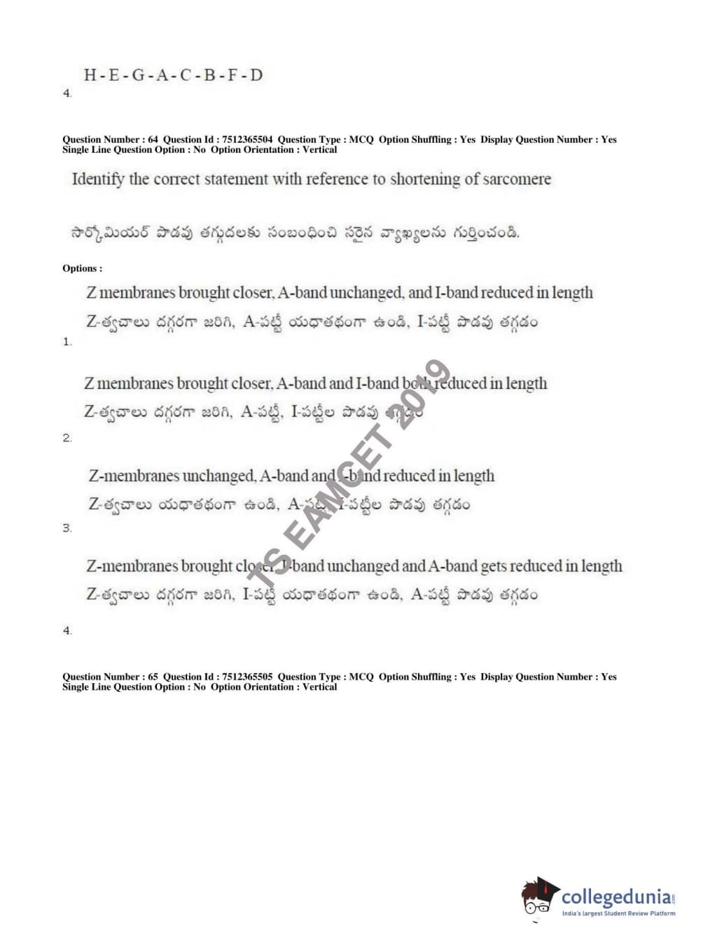 TS EAMCET 2019 Agriculture and Medical Question Paper with Answer Key PDFs Afternoon Session