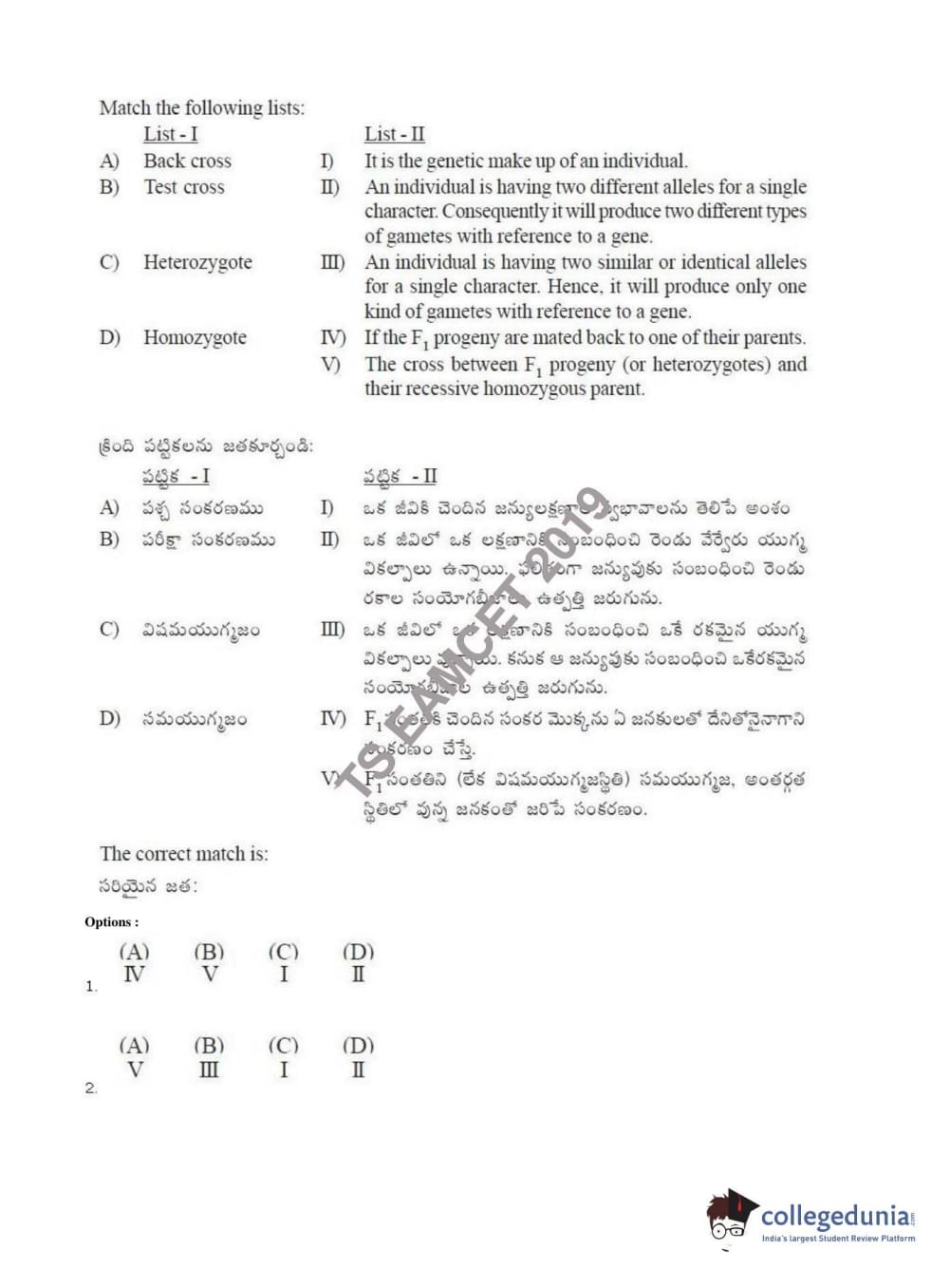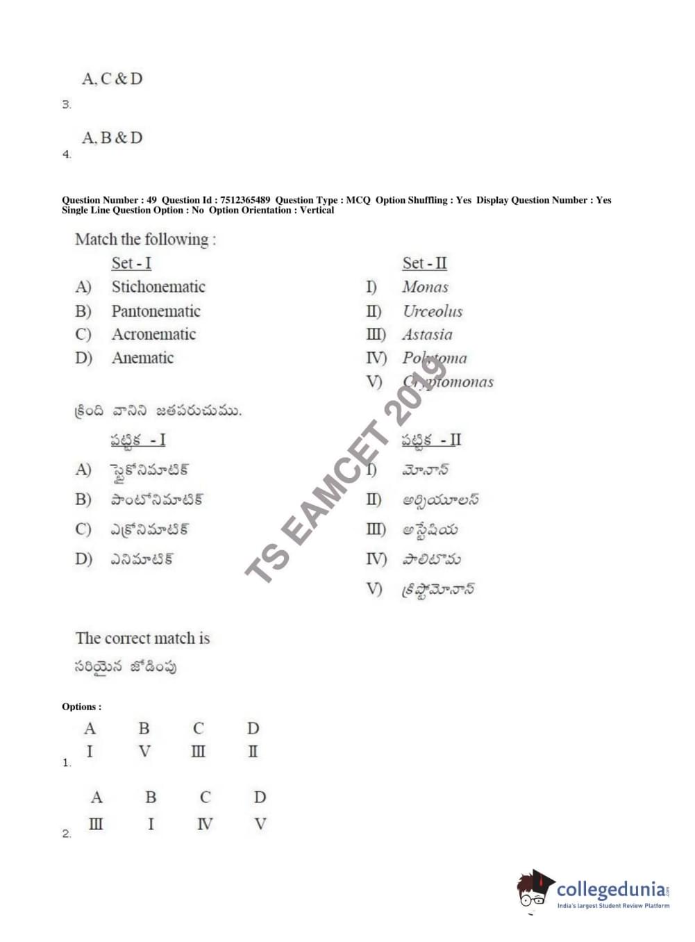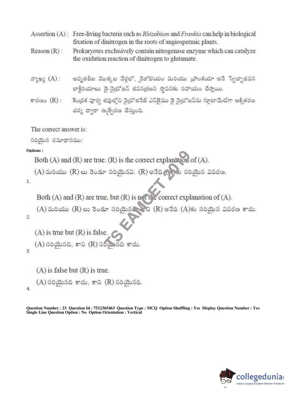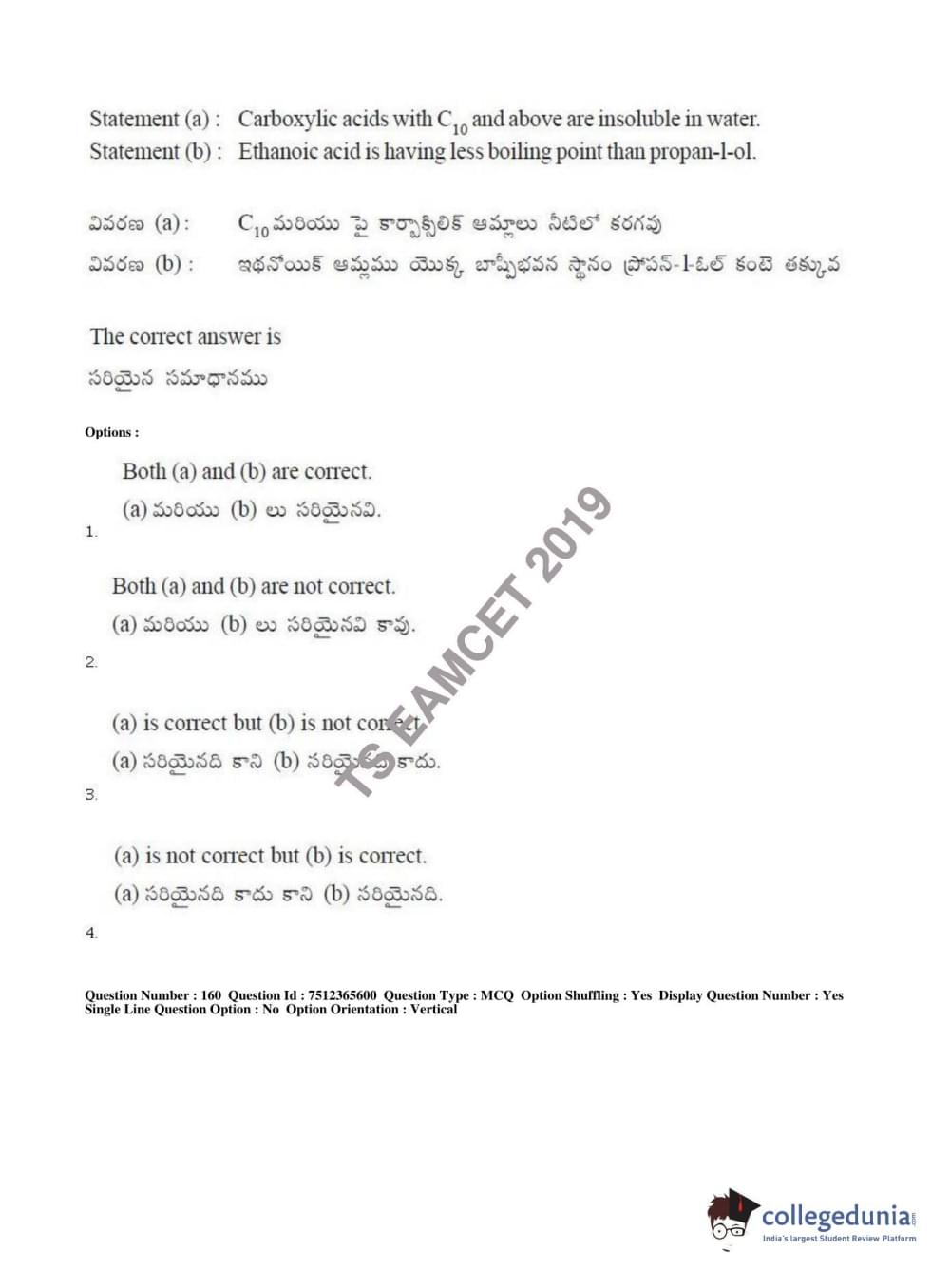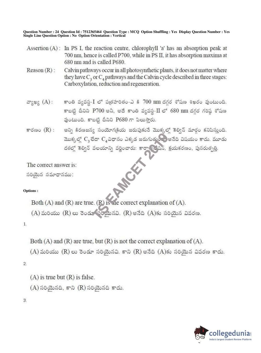 TS EAMCET 2019 Agriculture and Medical Question Paper with Answer Key PDFs Afternoon Session