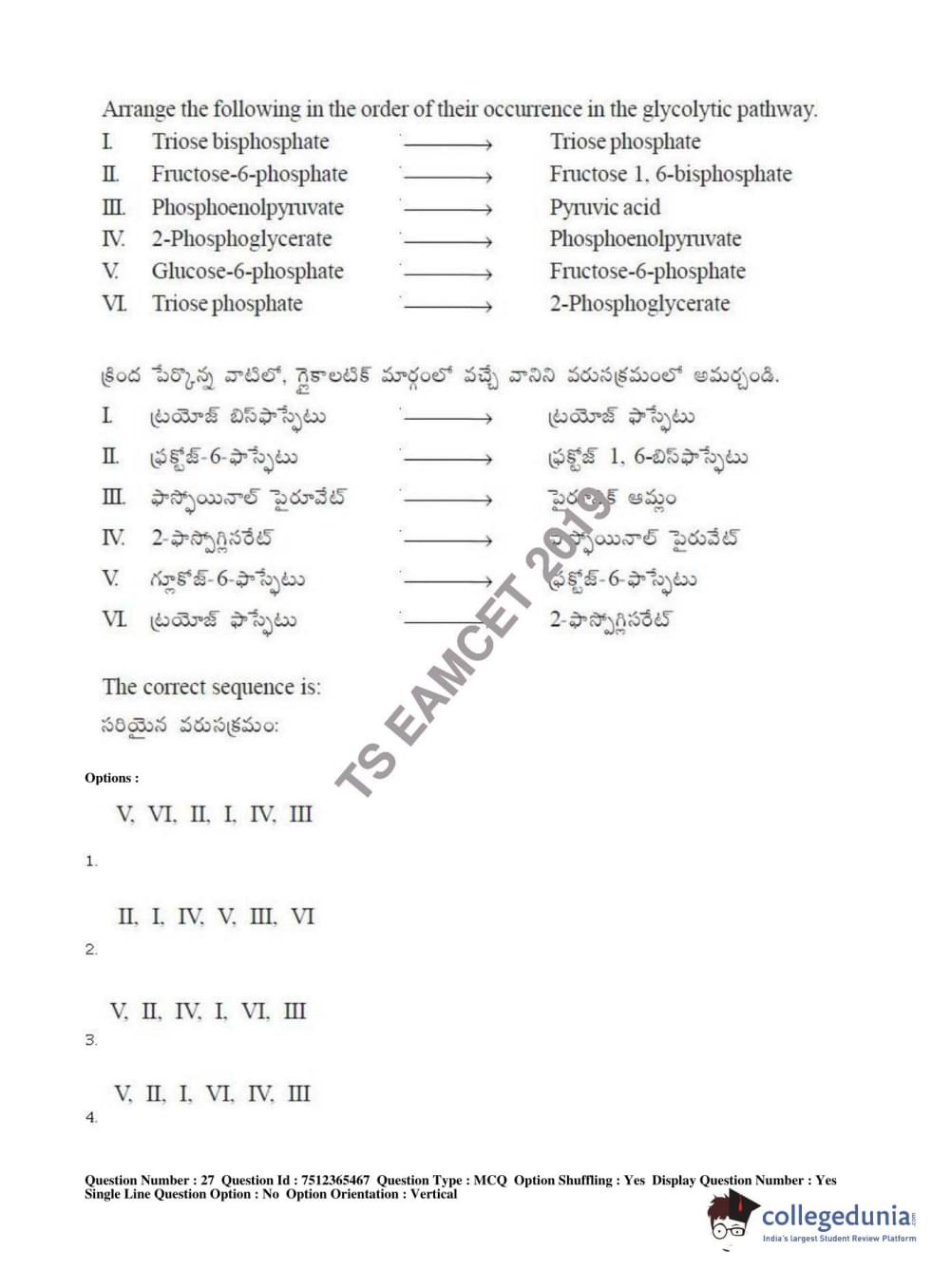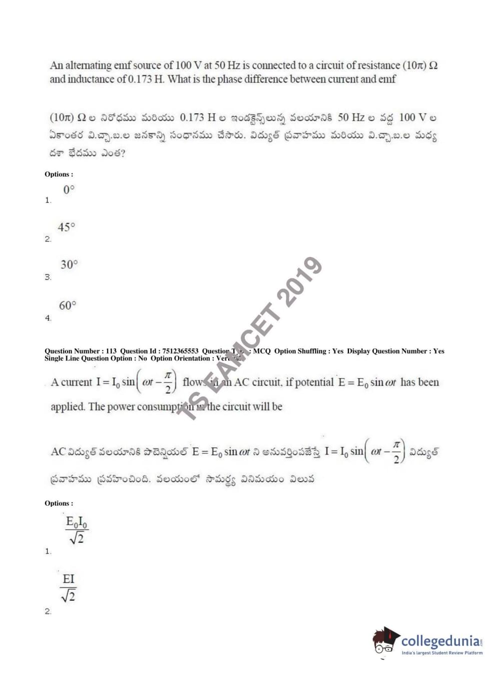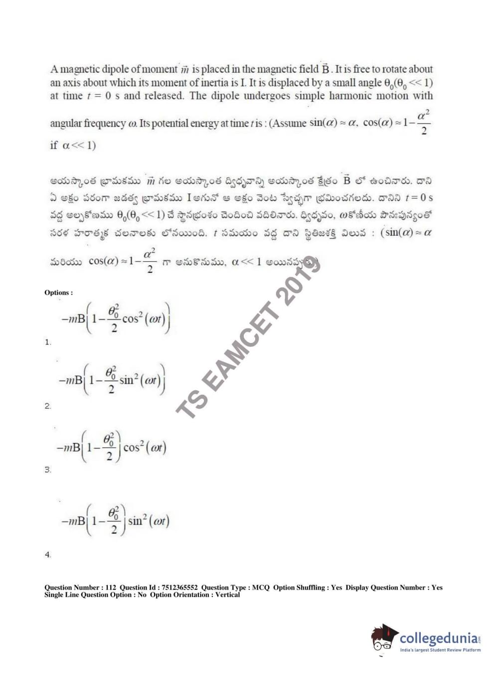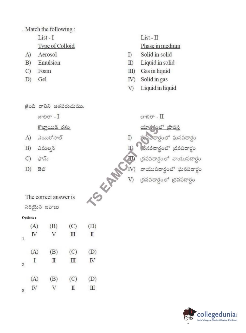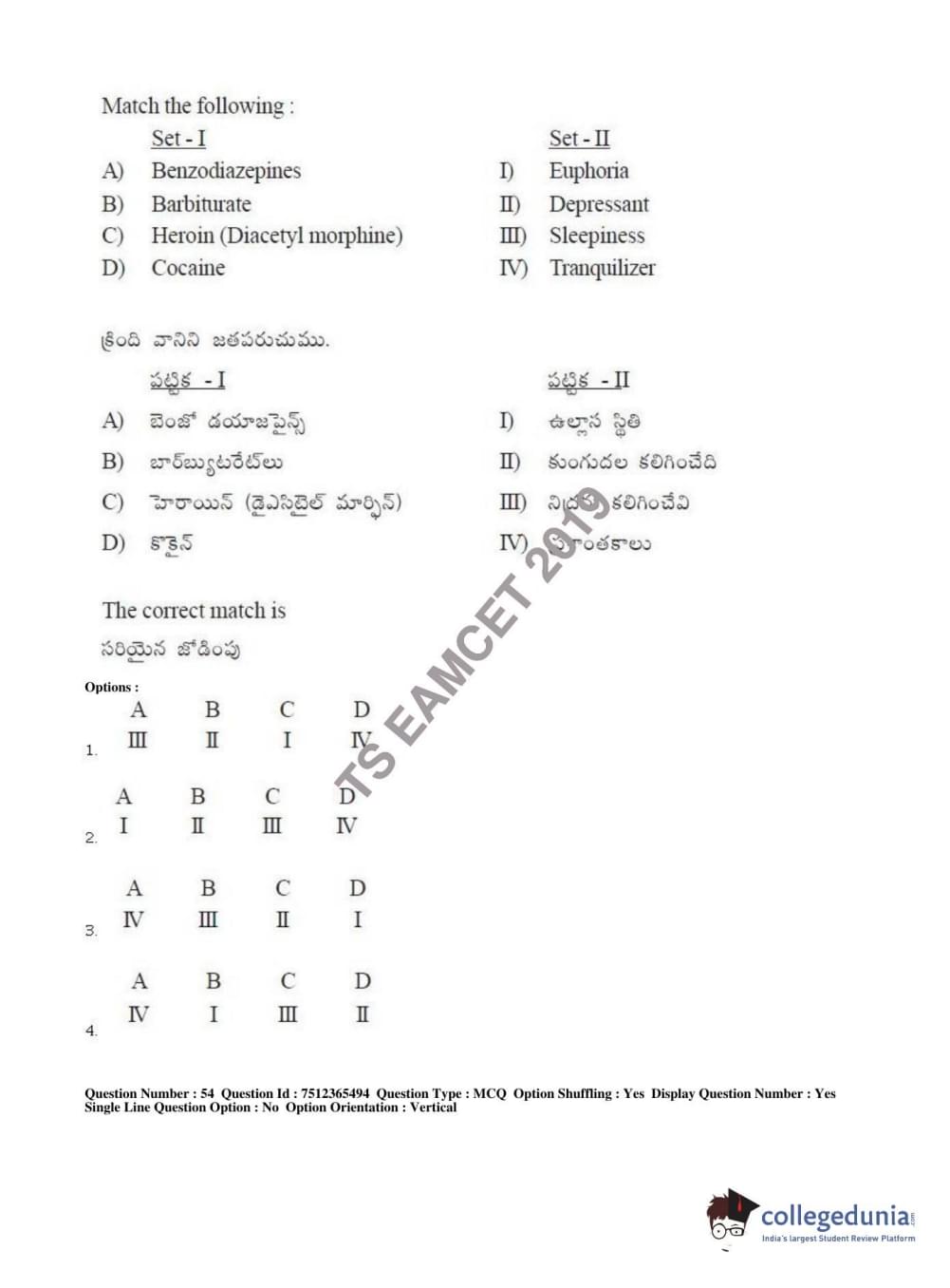 TS EAMCET 2019 Agriculture and Medical Question Paper with Answer Key PDFs Afternoon Session