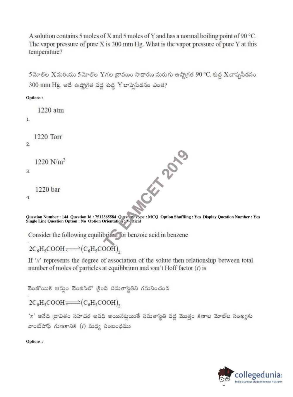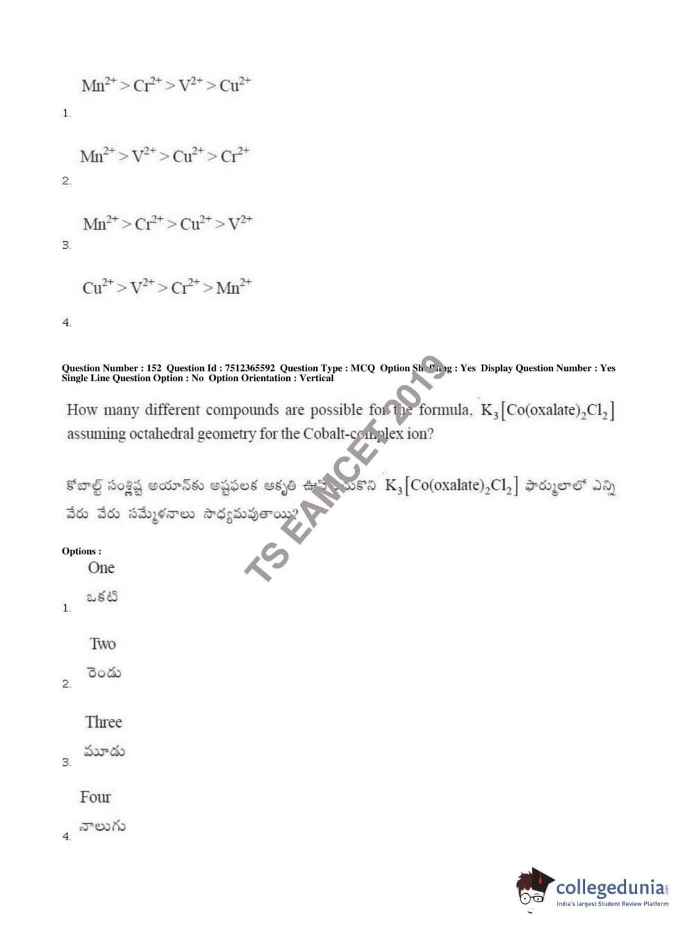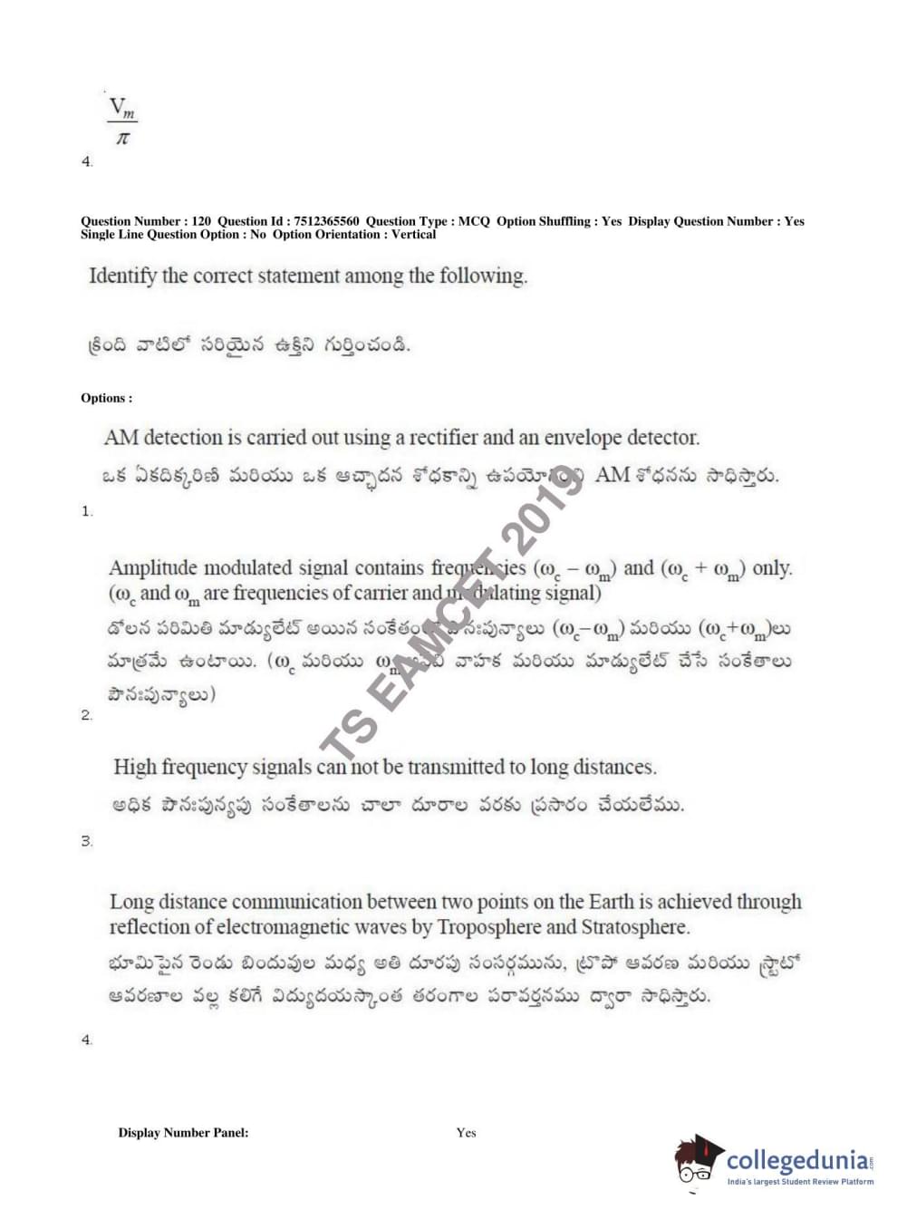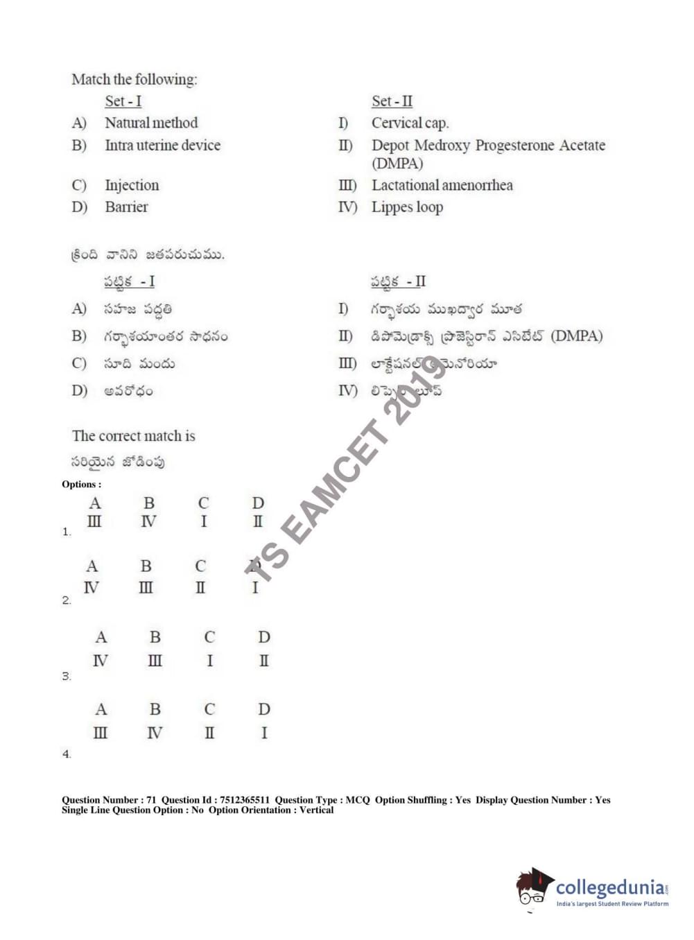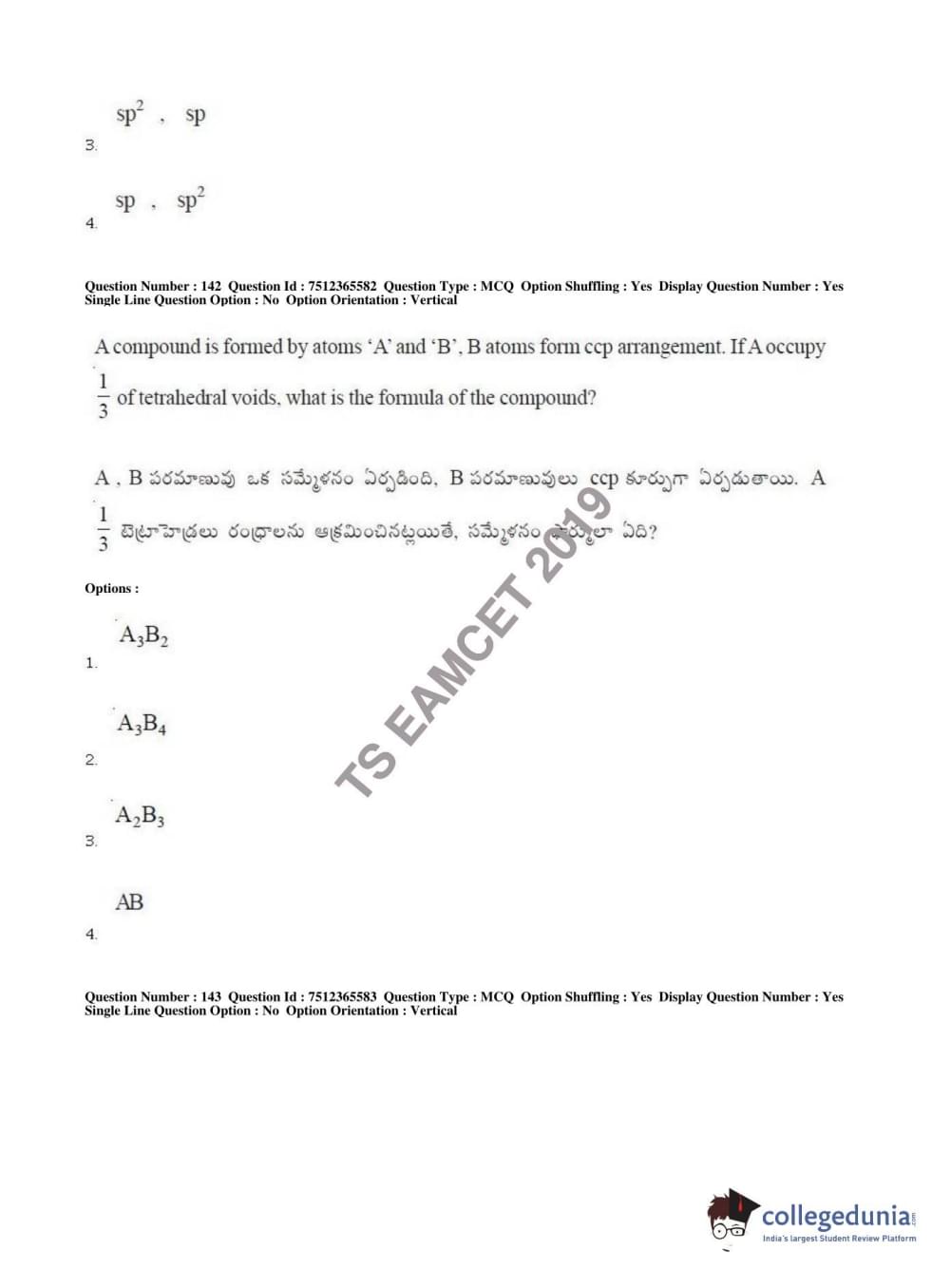 TS EAMCET 2019 Agriculture and Medical Question Paper with Answer Key PDFs Afternoon Session