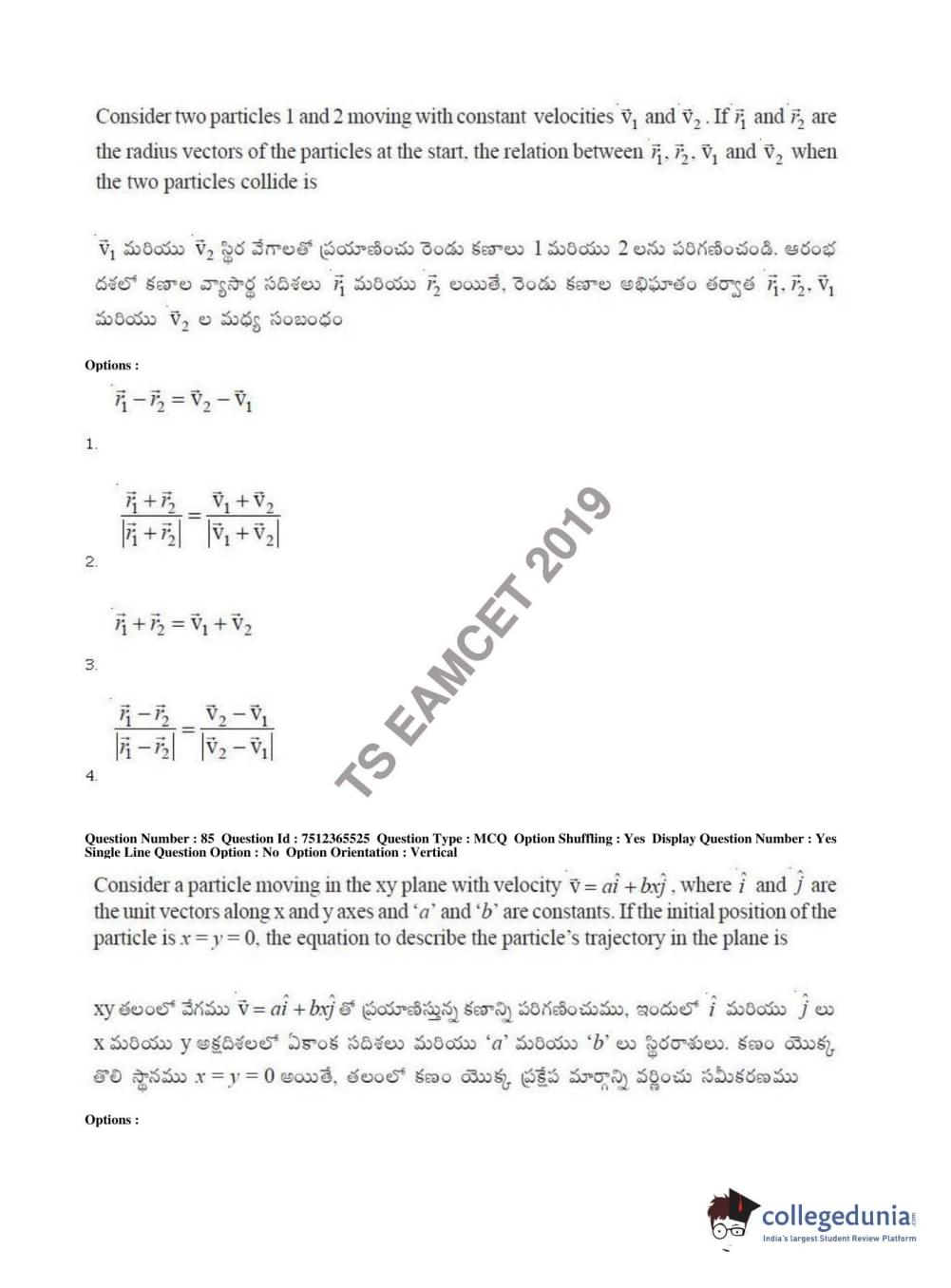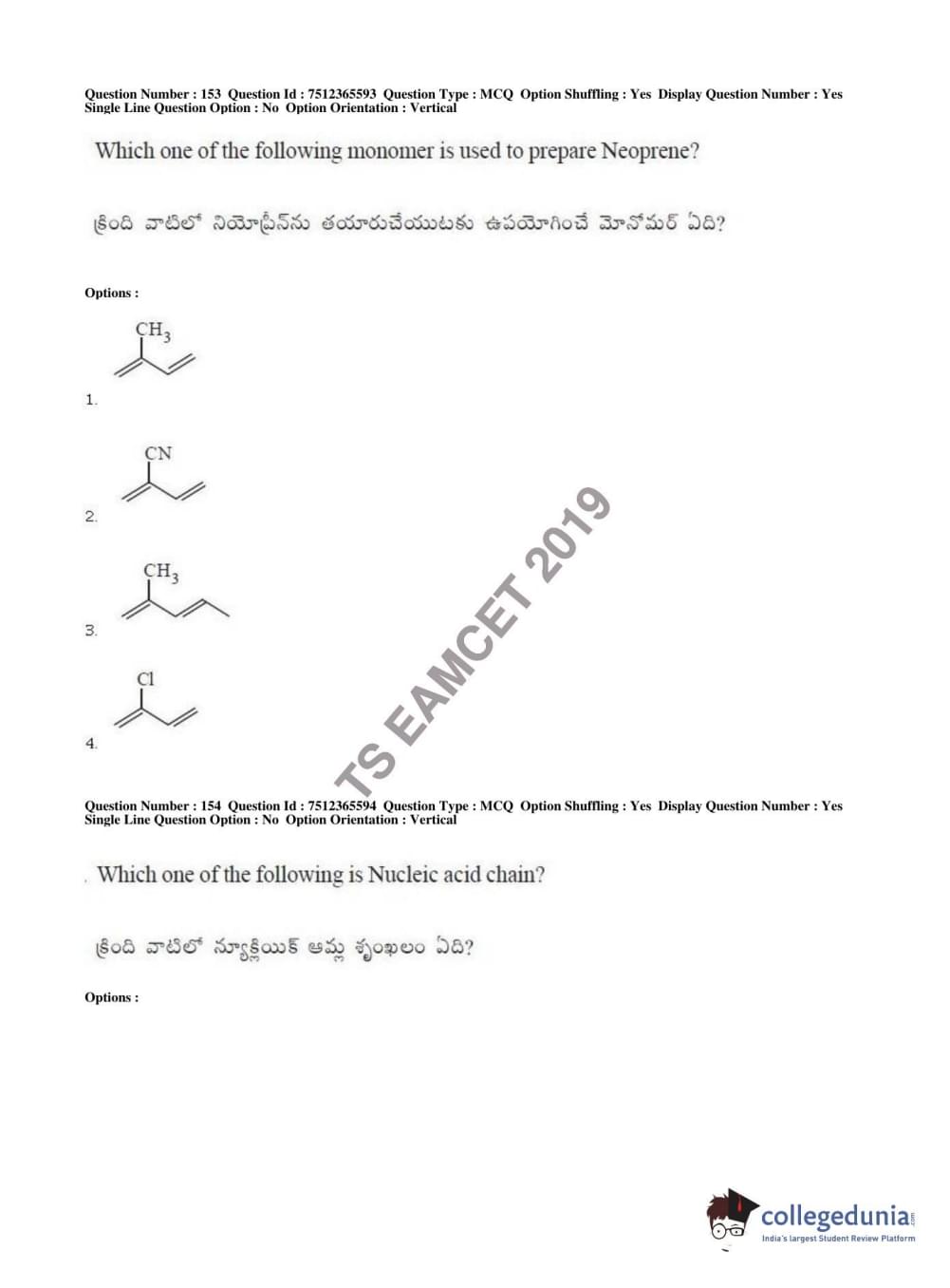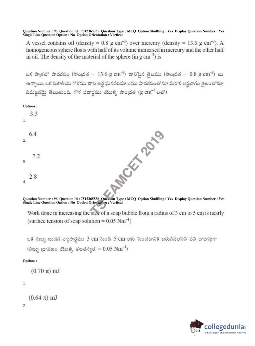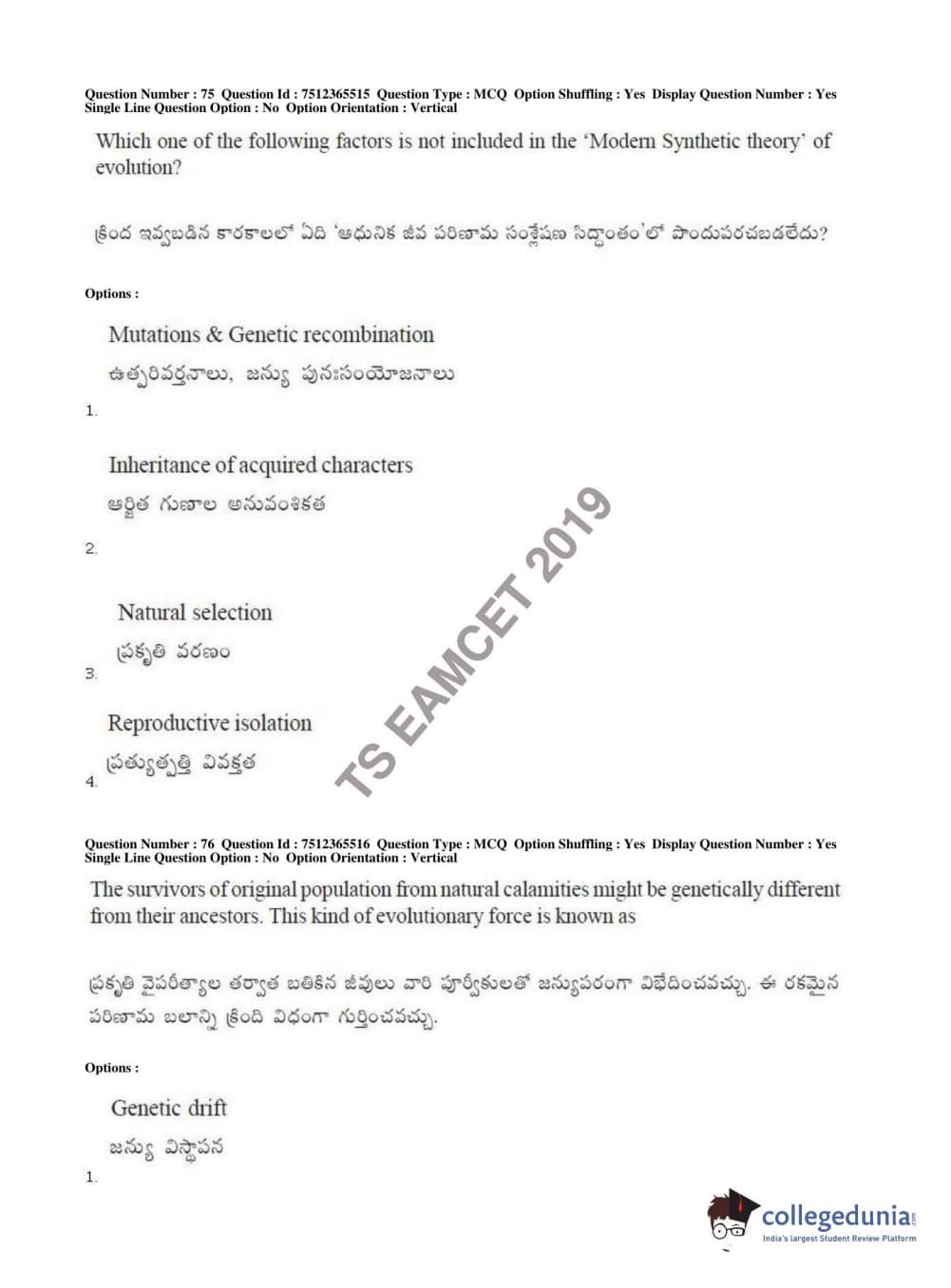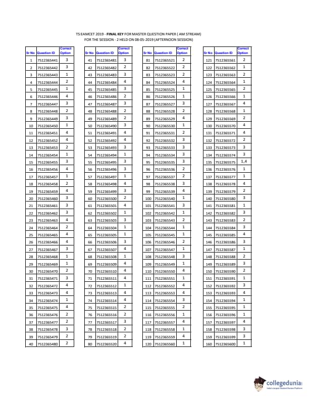 | TS EAMCET 2019 Agriculture and Medical Question Paper PDF | TS EAMCET 2019 Agriculture and Medical Answer Key PDF |