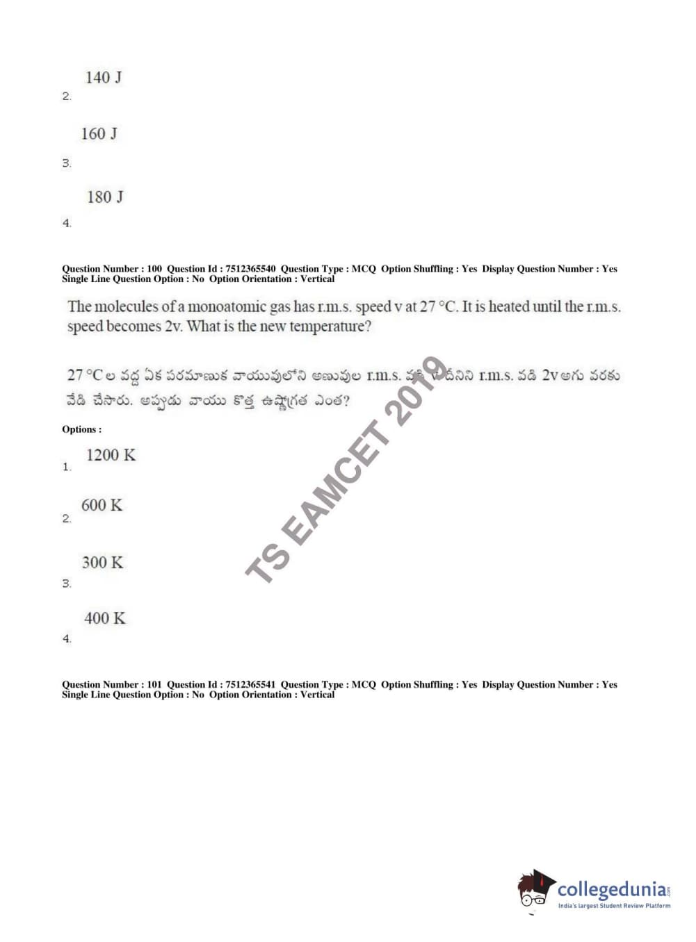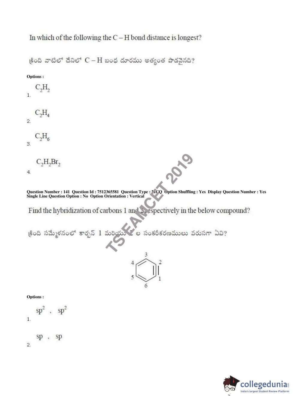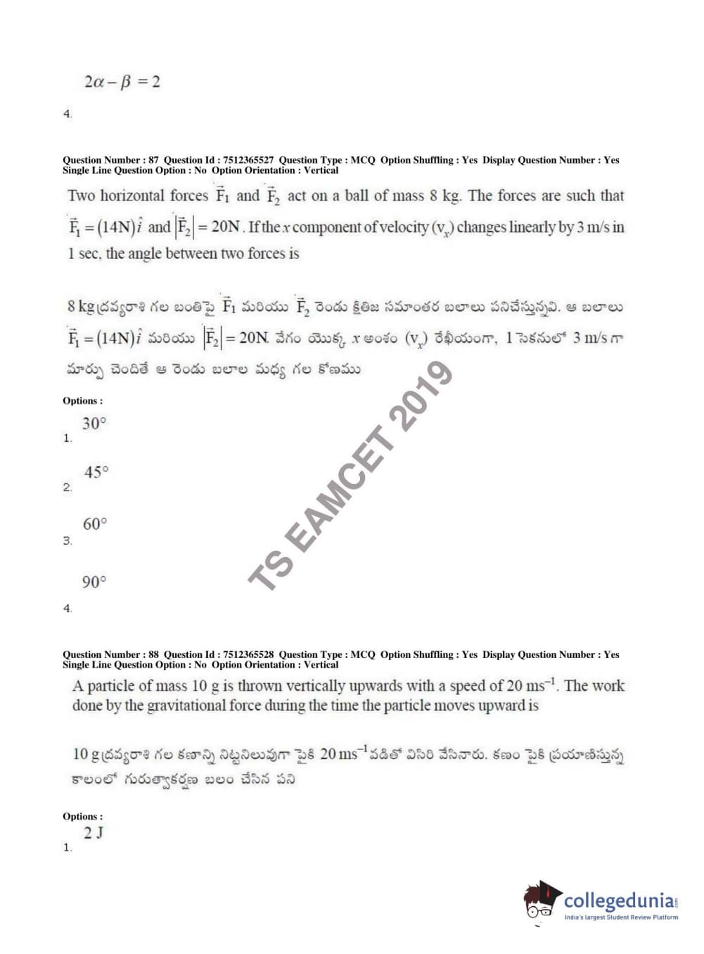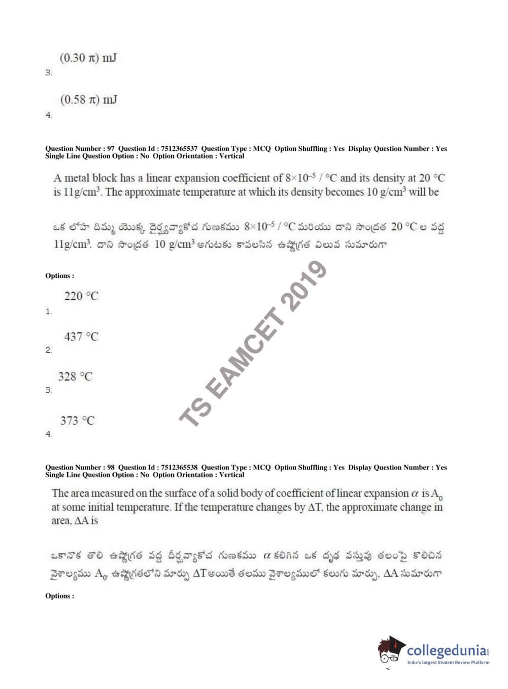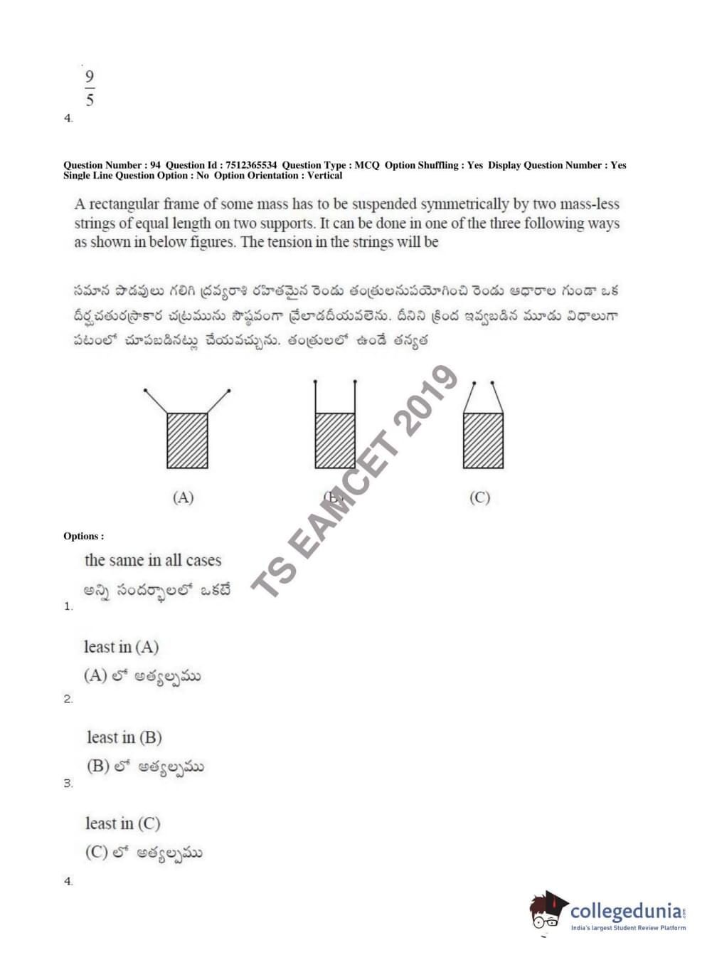 | TS EAMCET 2019 Agriculture and Medical Question Paper PDF | TS EAMCET 2019 Agriculture and Medical Answer Key PDF |