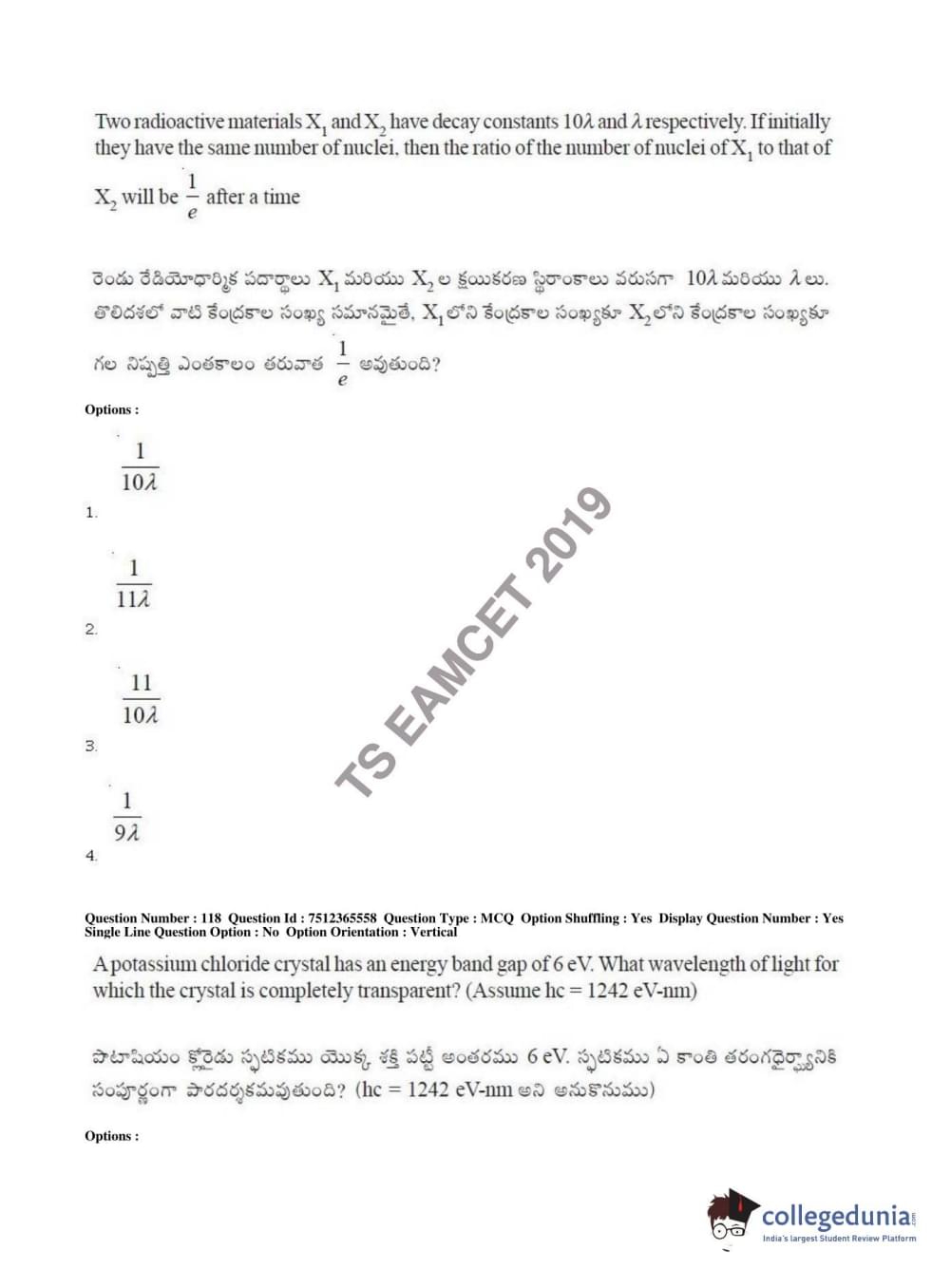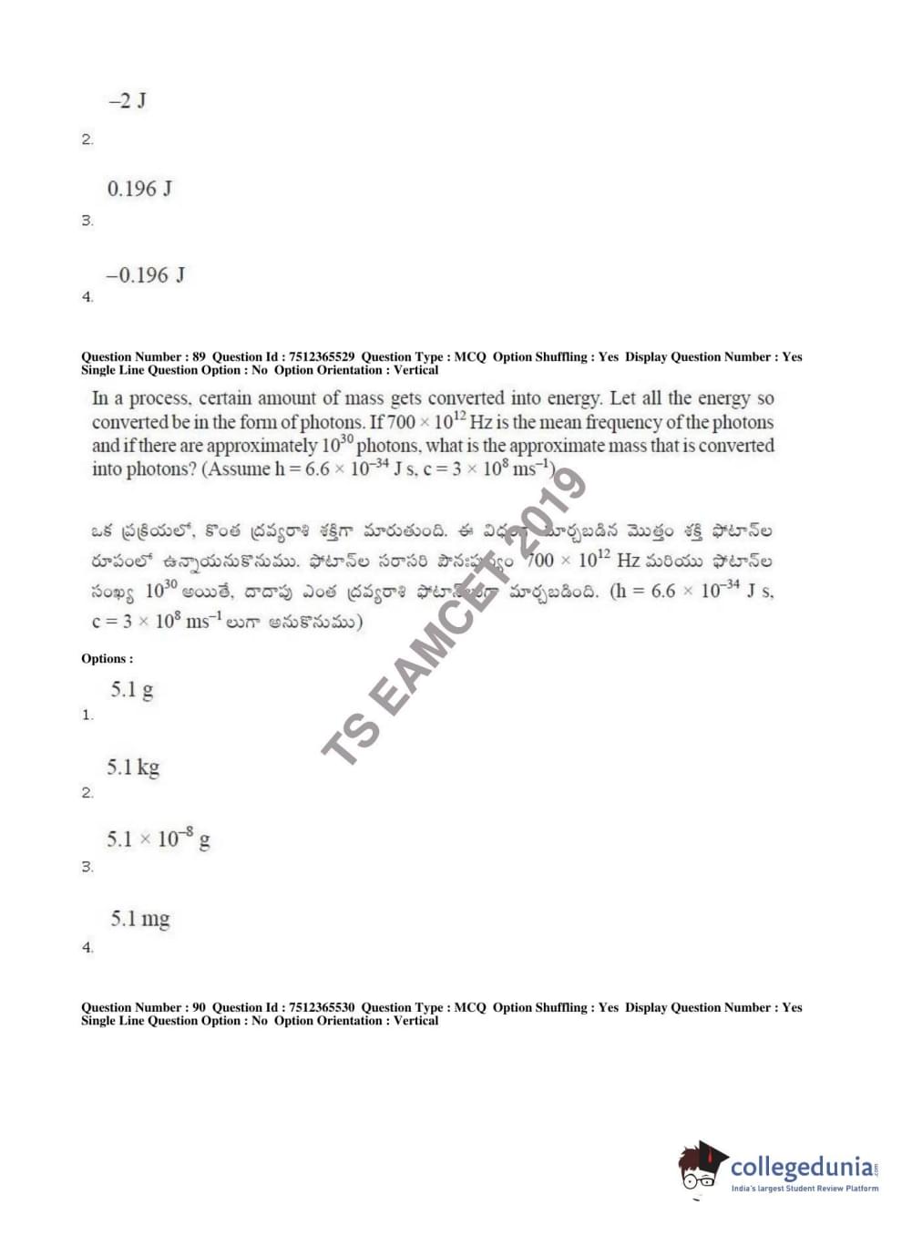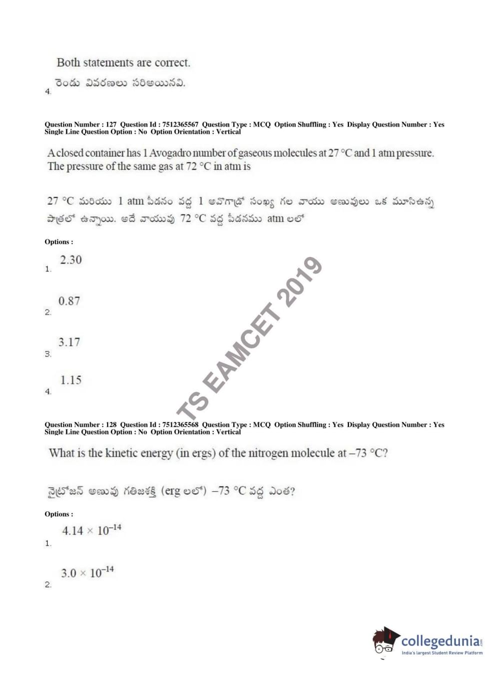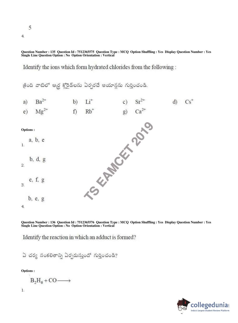 | TS EAMCET 2019 Agriculture and Medical Question Paper PDF | TS EAMCET 2019 Agriculture and Medical Answer Key PDF |