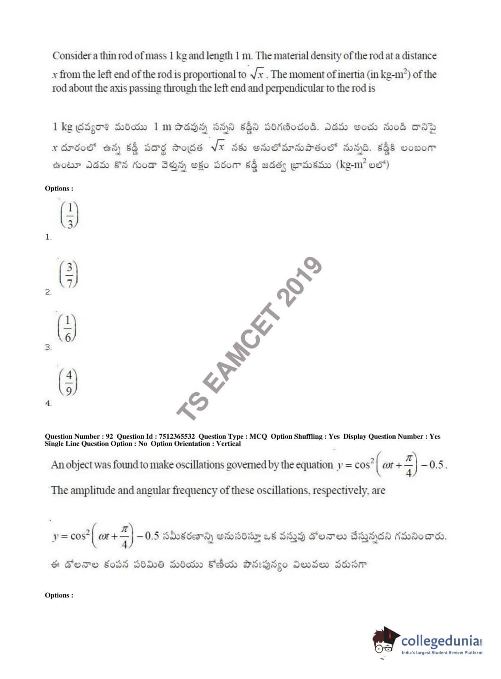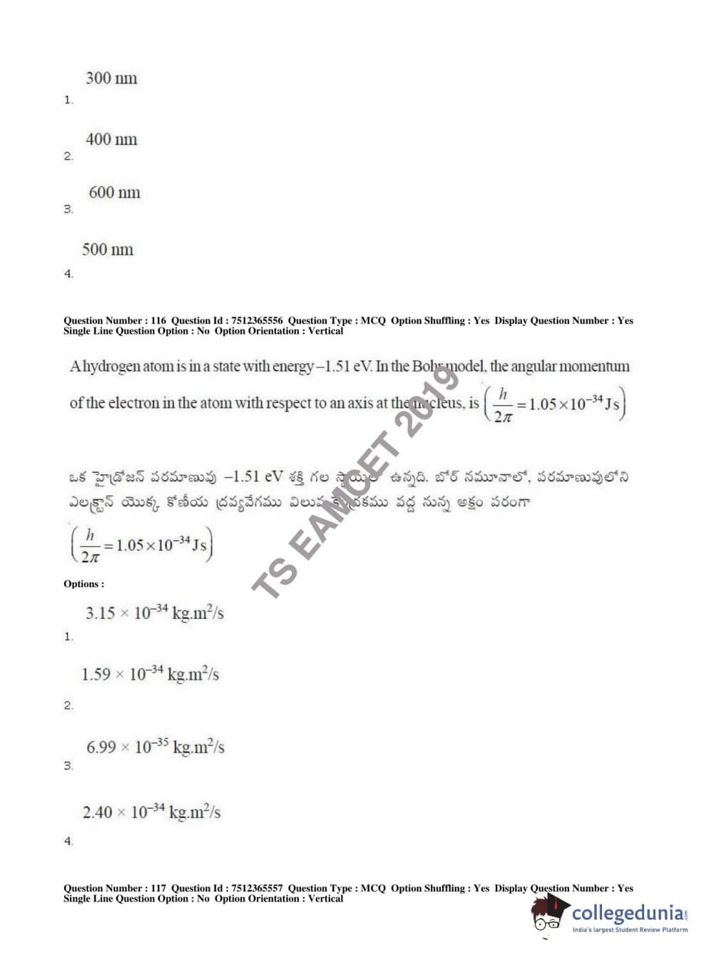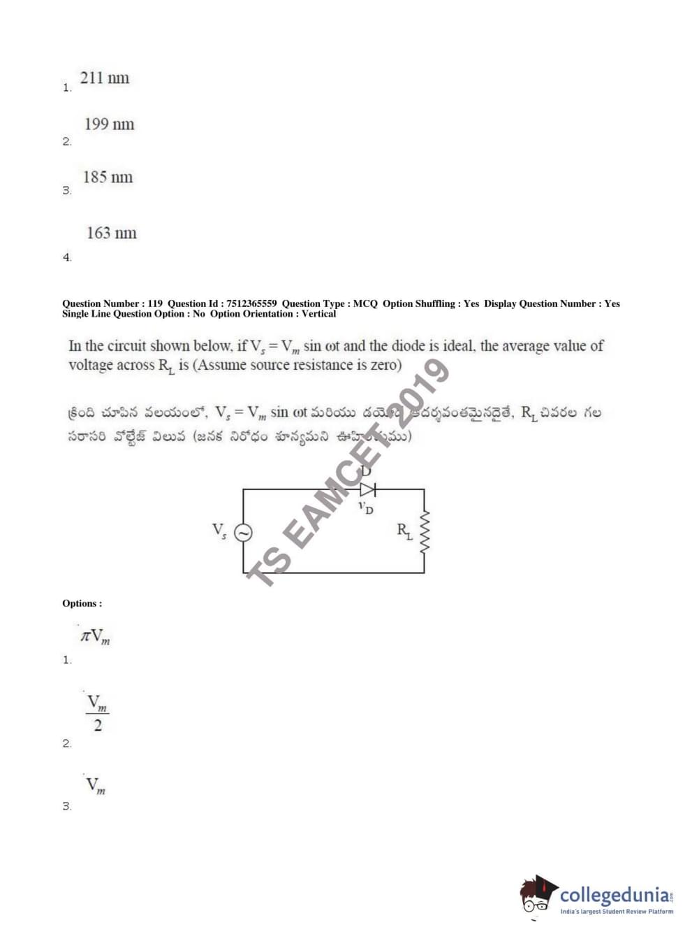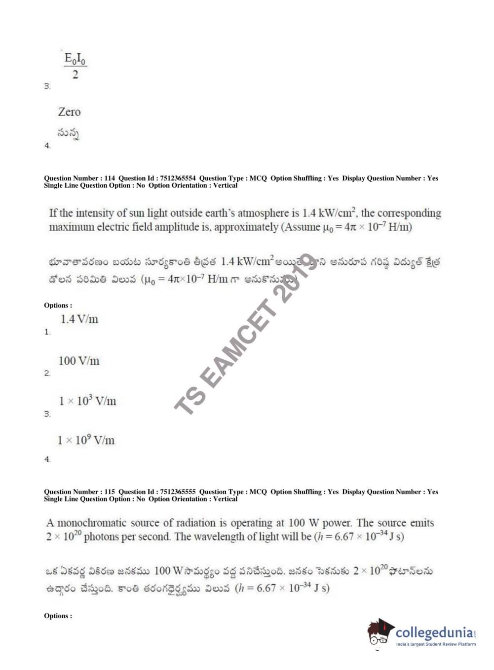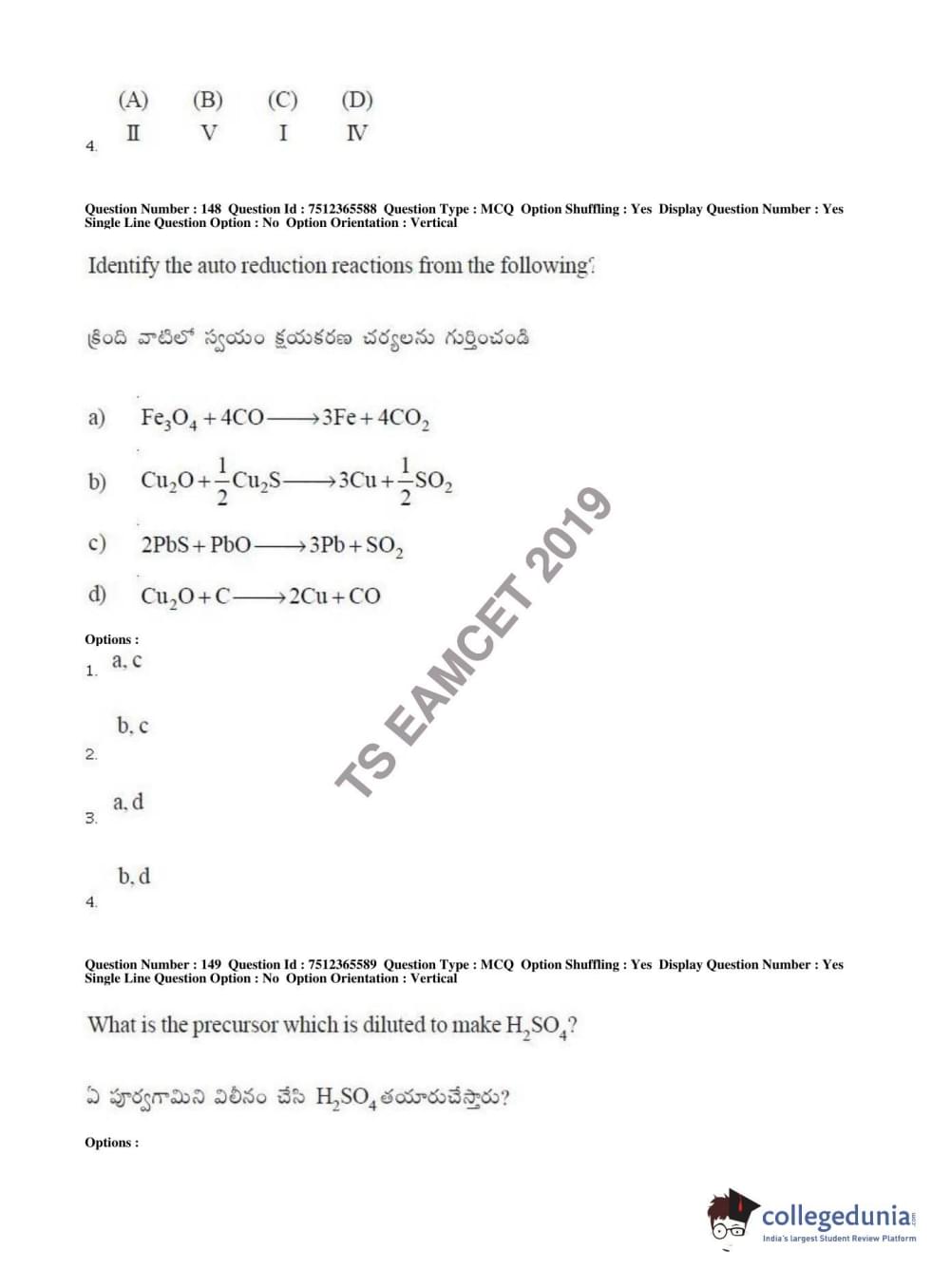 | TS EAMCET 2019 Agriculture and Medical Question Paper PDF | TS EAMCET 2019 Agriculture and Medical Answer Key PDF |