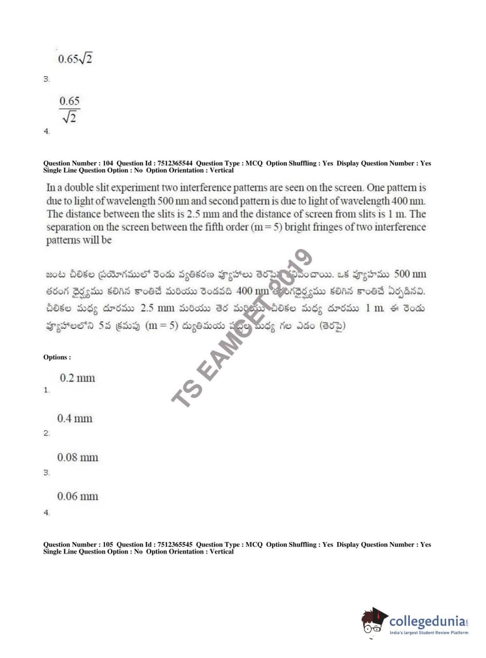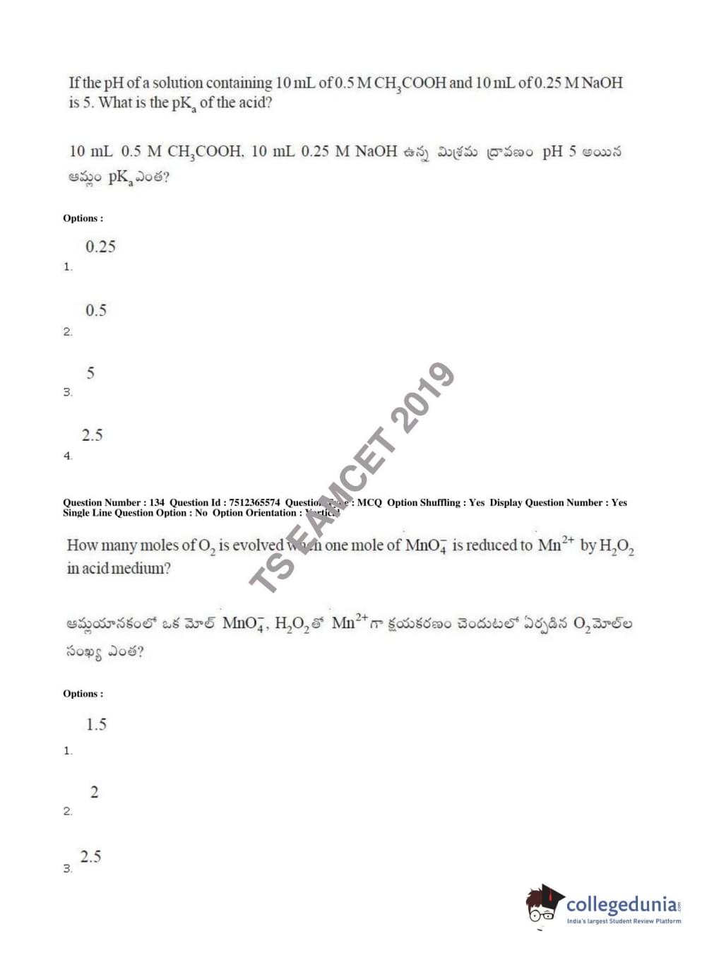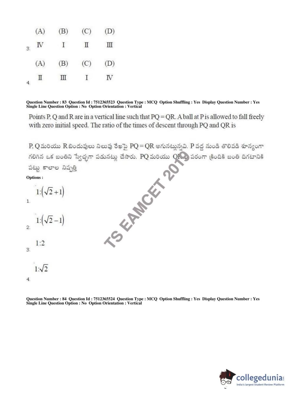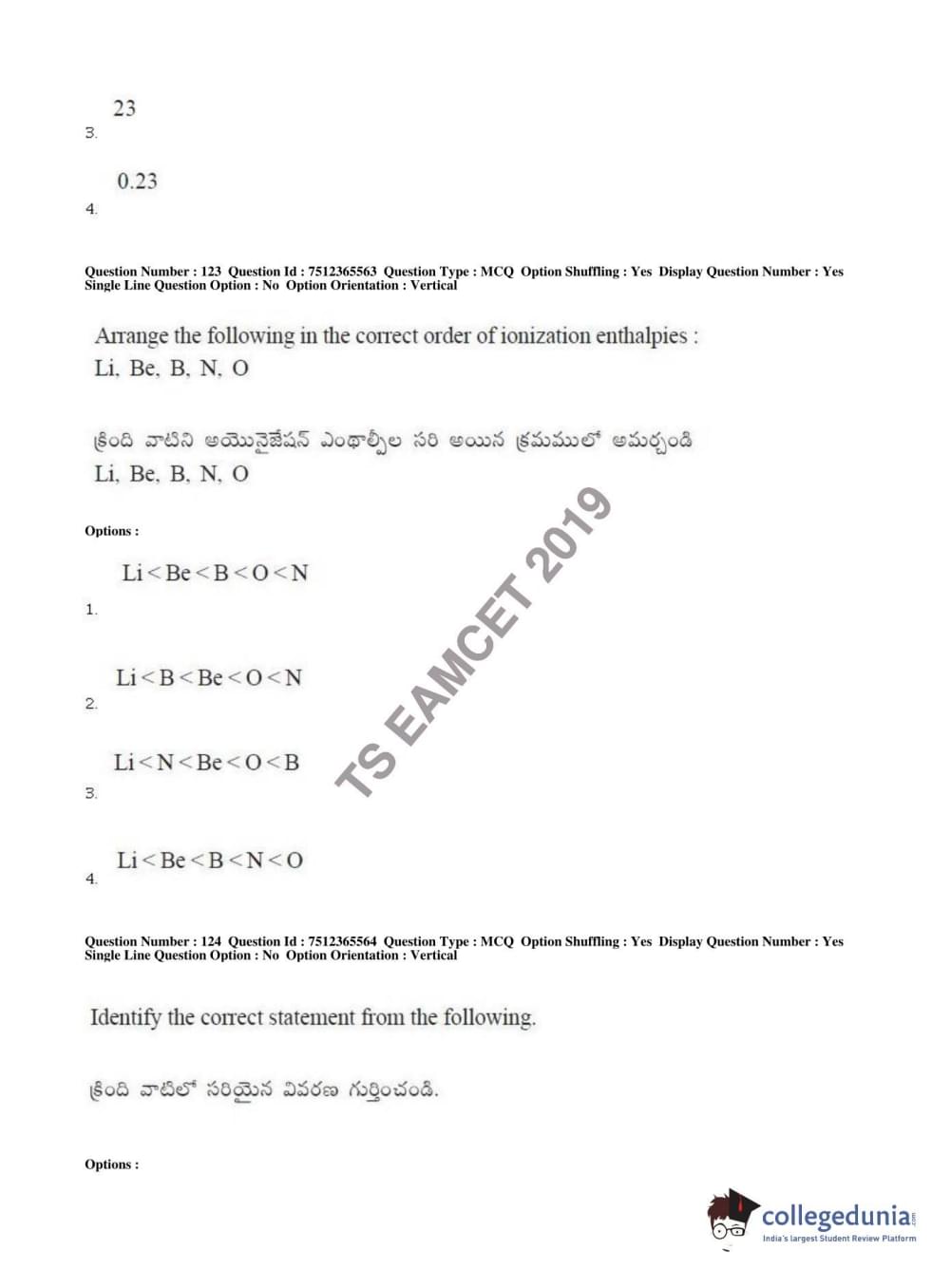 | TS EAMCET 2019 Agriculture and Medical Question Paper PDF | TS EAMCET 2019 Agriculture and Medical Answer Key PDF |