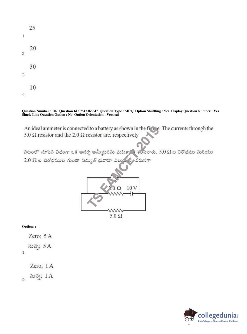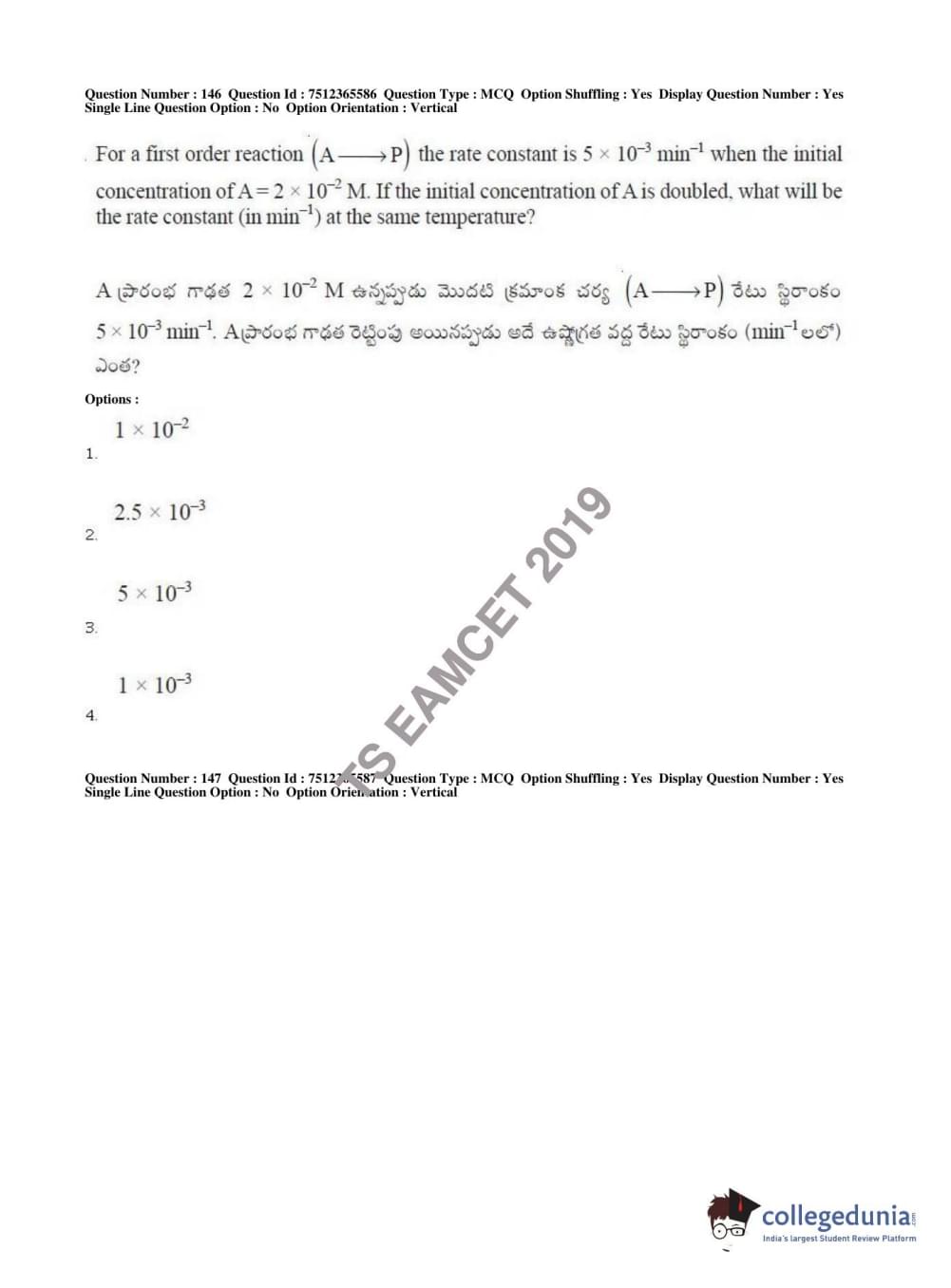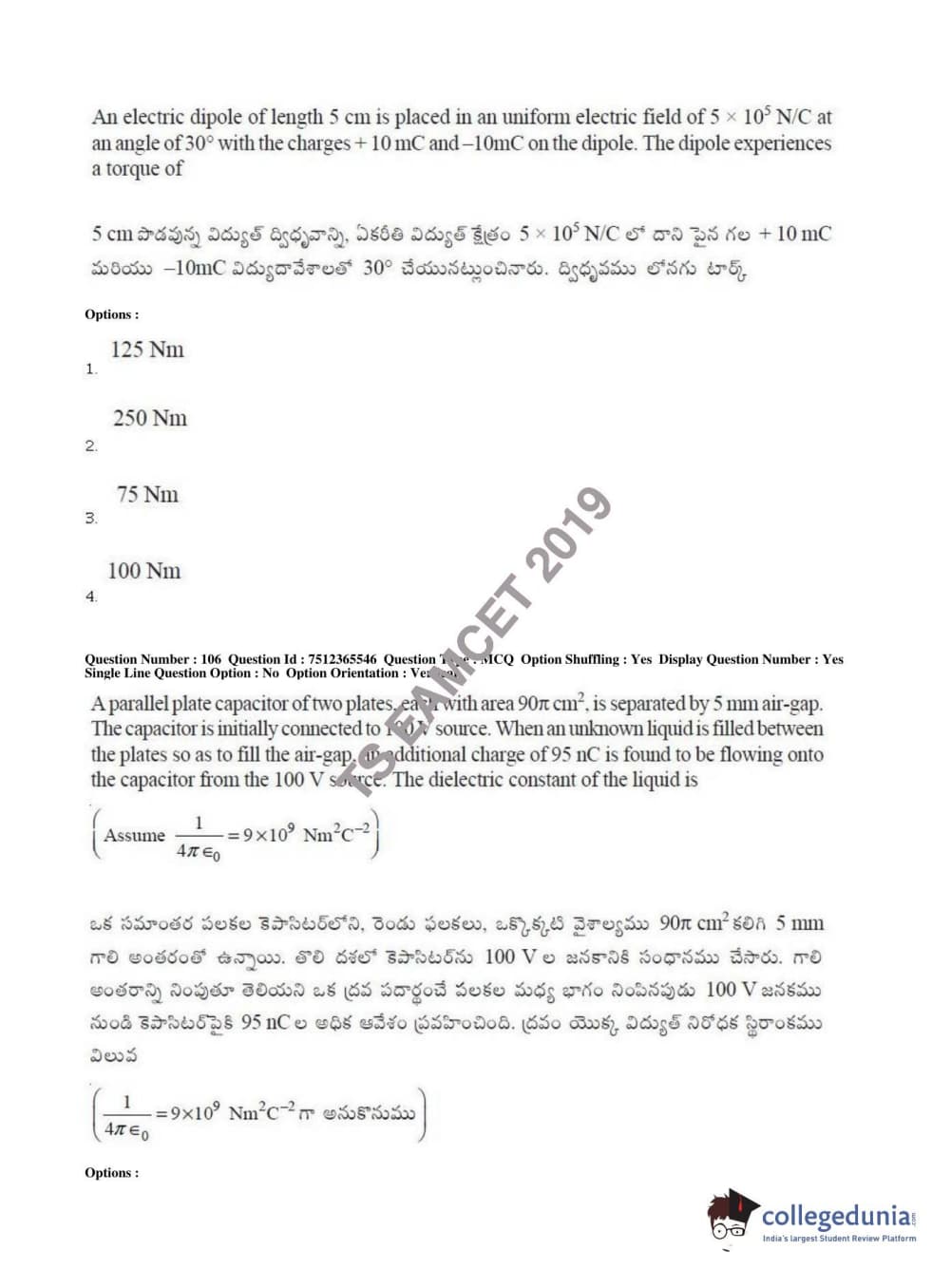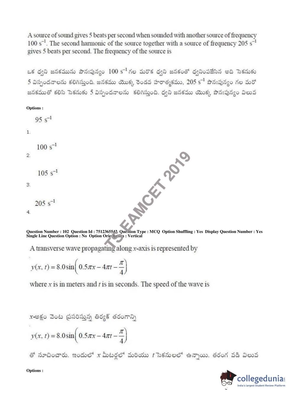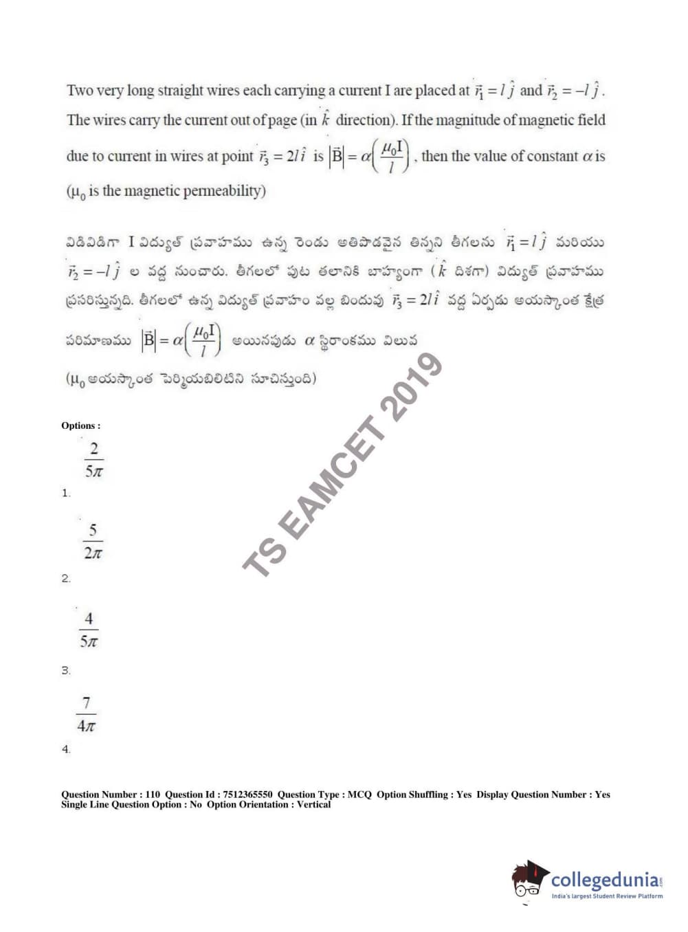| TS EAMCET 2019 Agriculture and Medical Question Paper PDF | TS EAMCET 2019 Agriculture and Medical Answer Key PDF |