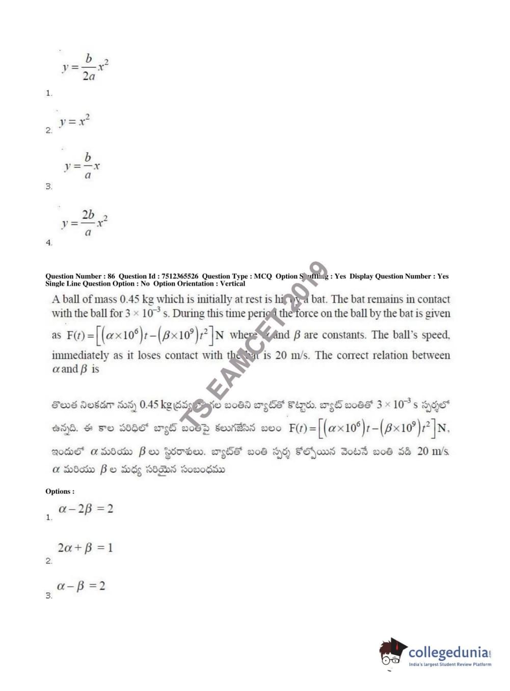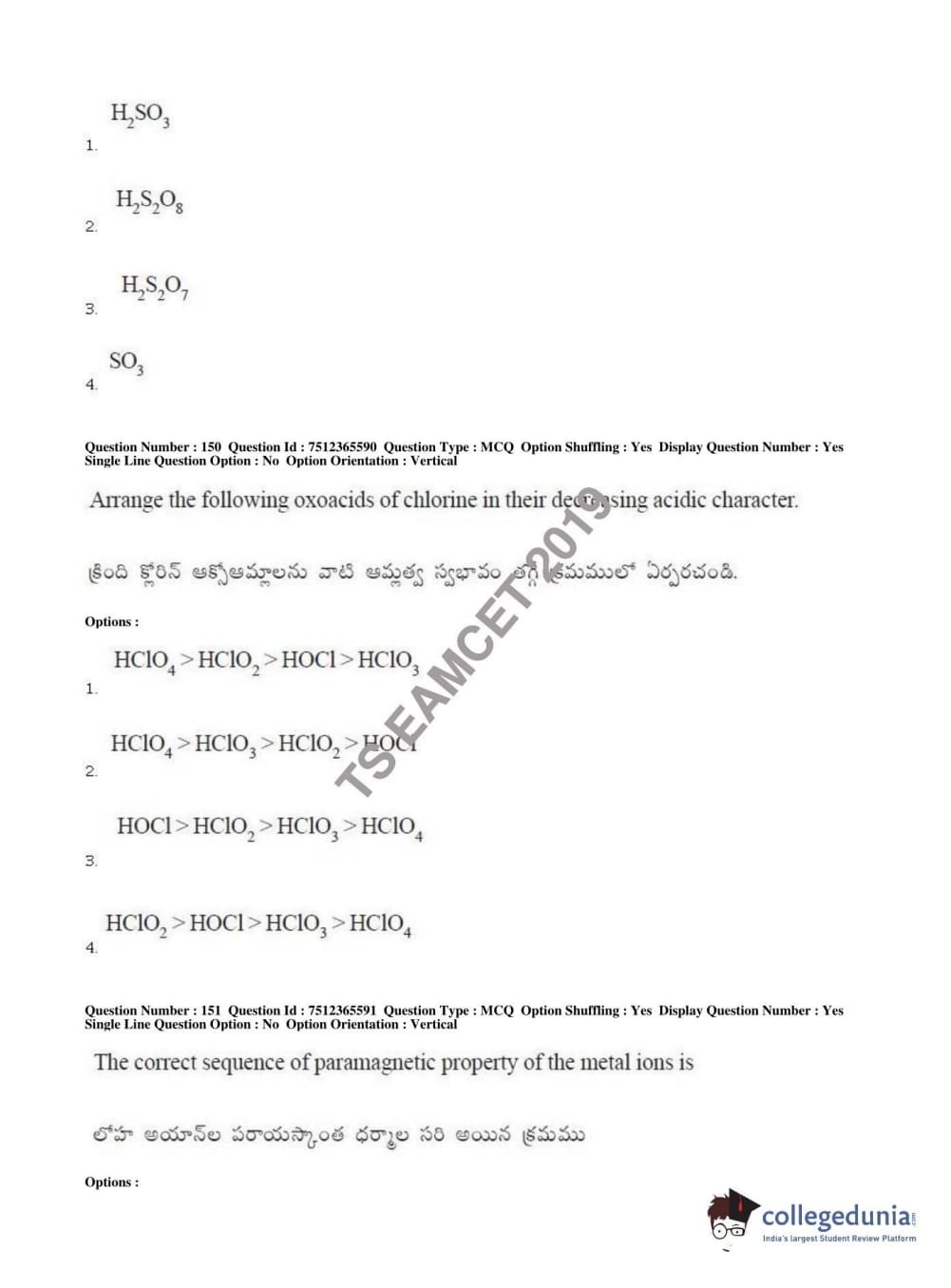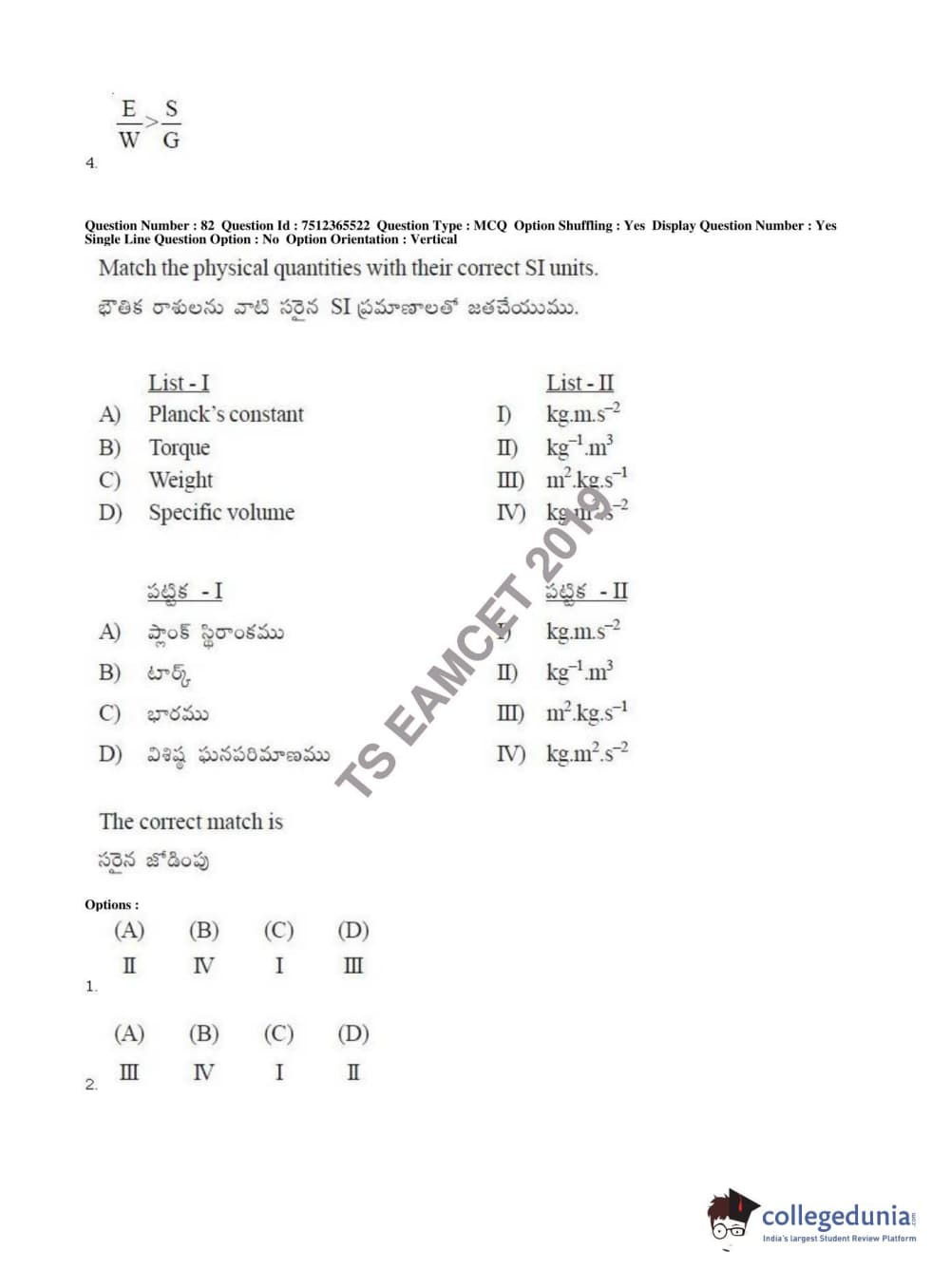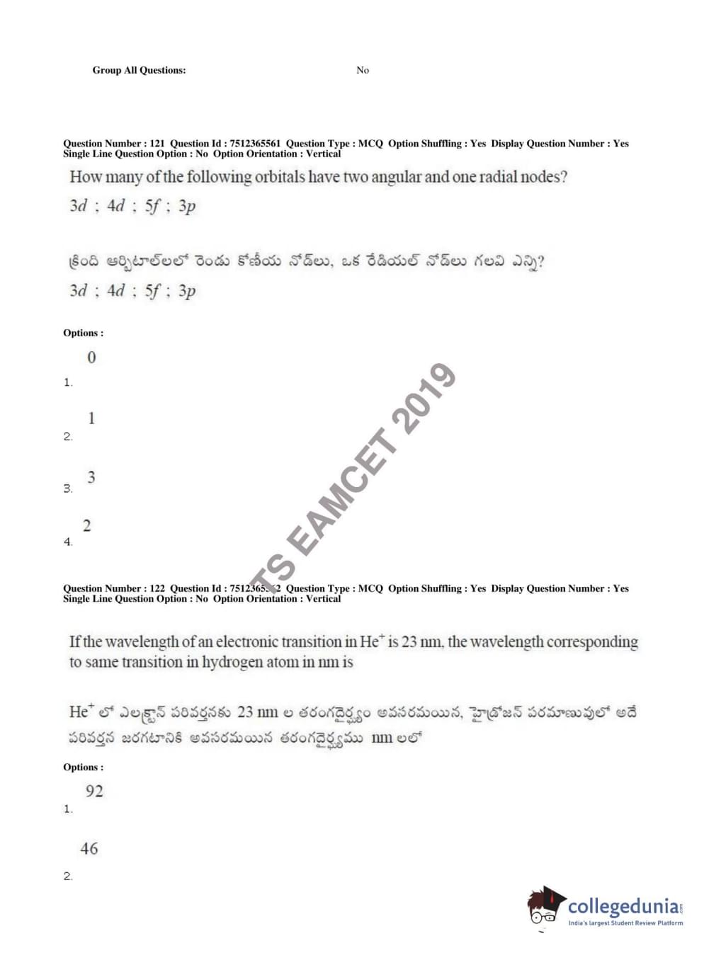 | TS EAMCET 2019 Agriculture and Medical Question Paper PDF | TS EAMCET 2019 Agriculture and Medical Answer Key PDF |