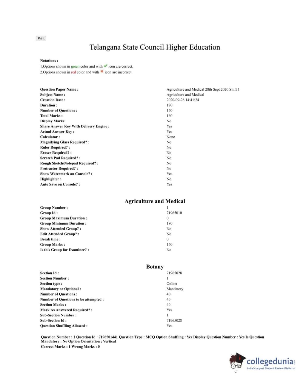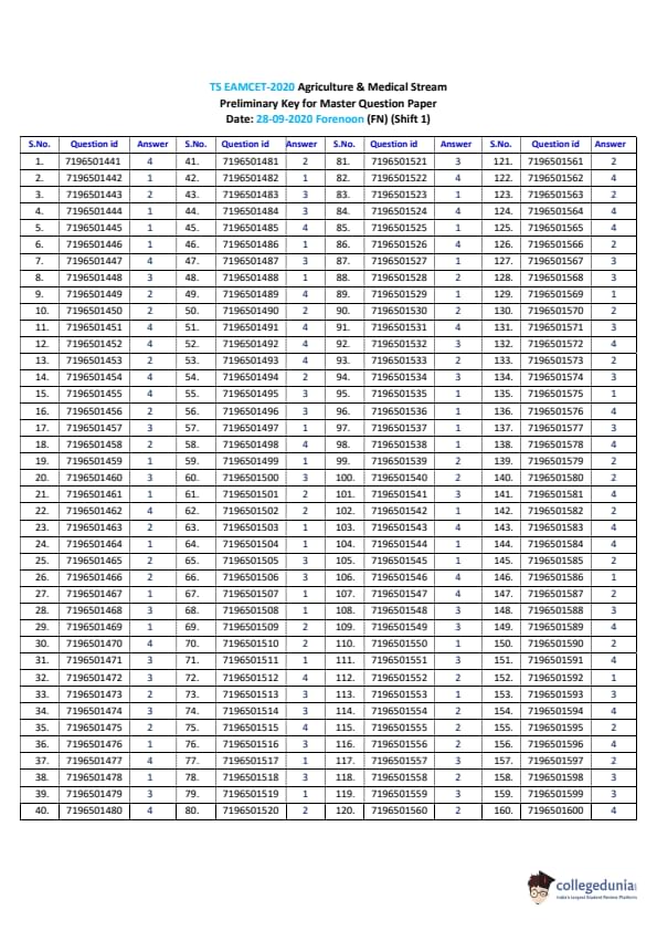 | TS EAMCET 2020 Agriculture and Medical Question Paper PDF | TS EAMCET 2020 Agriculture and Medical Answer Key PDF |