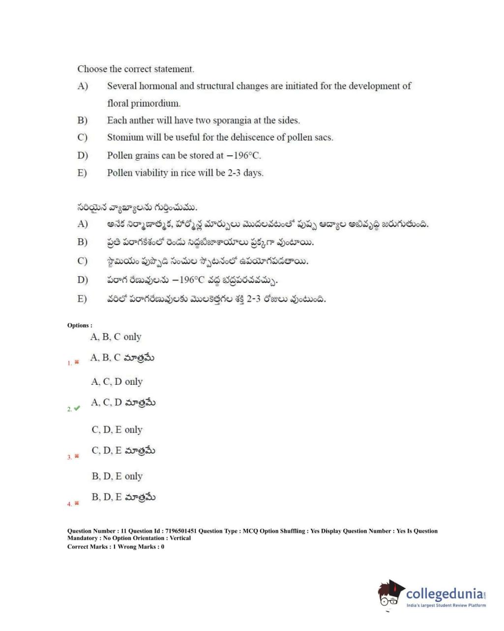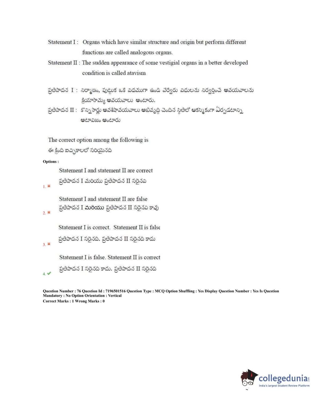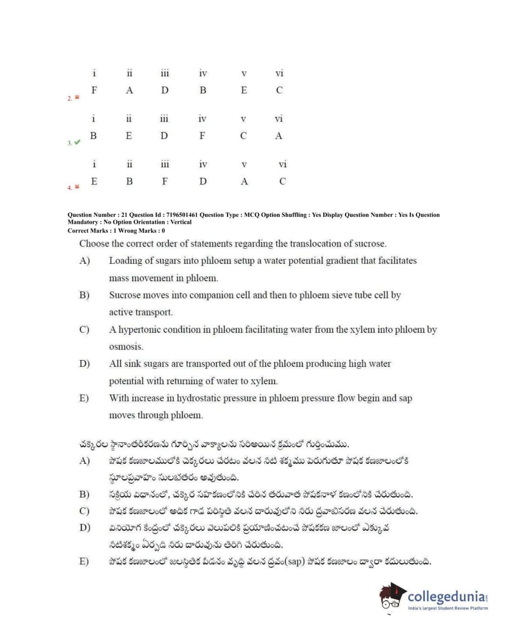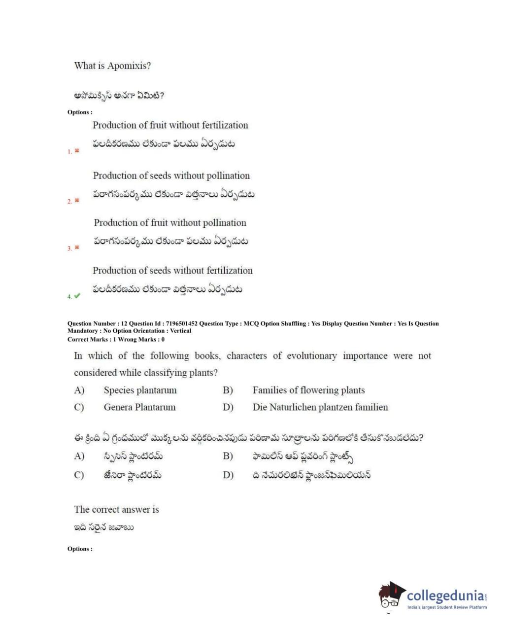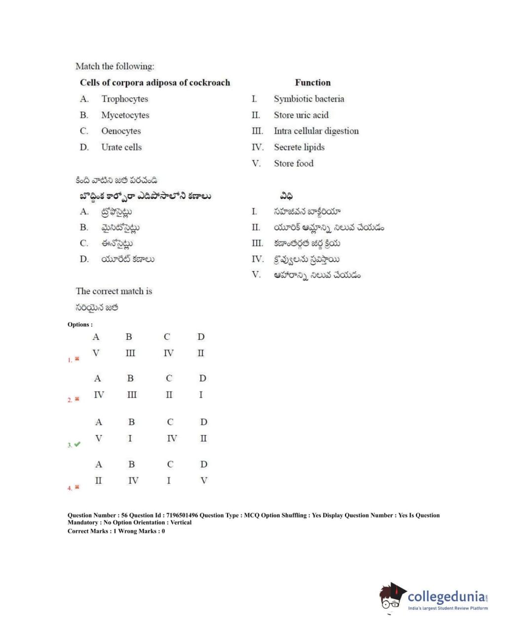 TS EAMCET 2020 Agriculture and Medical Question Paper with Answer Key PDFs Forenoon Session