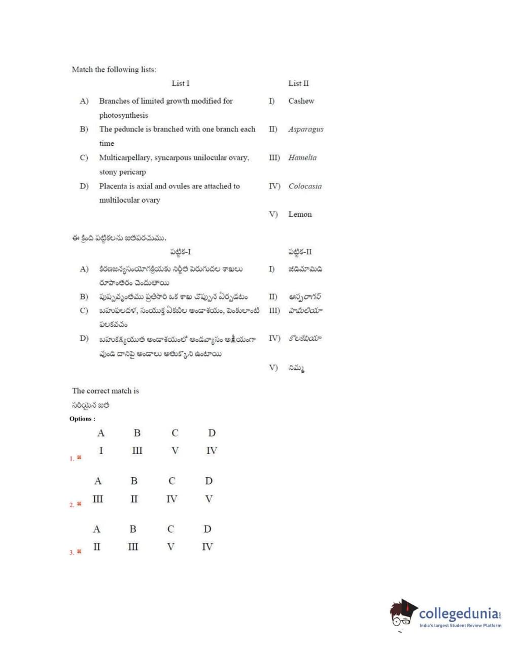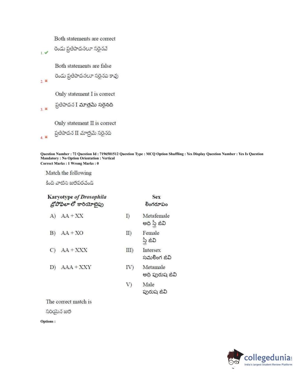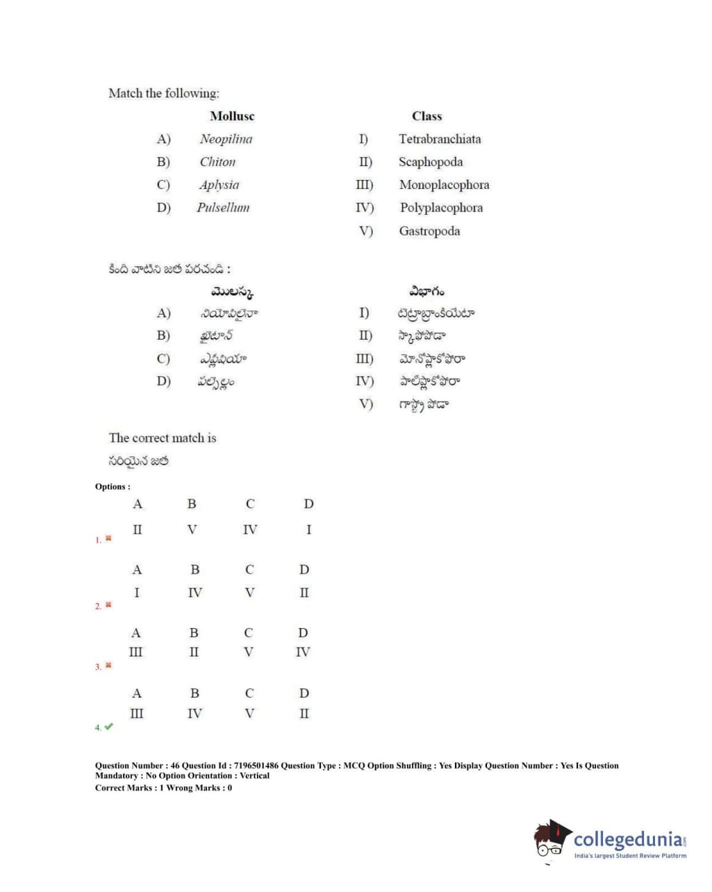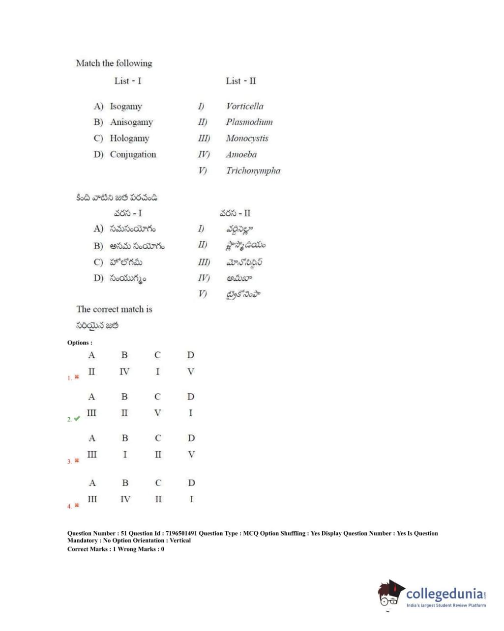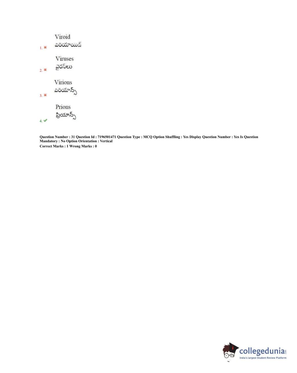 TS EAMCET 2020 Agriculture and Medical Question Paper with Answer Key PDFs Forenoon Session