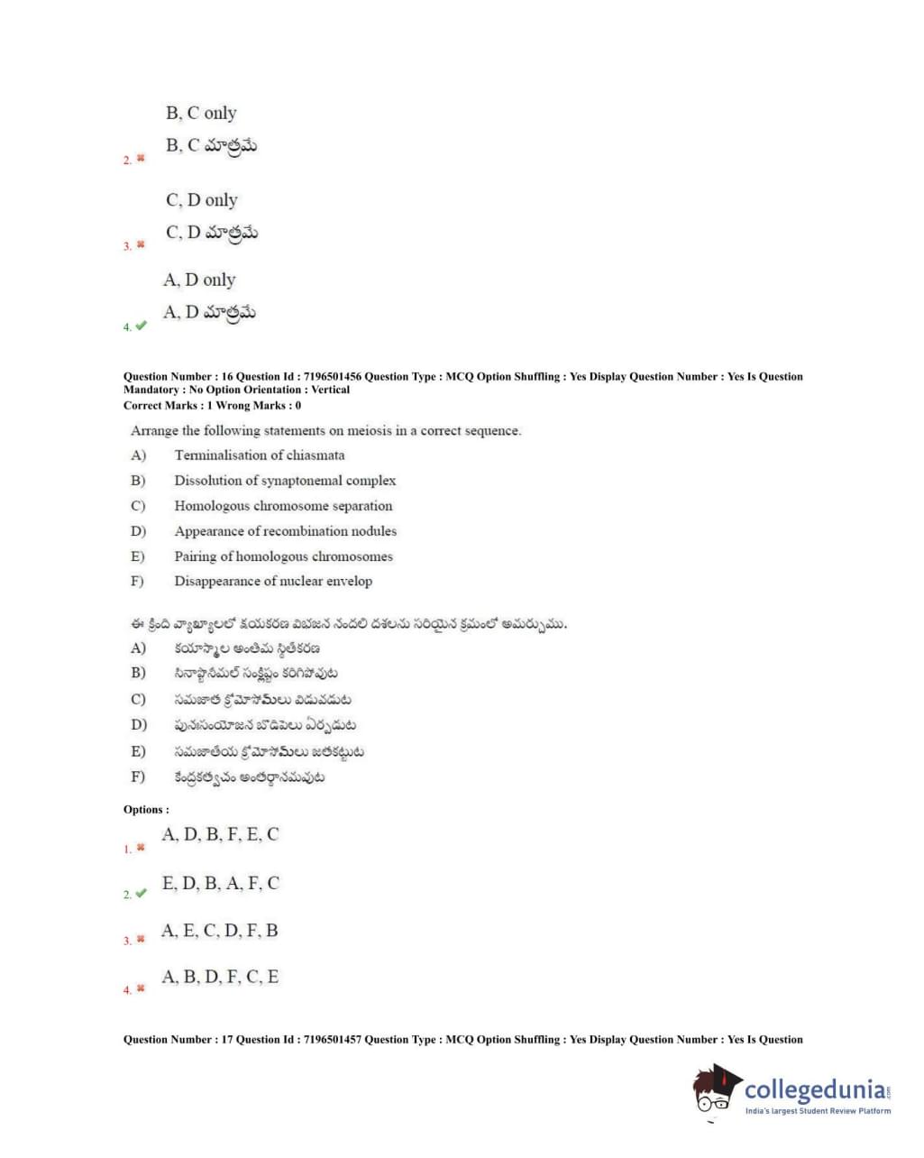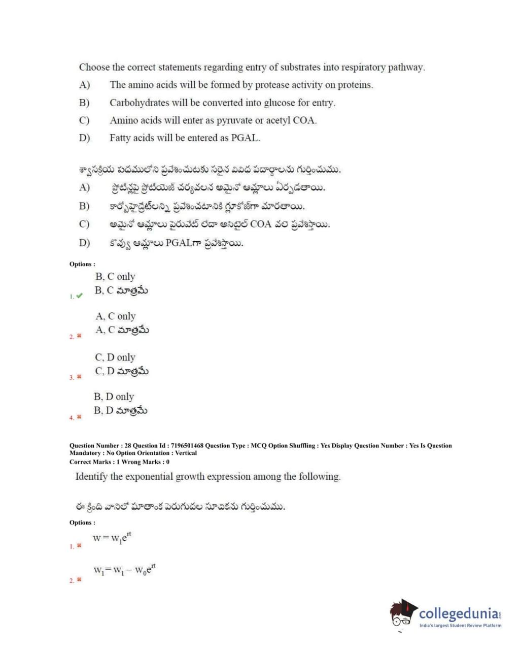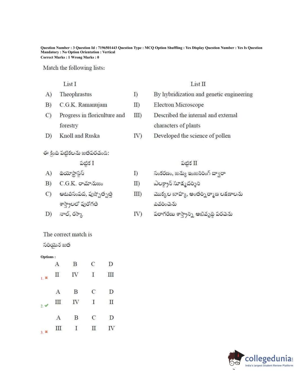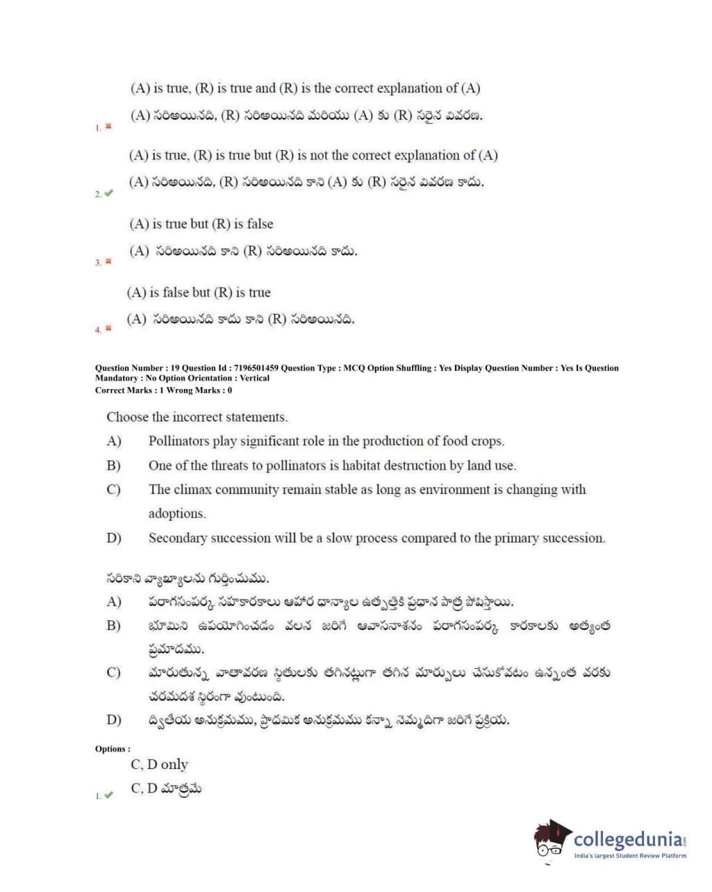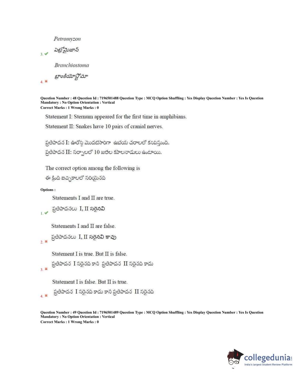 TS EAMCET 2020 Agriculture and Medical Question Paper with Answer Key PDFs Forenoon Session