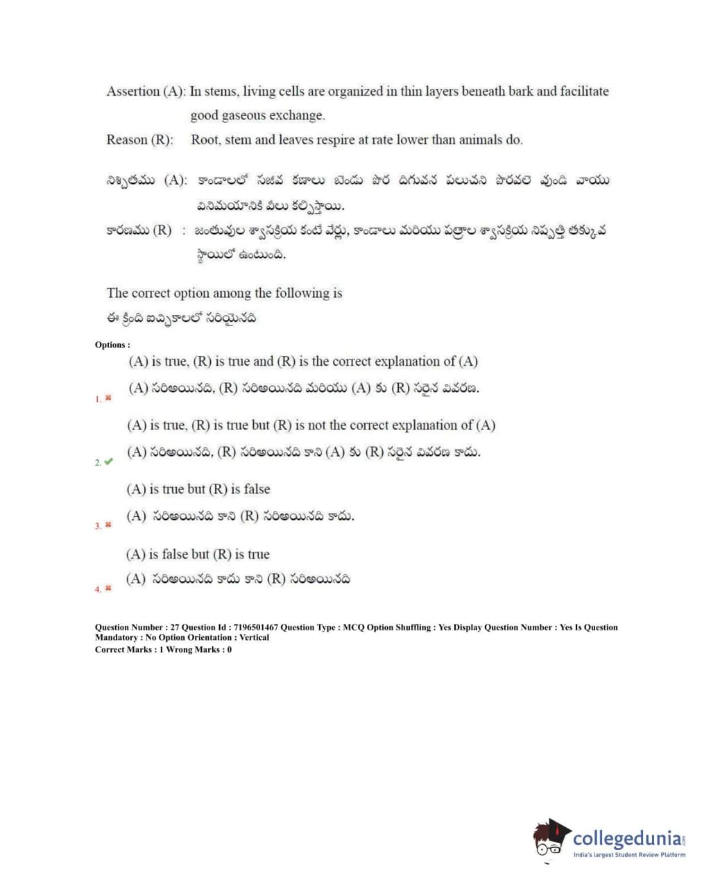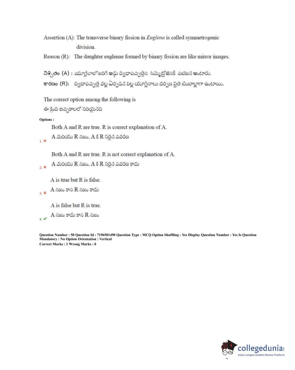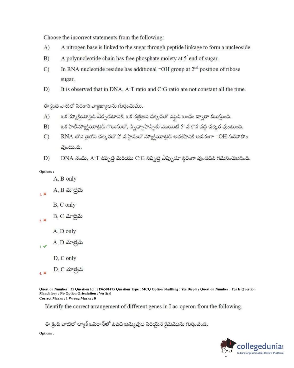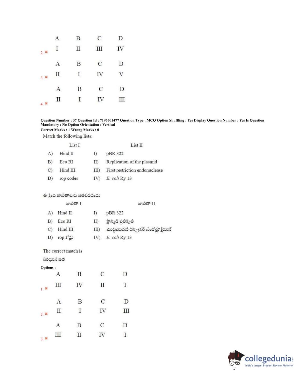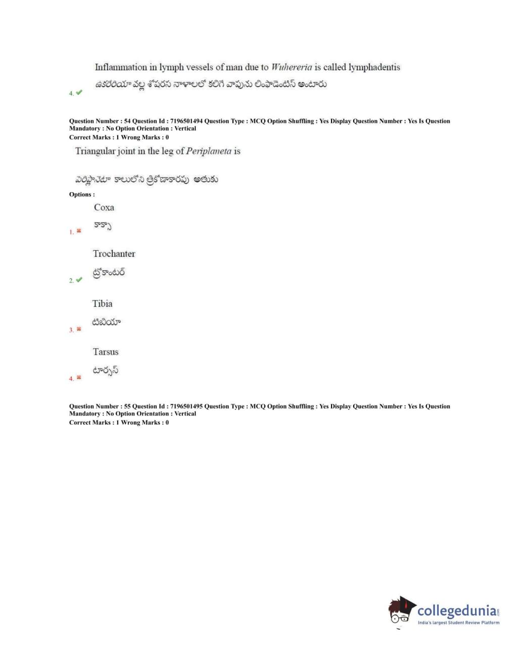 TS EAMCET 2020 Agriculture and Medical Question Paper with Answer Key PDFs Forenoon Session