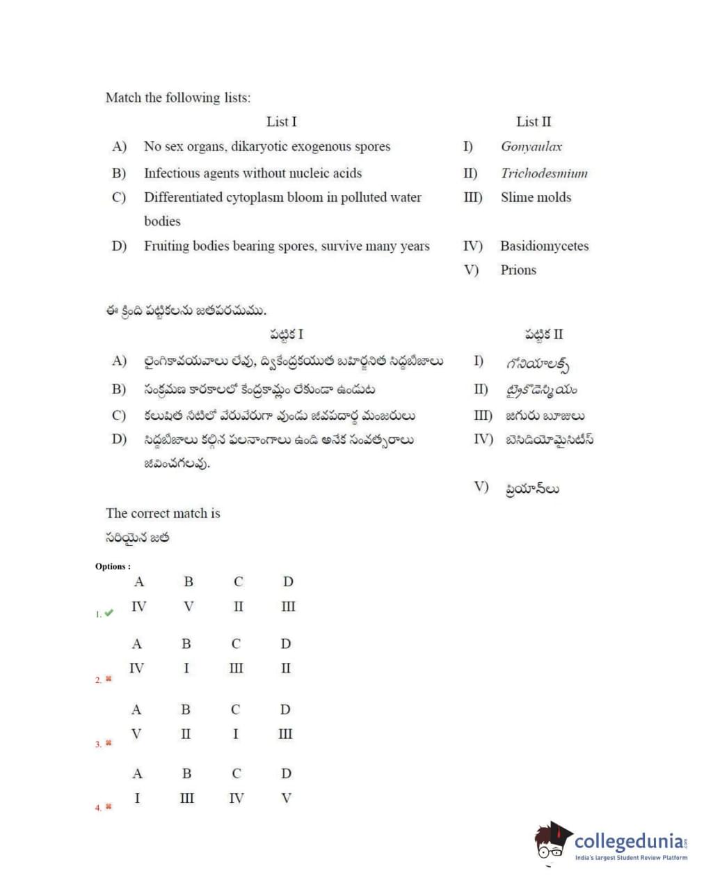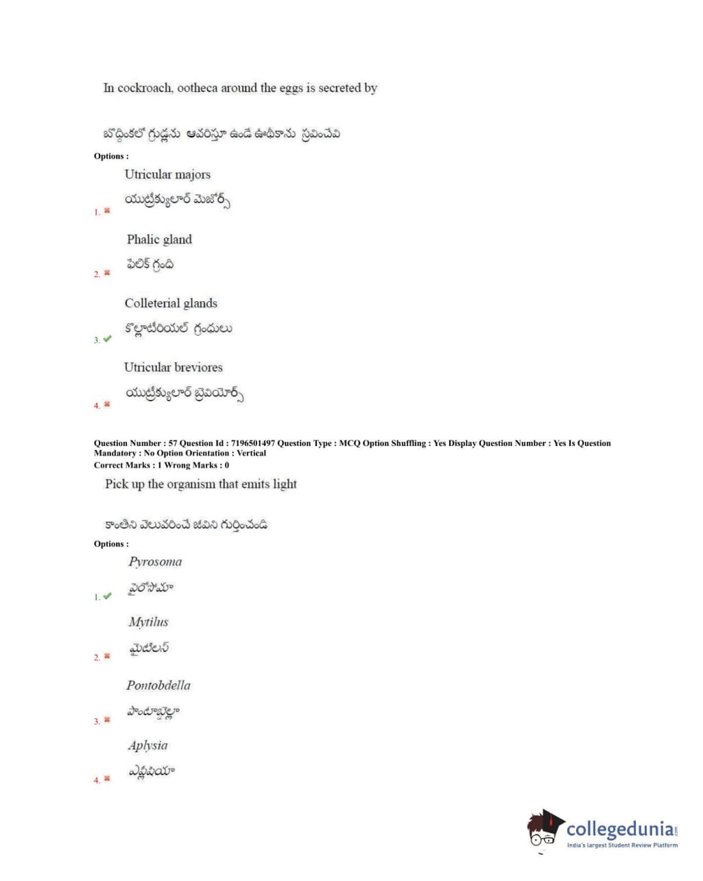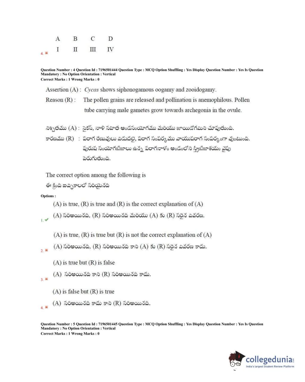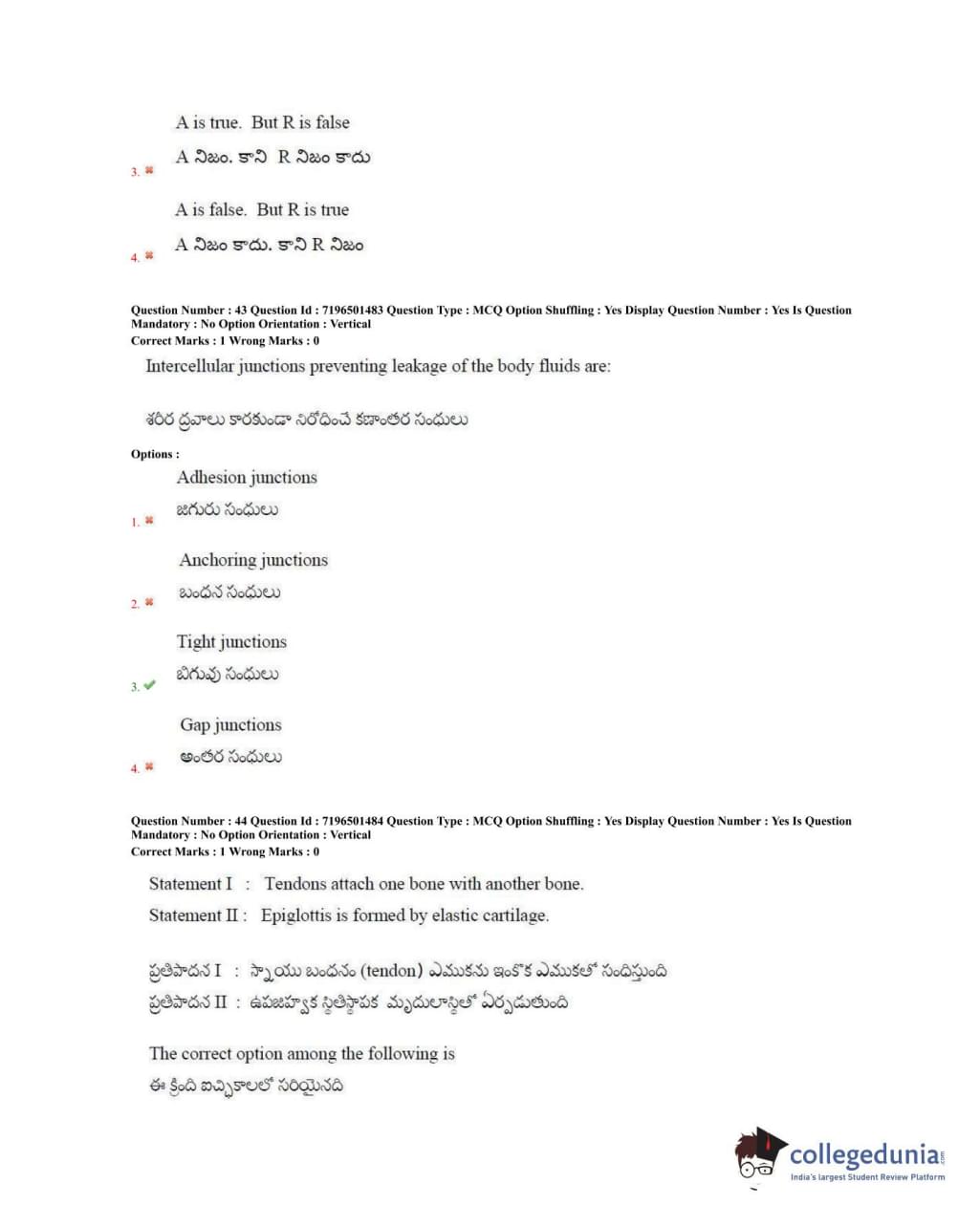 TS EAMCET 2020 Agriculture and Medical Question Paper with Answer Key PDFs Forenoon Session