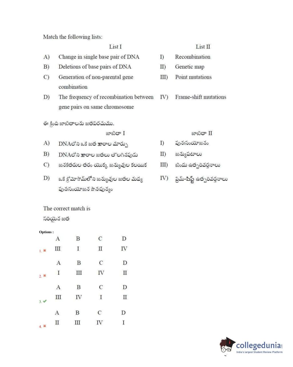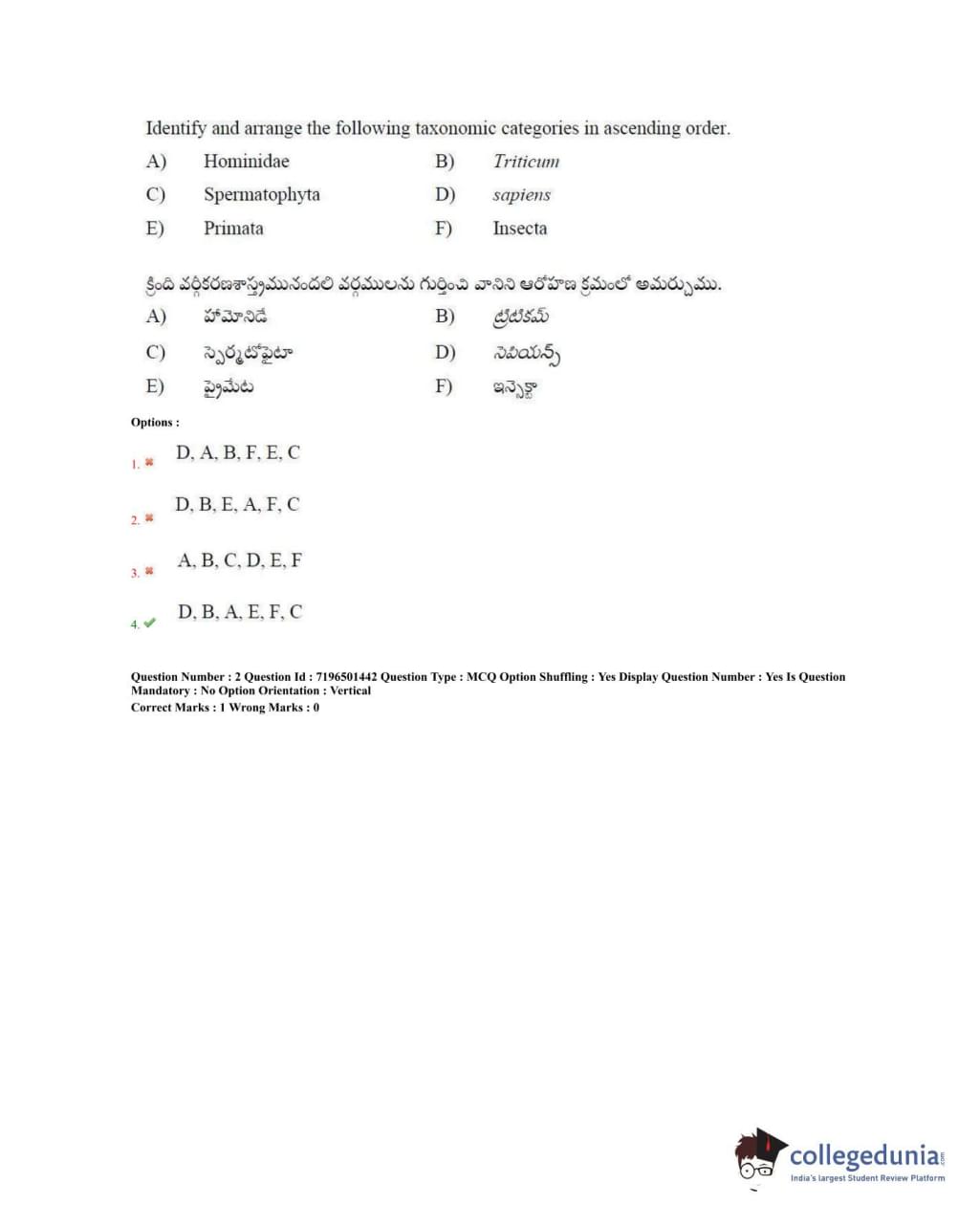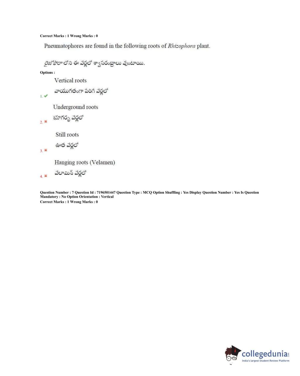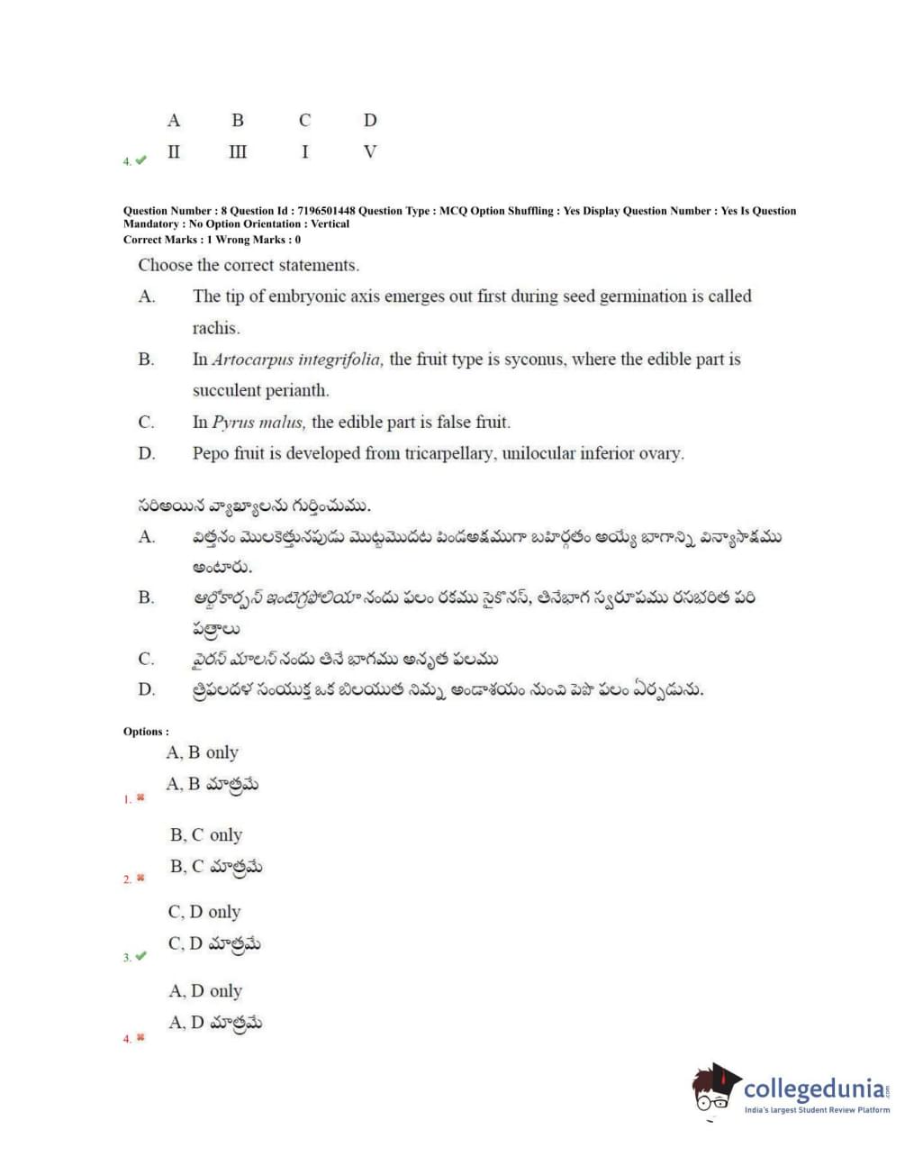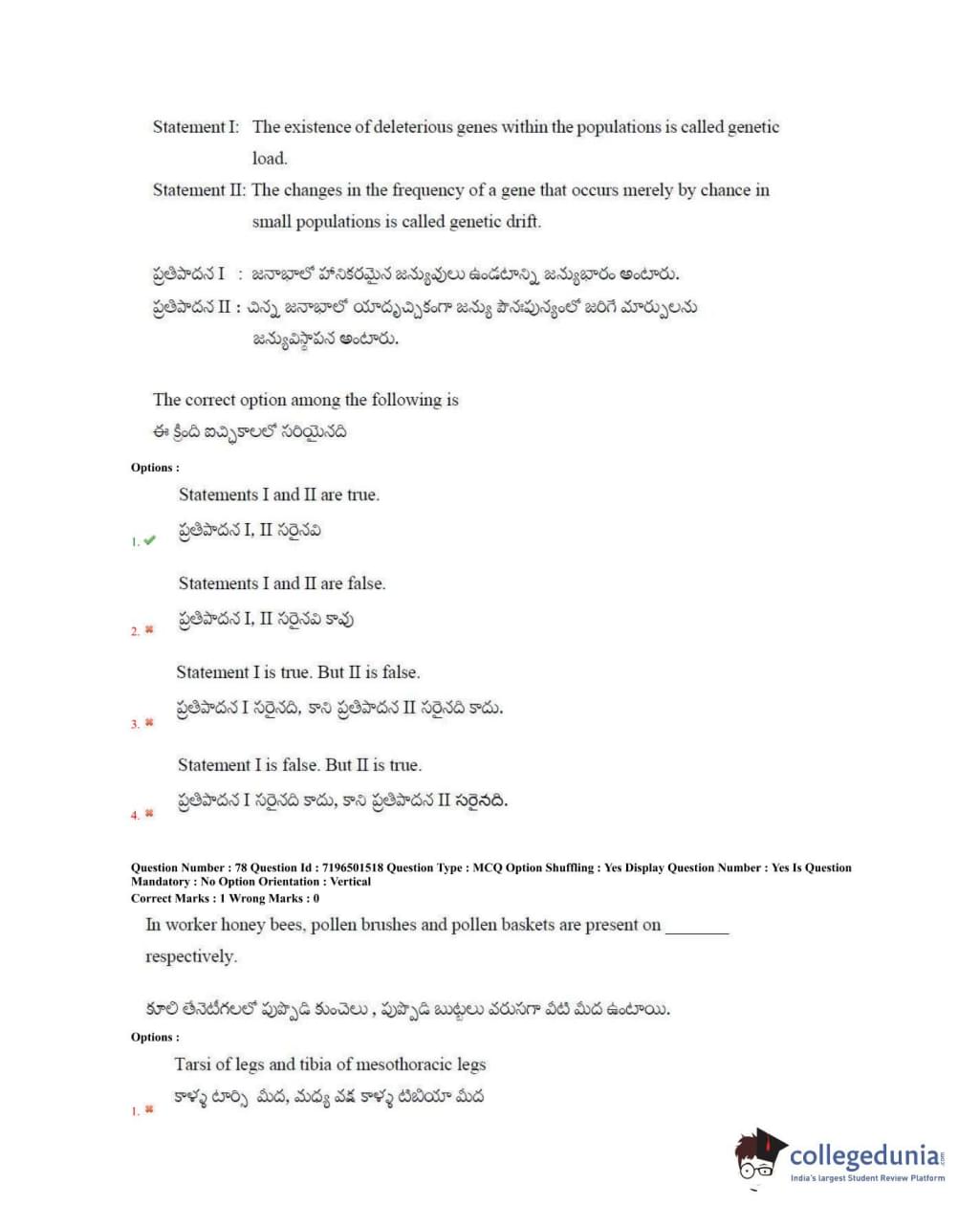 TS EAMCET 2020 Agriculture and Medical Question Paper with Answer Key PDFs Forenoon Session